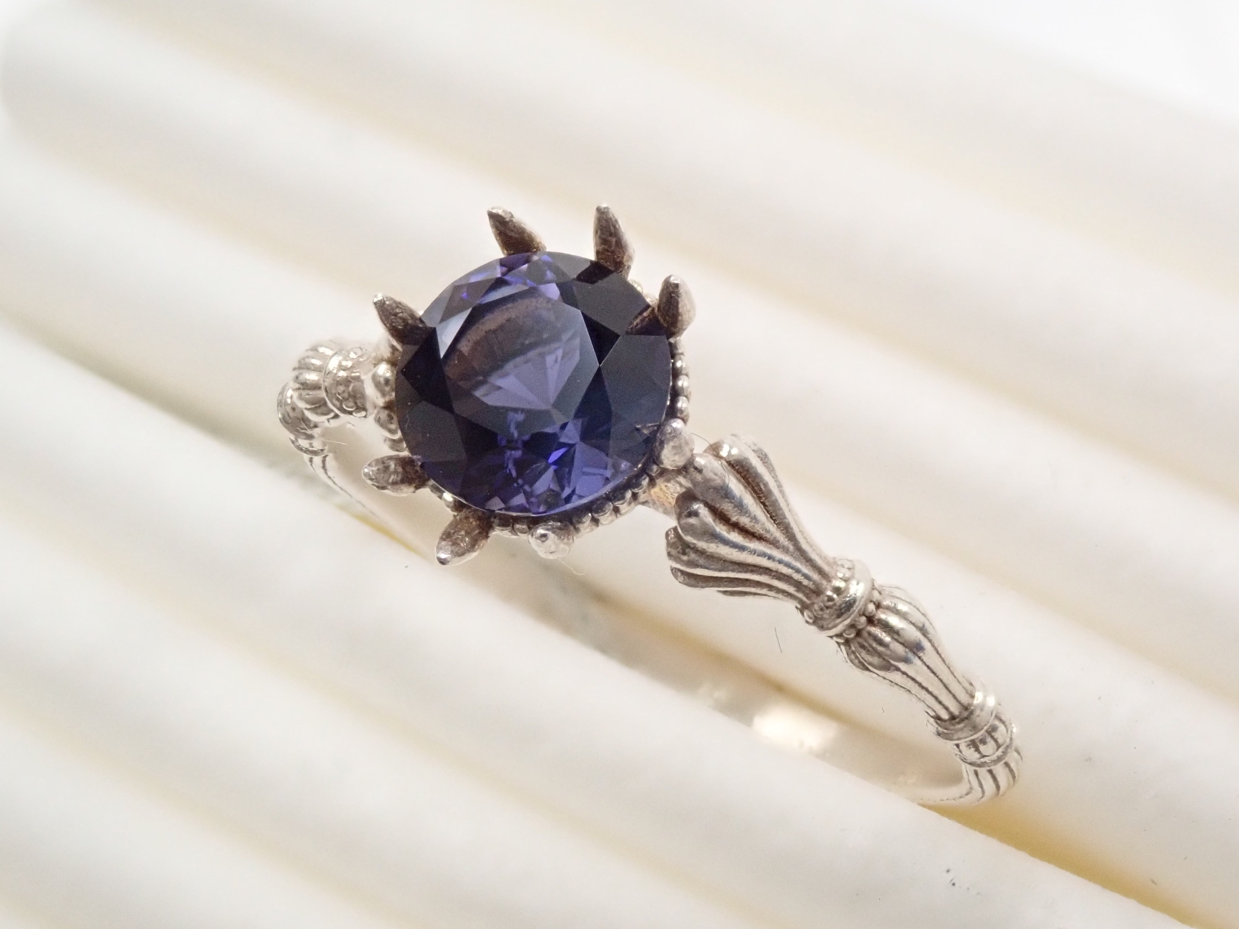 堇青石是一種美麗的深藍紫色,類似紫羅蘭花。它是一種多向色性寶石,從不同角度觀察時會呈現不同的顏色。據說透明度高、紫藍色美麗的品質較高。