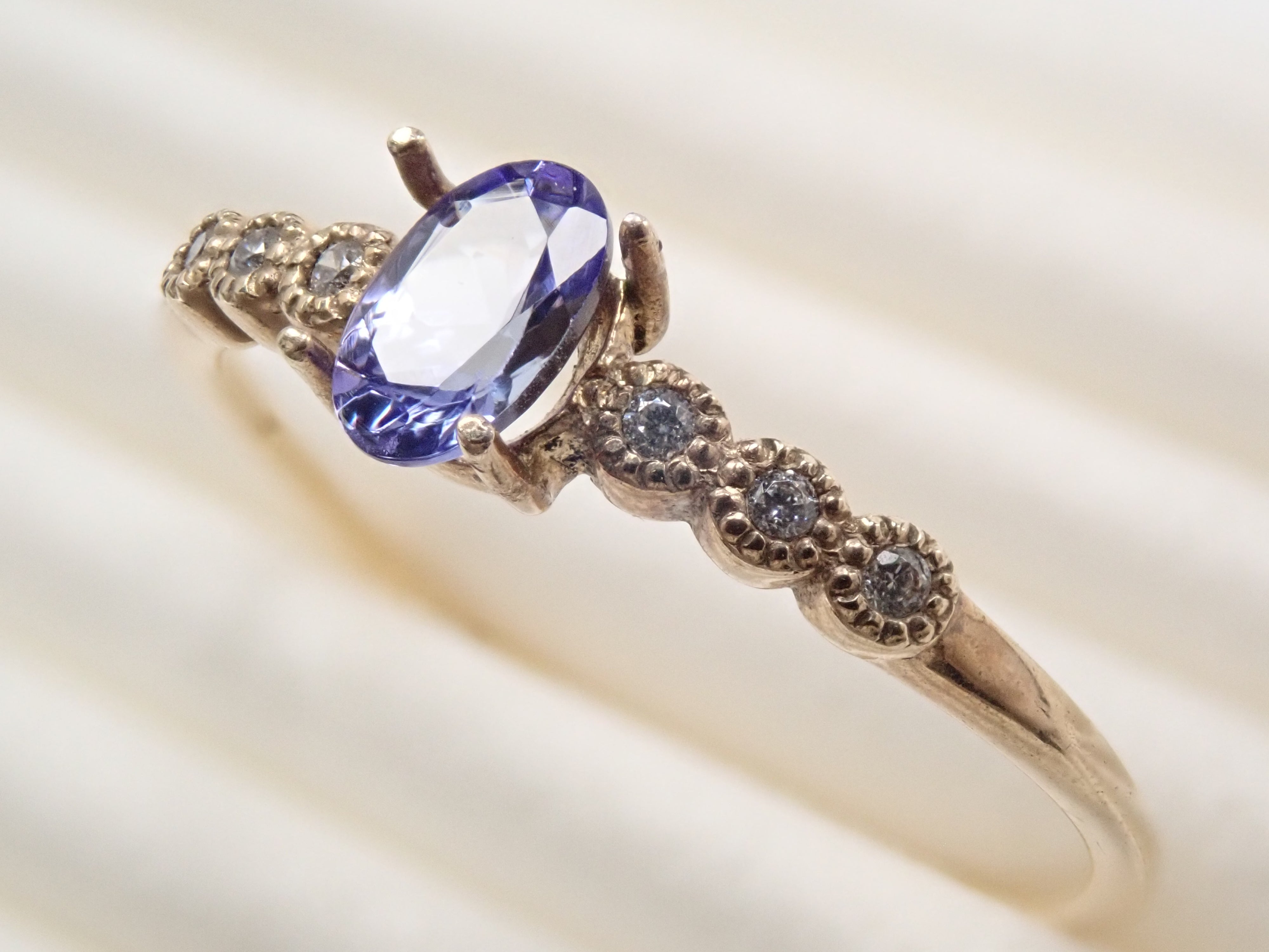 坦桑石是一種因其多色性而引人注目的寶石,根據觀察角度的不同,它會呈現出不同的顏色。藍、藍紫、群青等各種藍色在石頭裡翩翩起舞,我百看不厭。 「坦桑石」這個名字是由蒂芬妮公司命名的。