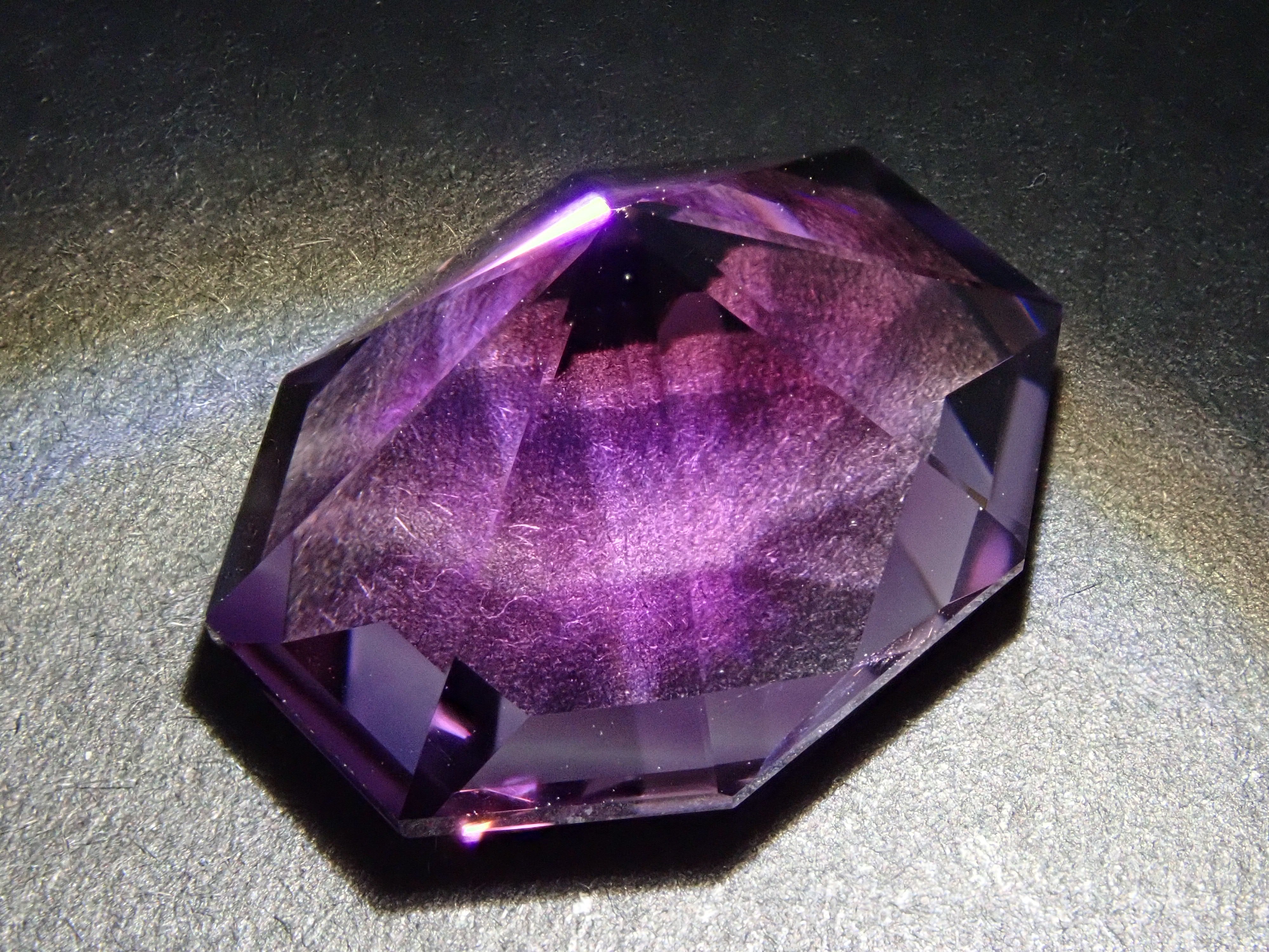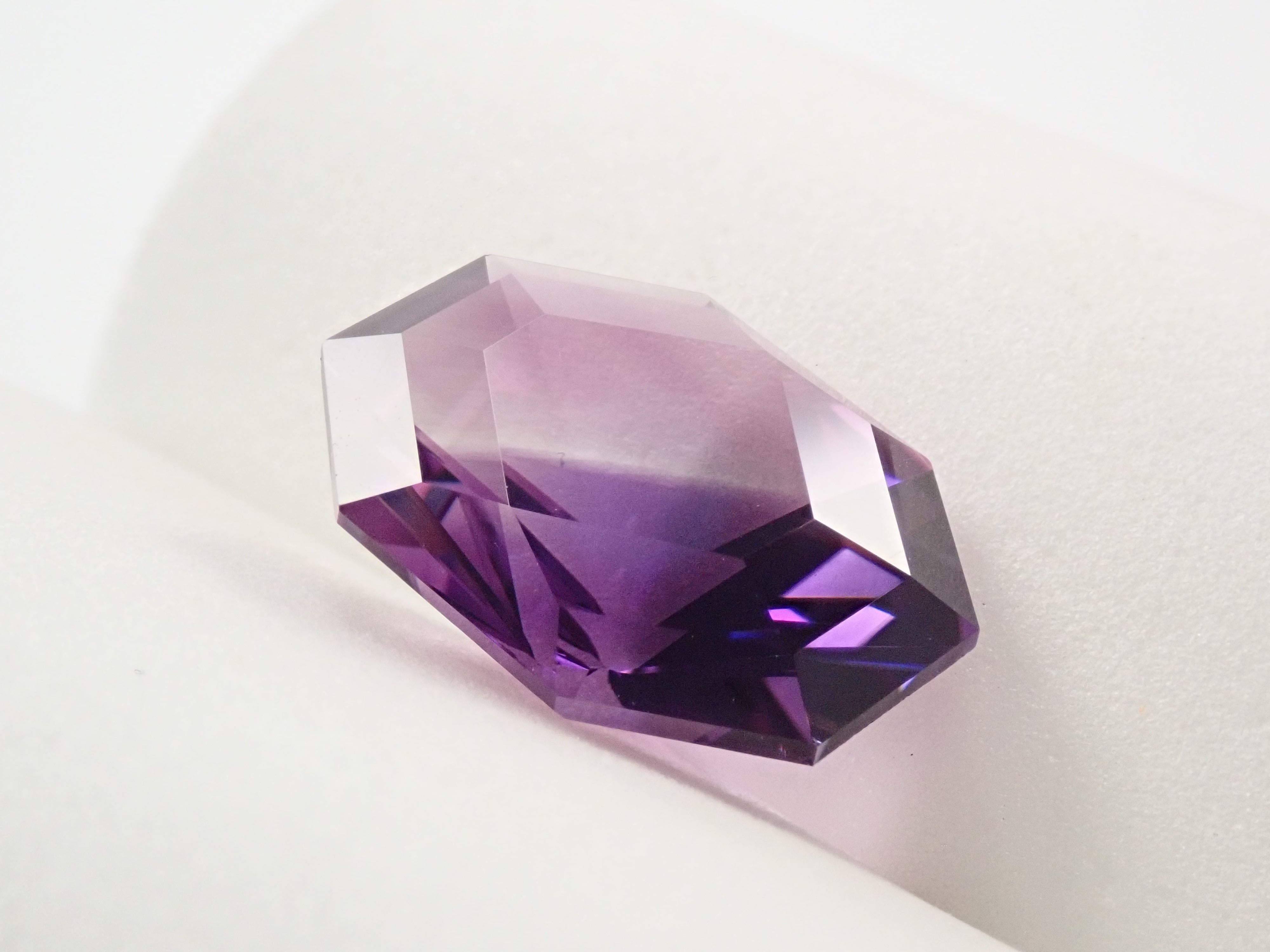 紫水晶自古以來就作為配件而受到人們的喜愛。曾經有一段時間,紫色只能由貴族使用。優雅美麗的經典寶石。礦物名稱為天然石英(水晶),因此耐陽光直射和乾燥,且易於清潔。巴西紫水晶 9.749 克拉,由斯里蘭卡拋光師 Sanjay 散切。這是一種高品質的紫水晶。