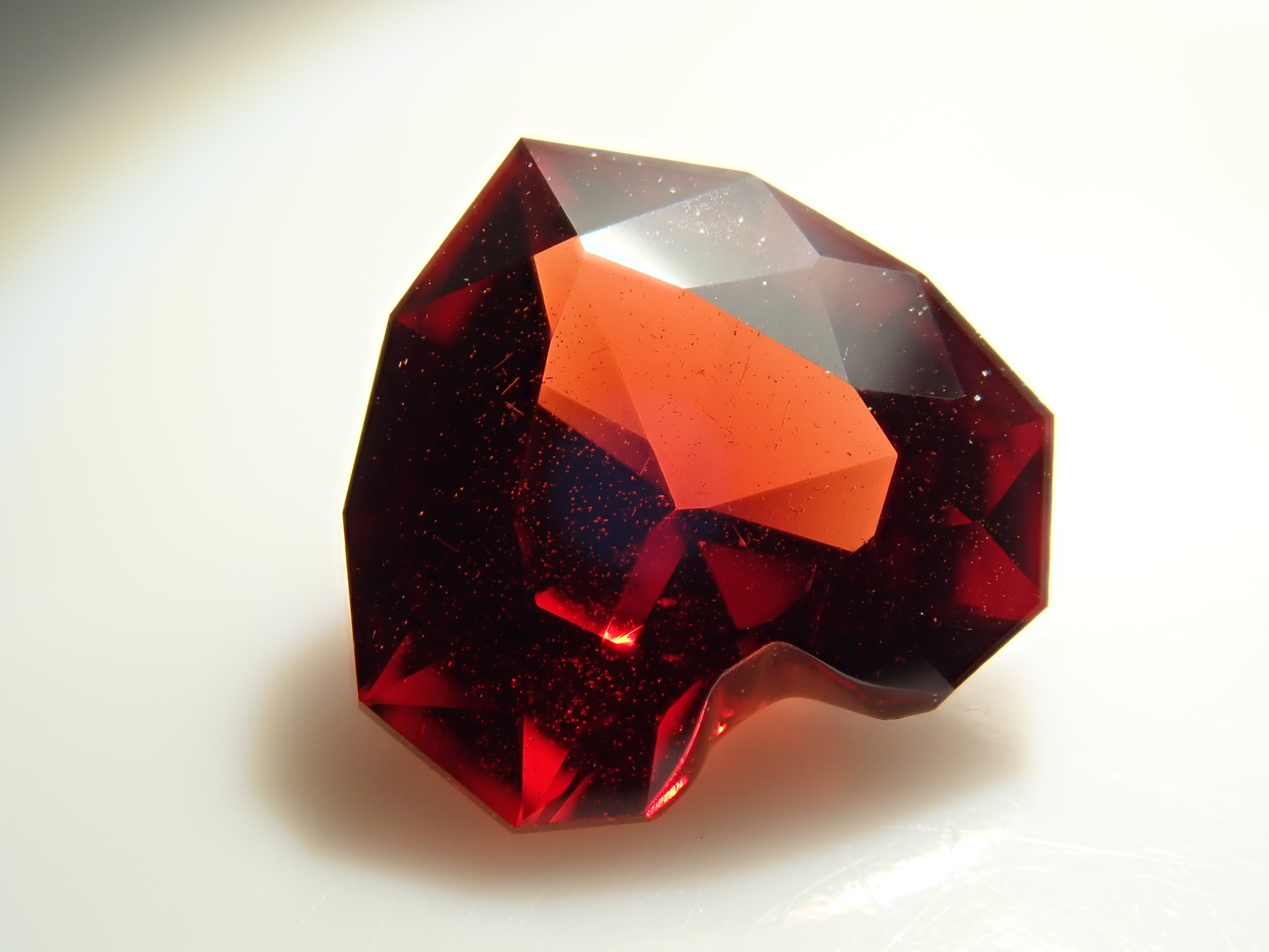 石榴石以一月生日石而聞名。事實上,它是一種有多種顏色的石頭,如紅色、黃色、橙色和綠色。其中,最受歡迎的紅色石榴石就是這種「鐵鋁榴石」。它的特徵是深紅色。心形訂製切割鐵鋁榴石石榴石。