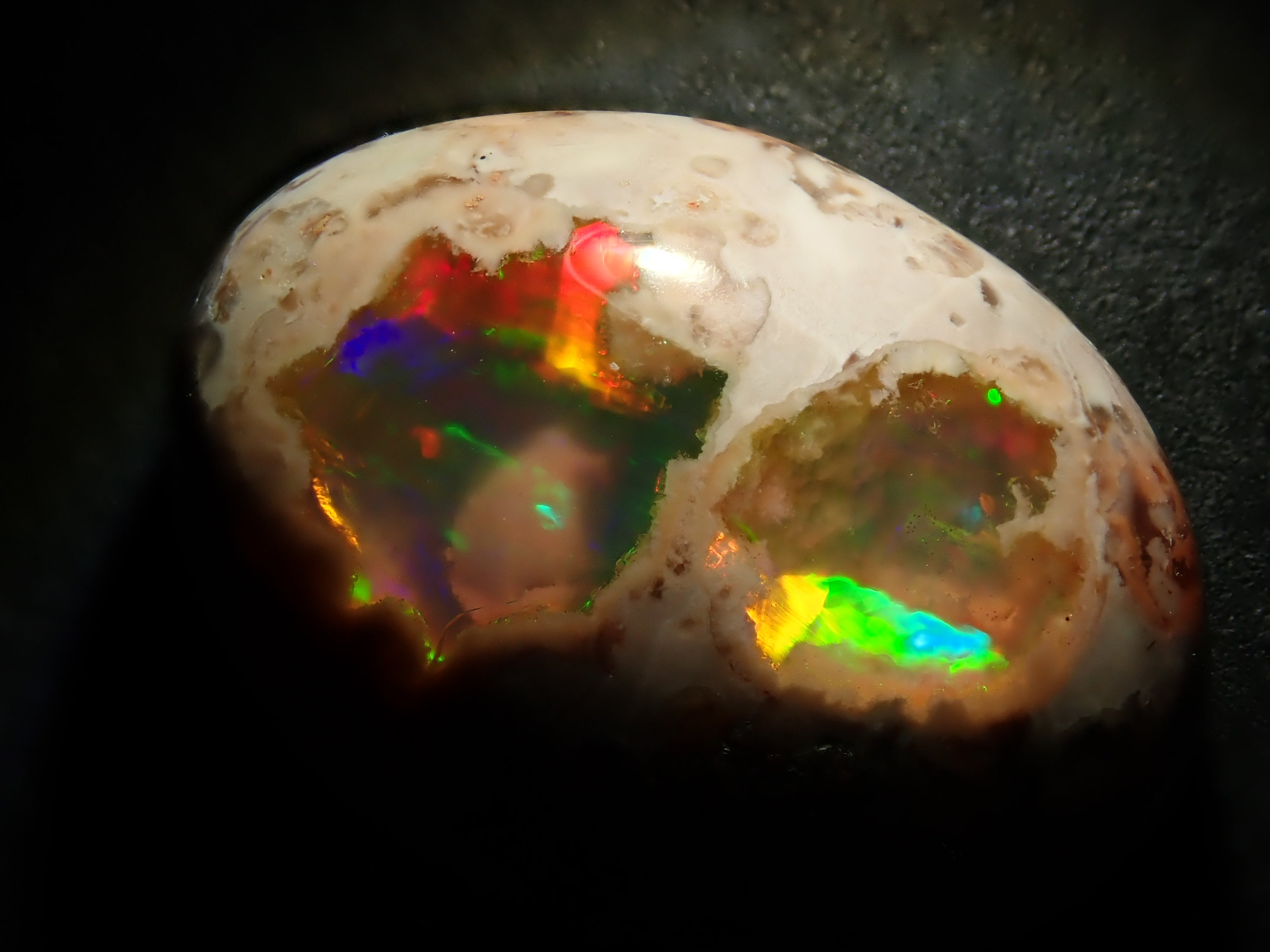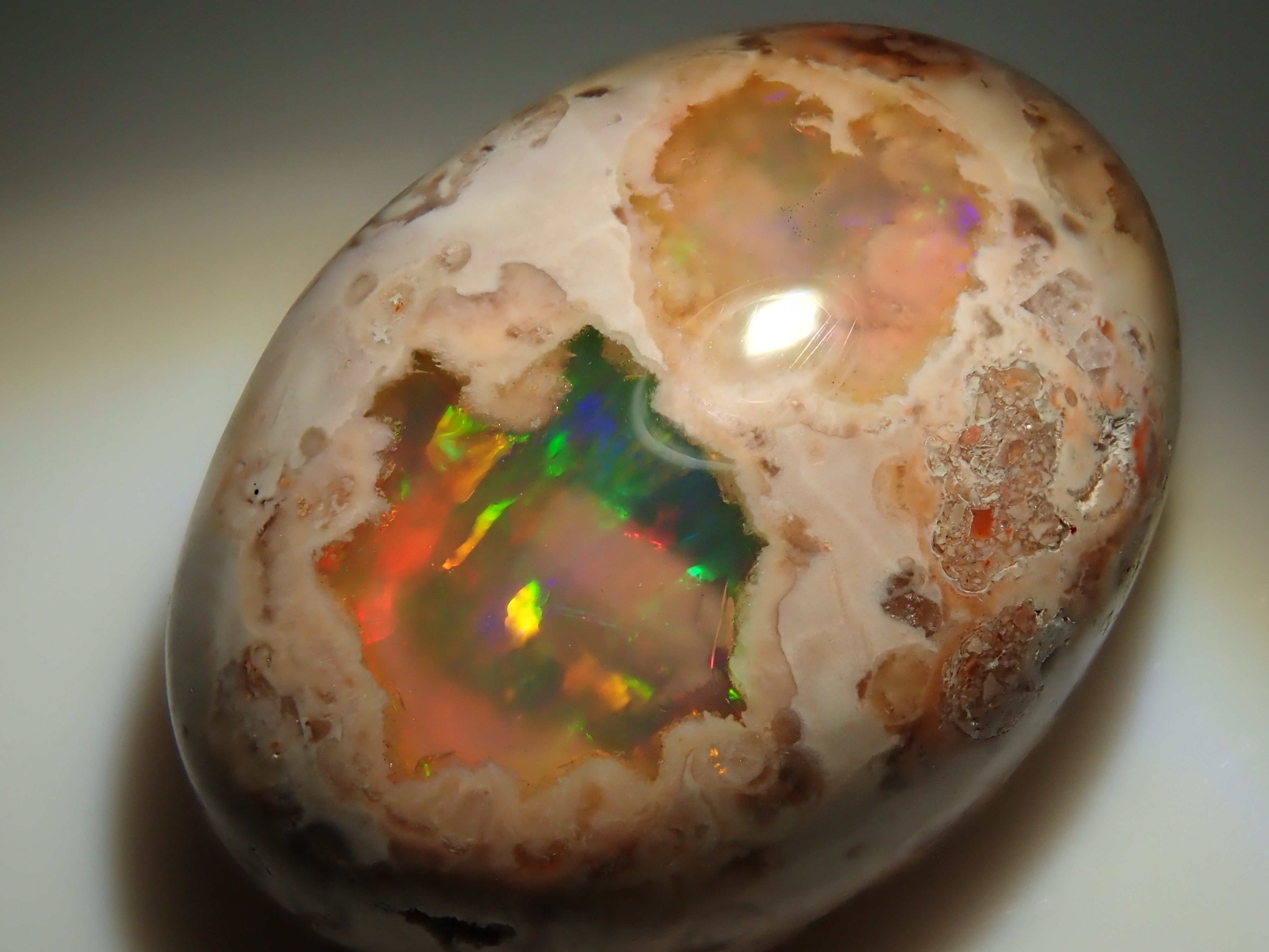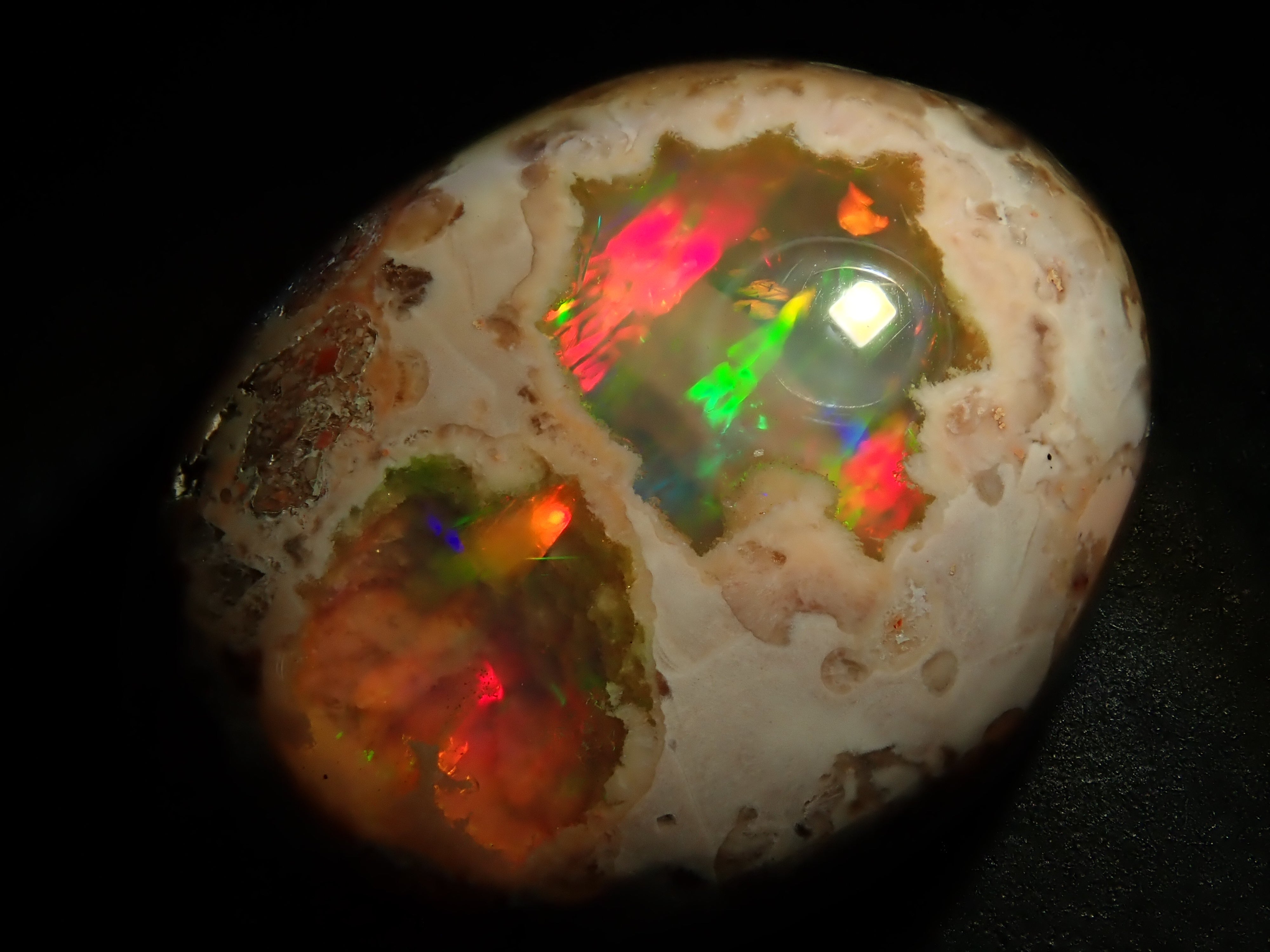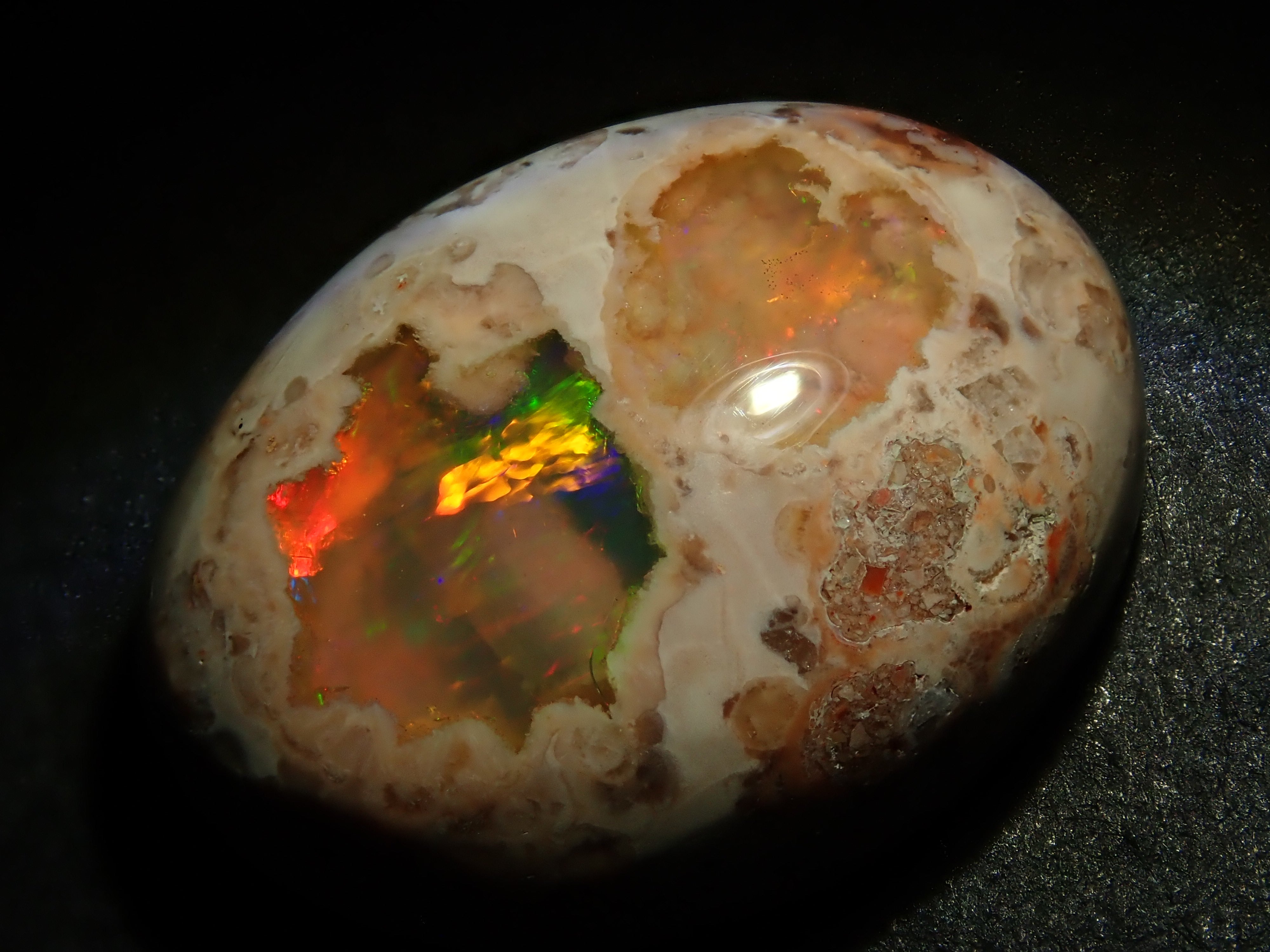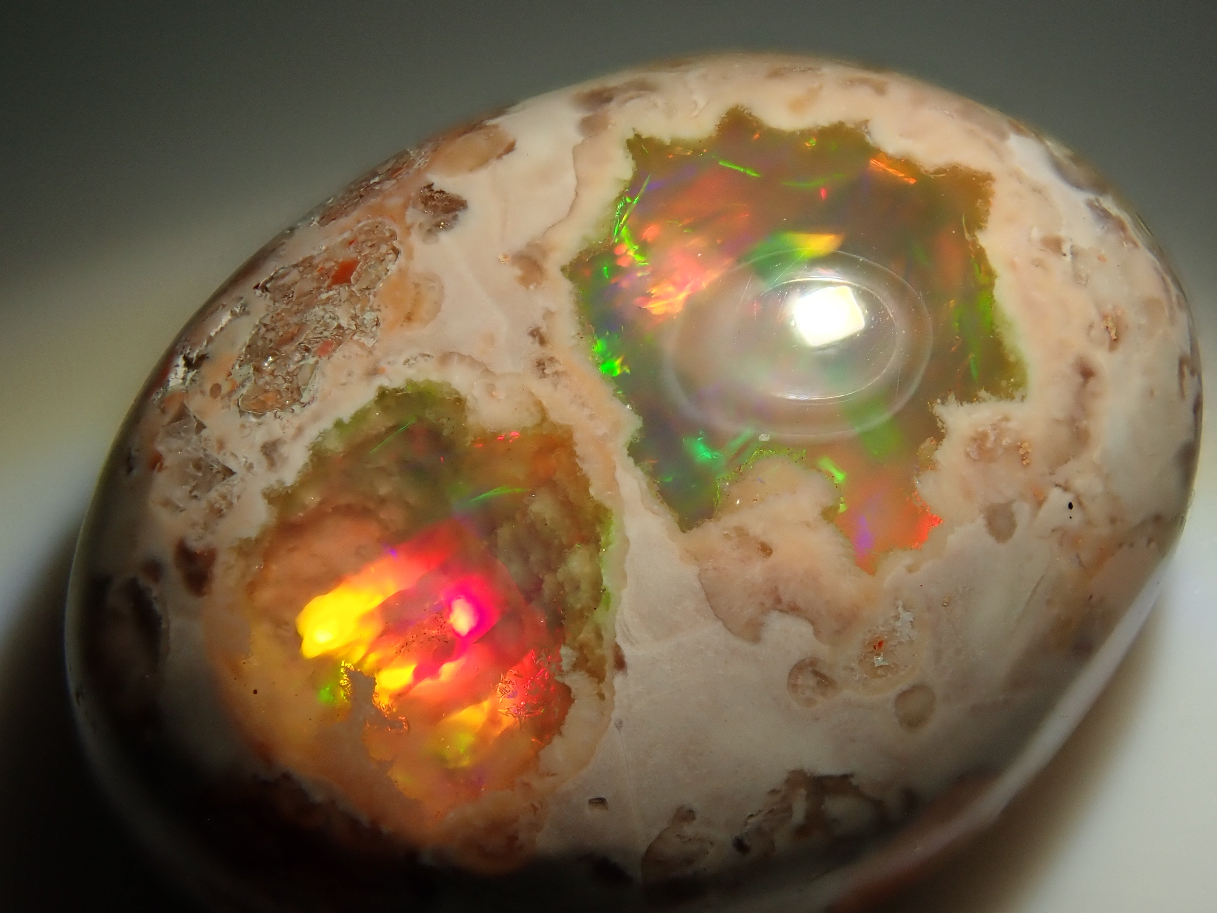 蛋白石是一種閃爍著彩虹色光芒的寶石。蛋白石有多種類型,但其中坎特拉蛋白石最受收藏家歡迎。它是一種寶石,擁有許多感受到大地活力的愛好者,甚至可以鬆散地欣賞它。 Cantera 蛋白石原本是一種有許多環的寶石。照片是使用筆燈拍攝的。墨西哥坎特拉蛋白石 10.986 克拉裸石,色彩豐富。