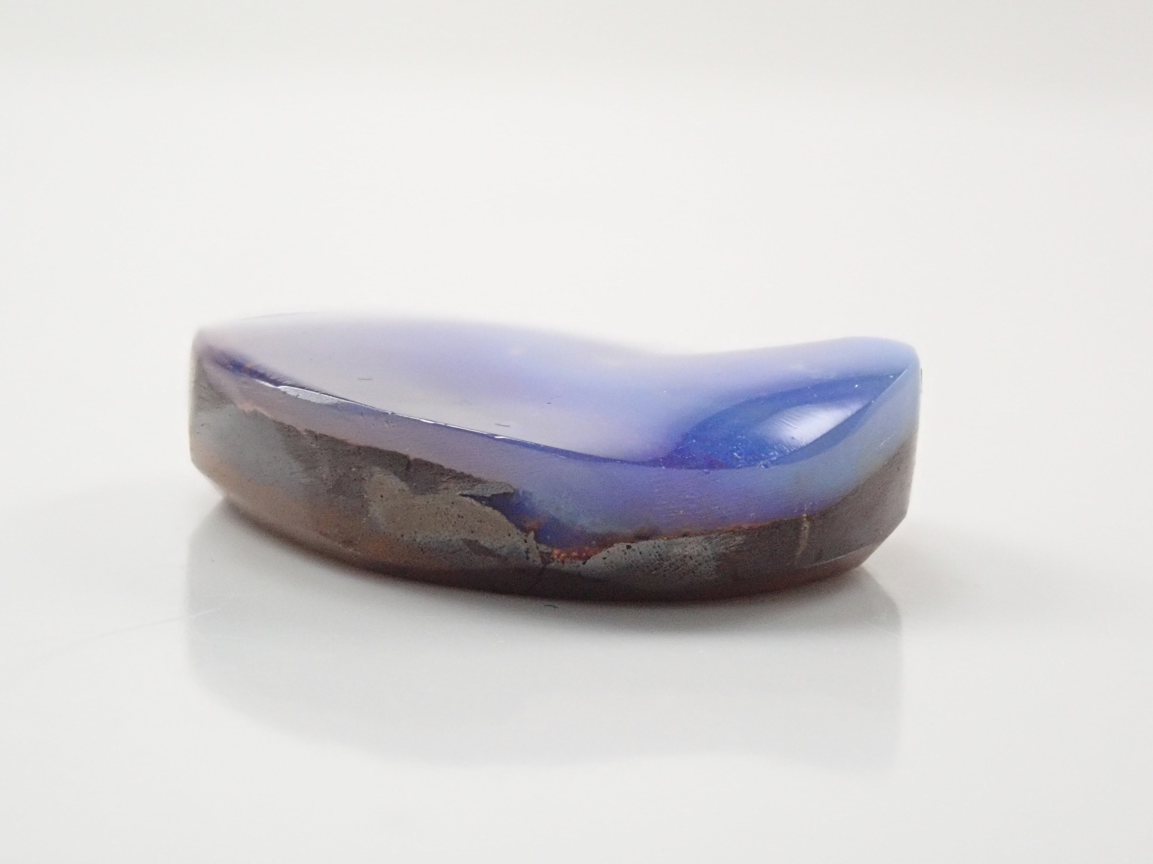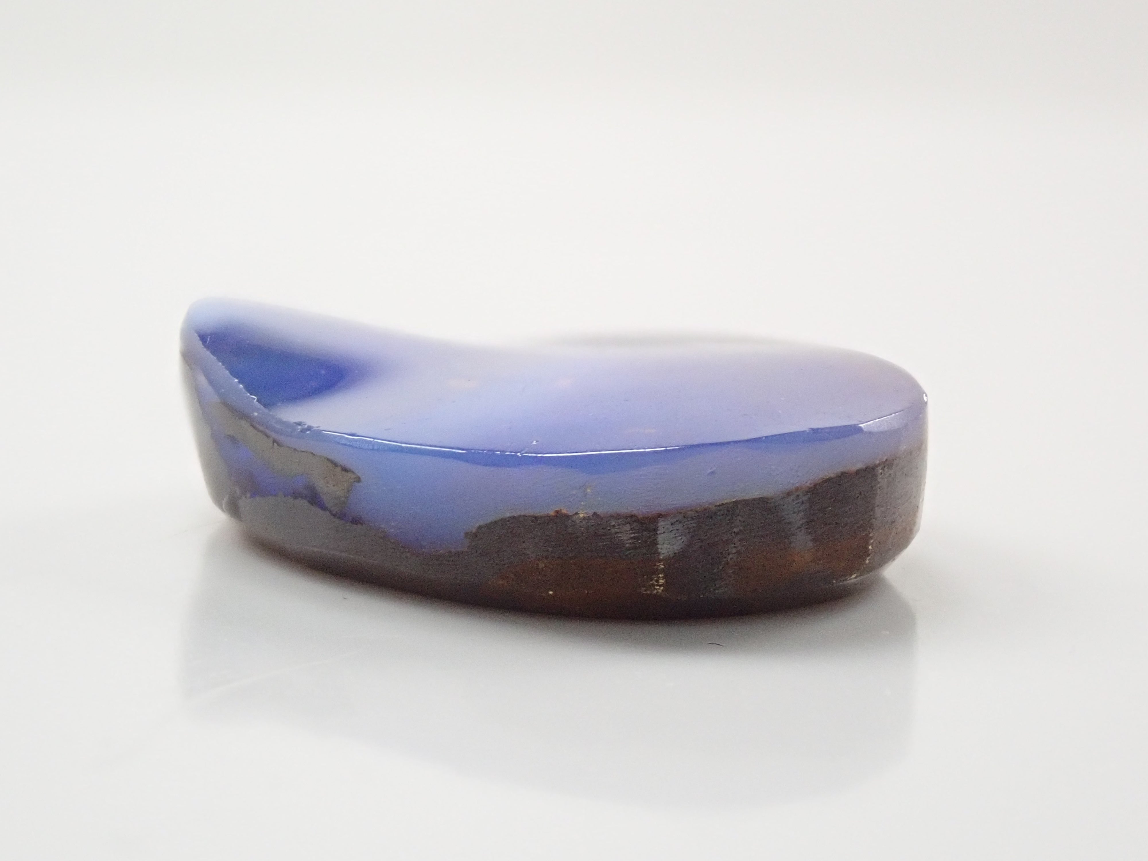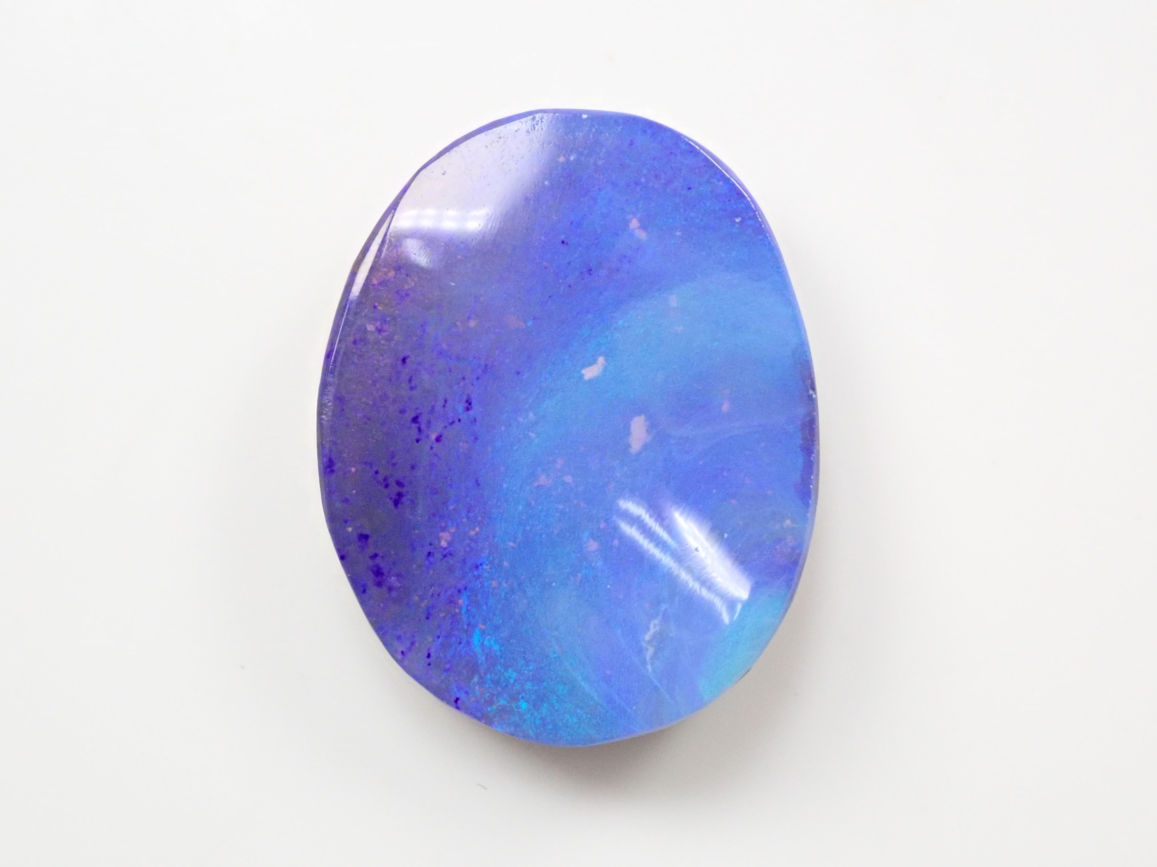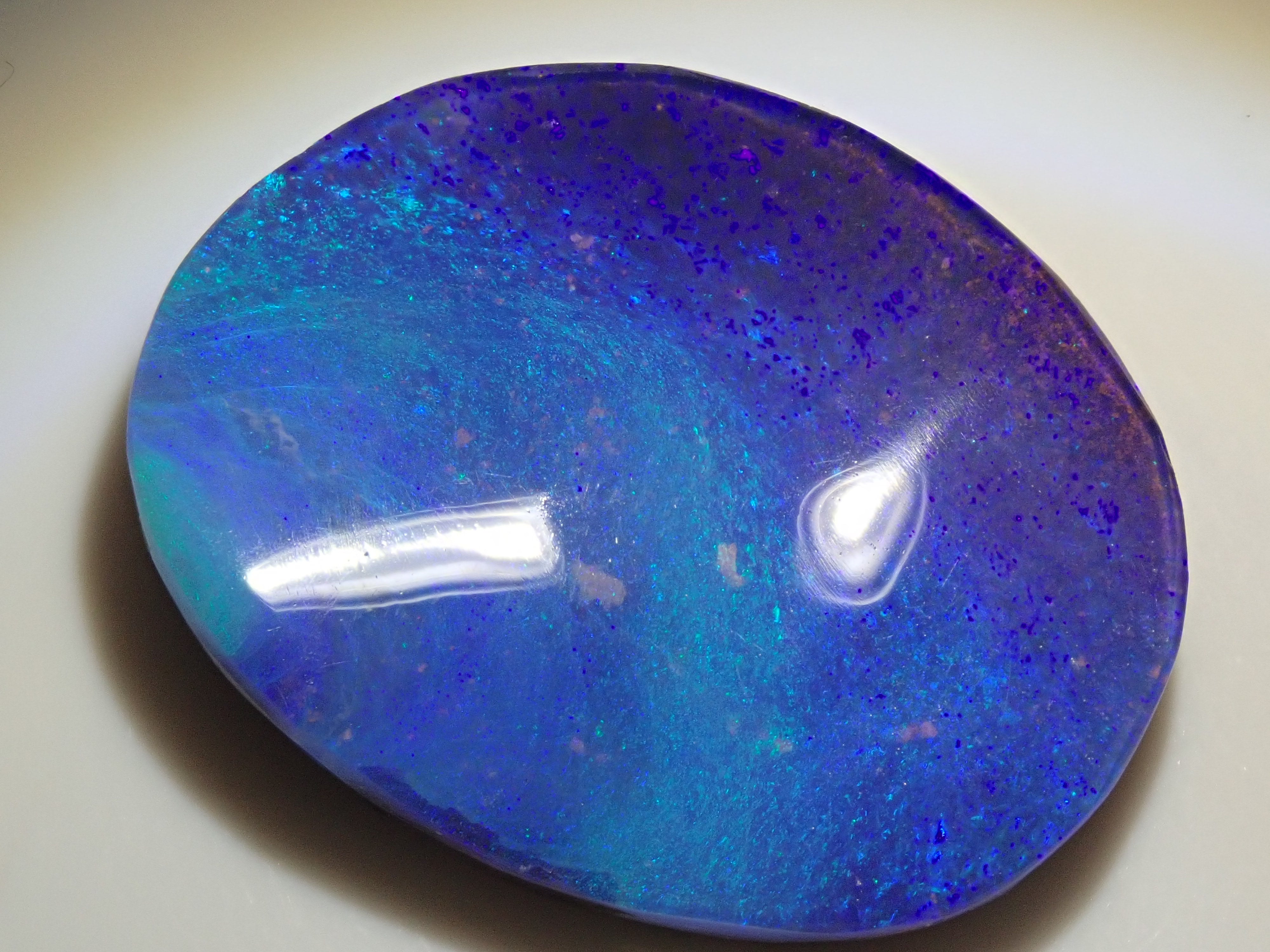 蛋白石是一種閃爍著彩虹色光芒的寶石。蛋白石有多種類型,其中,礫石蛋白石是指仍附著主岩的蛋白石。有些照片是用筆燈拍攝的。這是一顆高品質 23 克拉澳大利亞礫石蛋白石,具有美麗的藍色底色。