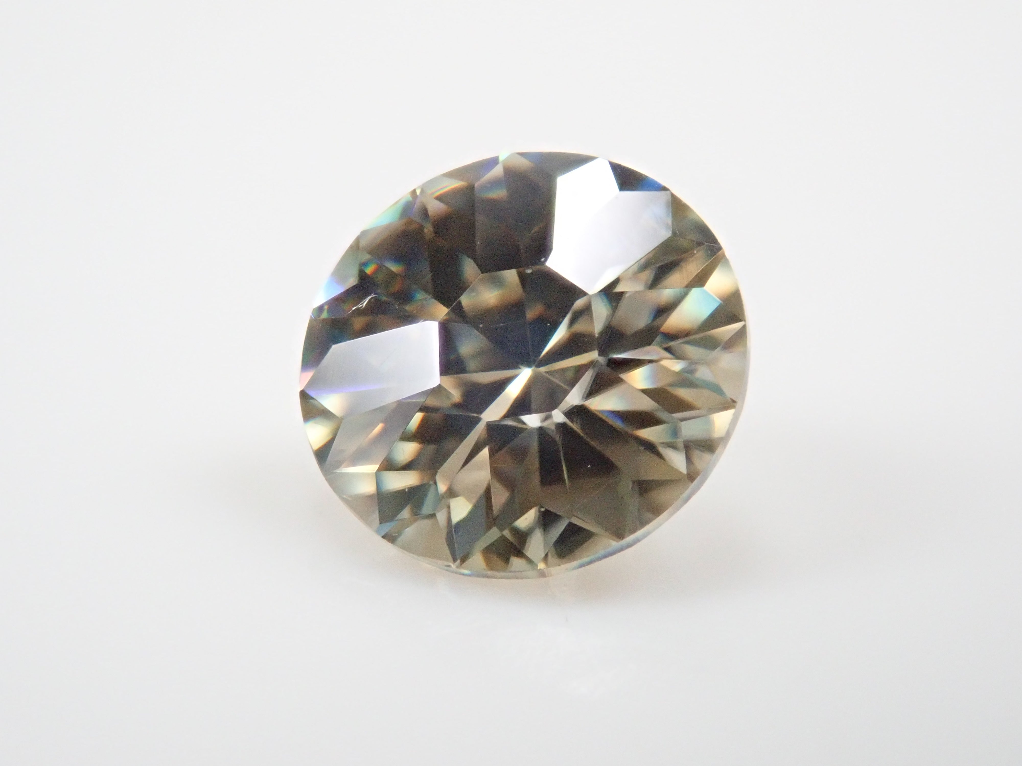 莫桑石的硬度為9.5,僅次於硬度為10的鑽石,並且比鑽石、榍石、濃綠榴石石榴石的分散率更高。事實上,它是一種適合寶石的礦物。由於天然寶石極為罕見,因此常見的是合成寶石。這也是一種合成莫桑石。莫桑石有多種顏色,因此收藏起來很有趣。請盡情享受眼前這耀眼的光芒。 莫桑石(合成)0.678 克拉,由斯里蘭卡拋光師 Sanjay 切割。