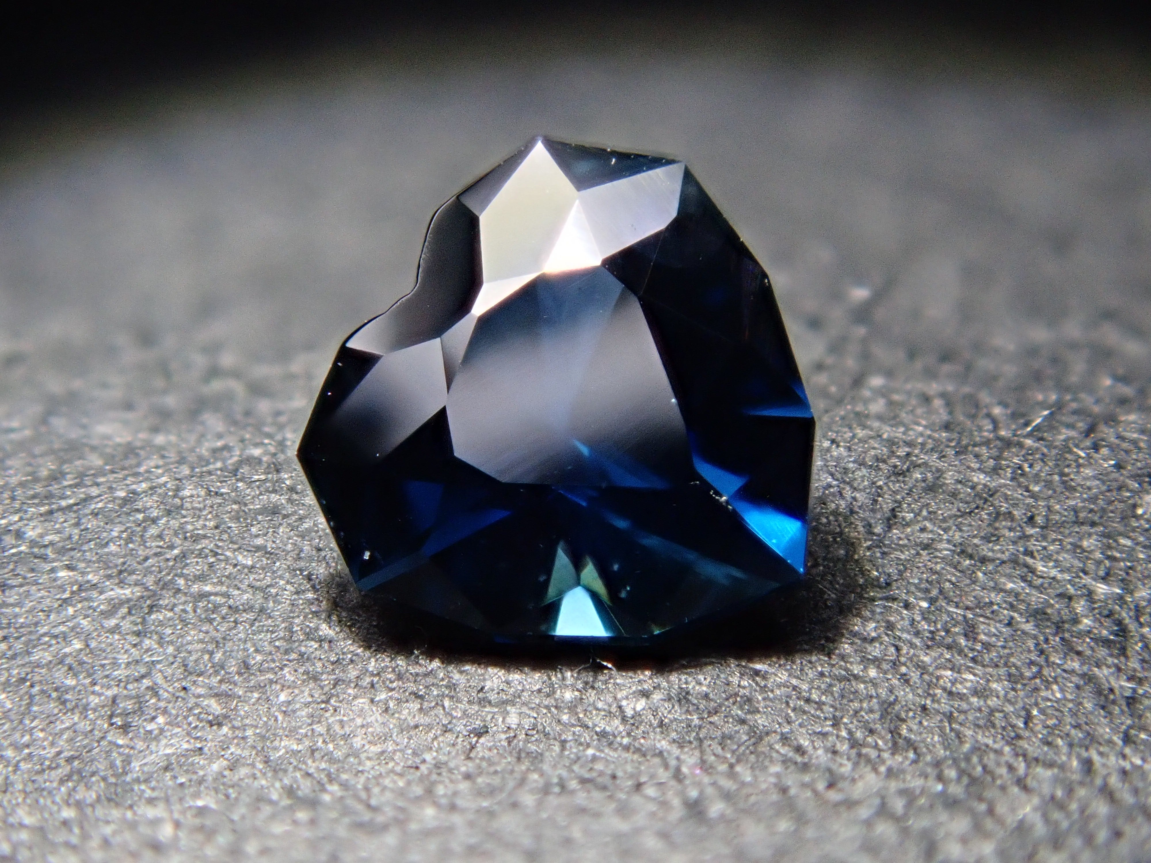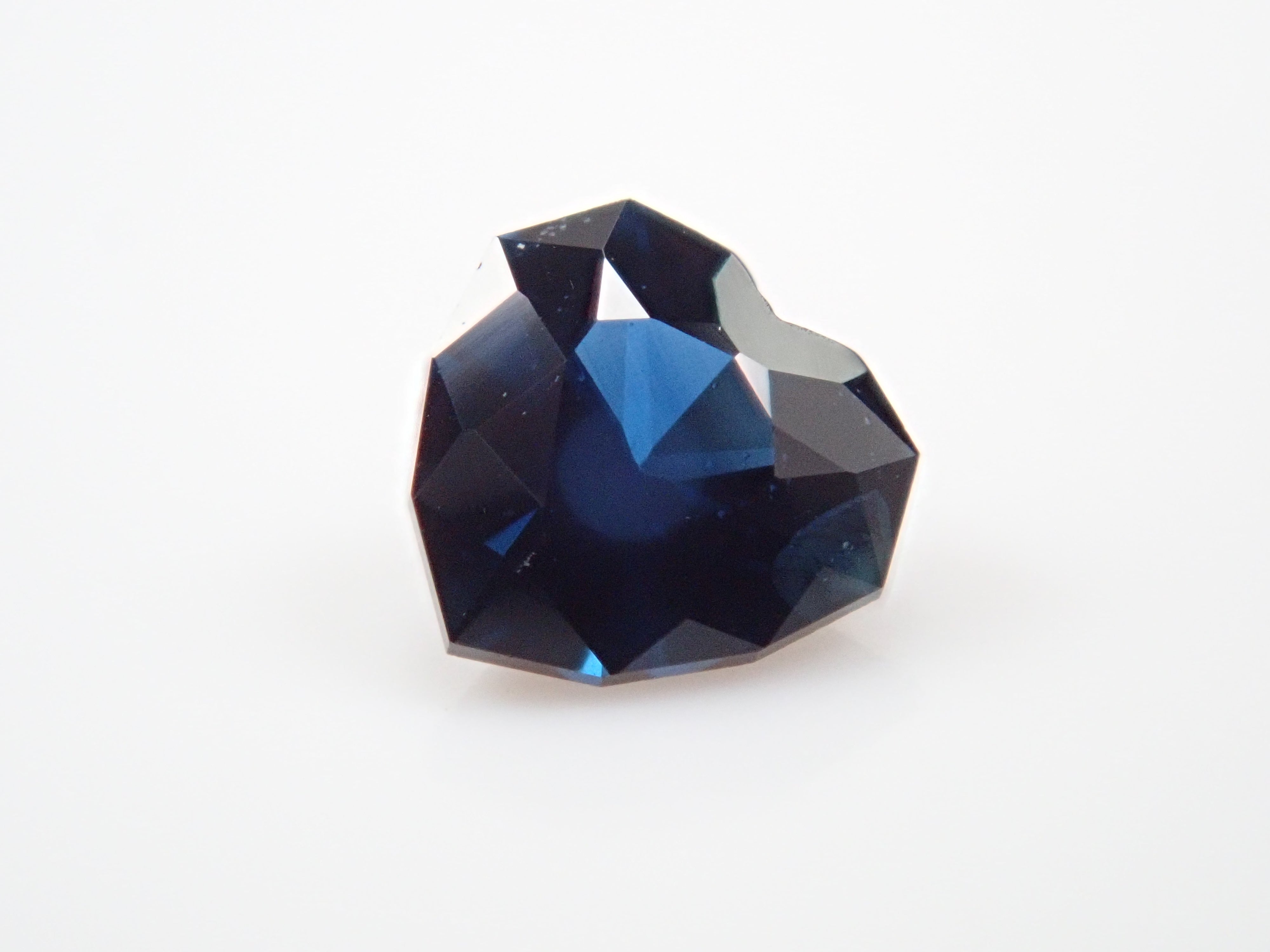 藍寶石是一種著名的寶石。礦物為剛玉,與紅寶石相同,但除紅色以外的所有剛玉稱為藍寶石。這是最正統的藍色藍寶石。藍寶石的硬度為 9,是僅次於鑽石的第二硬寶石,是一種高度堅韌、穩定且易於護理的寶石。 藍色藍寶石(加熱)0.231 克拉,由斯里蘭卡拋光師 Sanjay 切割。這是多邊形心形的客製化切割。