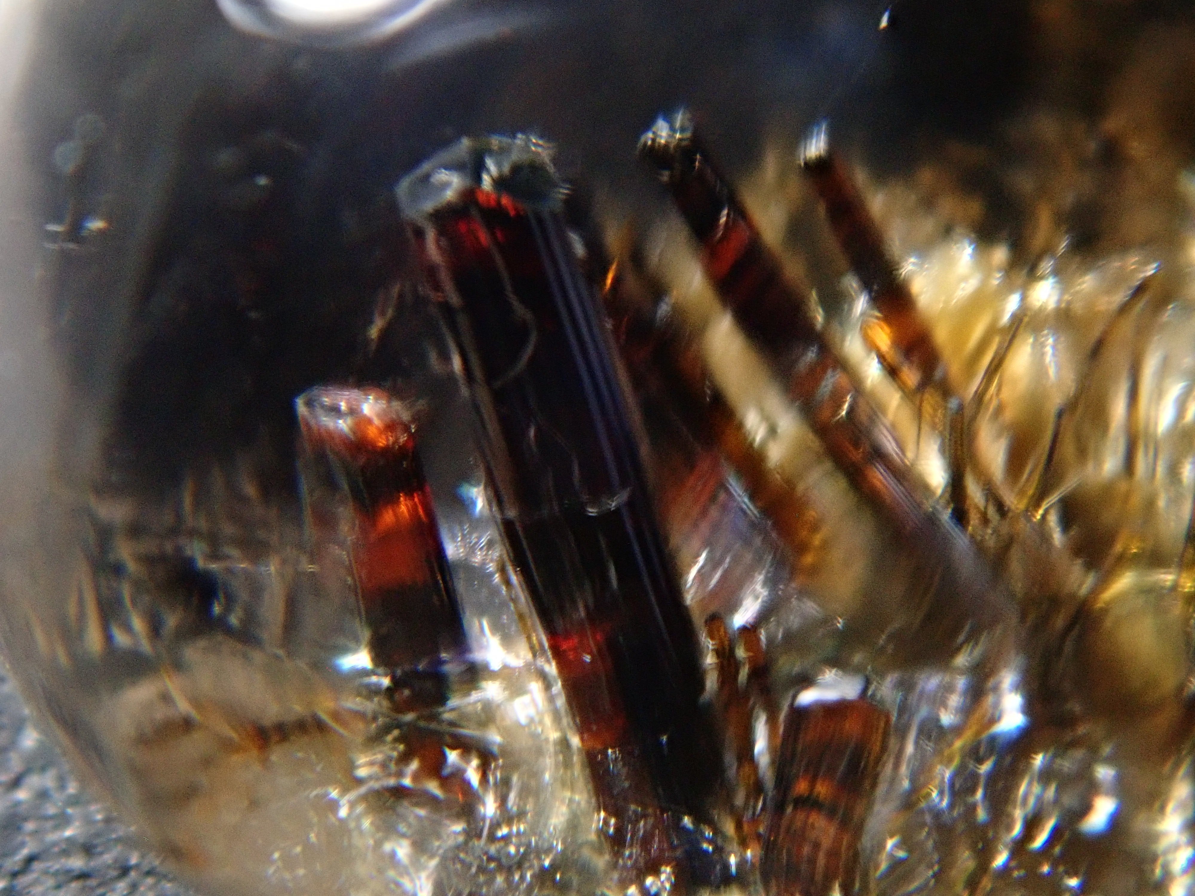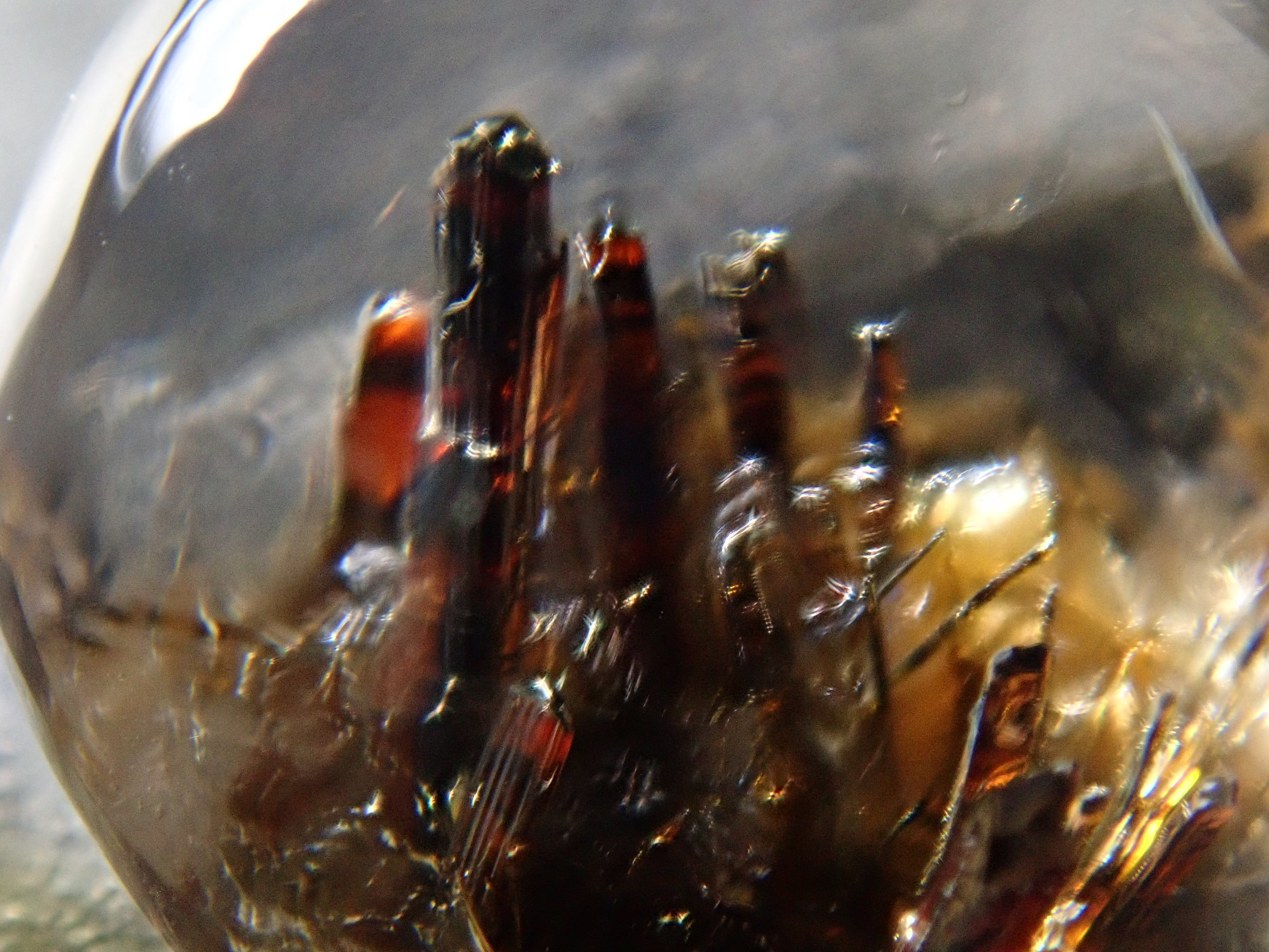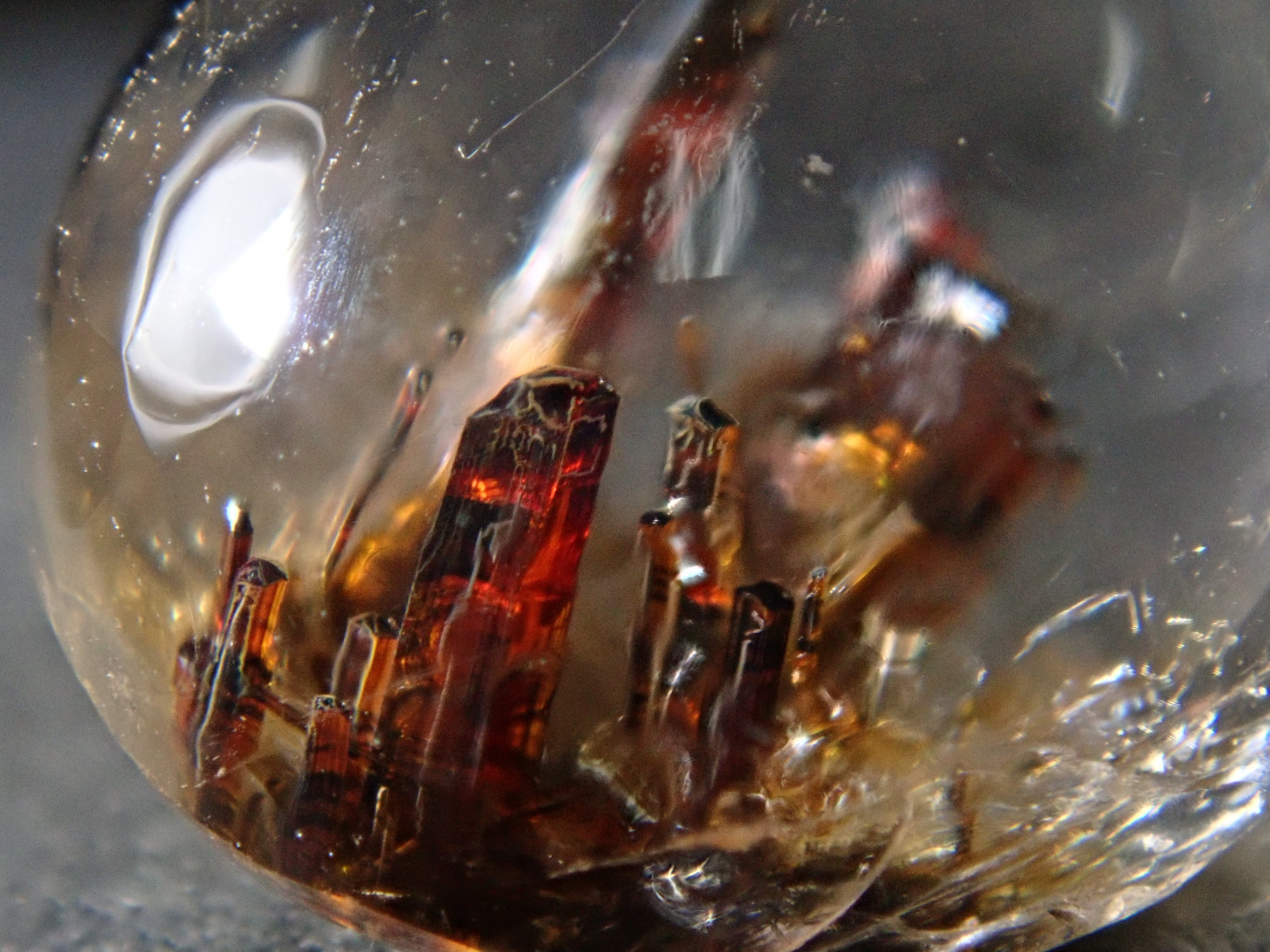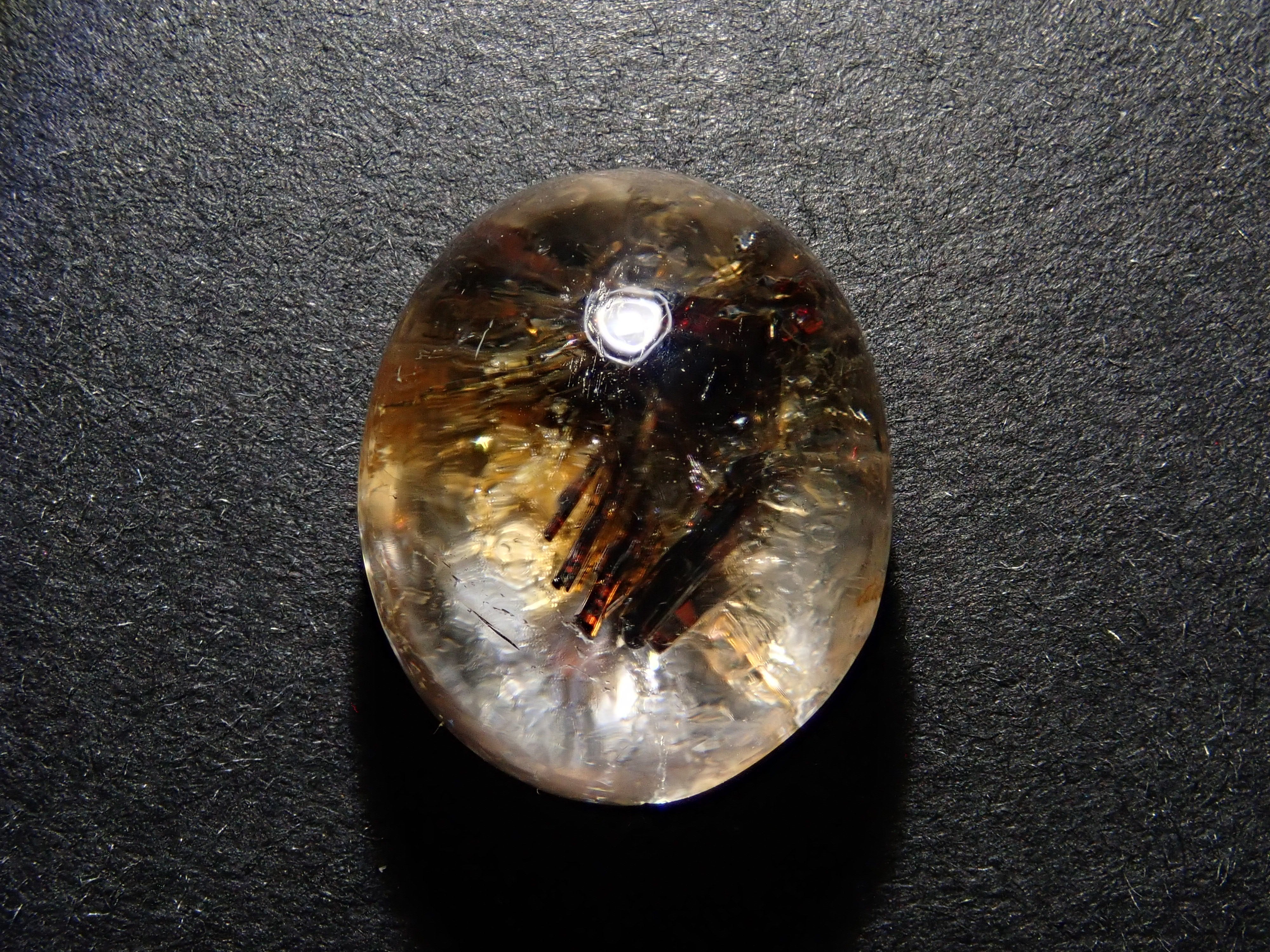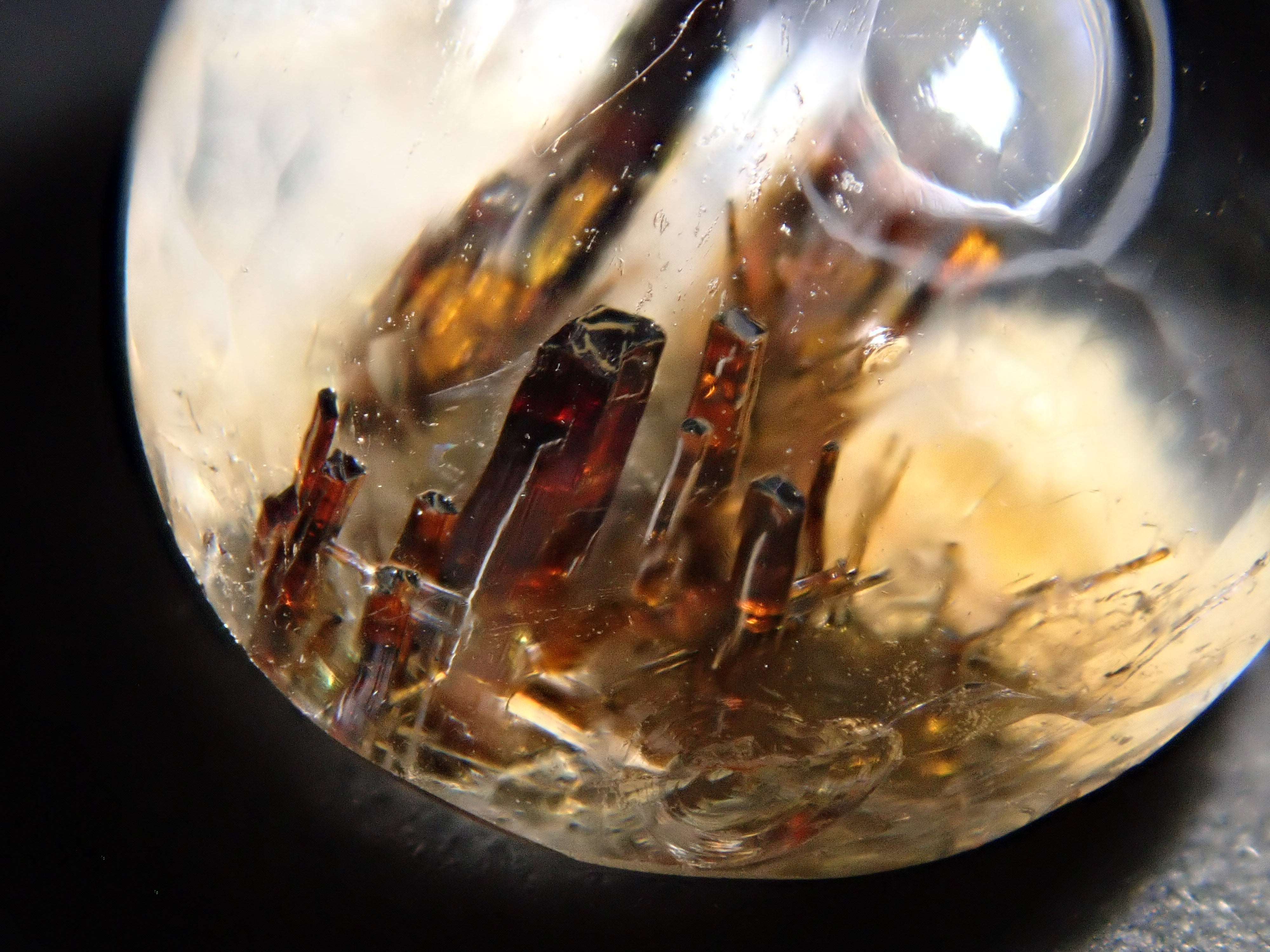 金紅石石英具有美麗的金色光澤。將一根由金紅石製成的「金針」插入晶體中。日本名字是“Kinkoishi”。又稱「金髮晶」、「發晶石」、「發晶石」等。攝影時使用筆形燈捕捉內含物的美麗光芒。
