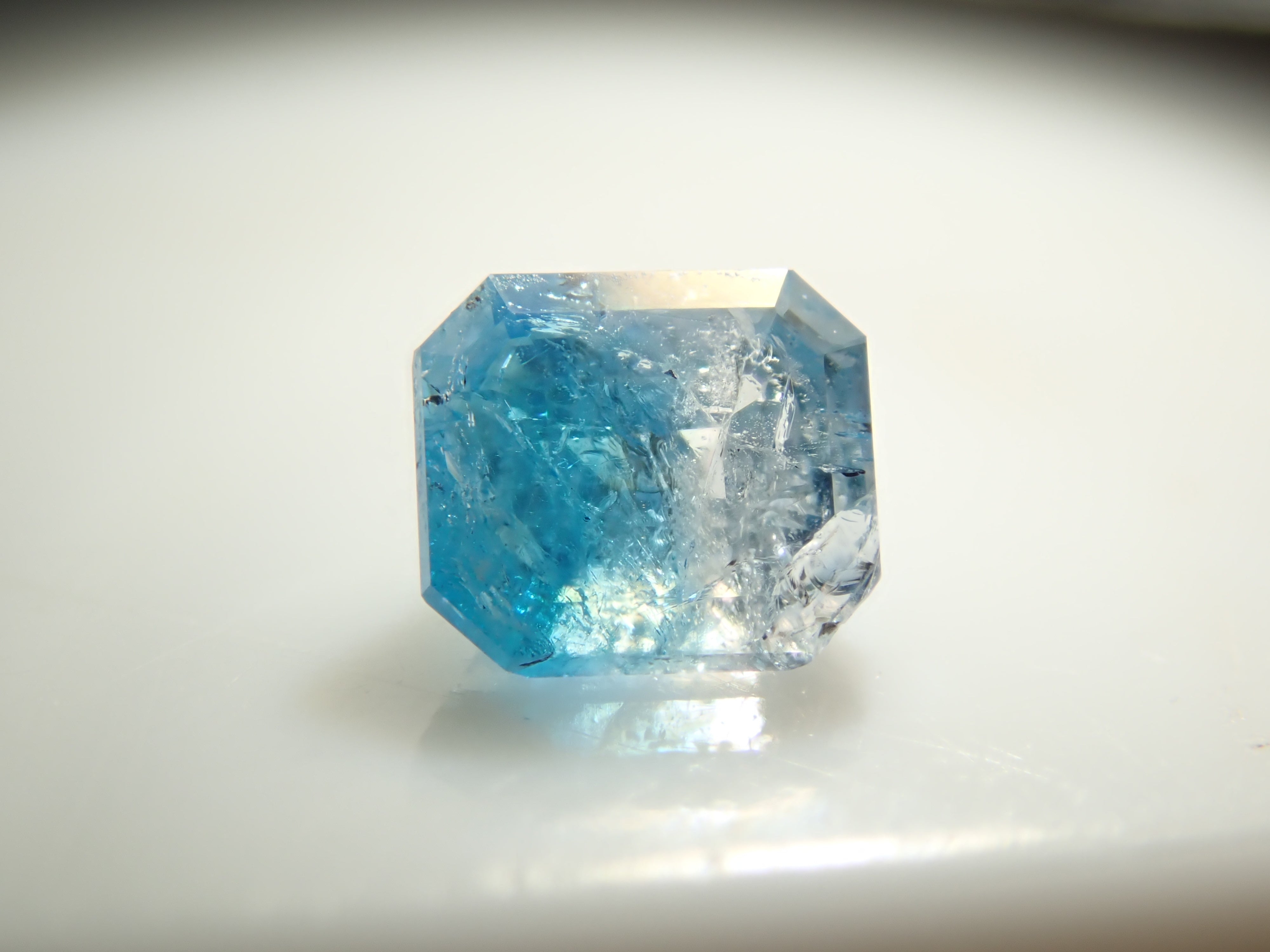 綠柱石(Euclase)的名字來自希臘語“eu”(意為“好”)和“klasis”(意為“破碎”)。顧名思義,它擁有完美的解理。由於產地稀少,這種寶石很少被製成寶石。它有多種顏色,包括白色、無色、淺綠色、淺藍色和深藍色。這是巴西綠柱石。這是一塊鬆散的石頭,是從巴西購買的綠柱石原石,由斯里蘭卡切割師 Sanjay 拋光。