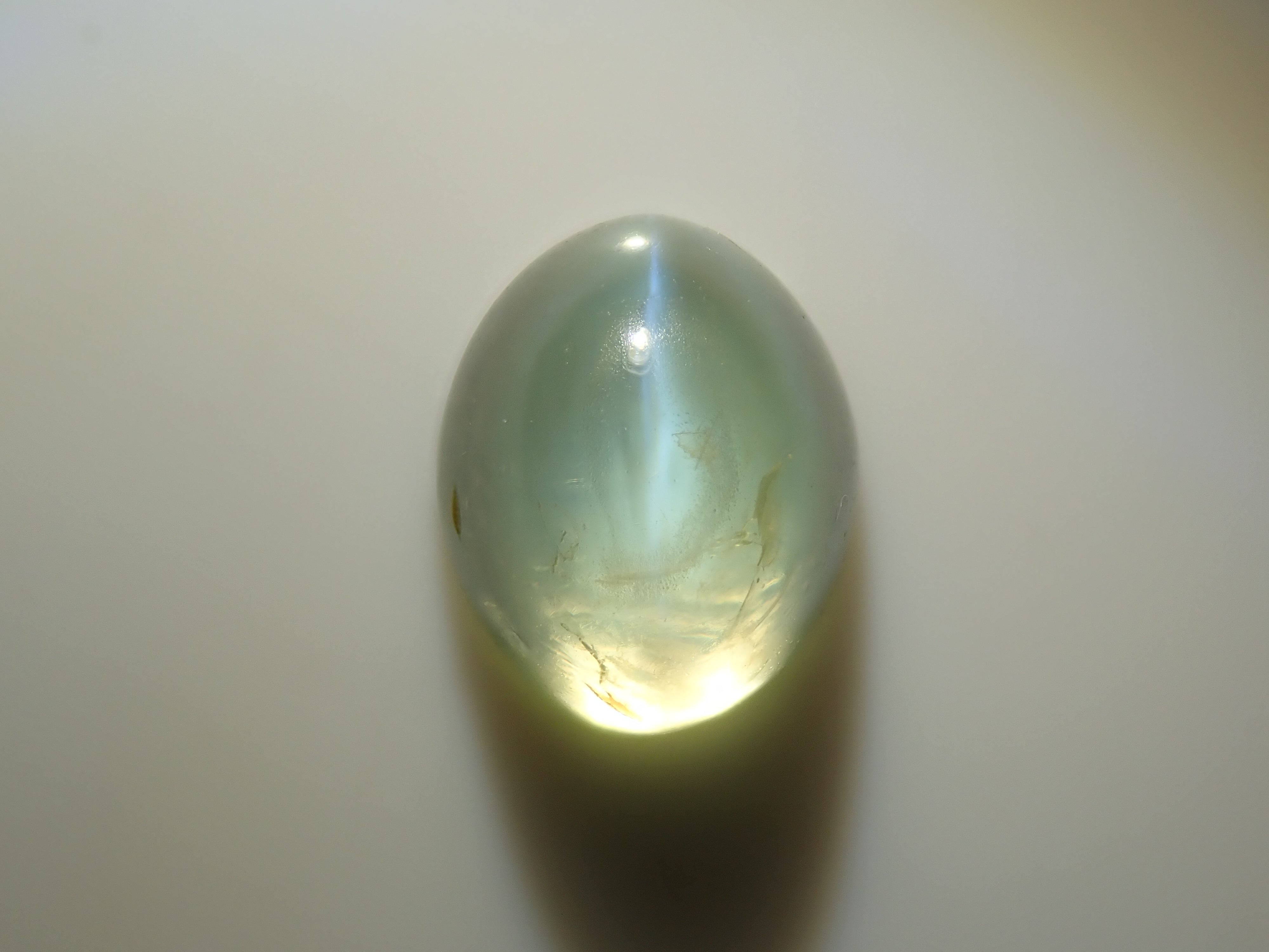 金綠寶石是一種有多種色調的寶石,從淺黃色到綠色再到深棕色。它是一種堅硬耐用的寶石。這是可以看到貓眼效果的類型,使用筆燈拍攝。石頭的背面基本上是未拋光的。產自斯里蘭卡的 1.074 克拉高透明度金綠寶石貓眼石裸石。