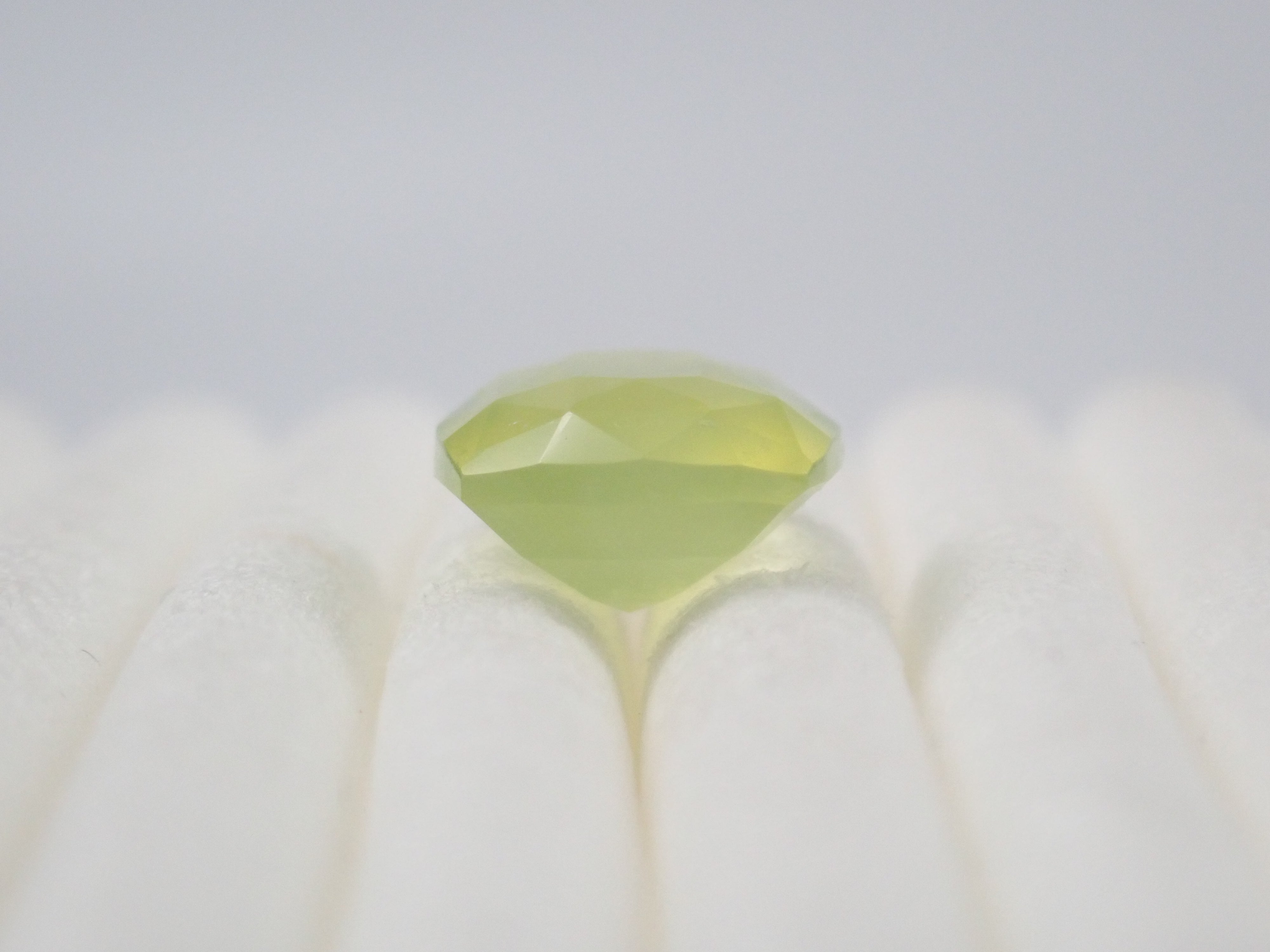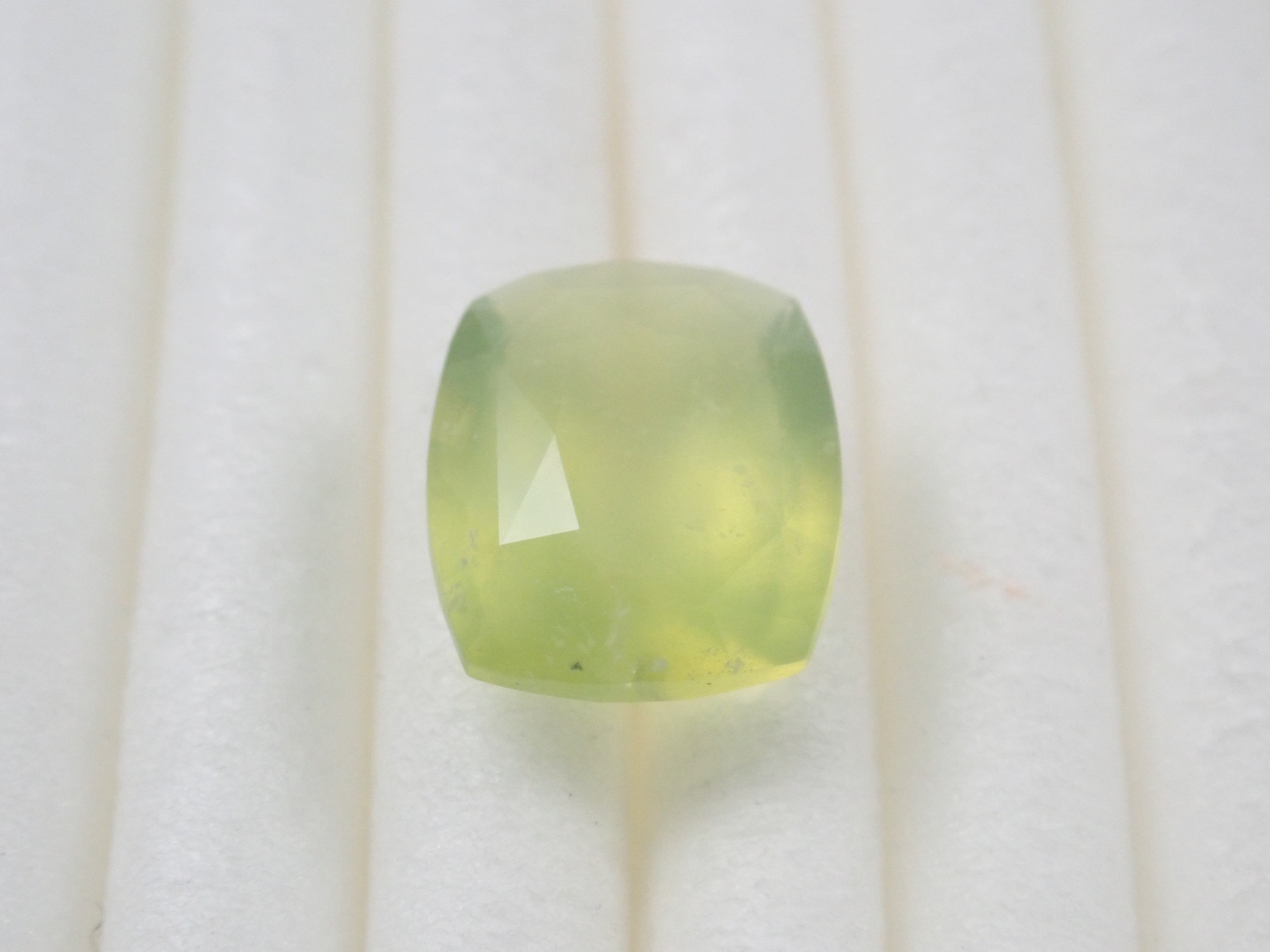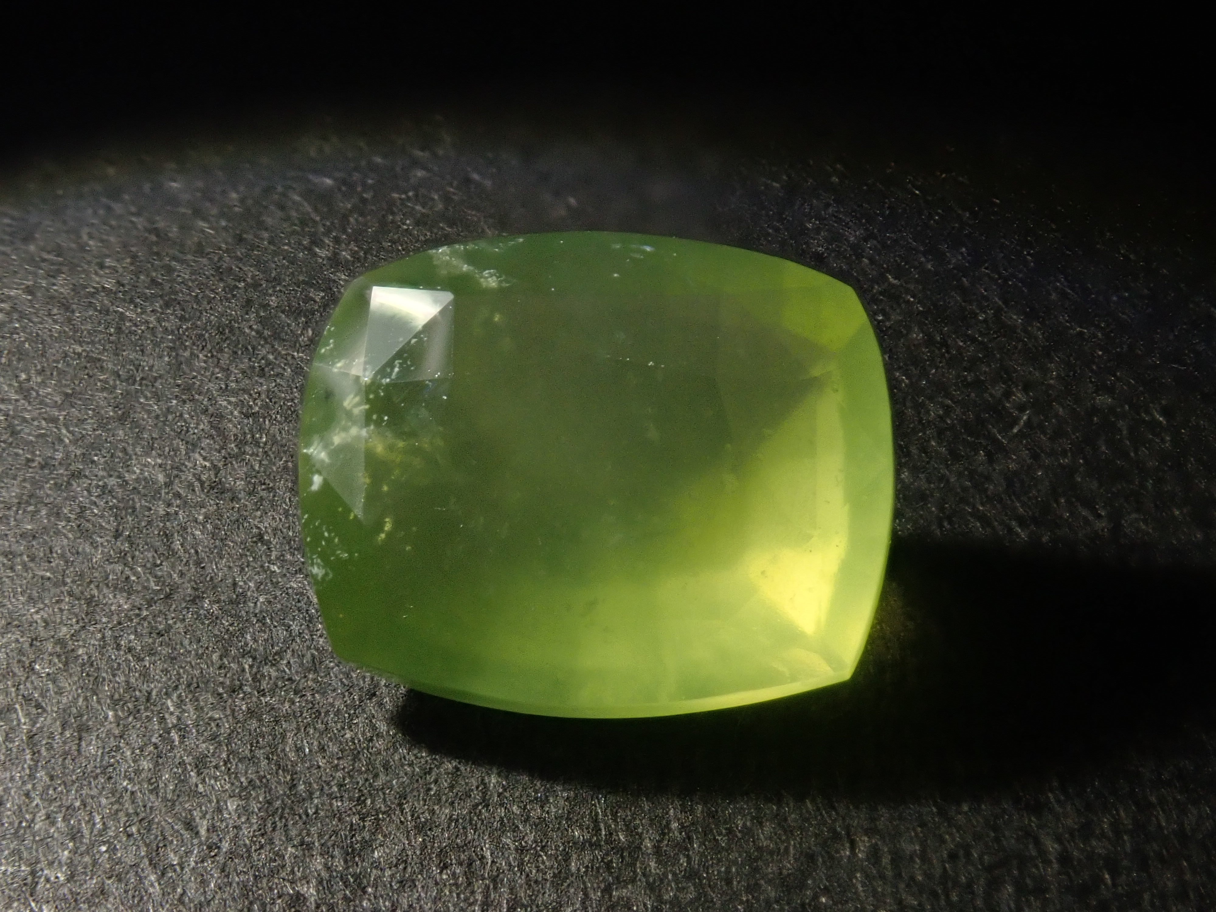 綠蛋白石也被稱為“讚美蛋白石”或“金蛋白石”。該名稱源自於其與綠玉髓的相似性。綠玉髓和綠蛋白石的顏色似乎都是由於含有微量鎳而產生的,因此它們很相似可能是很自然的。 這是產自亞馬遜的刻面綠色蛋白石,由斯里蘭卡拋光師 Sanjay 切割。