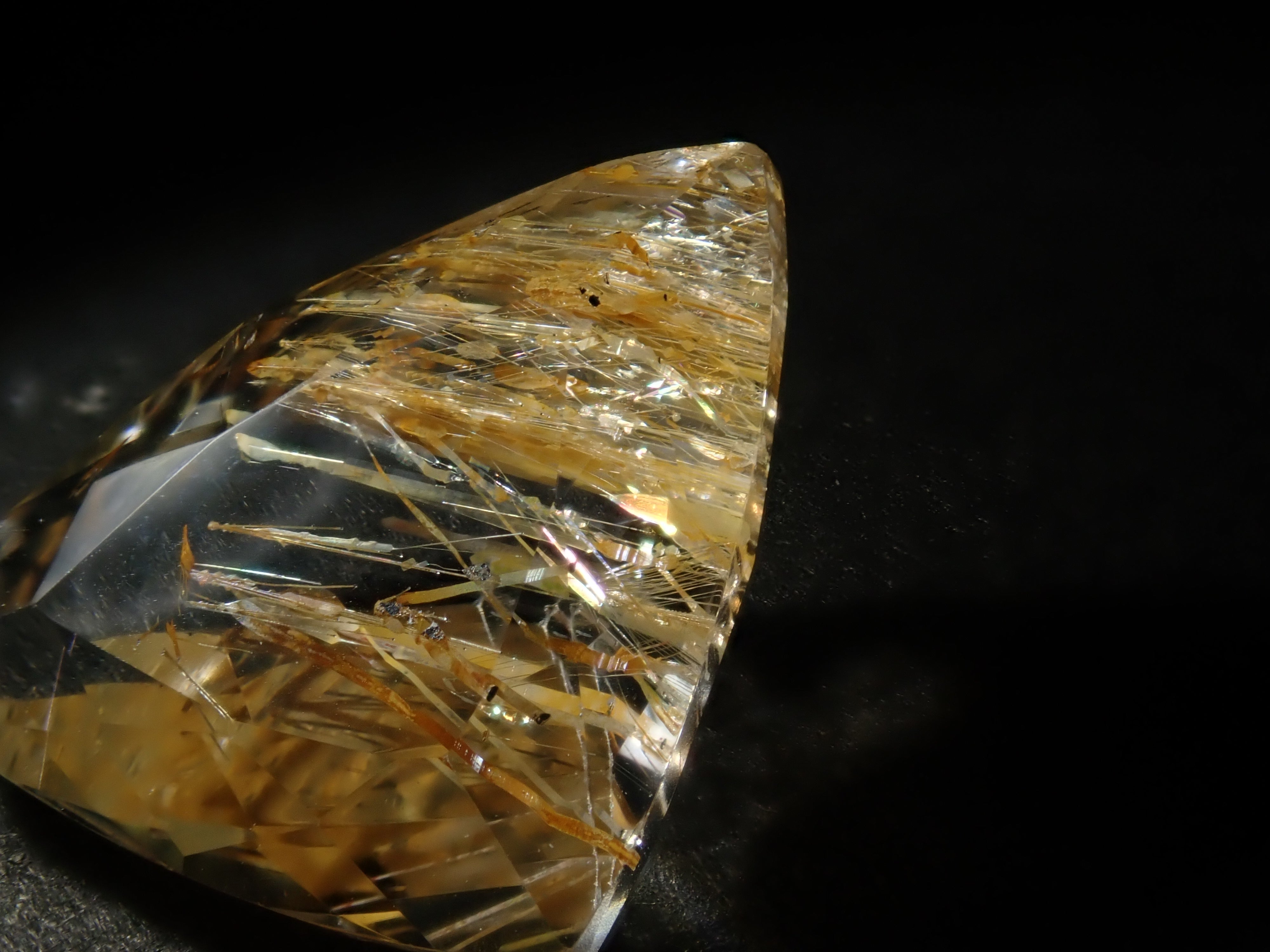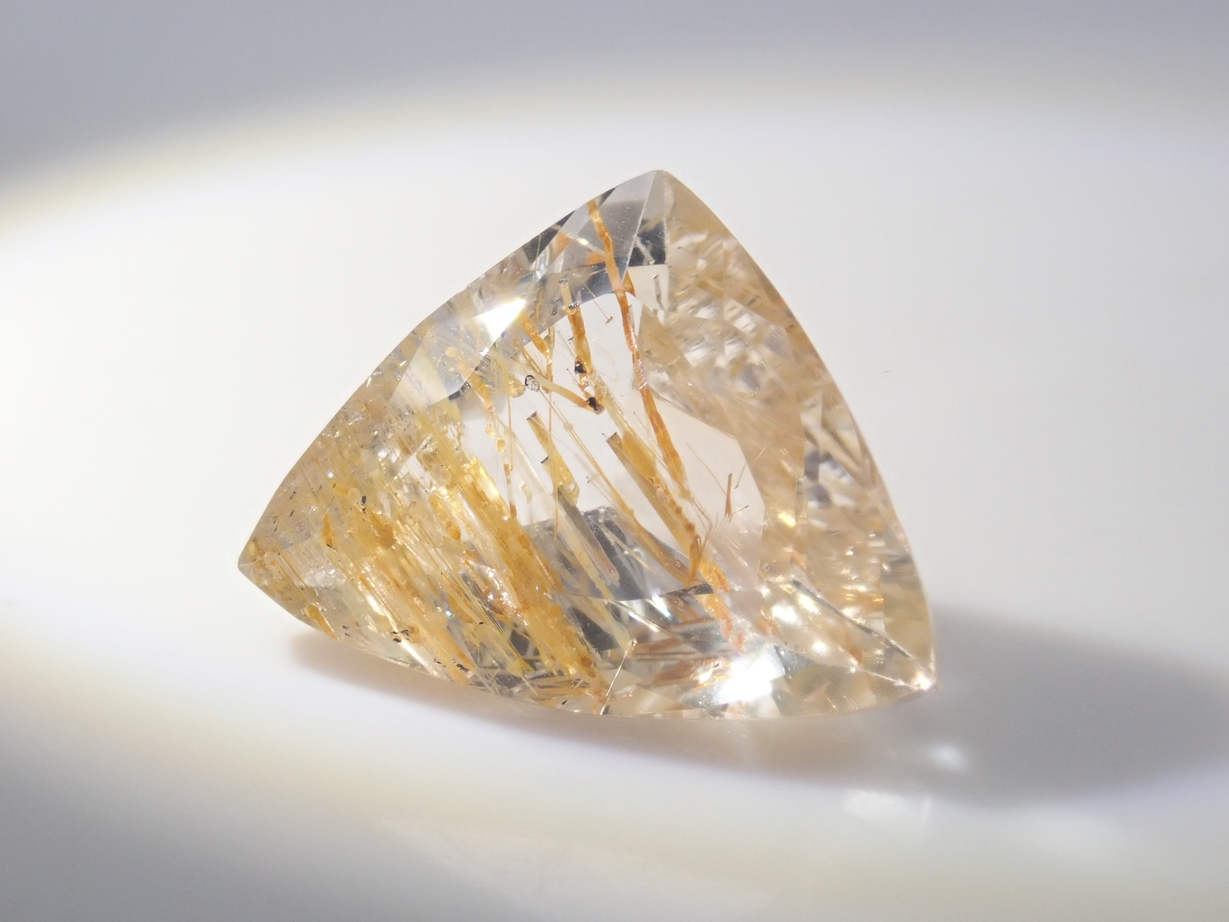 針托黃玉,可依角度欣賞彩虹。