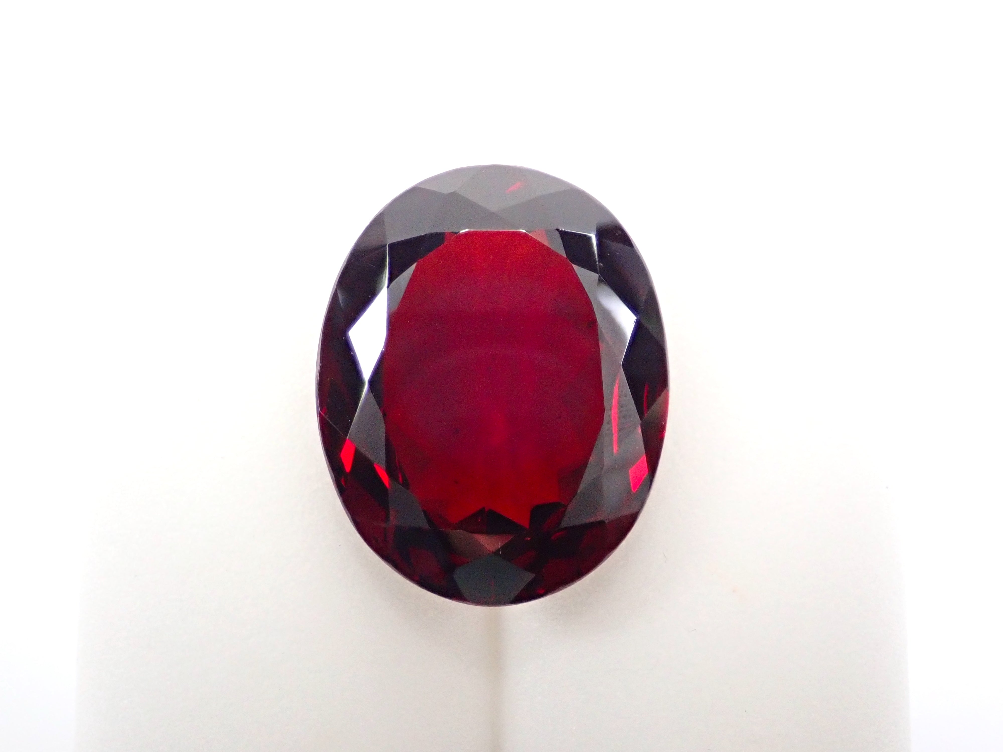 石榴石是著名的一月誕生石。事實上,它的顏色多種多樣,包括紅色、黃色、橙色和綠色。其中最受歡迎的紅色石榴石是「鐵鋁榴石」。它的特徵是深紅色。這顆34克拉的大尺寸鐵鋁榴石並不常見。