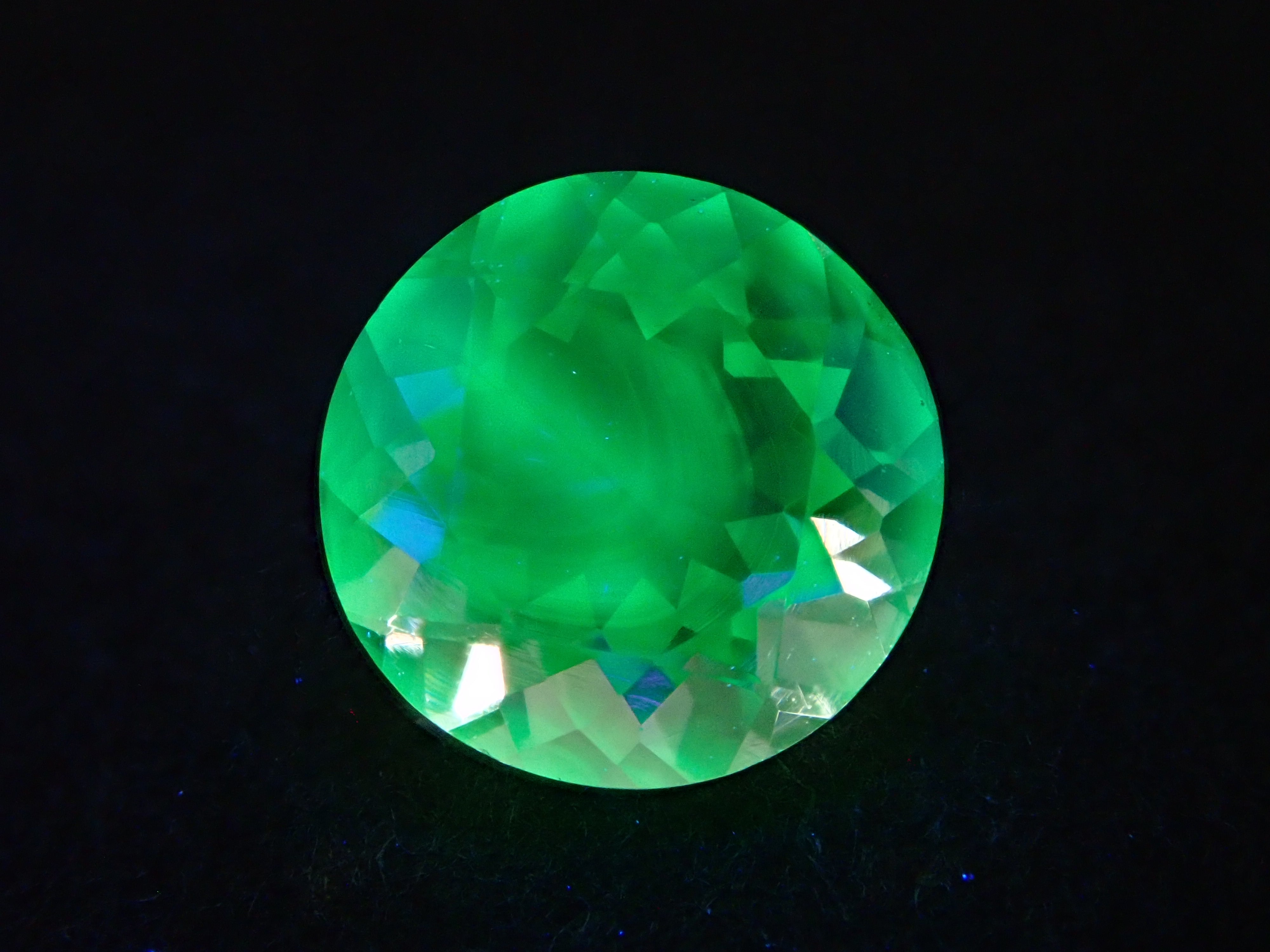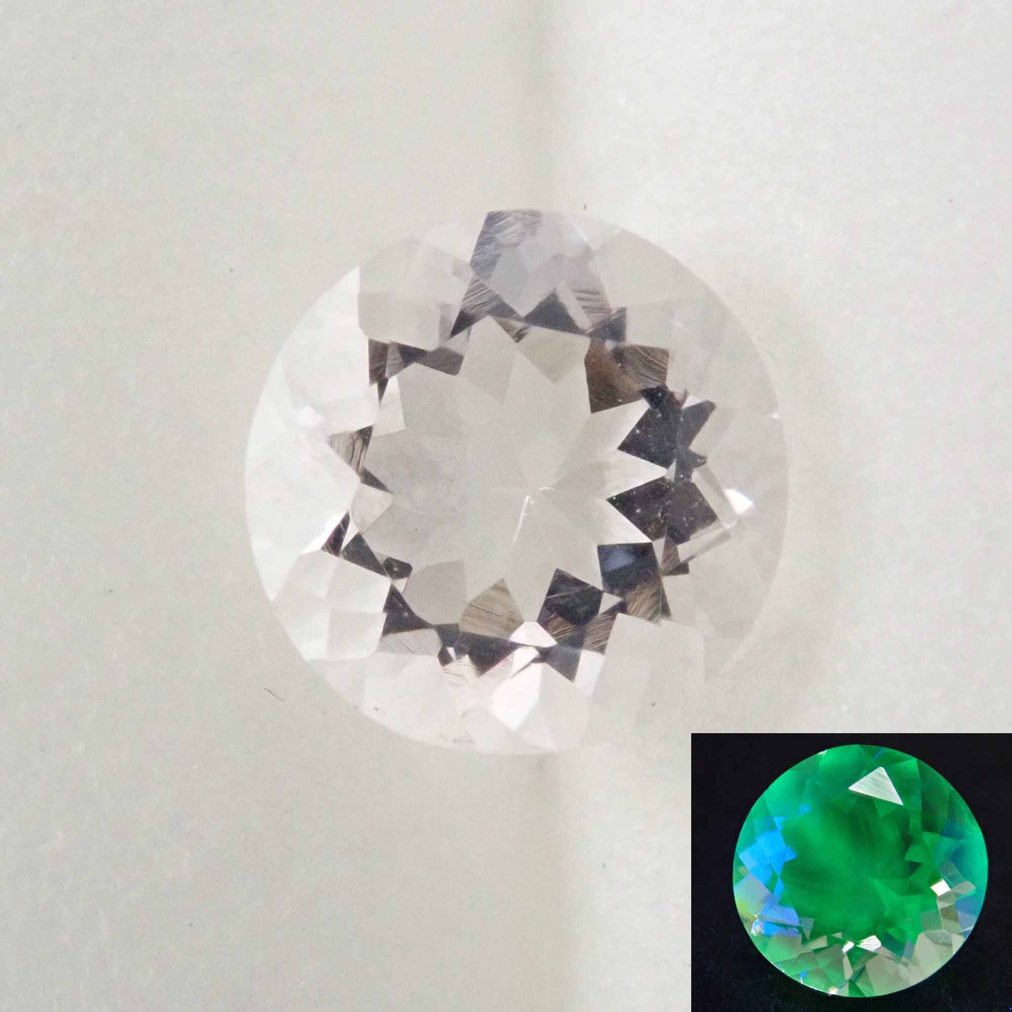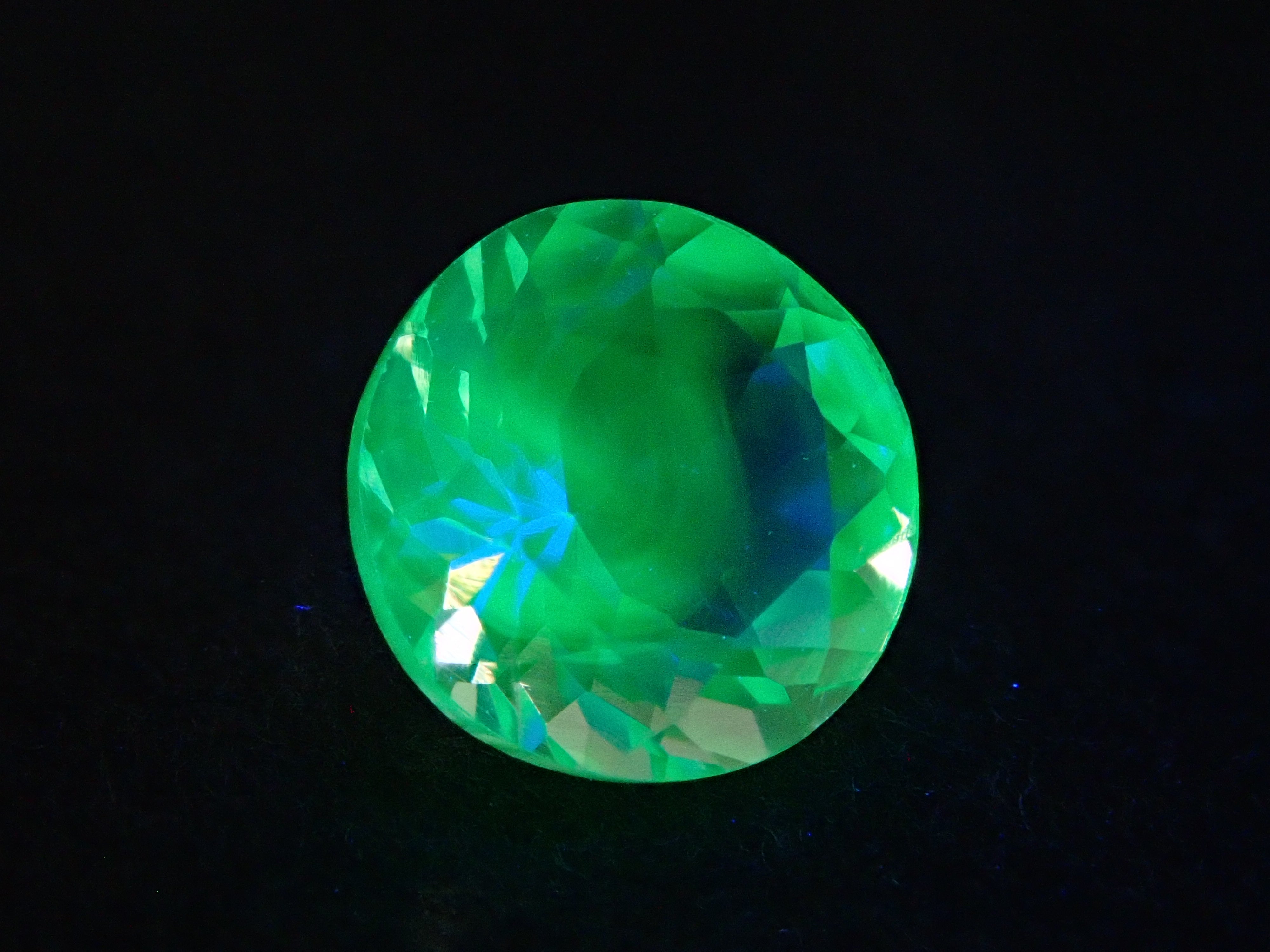 透明蛋白石在黑光下會發出薄荷綠的螢光。它是一種稀有寶石。顧名思義,它在礦物學上屬於蛋白石家族,但沒有變色現象。請使用黑光燈欣賞螢光。