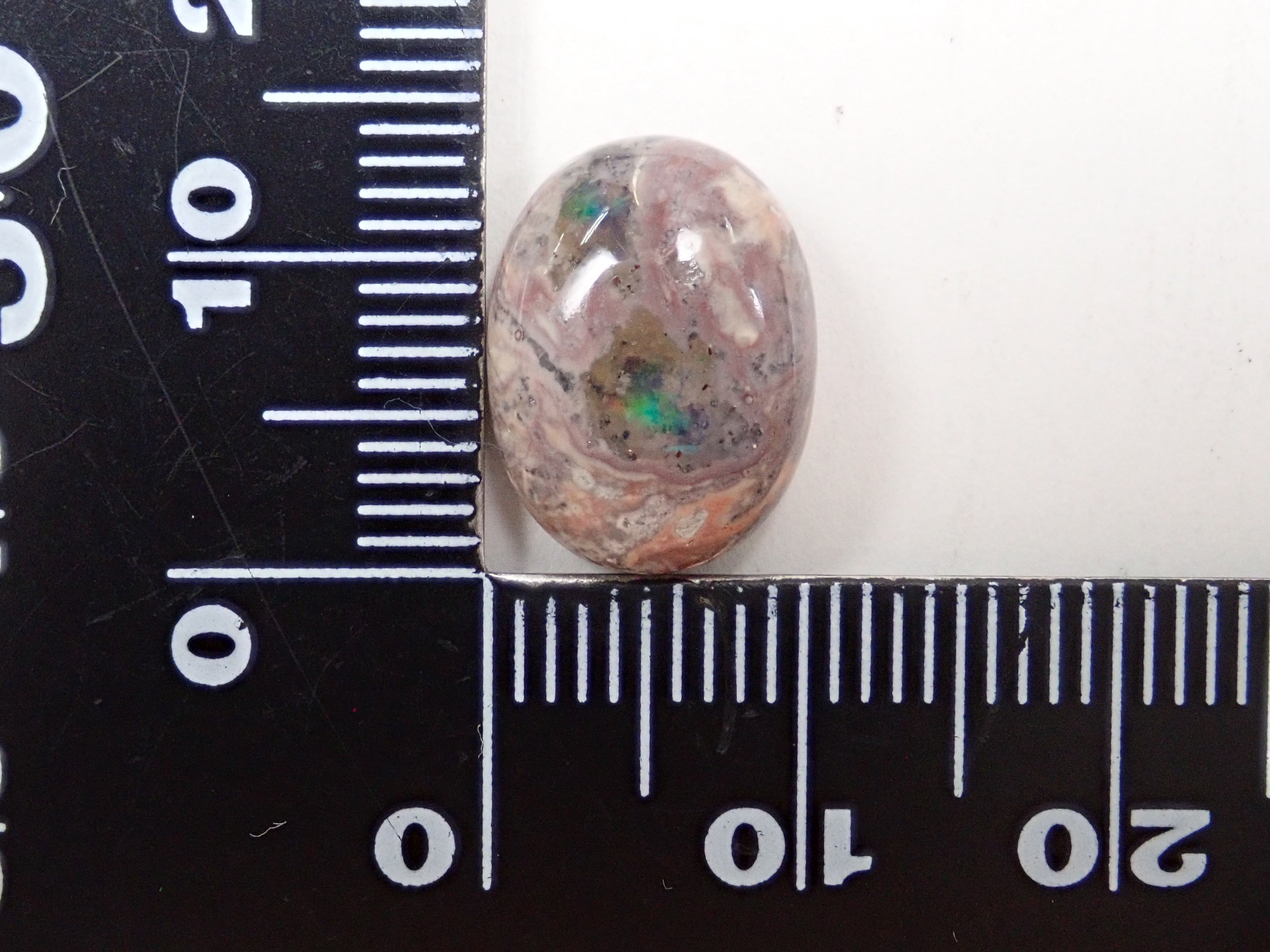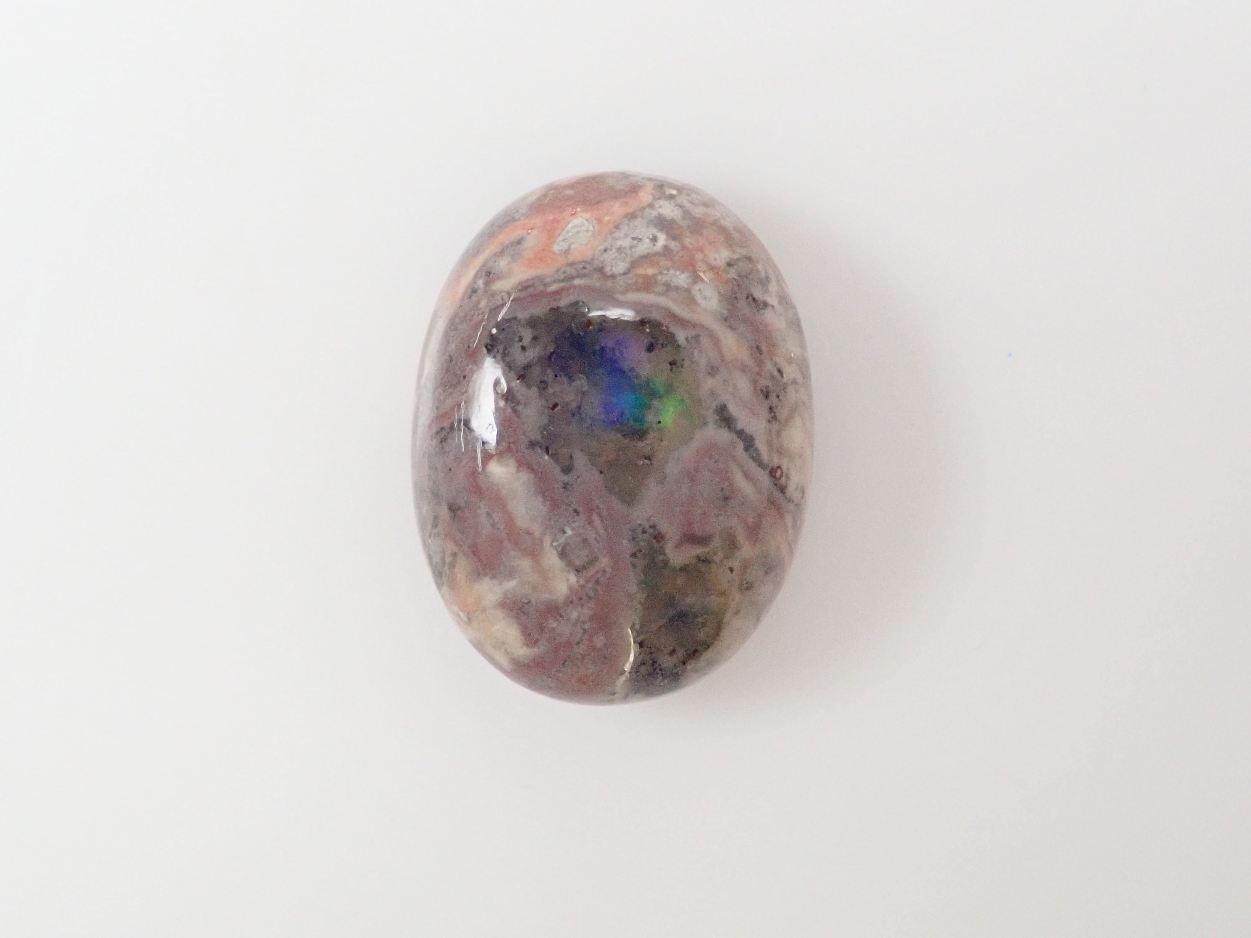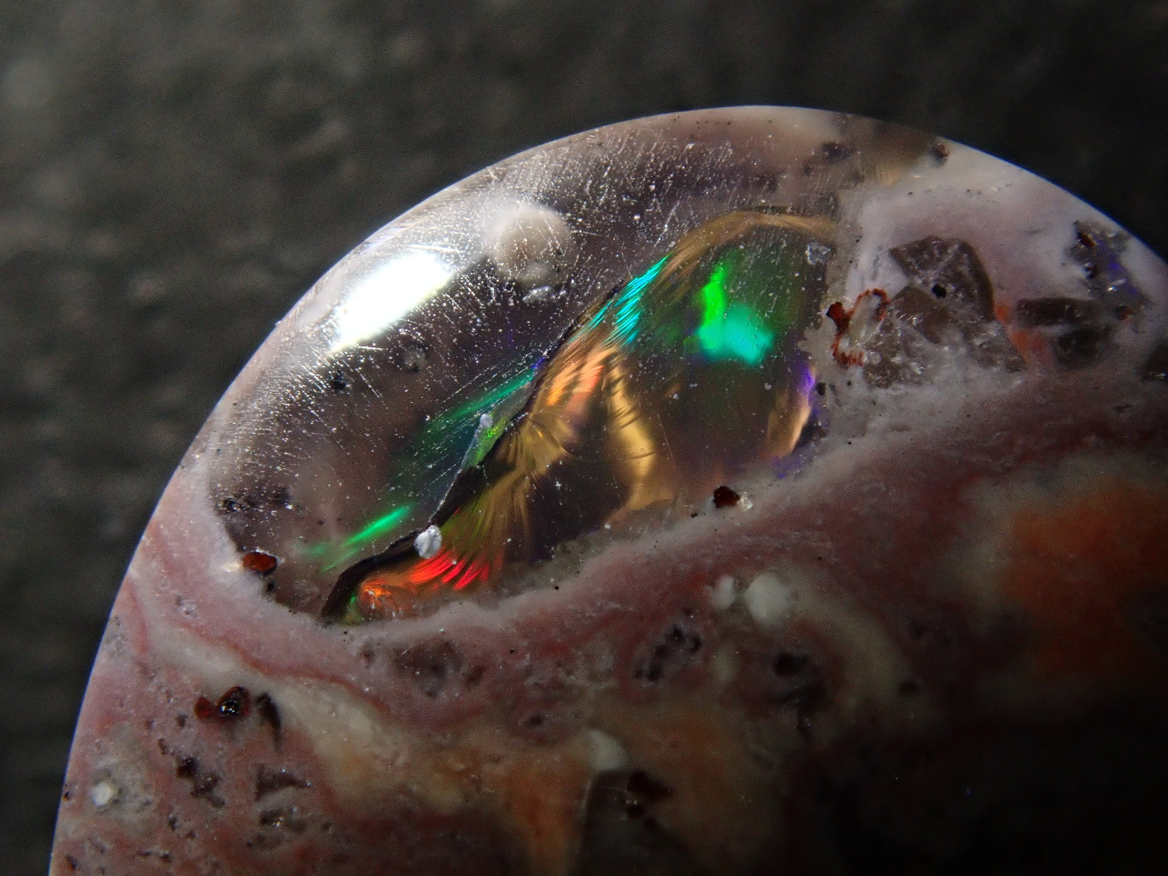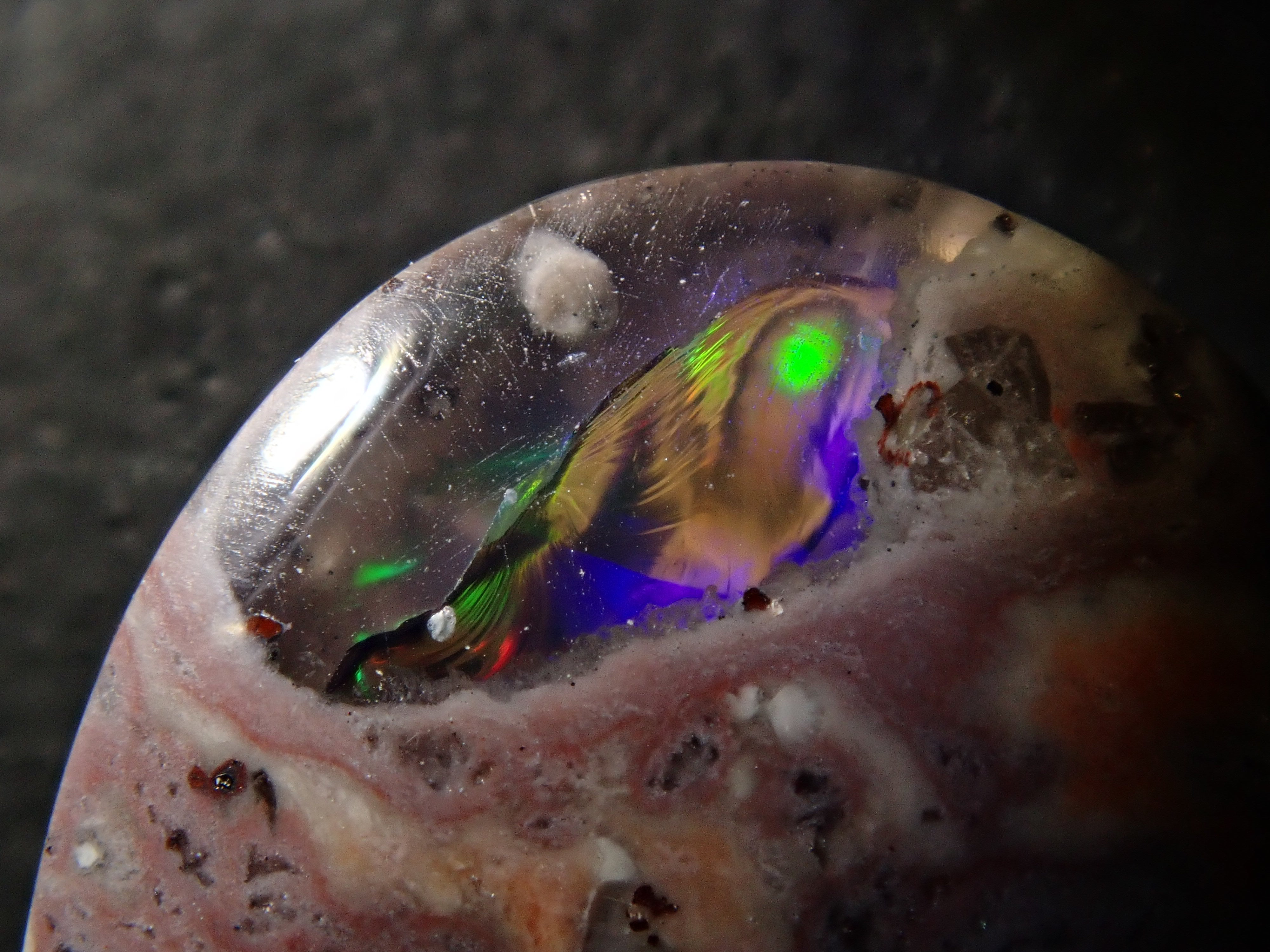 Cantera 蛋白石原本是一種有許多環的寶石。照片是使用筆燈拍攝的。