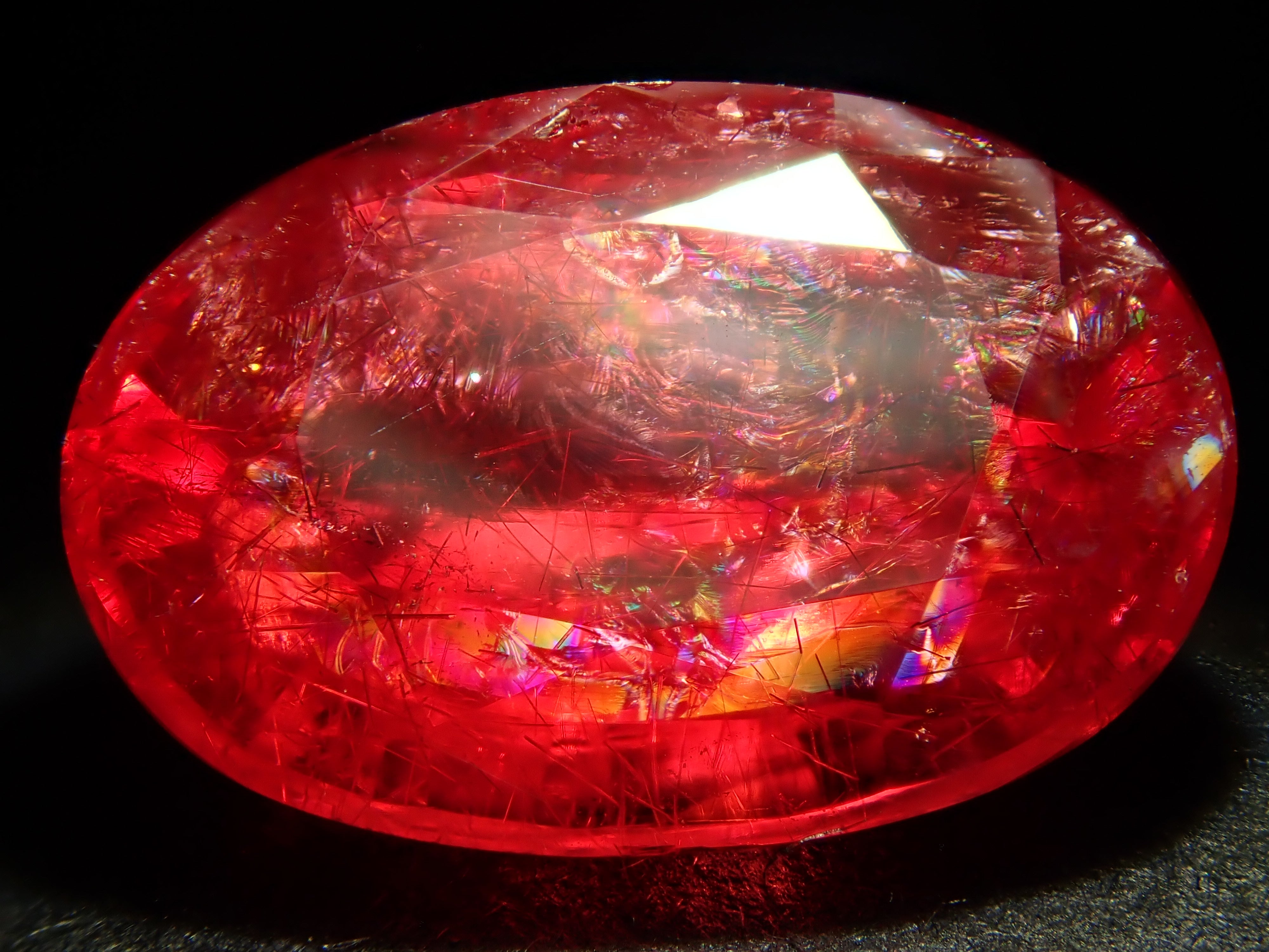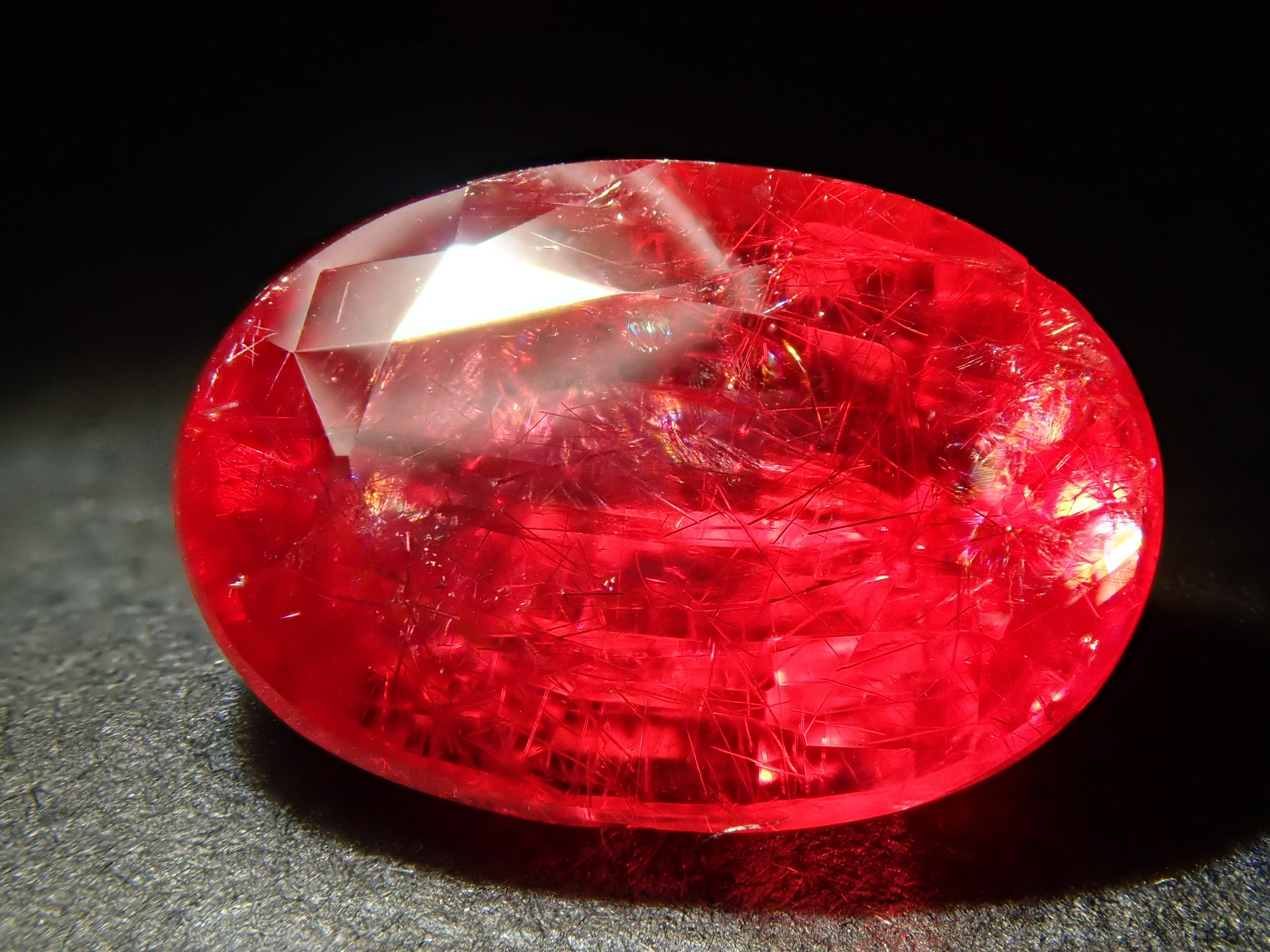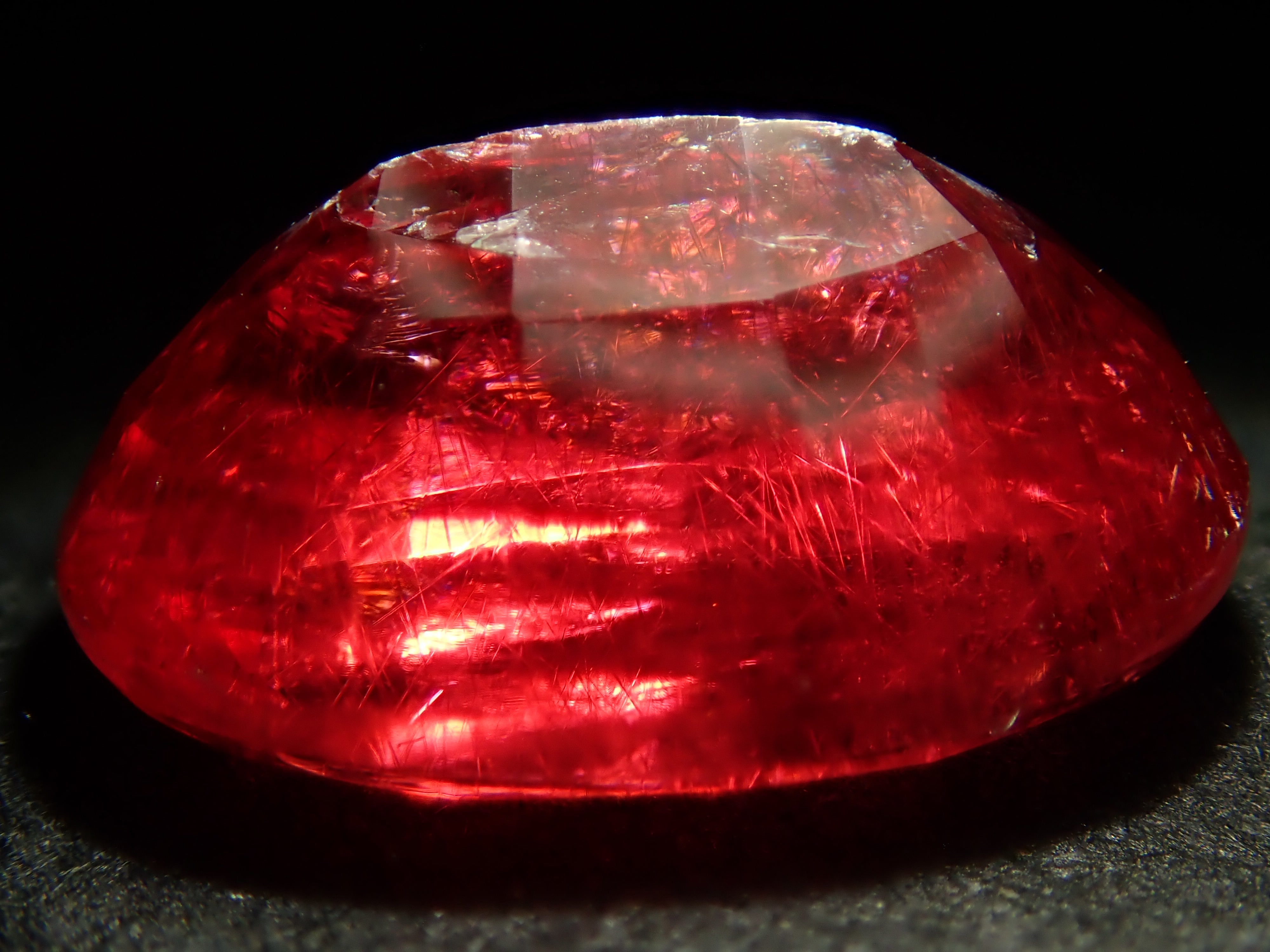 薔薇輝石,一種玫瑰色寶石。沉穩的粉紅色和紅色很有吸引力。市面上大多數的薔薇輝石都是不透明的,被視為價格實惠的能量寶石和珠子,但在極少數情況下,會開採出具有高透明度的寶石級薔薇輝石,這種情況被視為寶石。這是巴西薔薇輝石,顏色品質特別高。