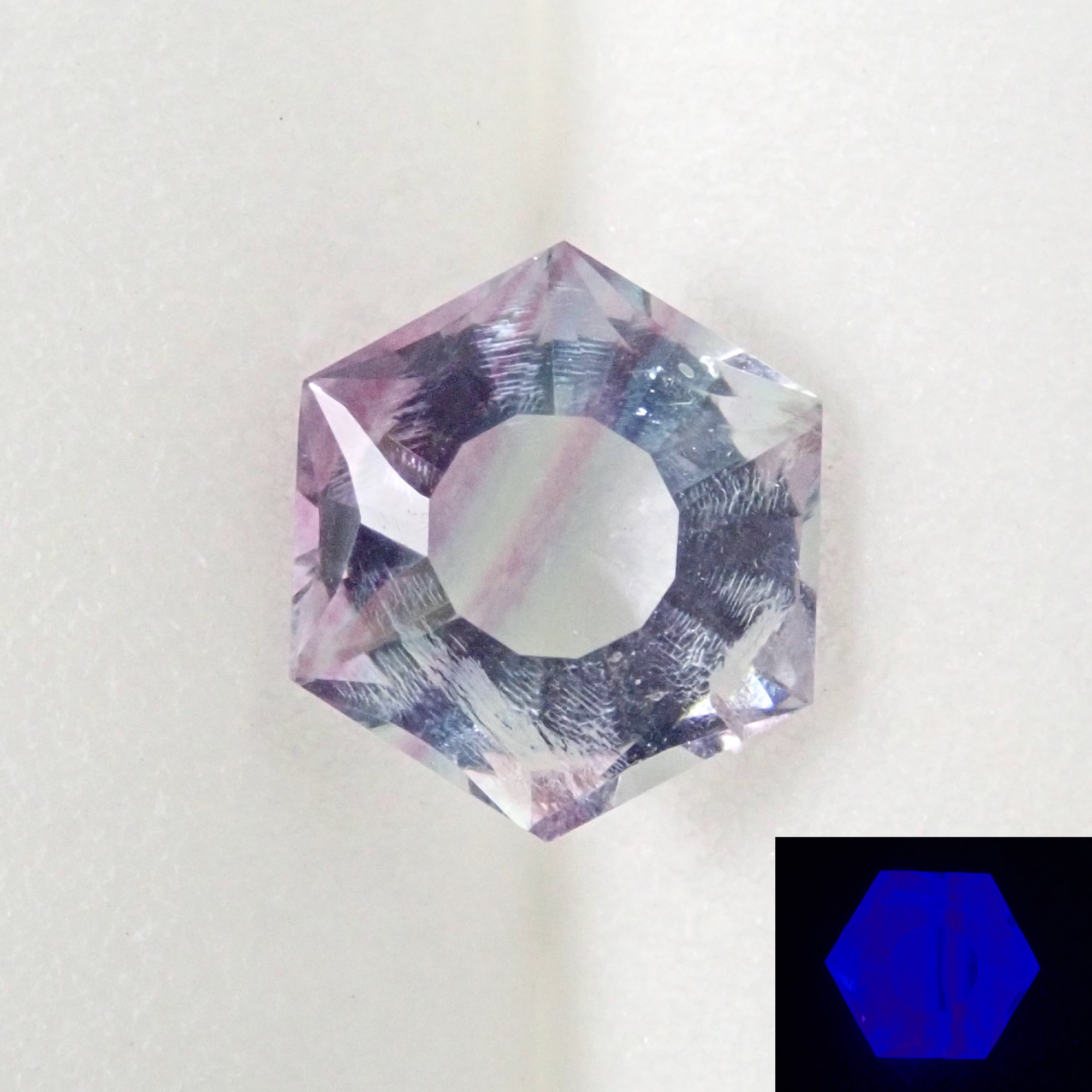 這是由斯里蘭卡拋光師 Sanjay 切割的中國螢石(UV 型)。
