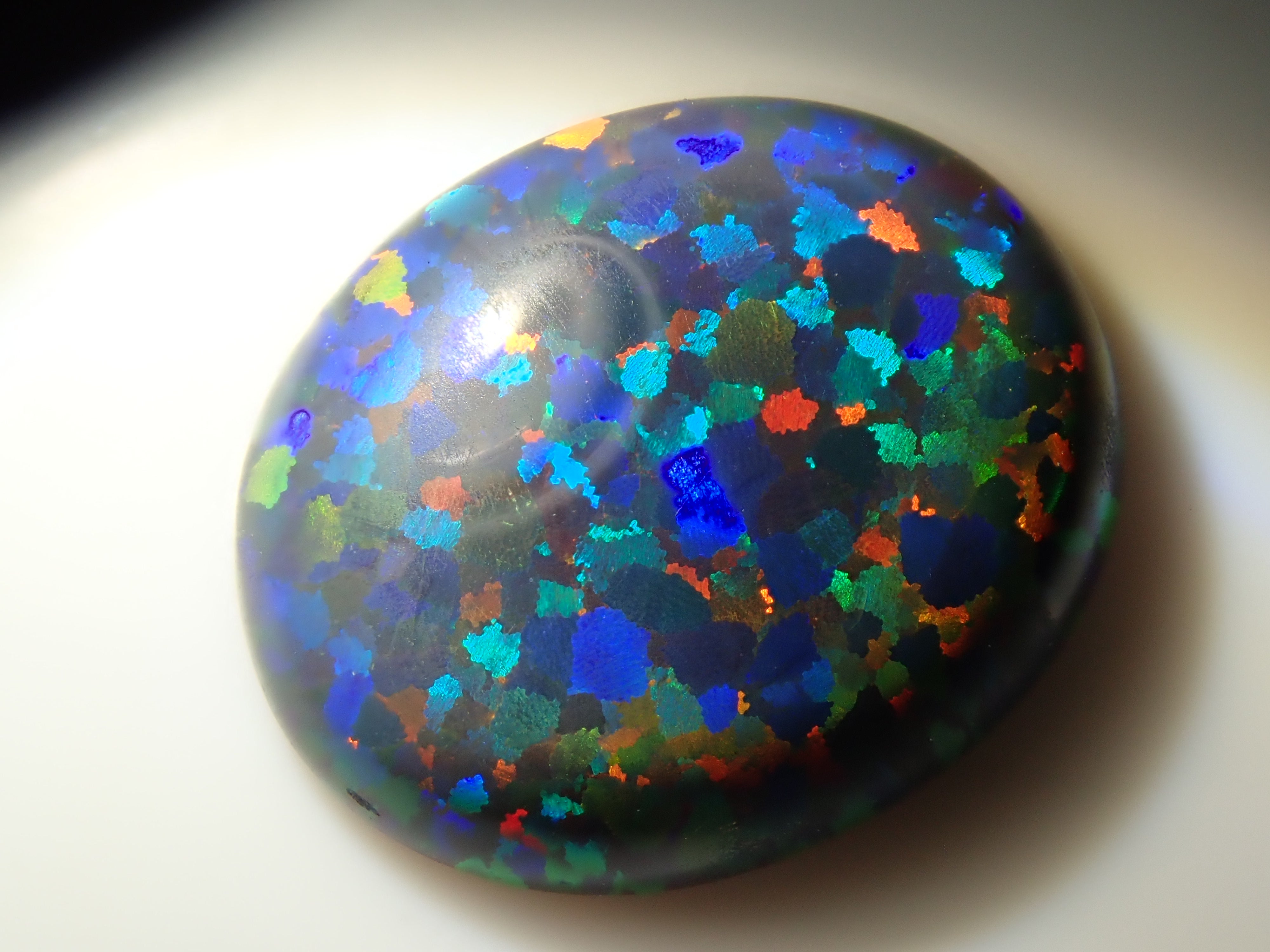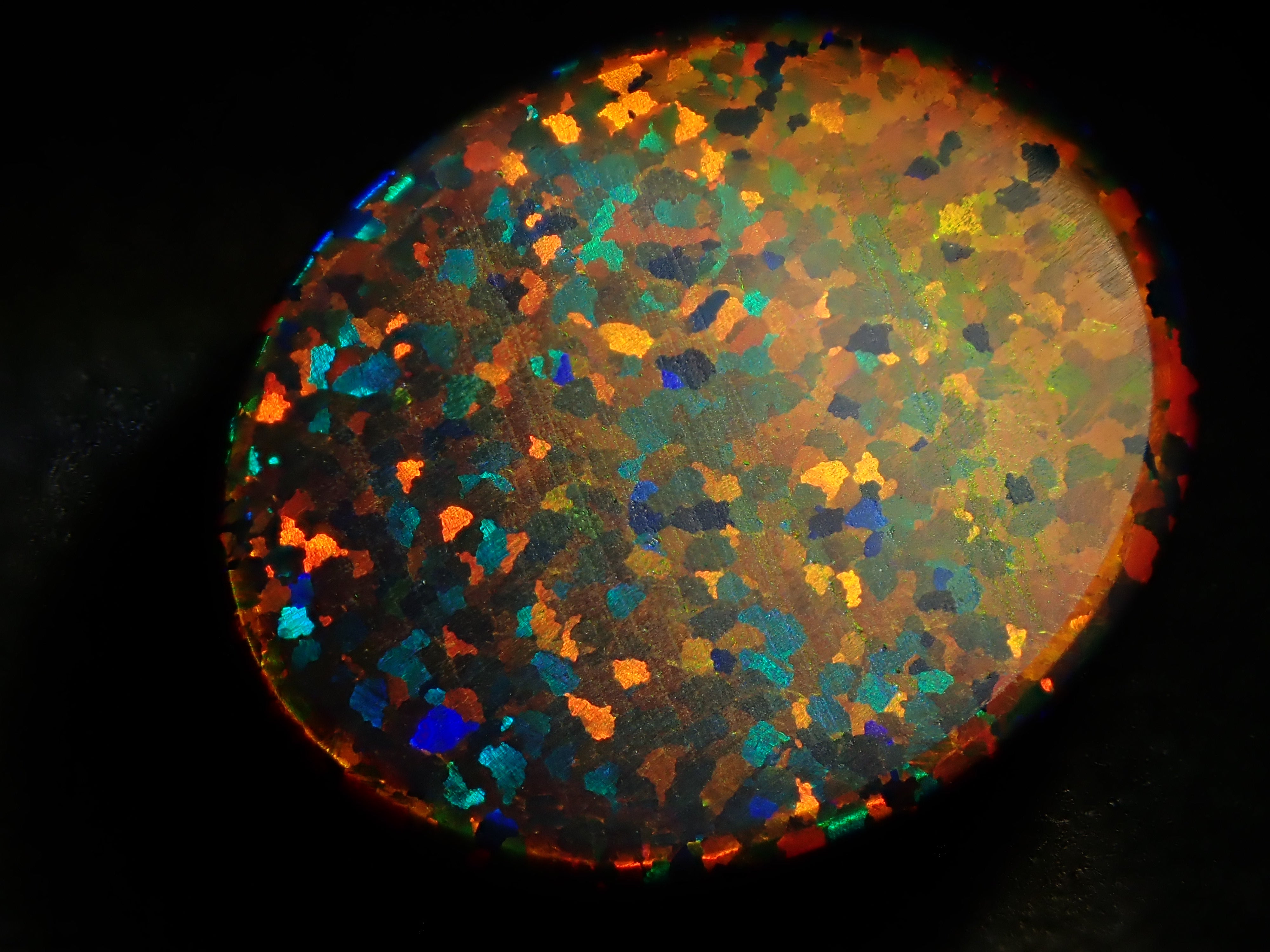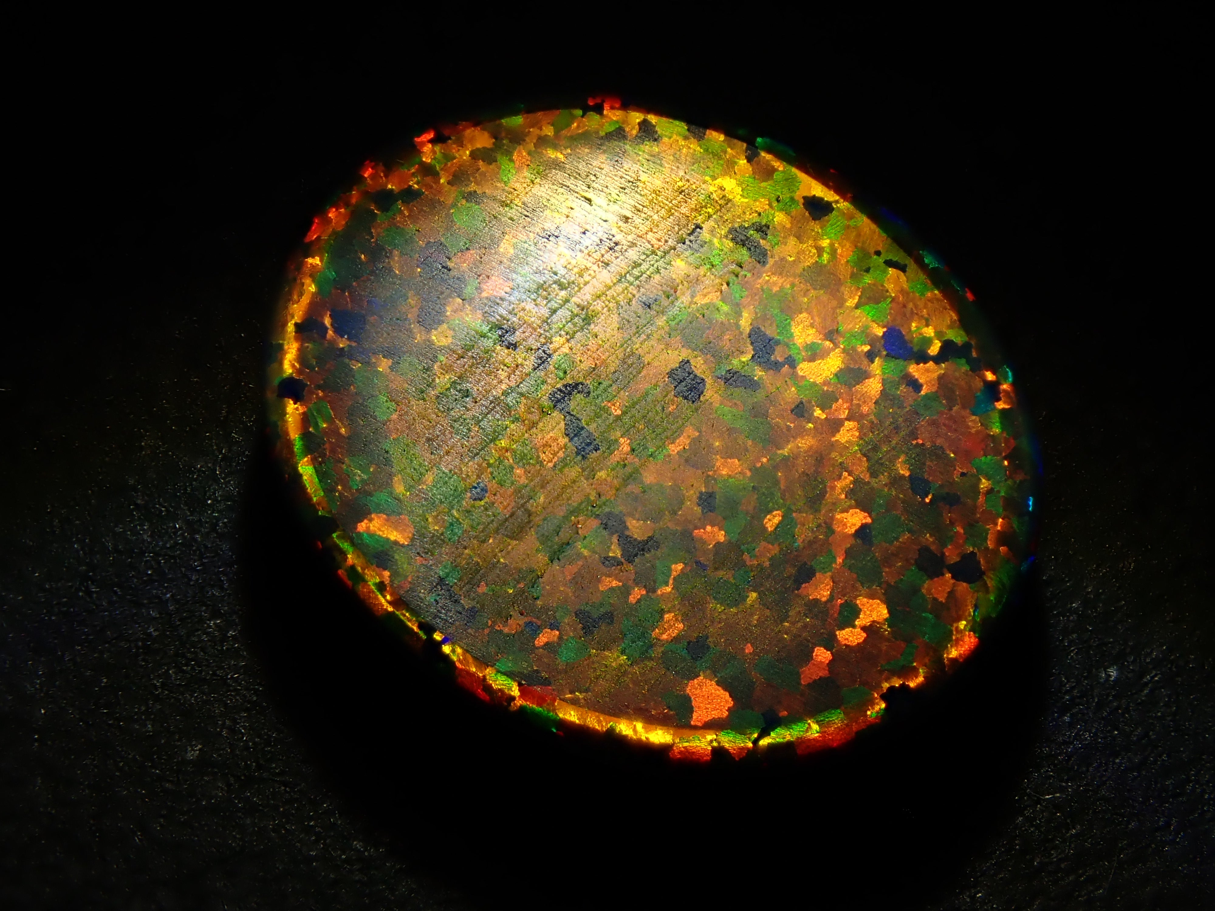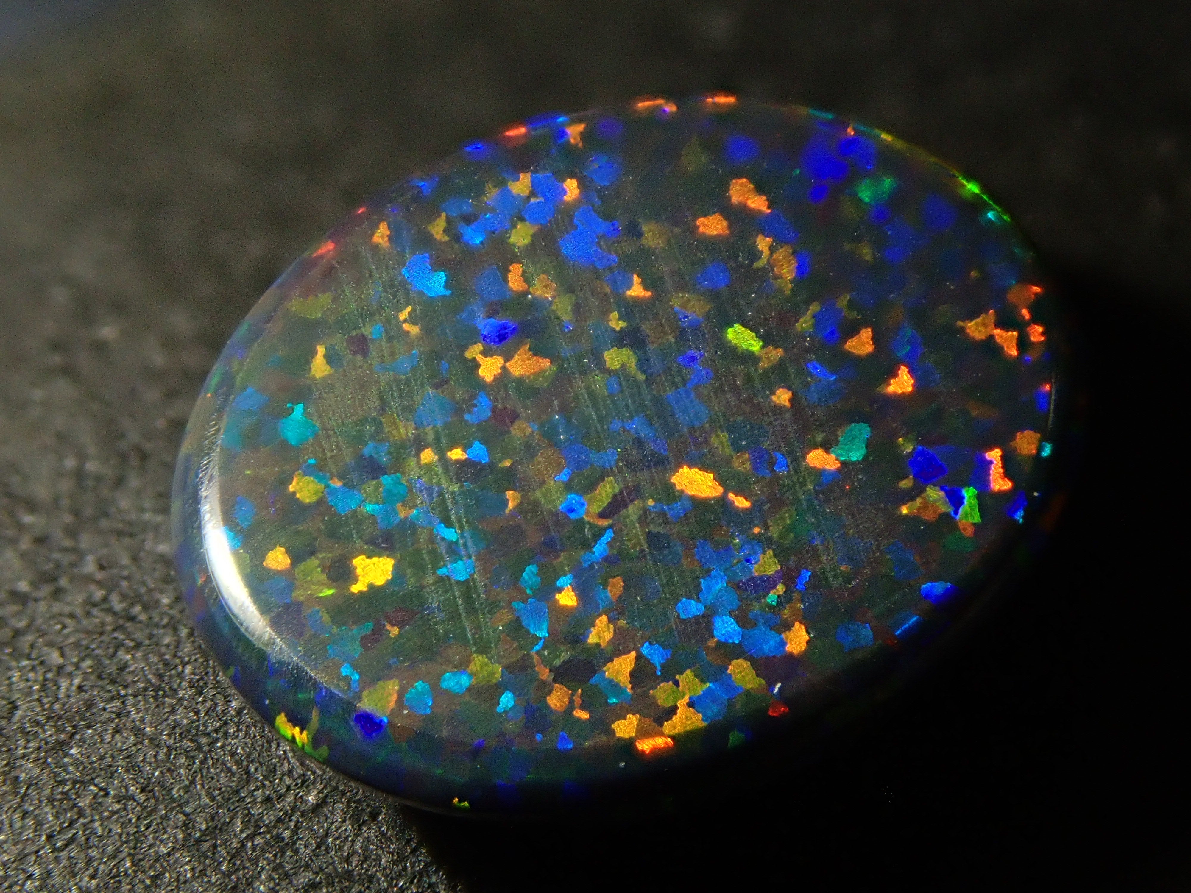 蛋白石是一種閃爍著彩虹色光芒的寶石。這是人工合成蛋白石,因此請購買用於研究或參考目的。照片是使用筆燈拍攝的。 這是一種合成蛋白石,在合成蛋白石中具有特別美麗的色彩。它是合成蛋白石中的優質鬆散蛋白石。