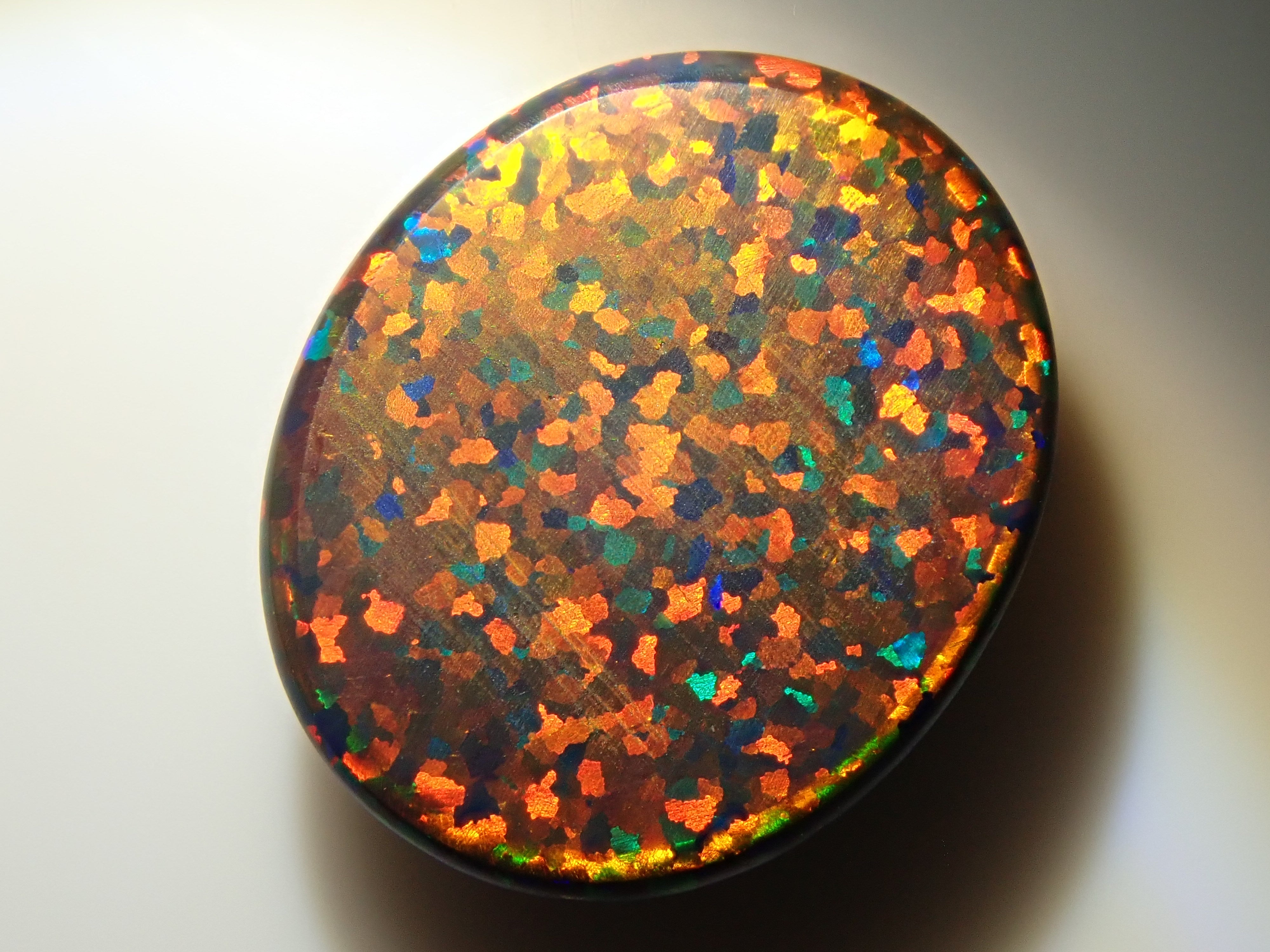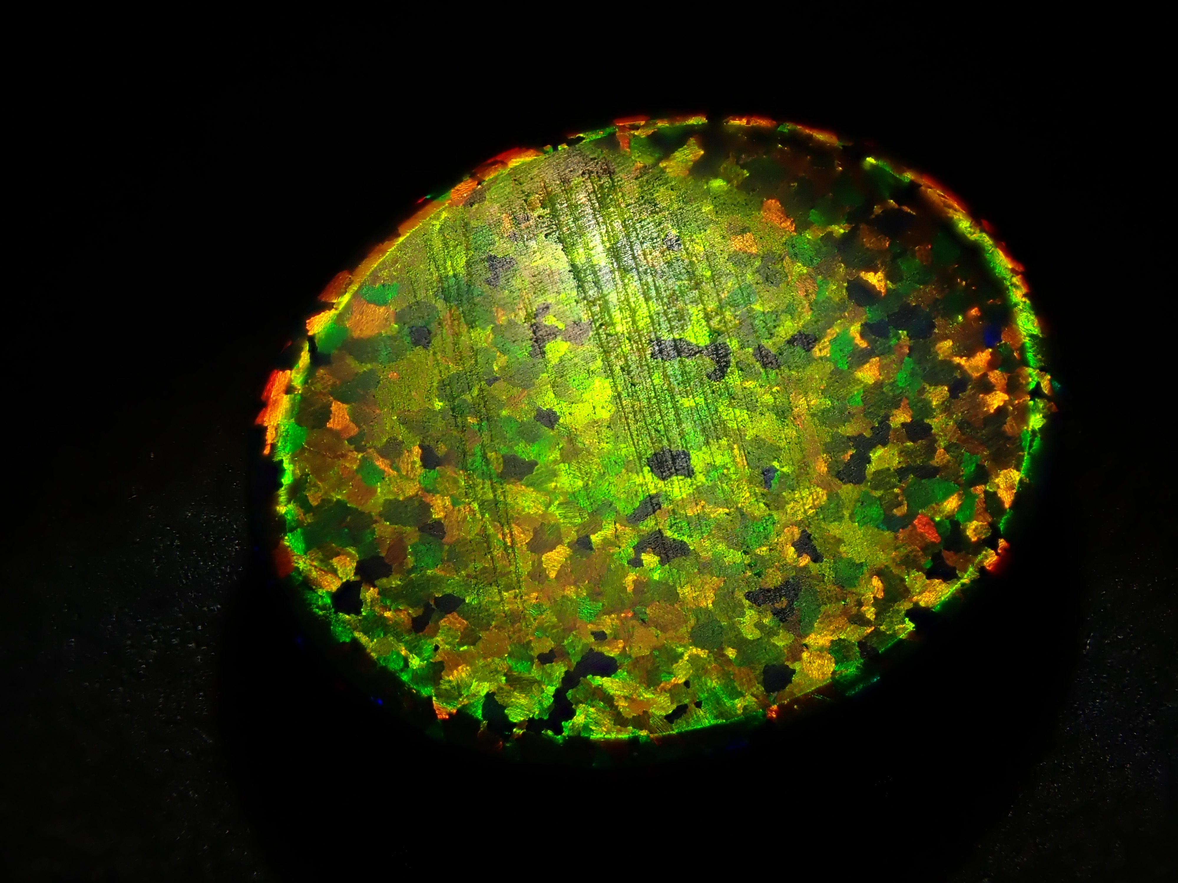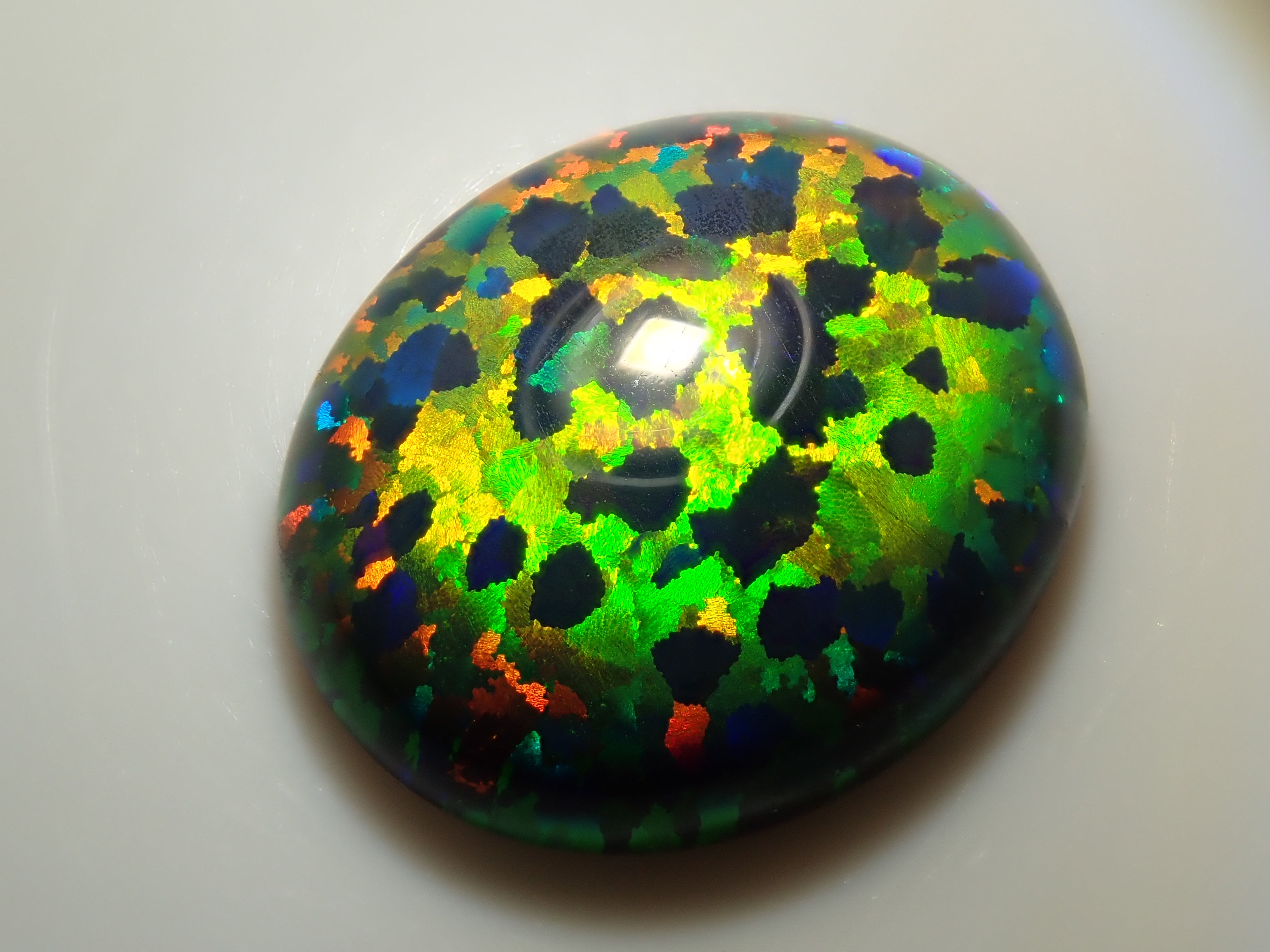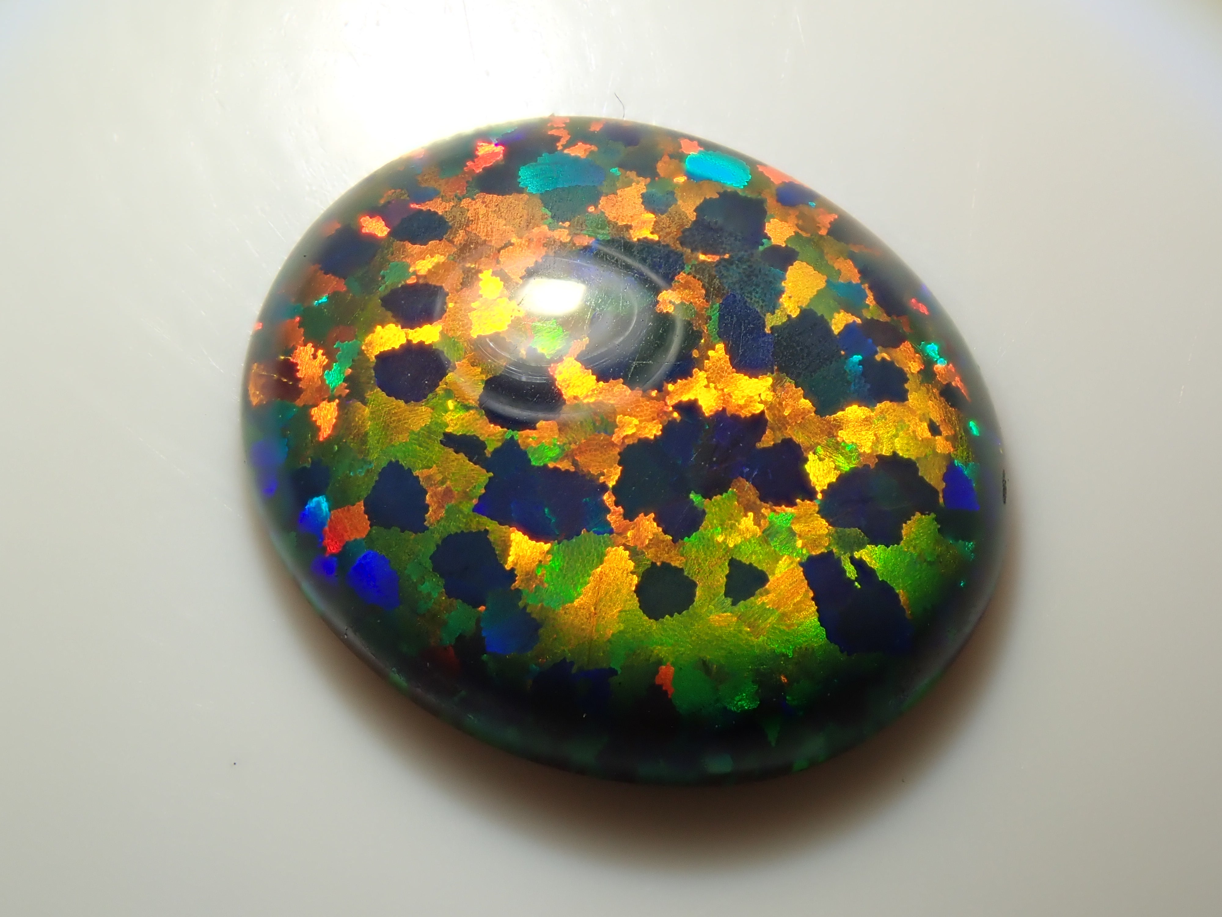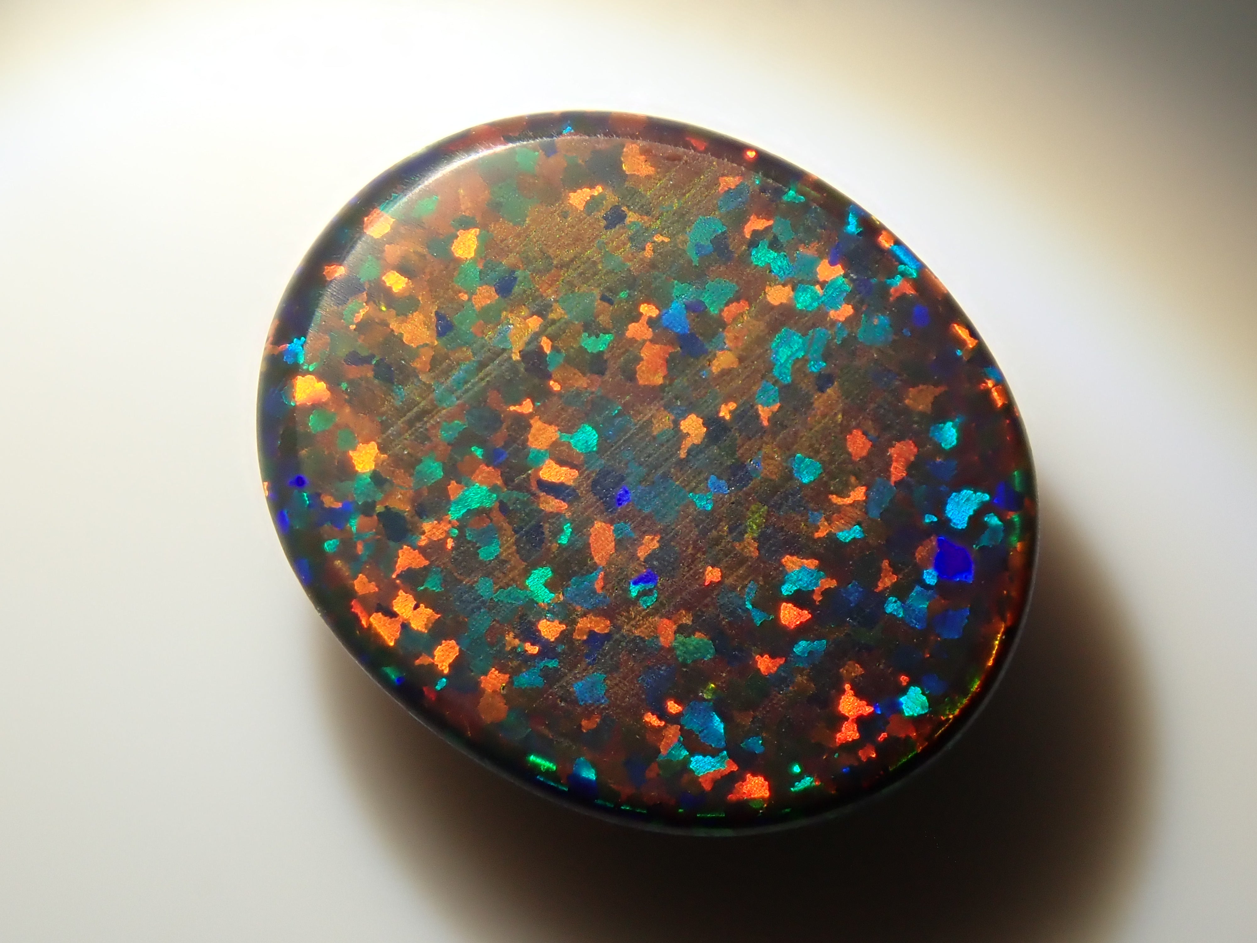 蛋白石是一種閃爍著彩虹色光芒的寶石。這是人工合成蛋白石,因此請購買用於研究或參考目的。照片是使用筆燈拍攝的。 這是一種合成蛋白石,在合成蛋白石中具有特別美麗的色彩。它是合成蛋白石中的優質鬆散蛋白石。