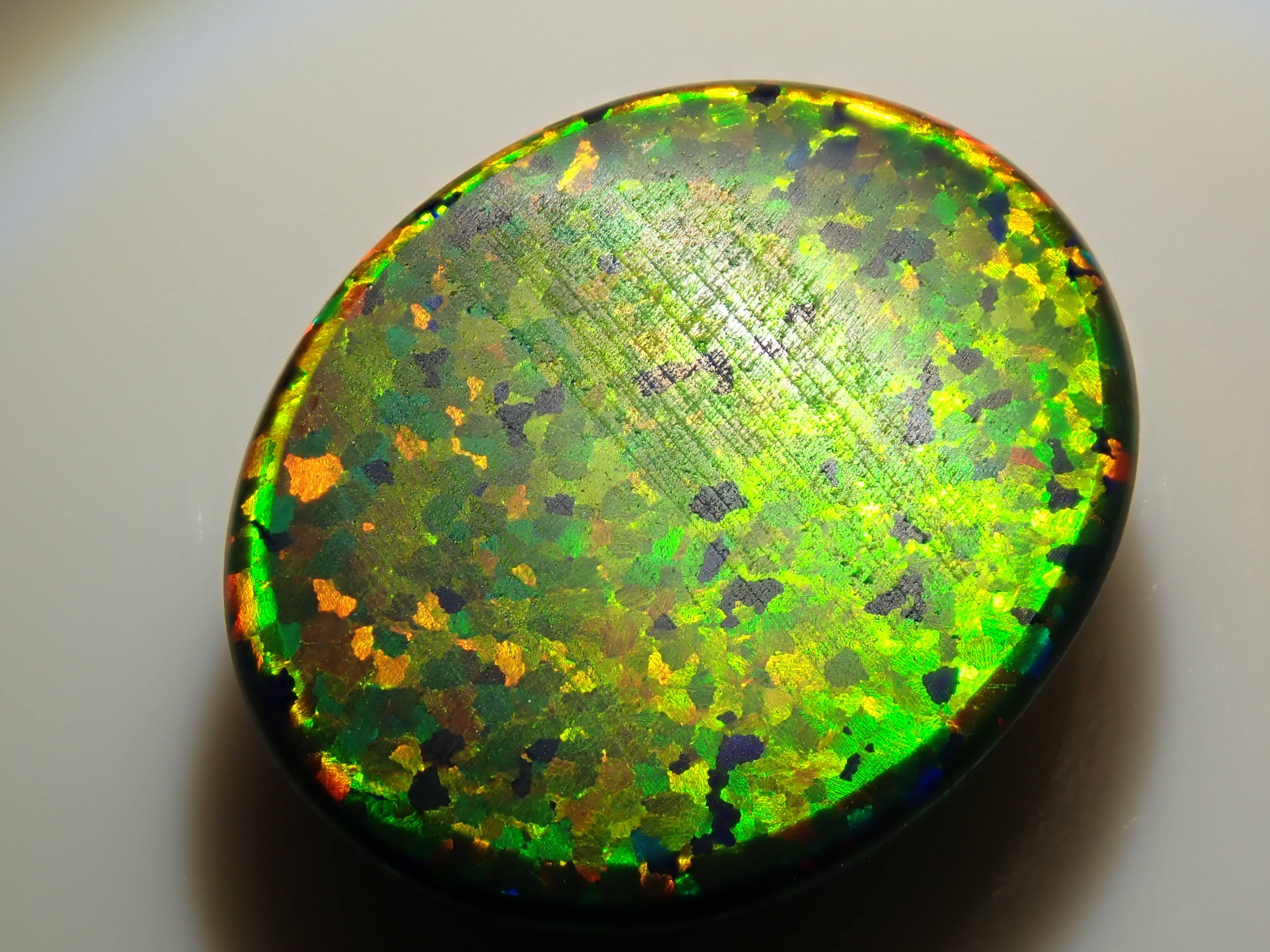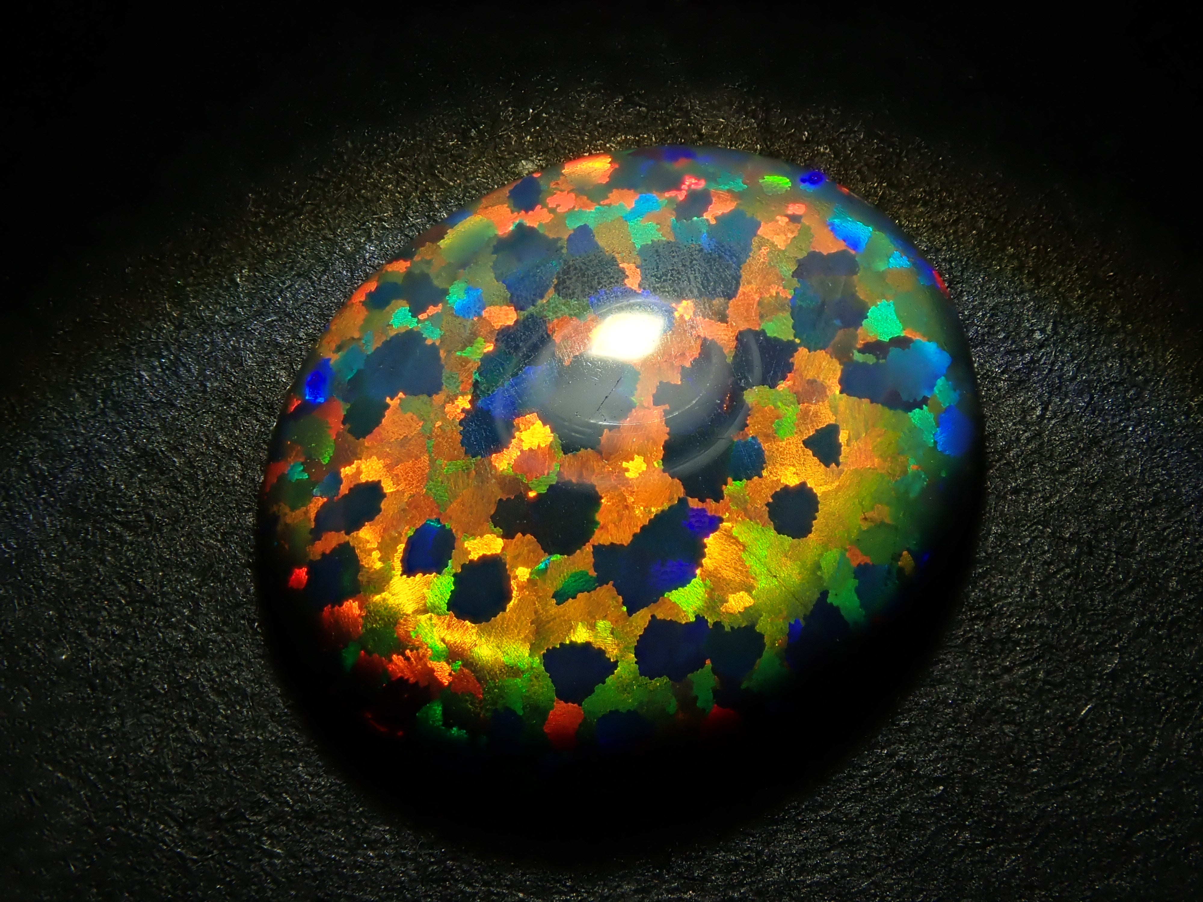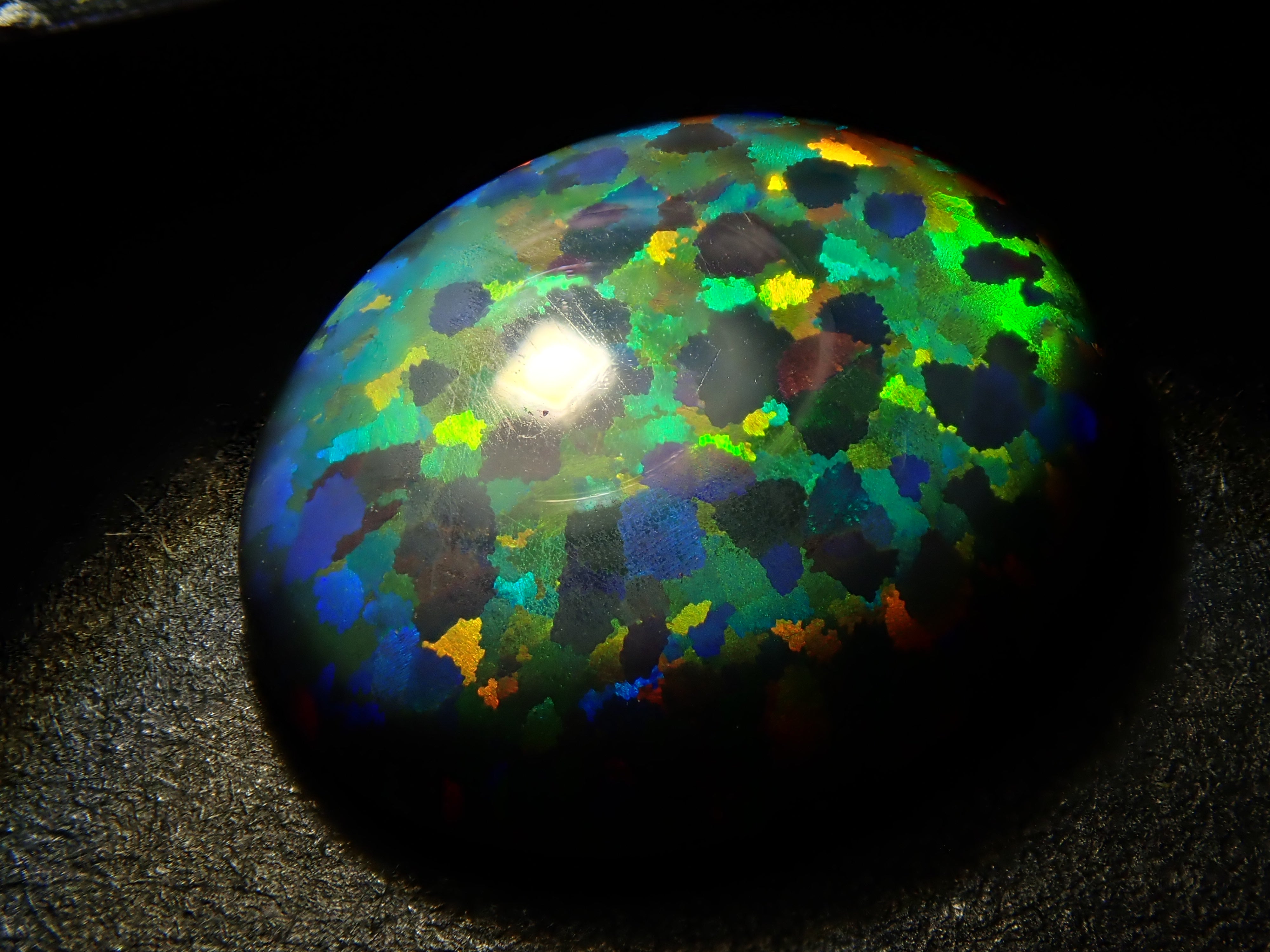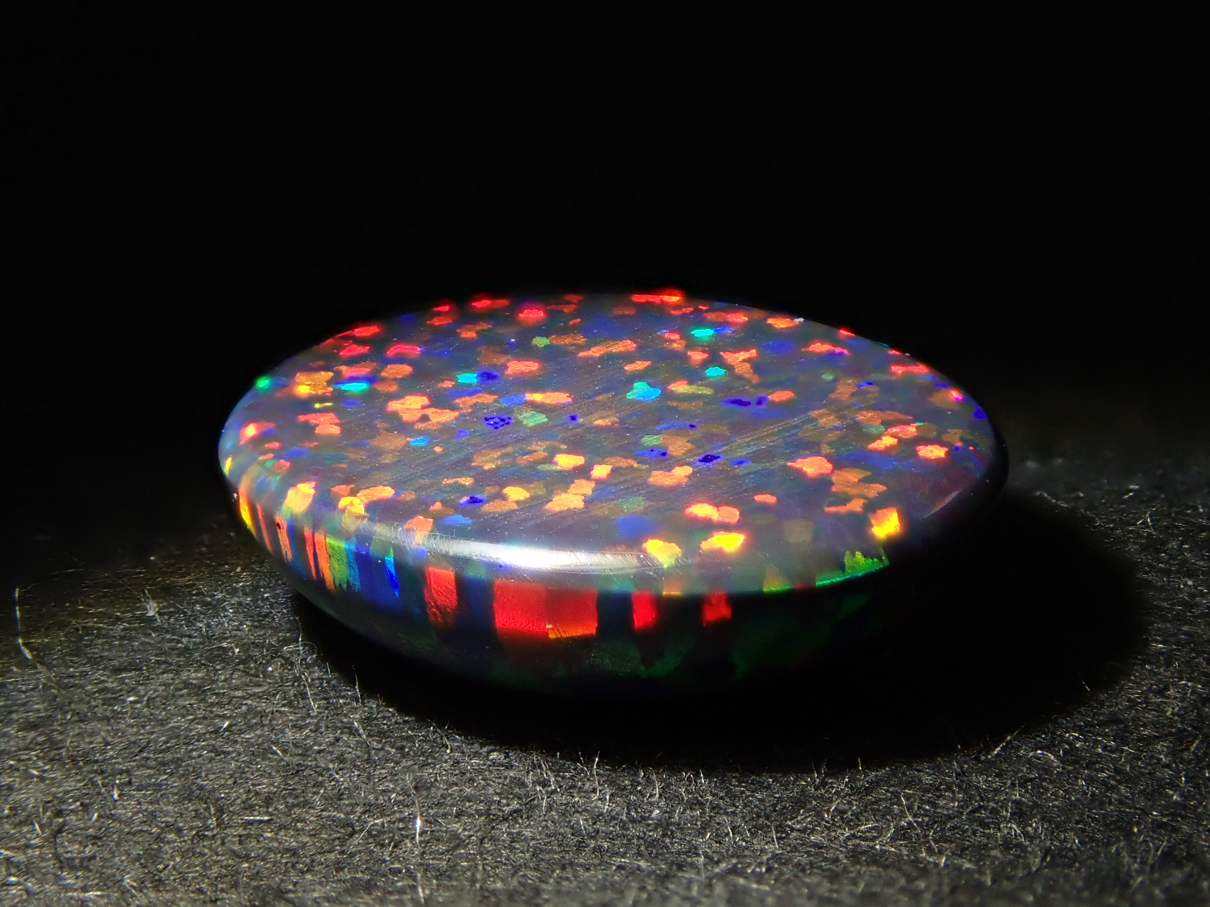 蛋白石是一種閃爍著彩虹色光芒的寶石。這是人工合成蛋白石,因此請購買用於研究或參考目的。照片是使用筆燈拍攝的。 這是一種合成蛋白石,在合成蛋白石中具有特別美麗的色彩。它是合成蛋白石中的優質鬆散蛋白石。