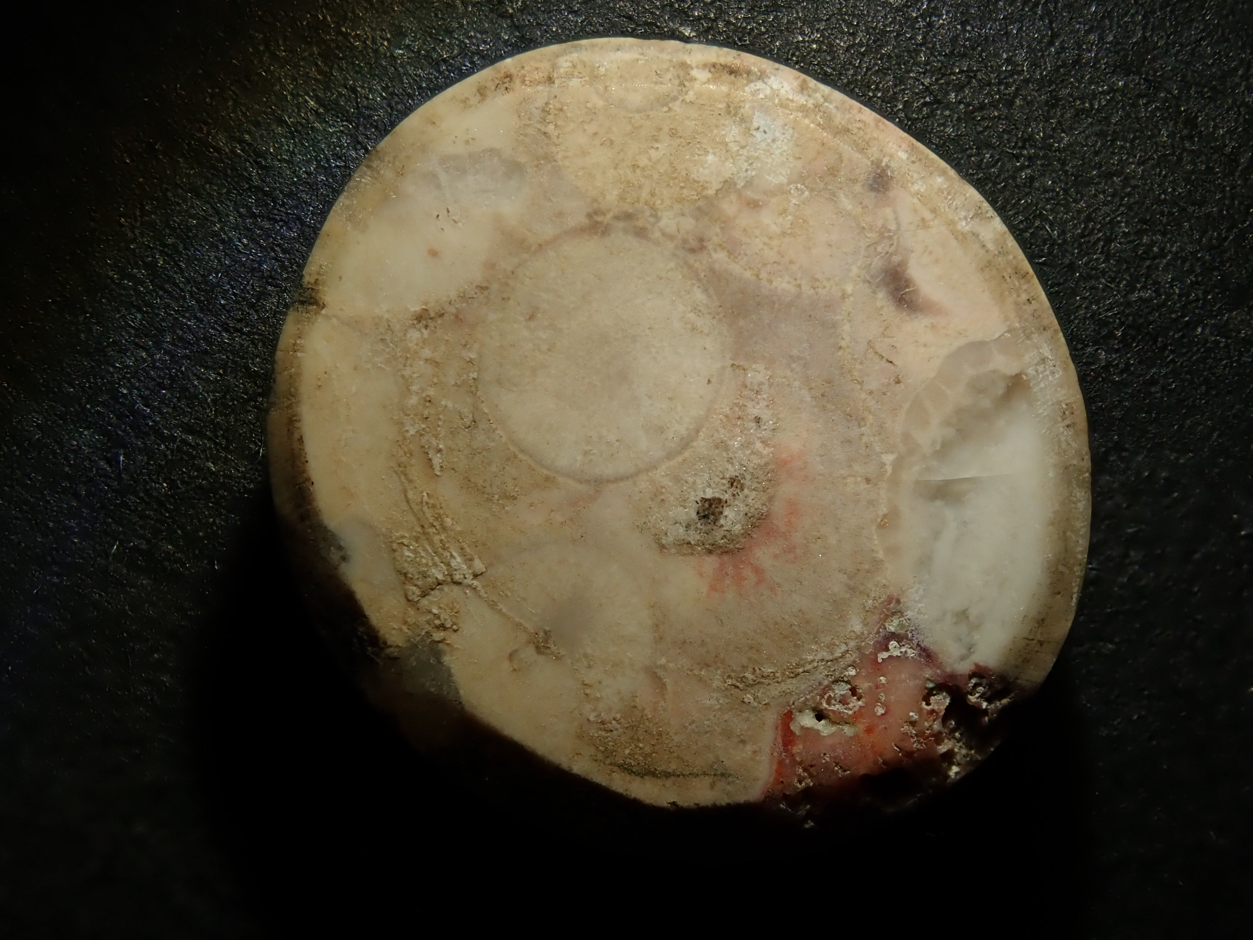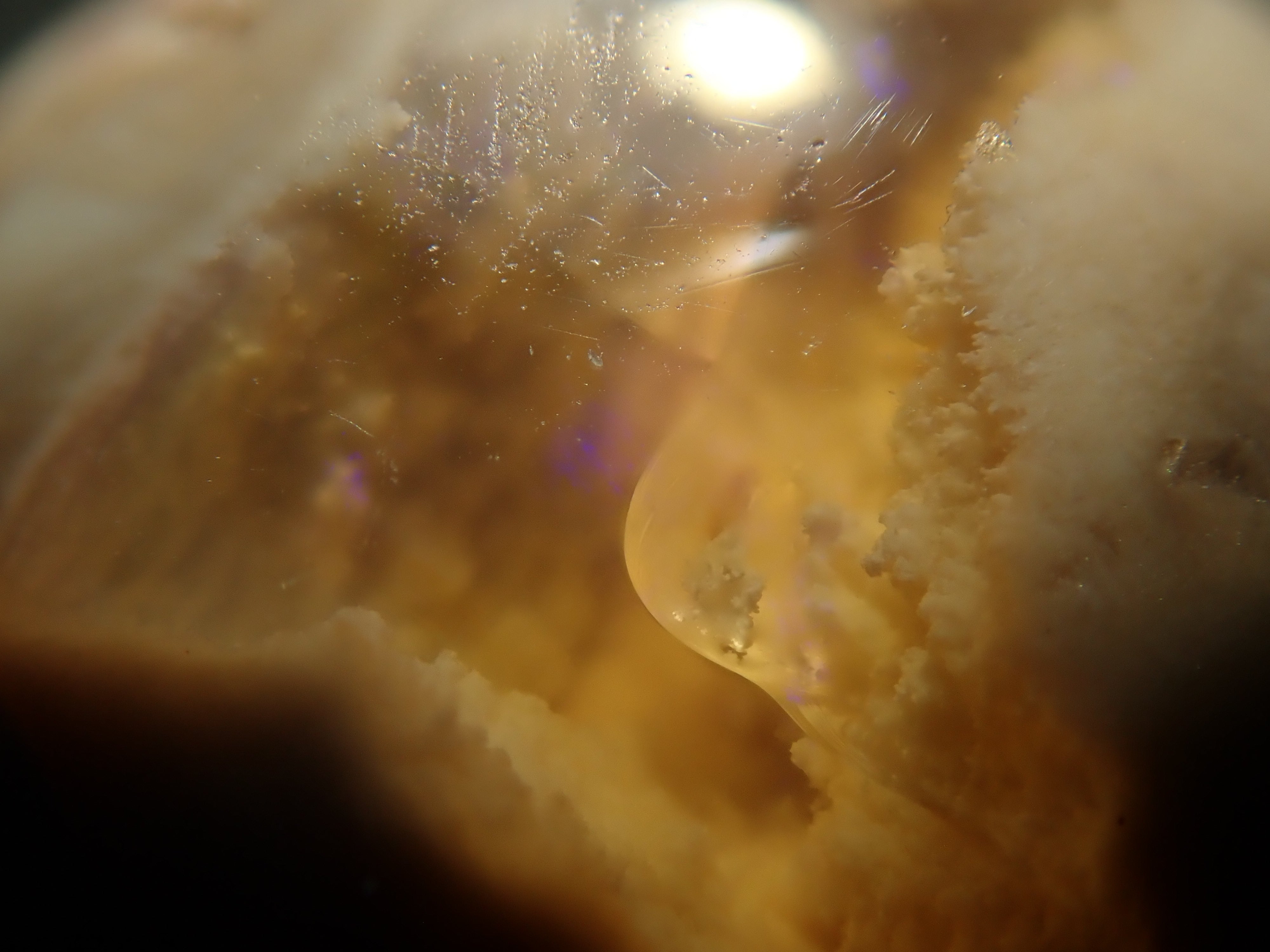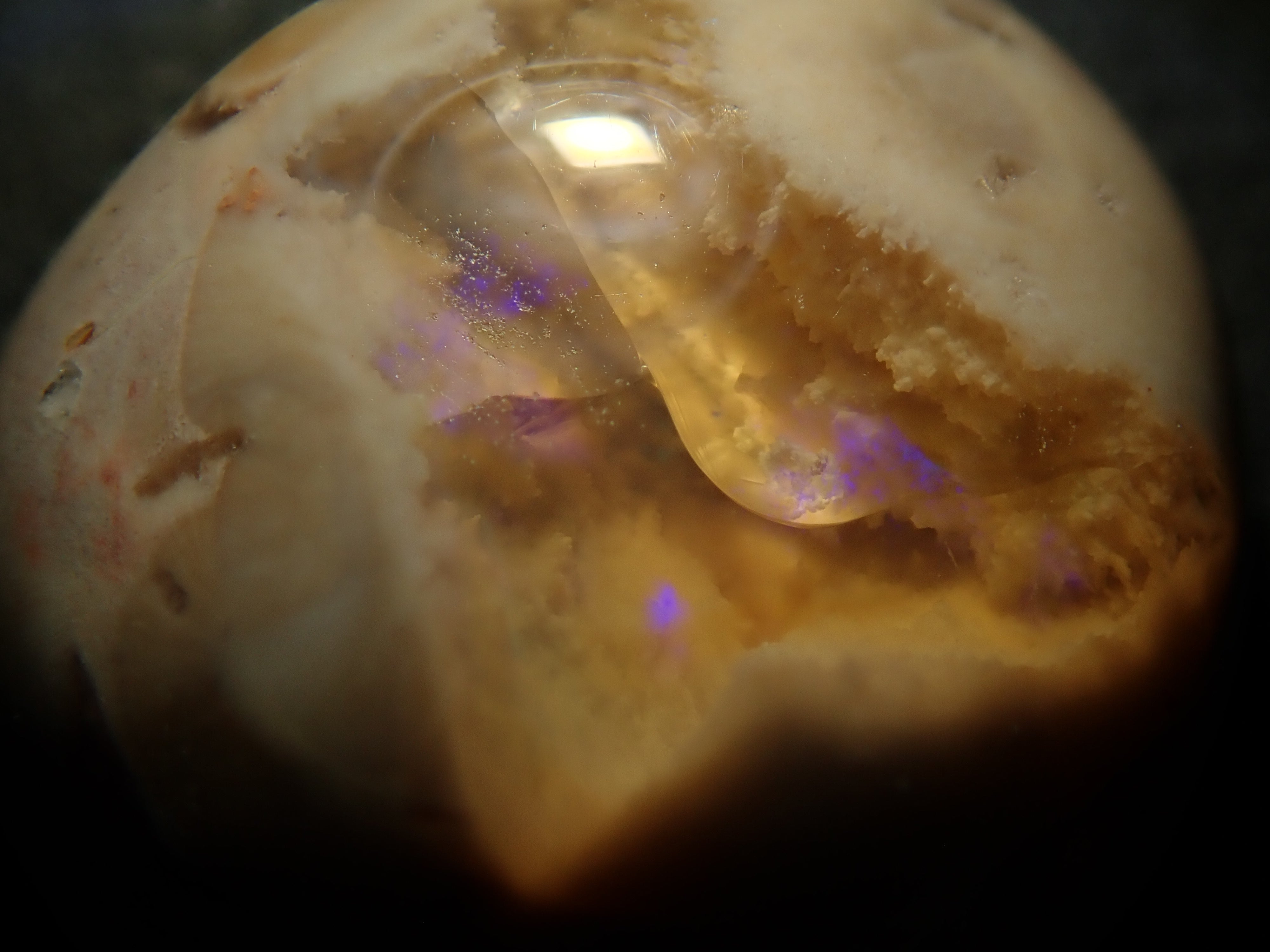 Cantera 蛋白石原本是一種有許多環的寶石。照片是使用筆燈拍攝的。