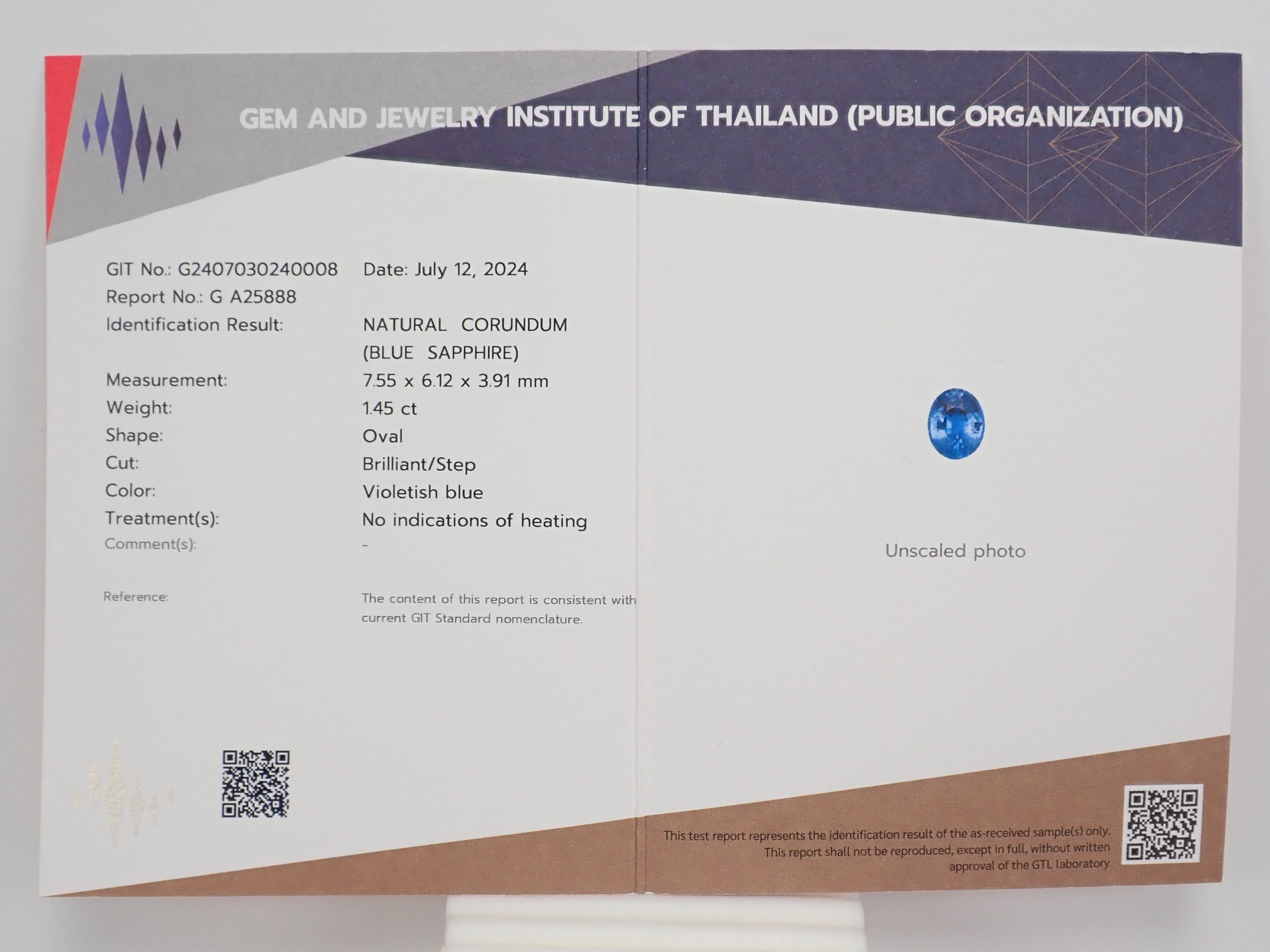未加熱變色藍色藍寶石 1.450 克拉散裝 GIT