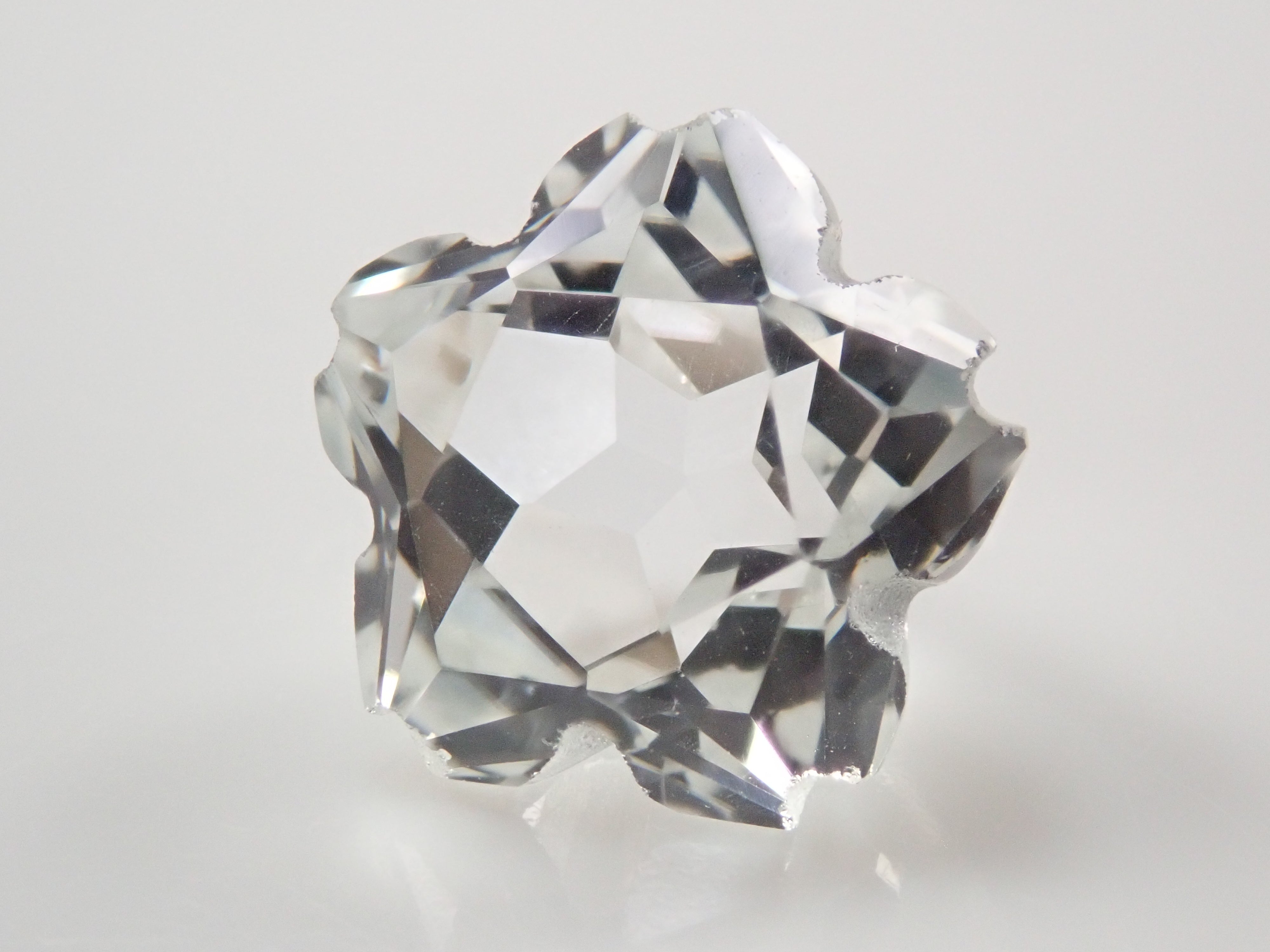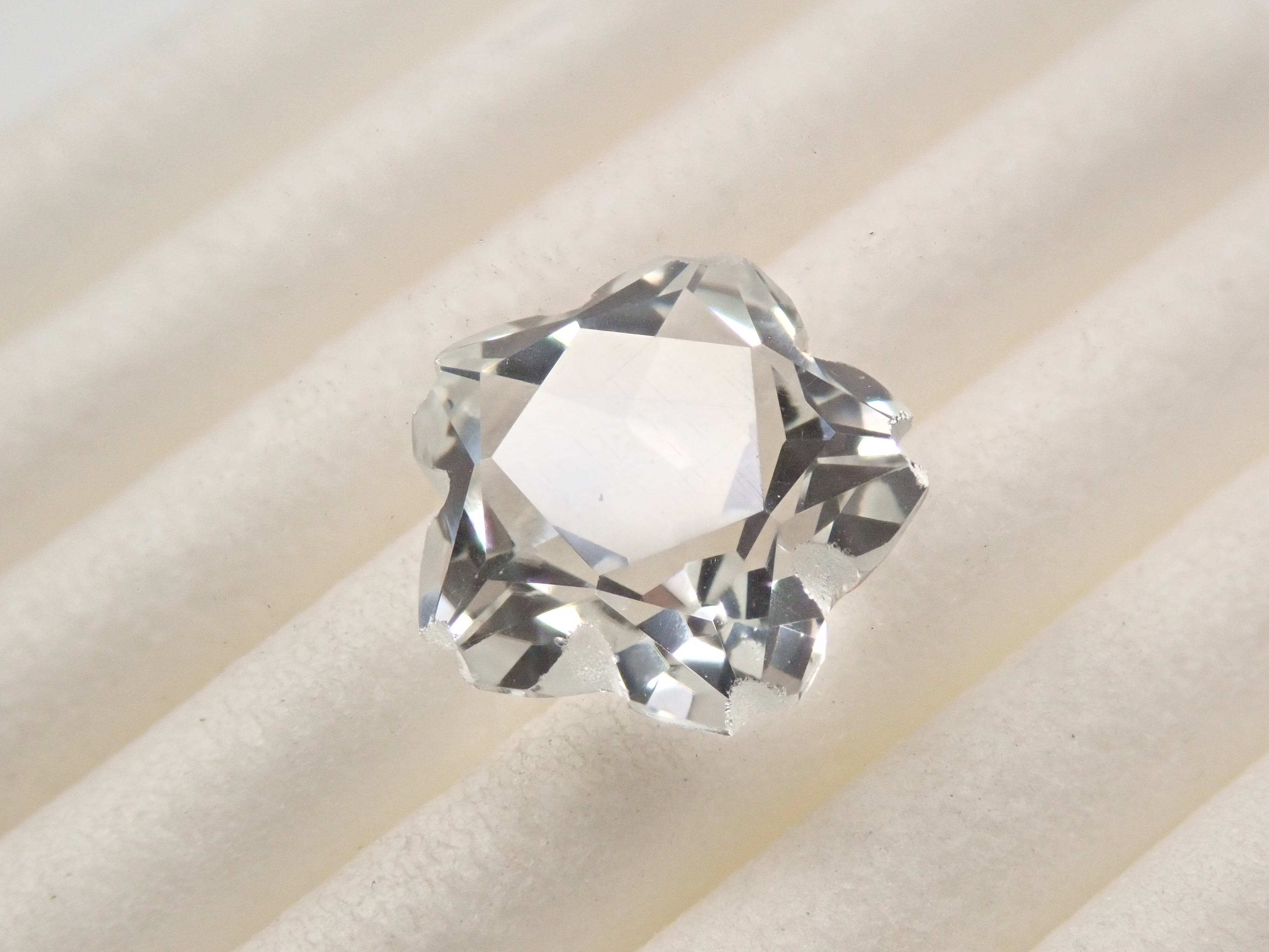 櫻花形白色托帕石 8.5 毫米,來自Shimizu Kiseki 。