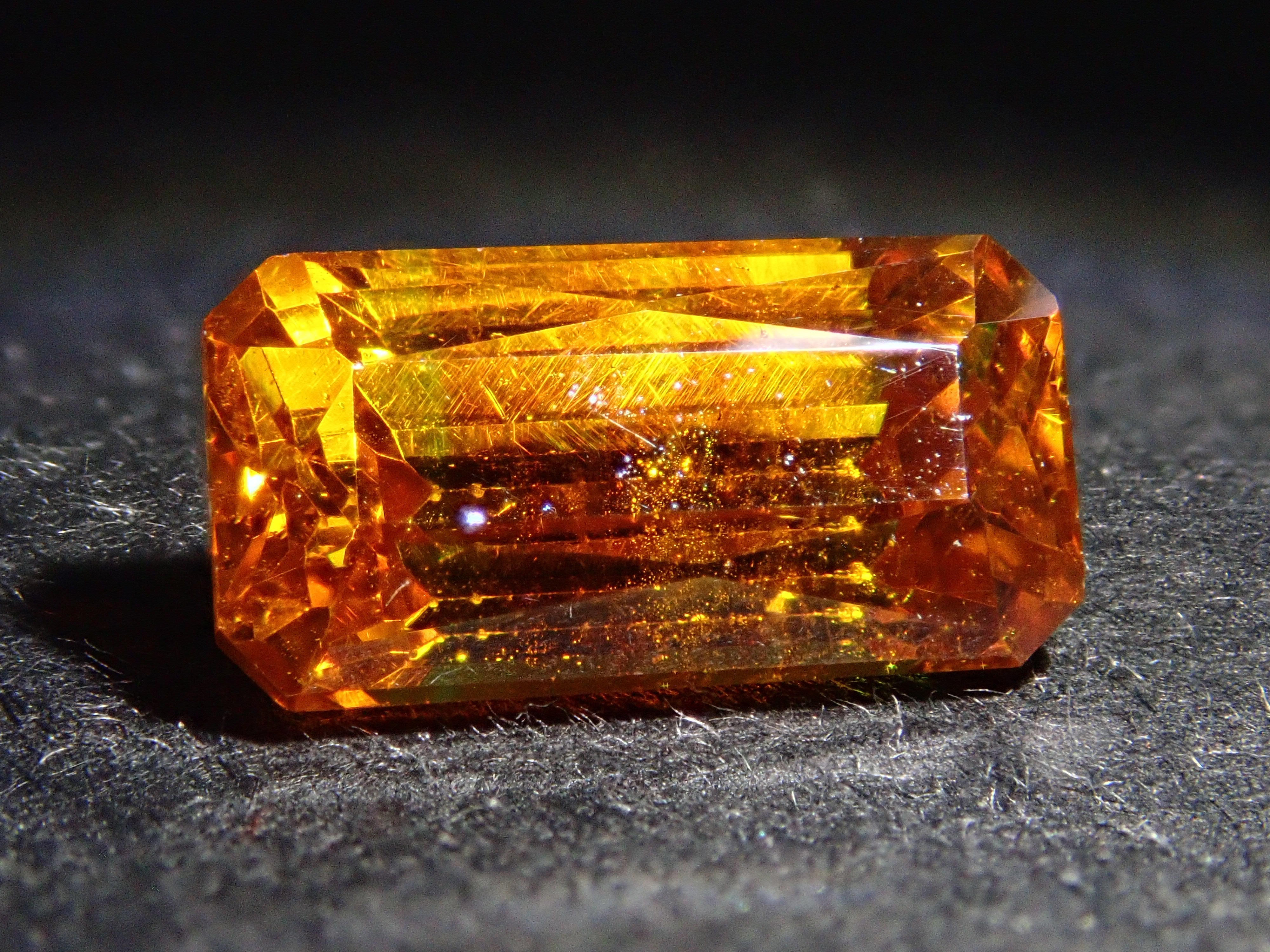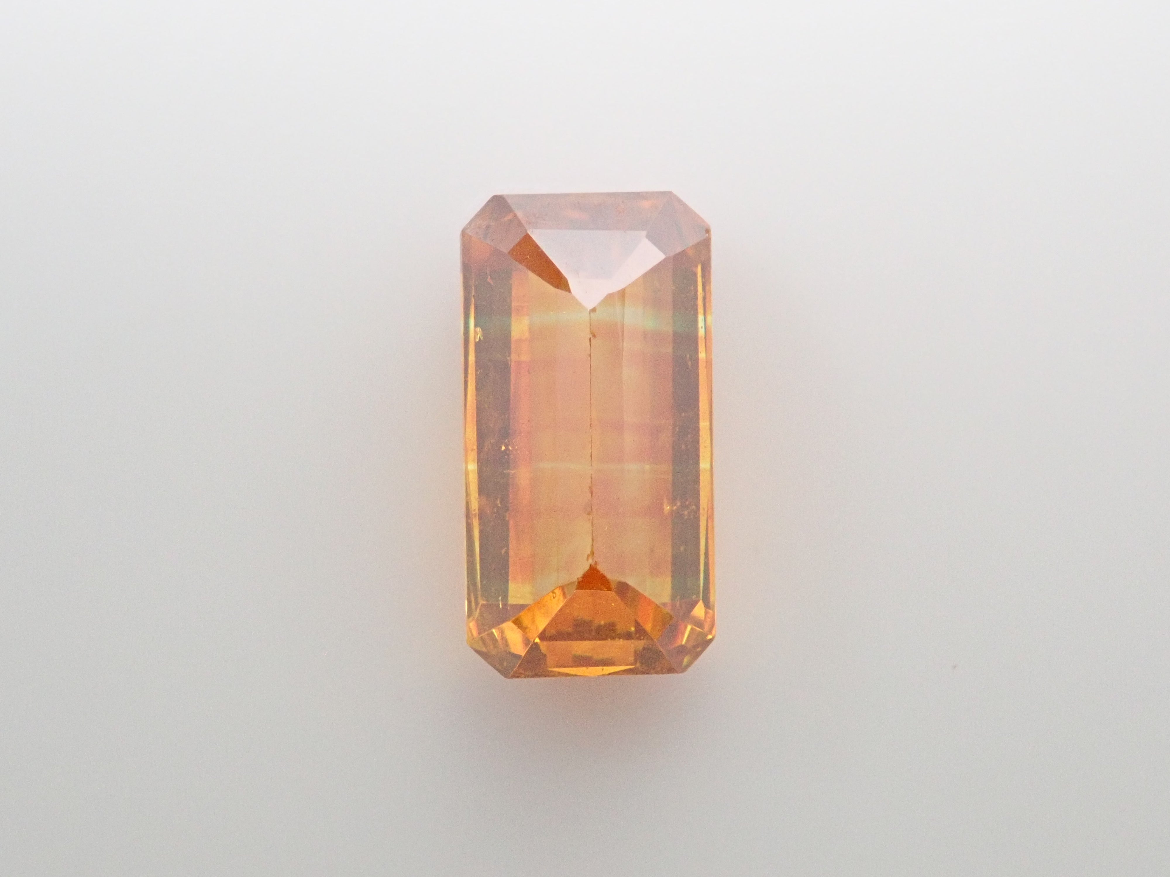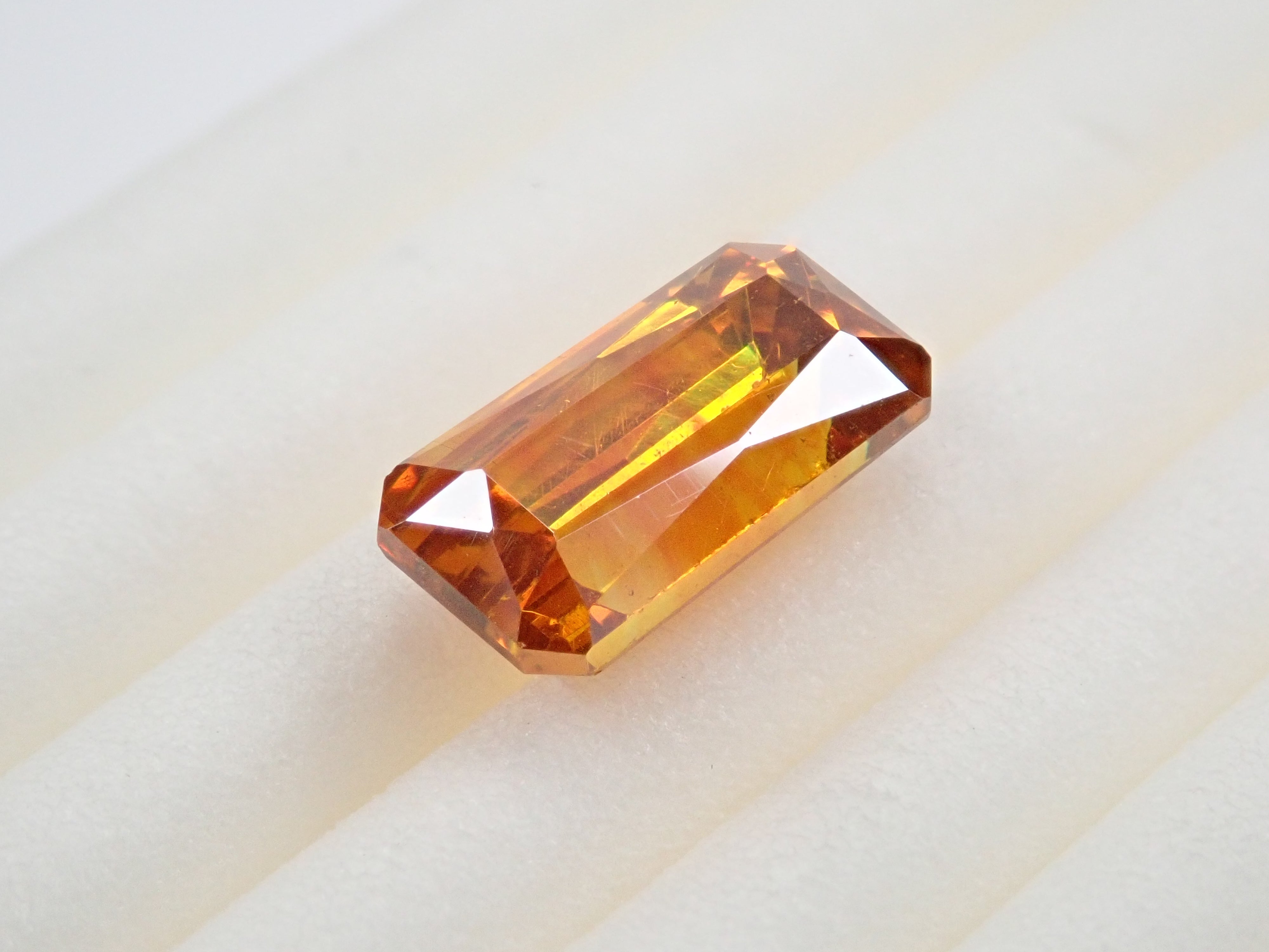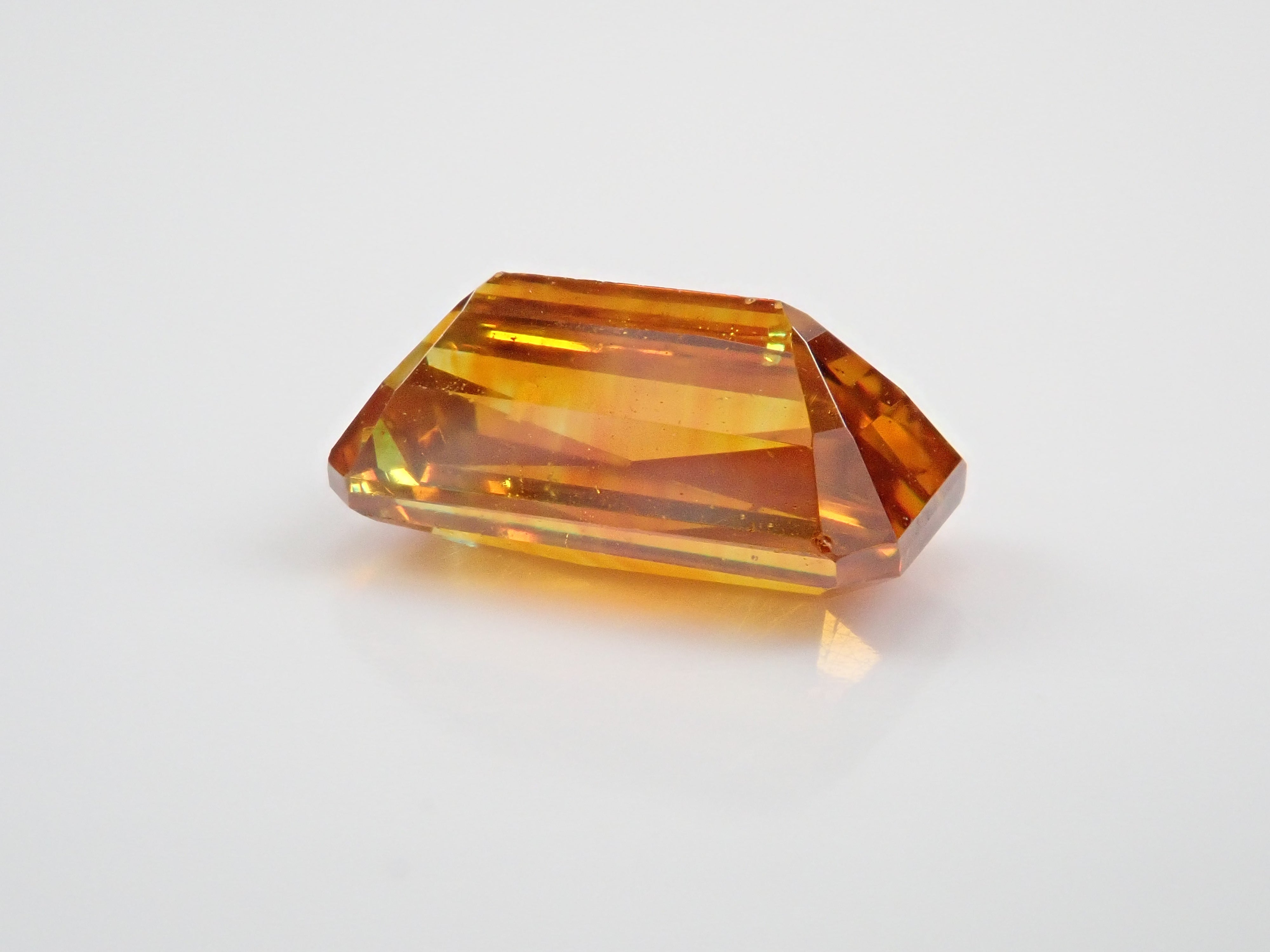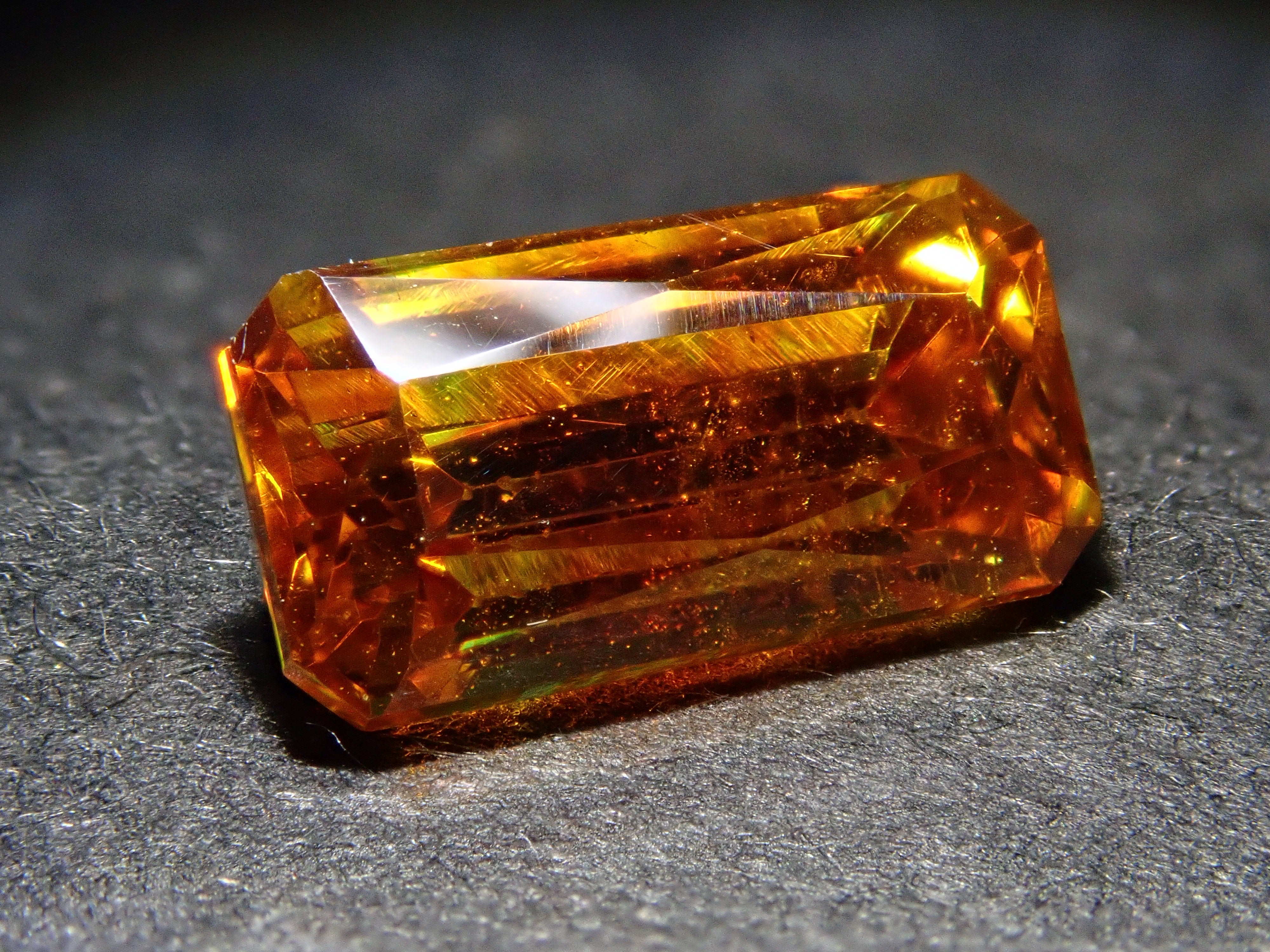 閃鋅礦的色散率接近鑽石的四倍,並呈現出絢麗的火彩。據說是流通量很小、市場上數量不多的稀有寶石之一。底色有黃、橙、綠等,在火中可以欣賞到黃、棕、橙、紅、綠等各種顏色。這是雙色閃鋅礦。