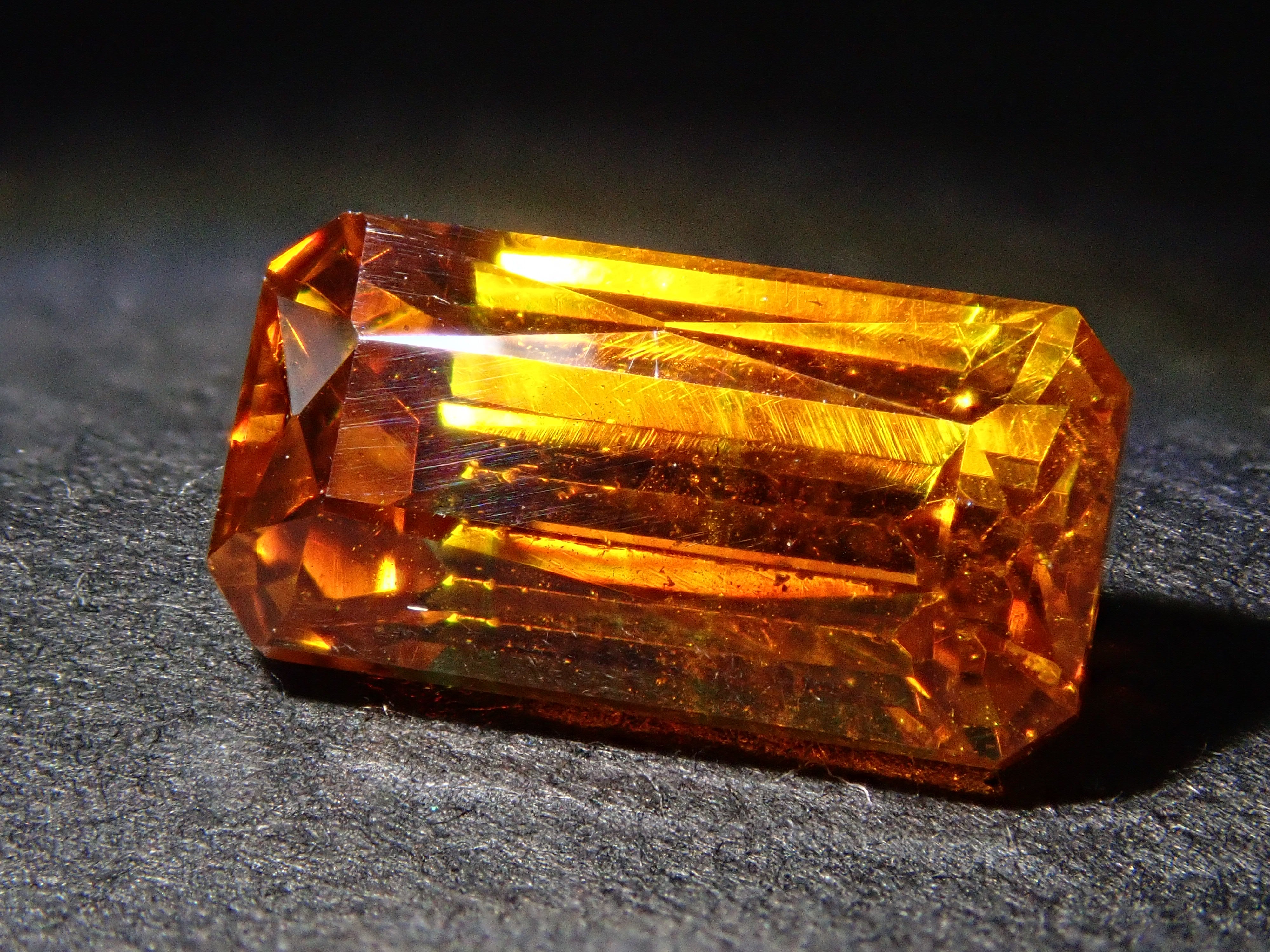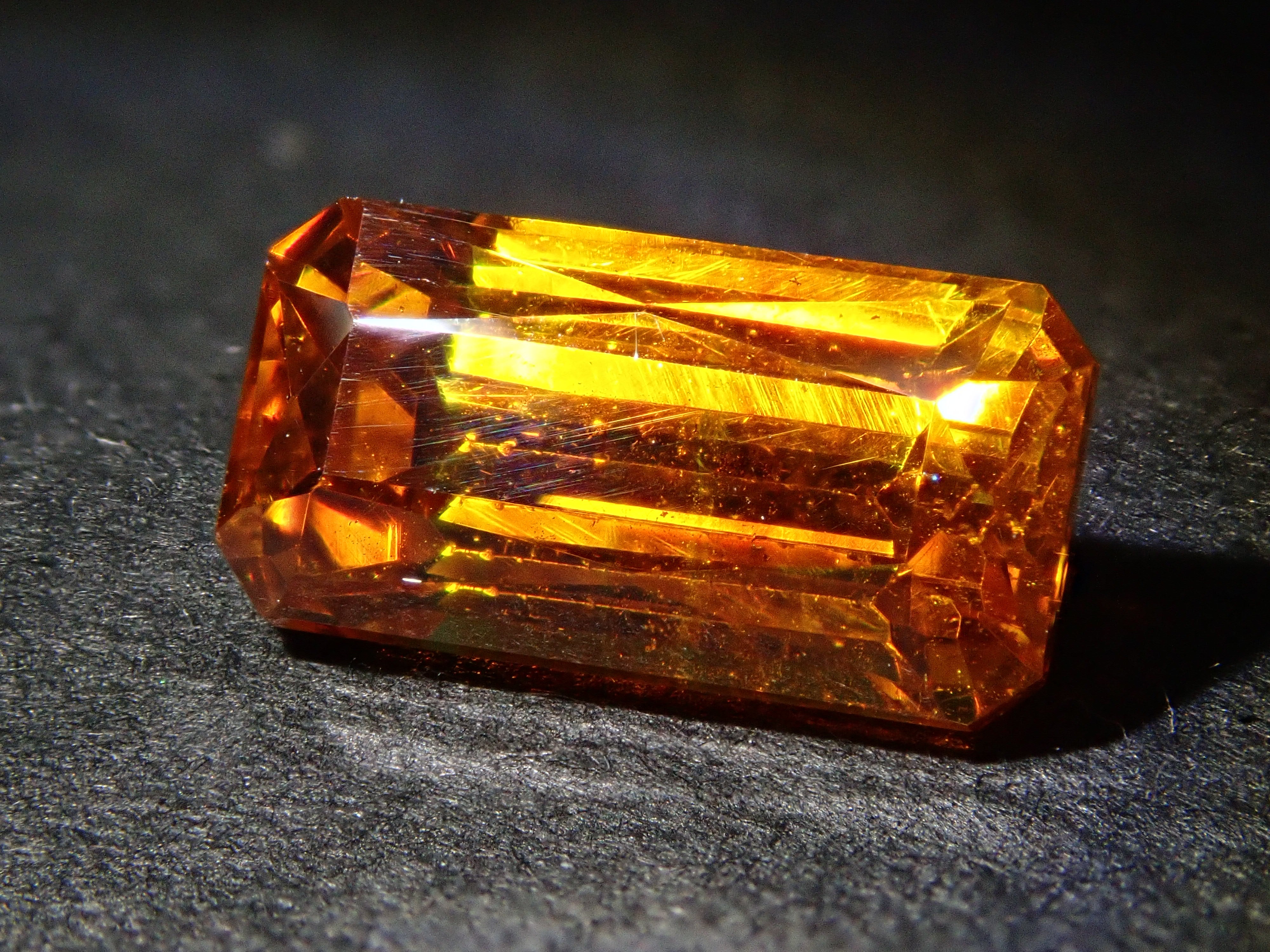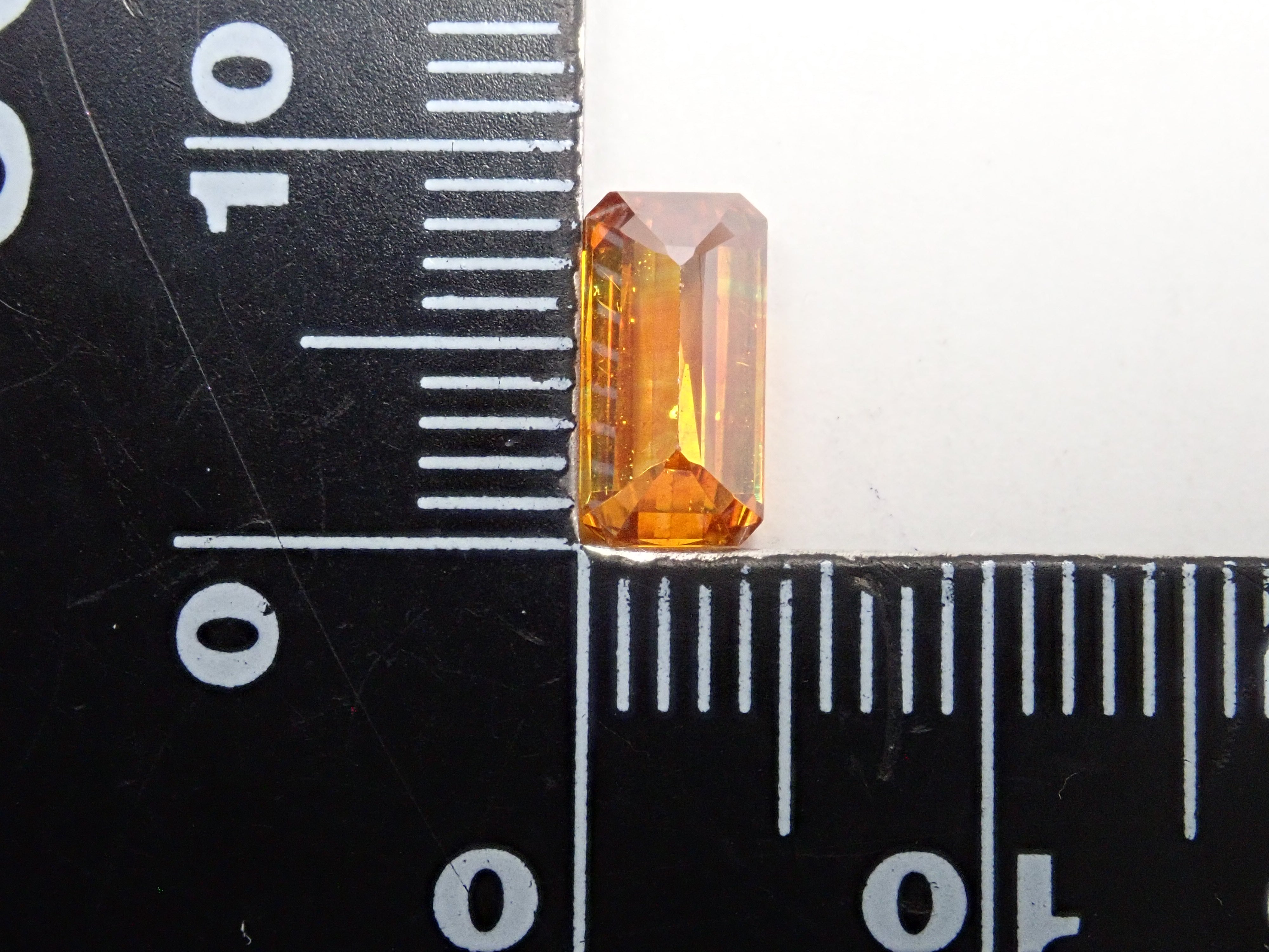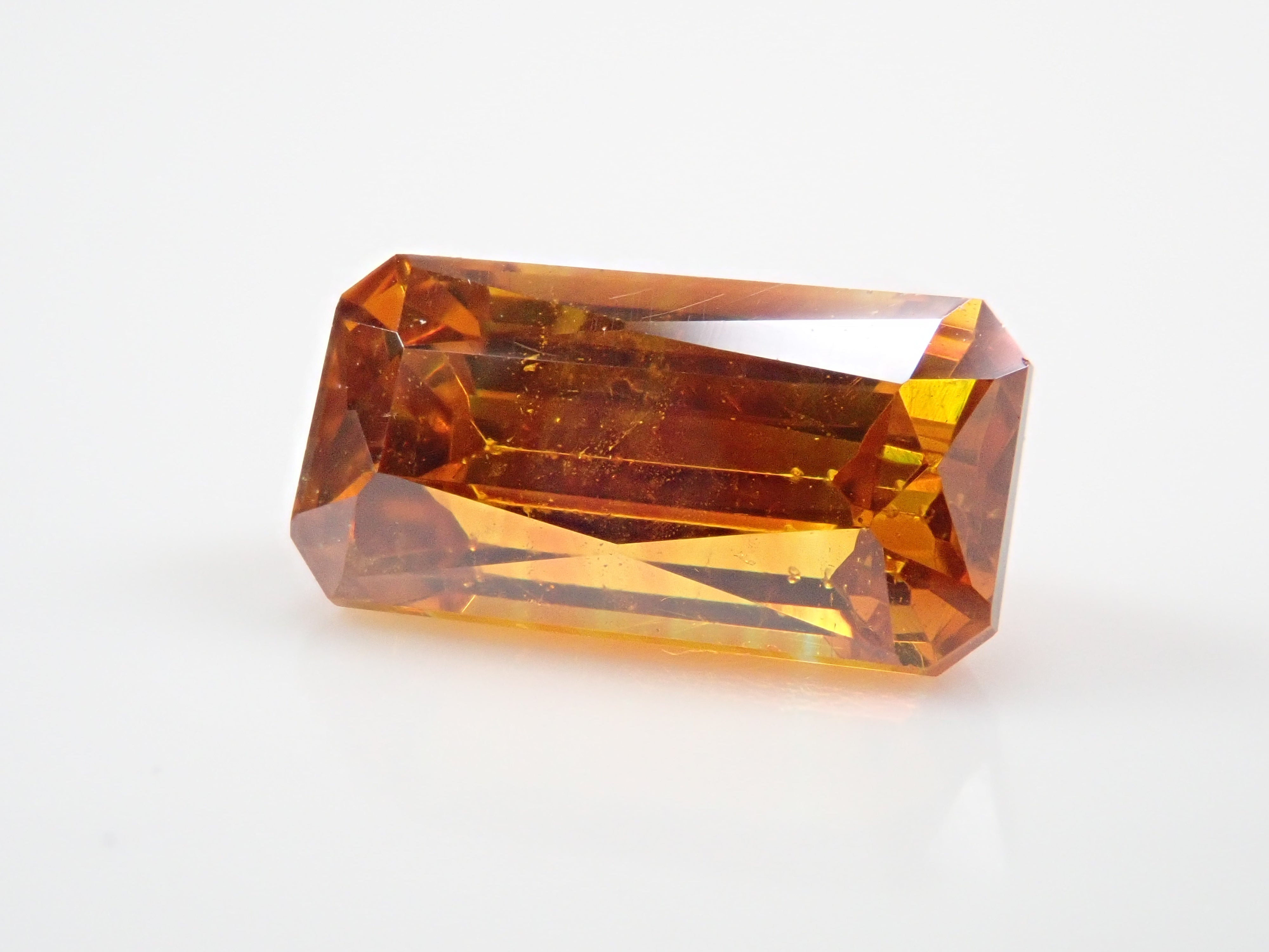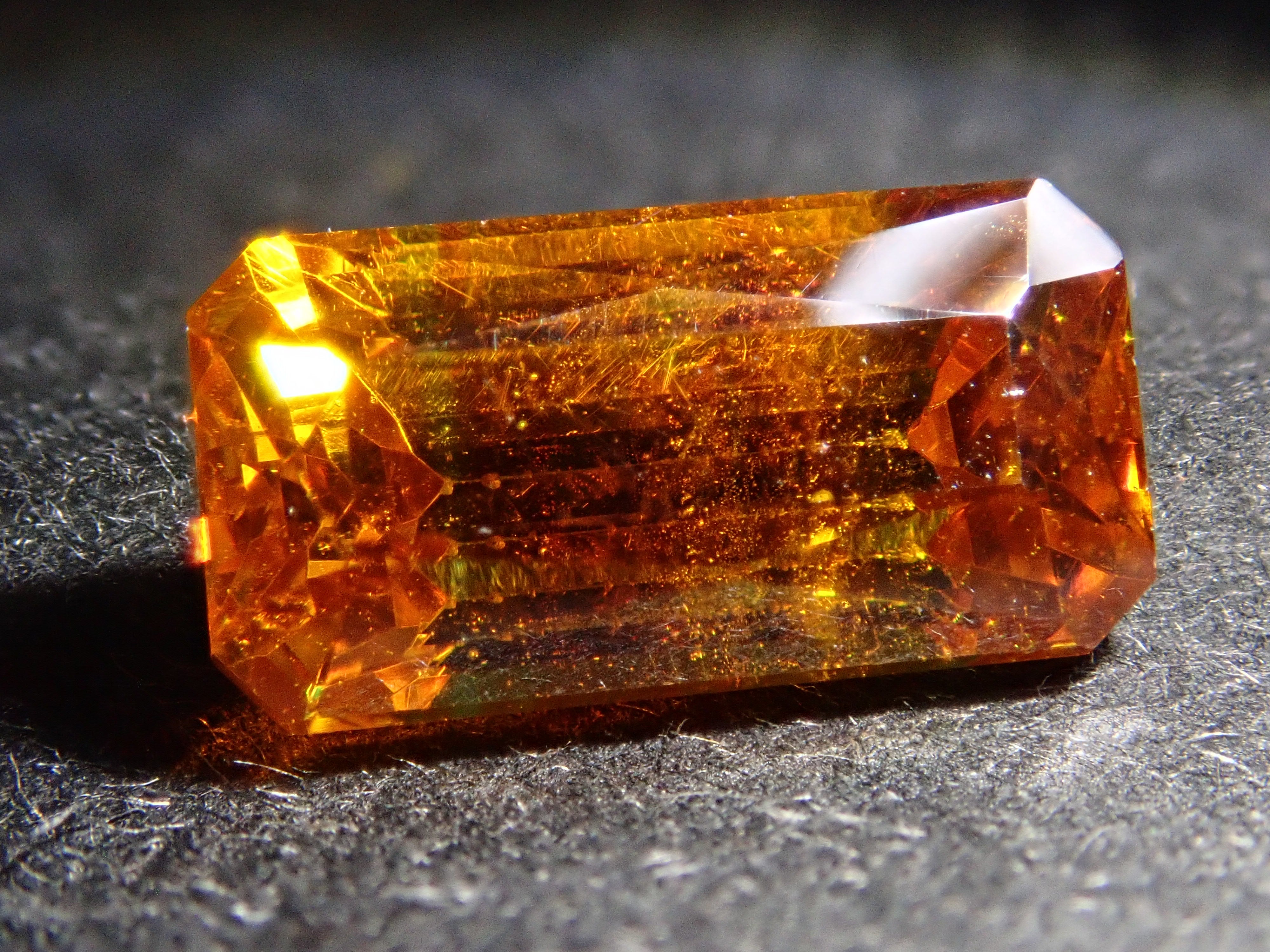 閃鋅礦的色散率接近鑽石的四倍,並呈現出絢麗的火彩。據說是流通量很小、市場上數量不多的稀有寶石之一。底色有黃、橙、綠等,在火中可以欣賞到黃、棕、橙、紅、綠等各種顏色。這是雙色閃鋅礦。