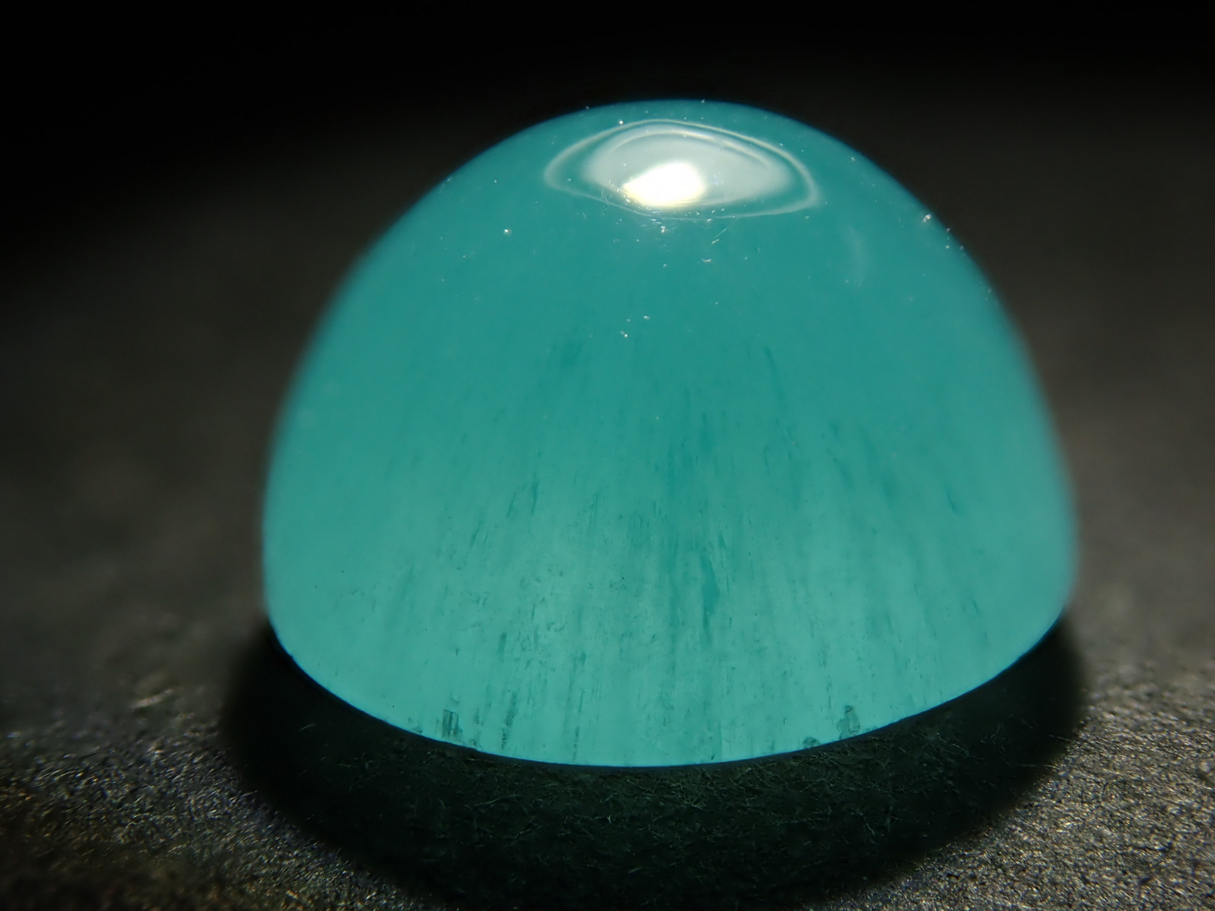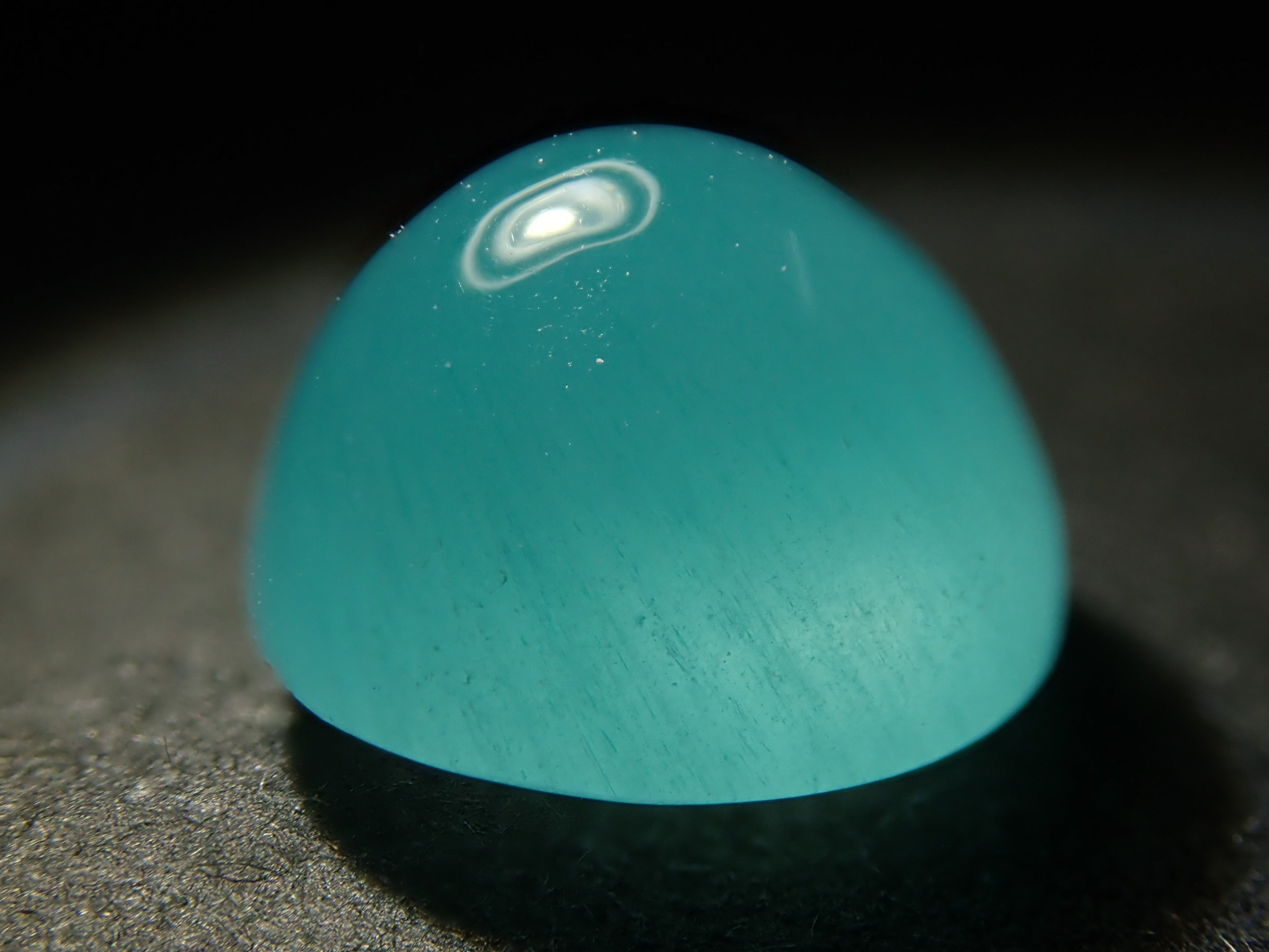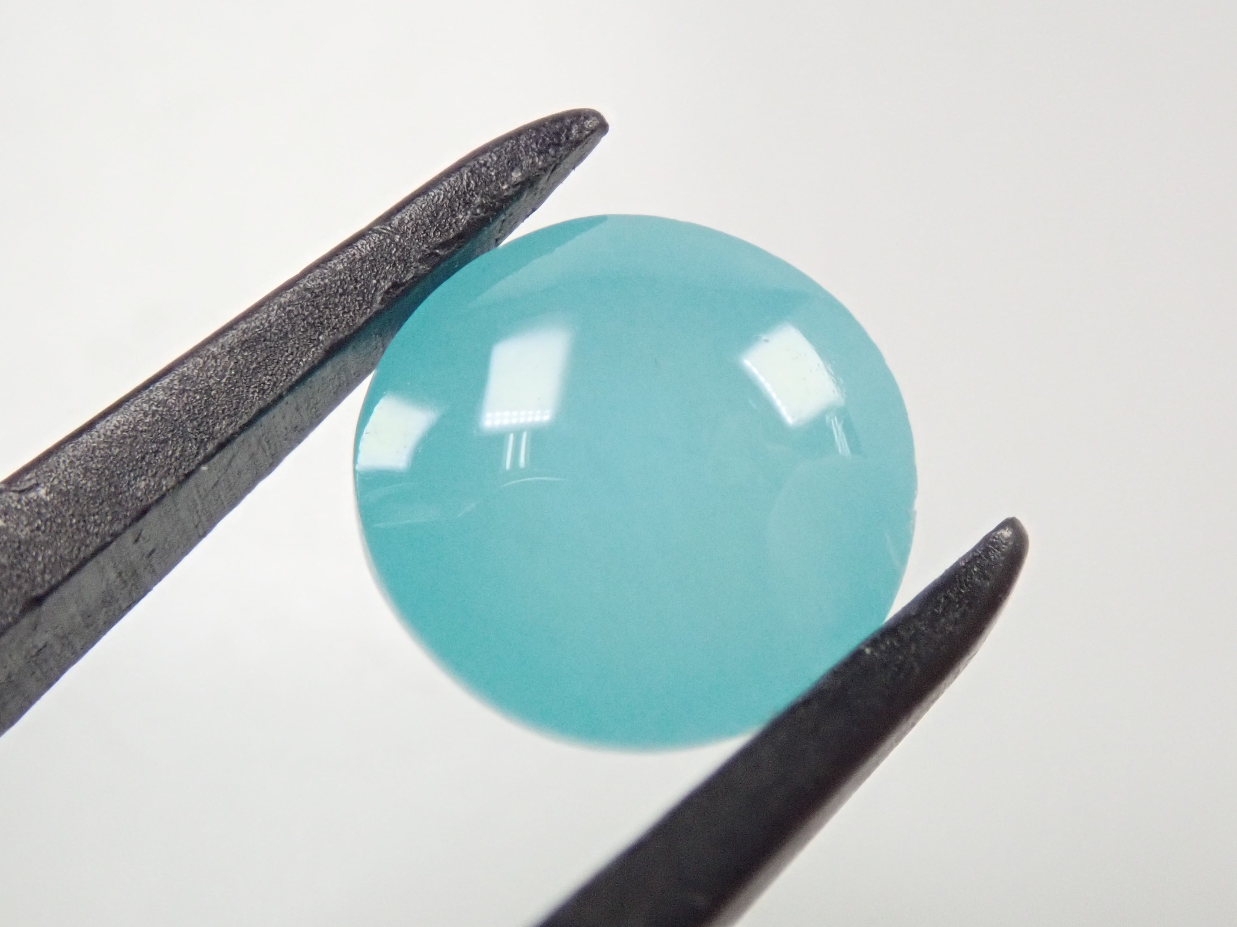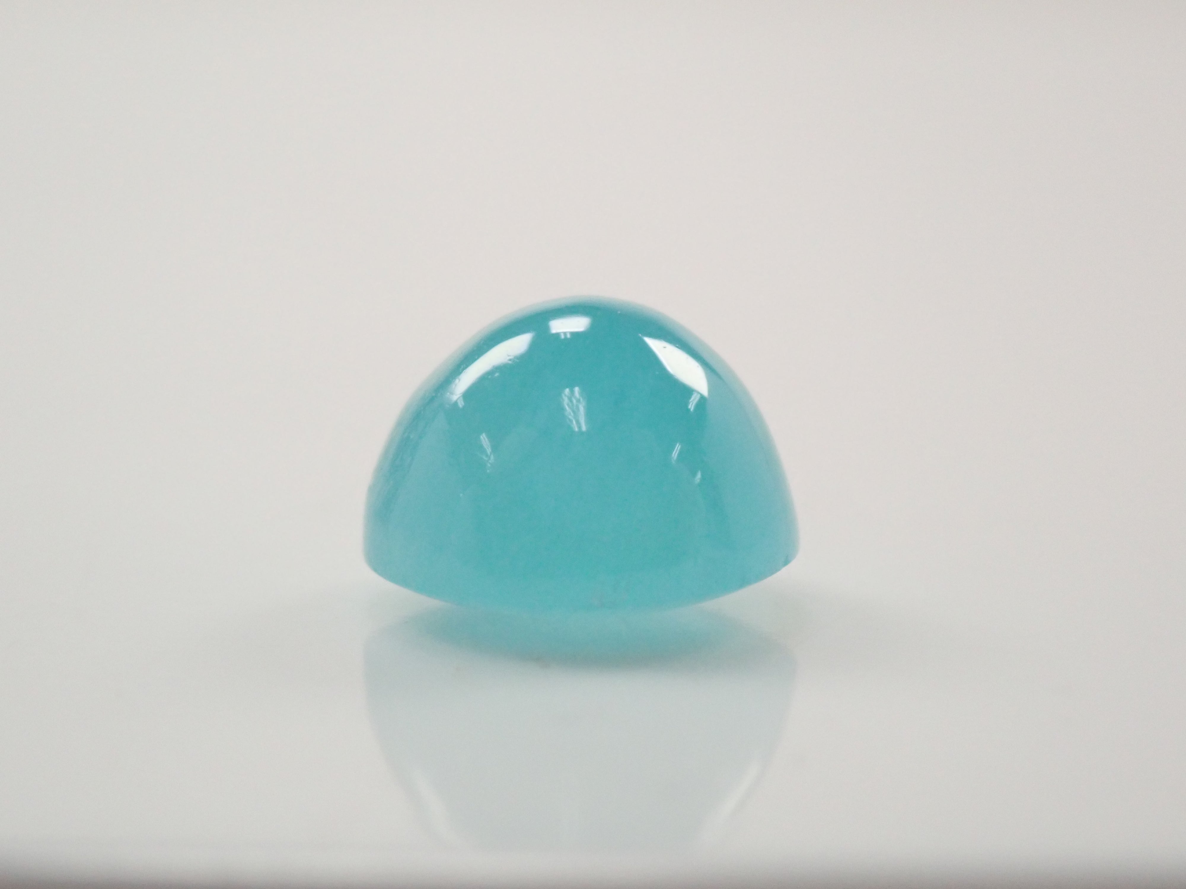文石的日文名稱是文石。因碳酸鈣呈從天而降的小冰雹形狀而得名。莫氏硬度稍低,為3.5至4。它非常堅硬,如果您一直將其作為戒指佩戴,則需要小心。它具有美麗的玻璃般的光澤。 凸圓形切割藍色霰石。