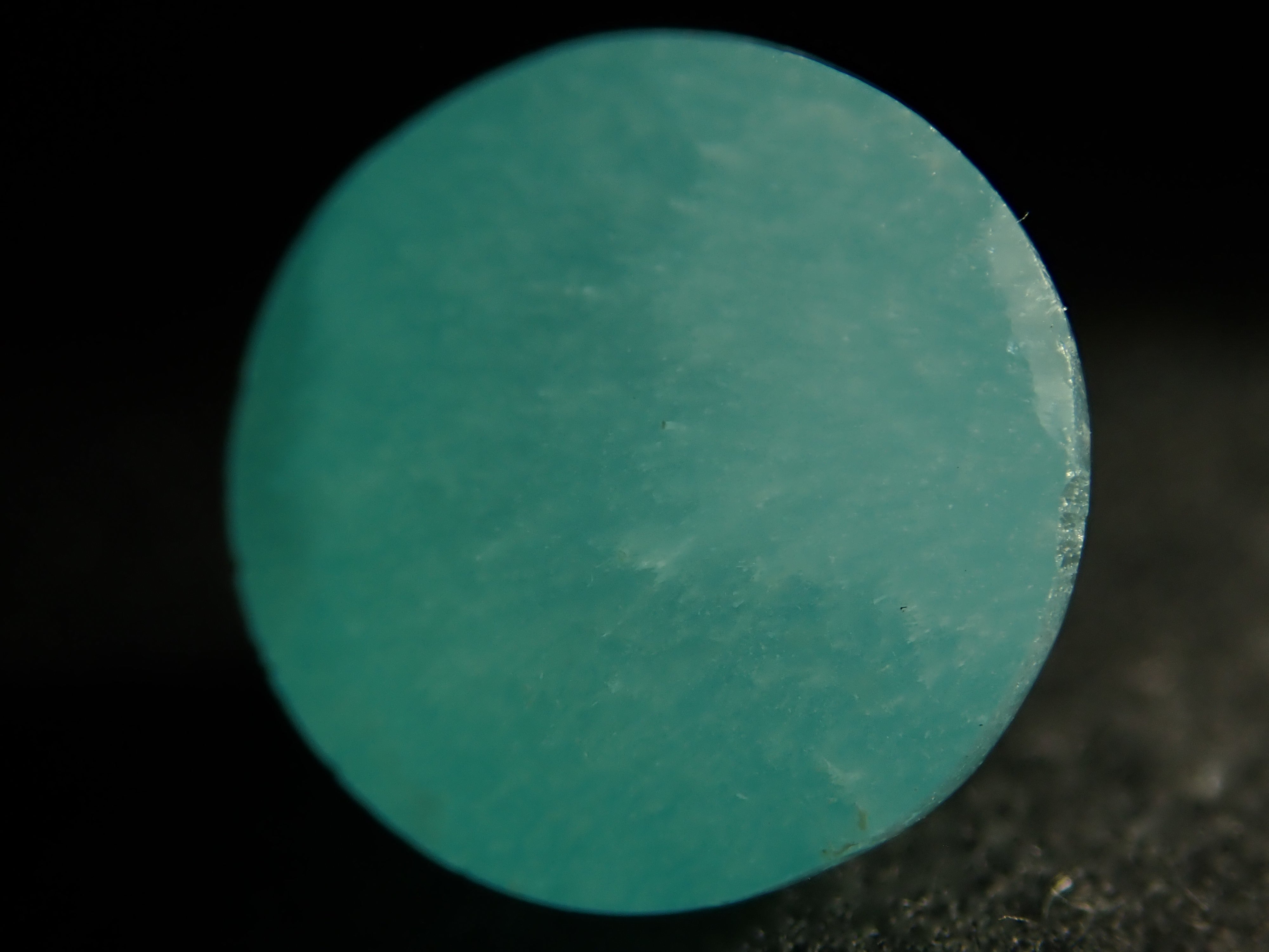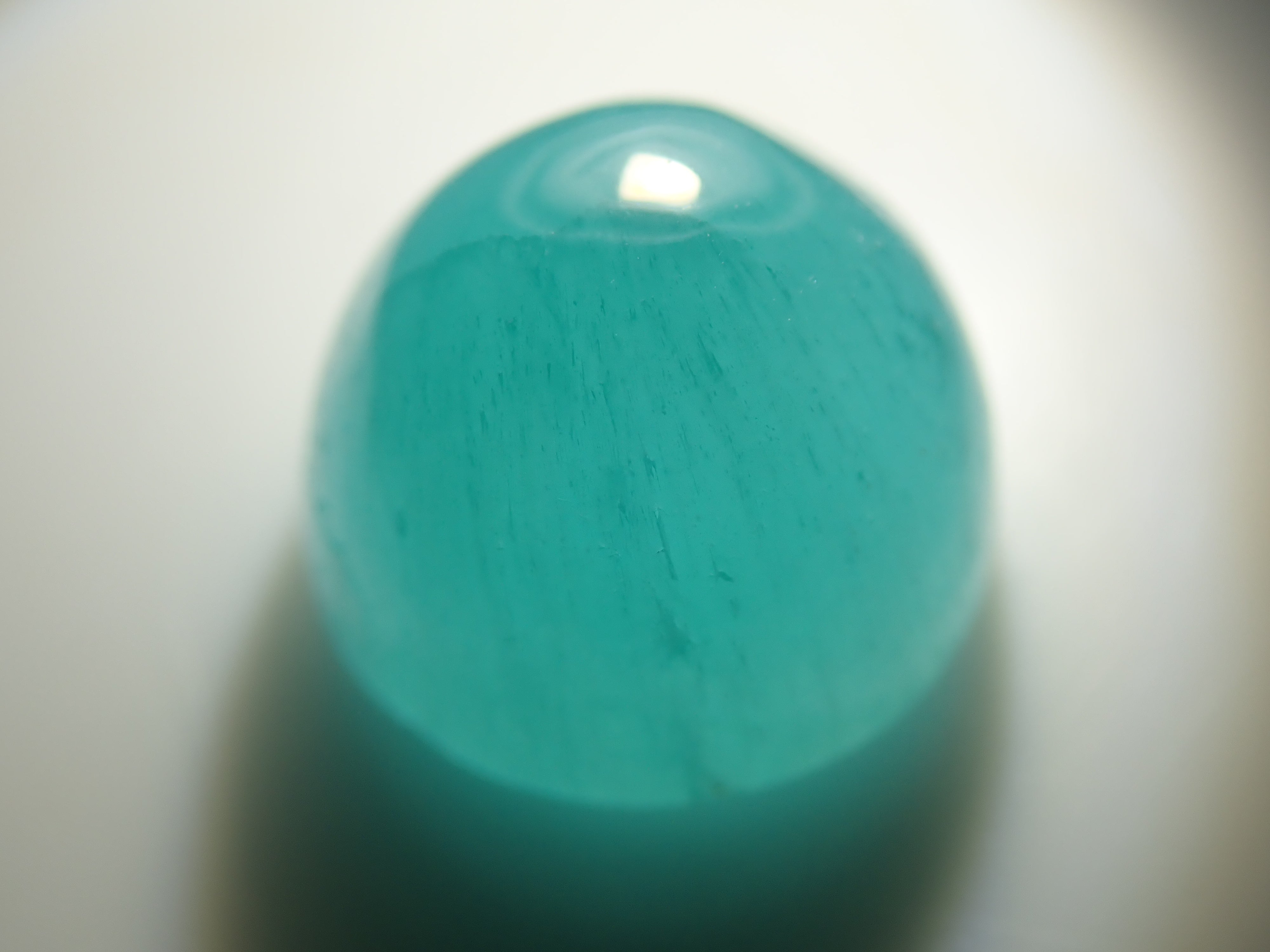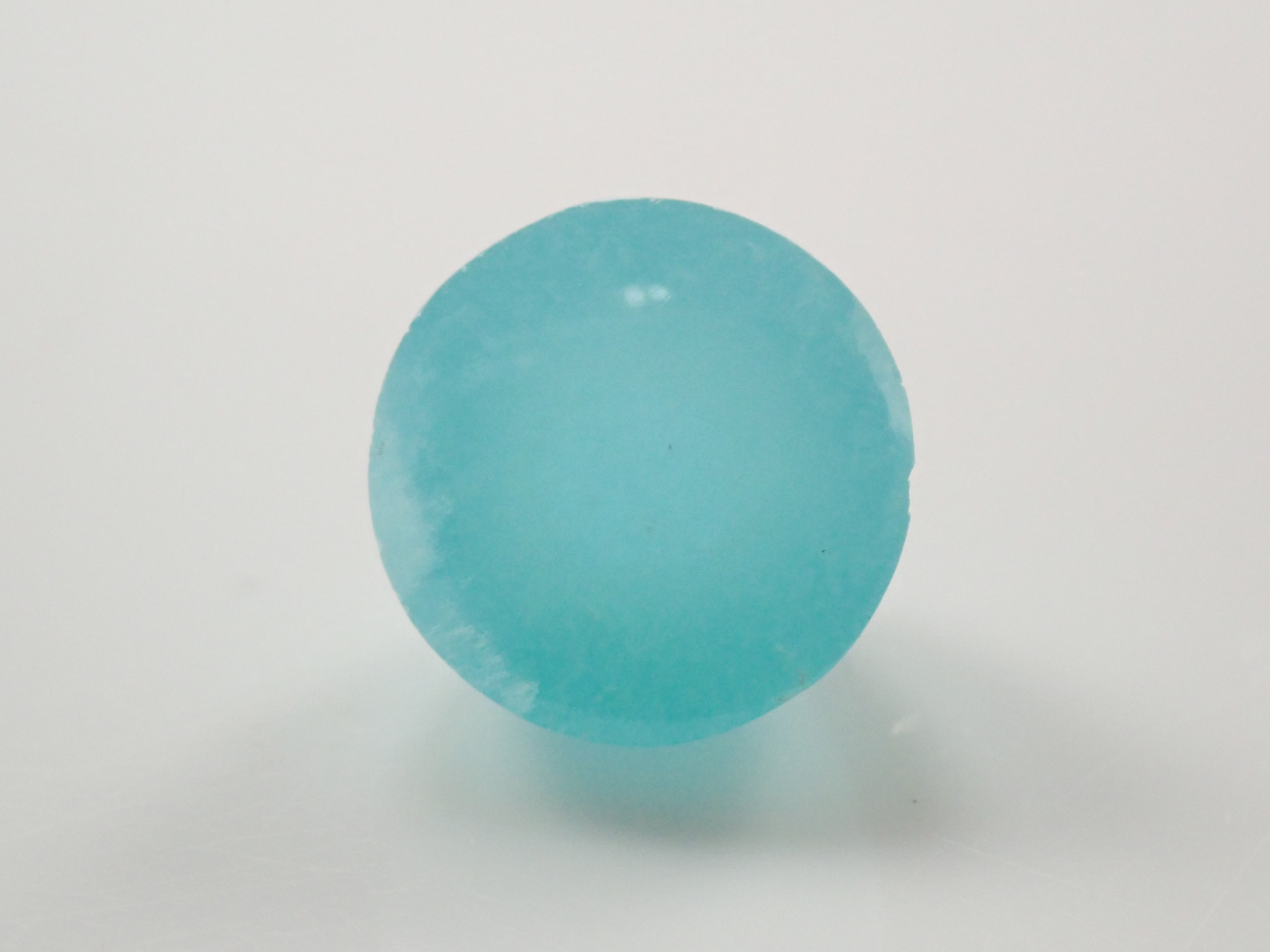 文石的日文名稱是文石。因碳酸鈣呈從天而降的小冰雹形狀而得名。莫氏硬度稍低,為3.5至4。它非常堅硬,如果您一直將其作為戒指佩戴,則需要小心。它具有美麗的玻璃般的光澤。 凸圓形切割藍色霰石。