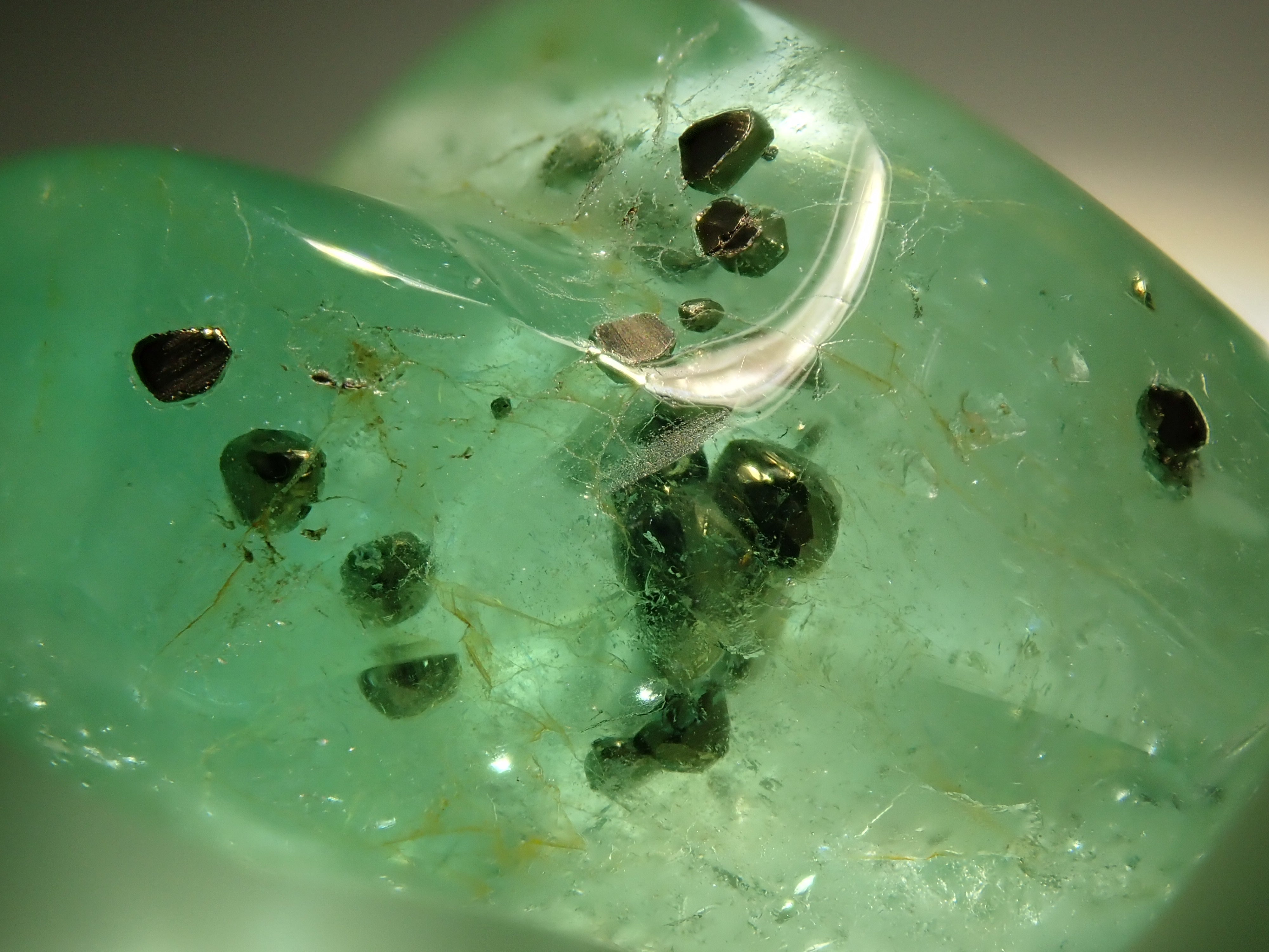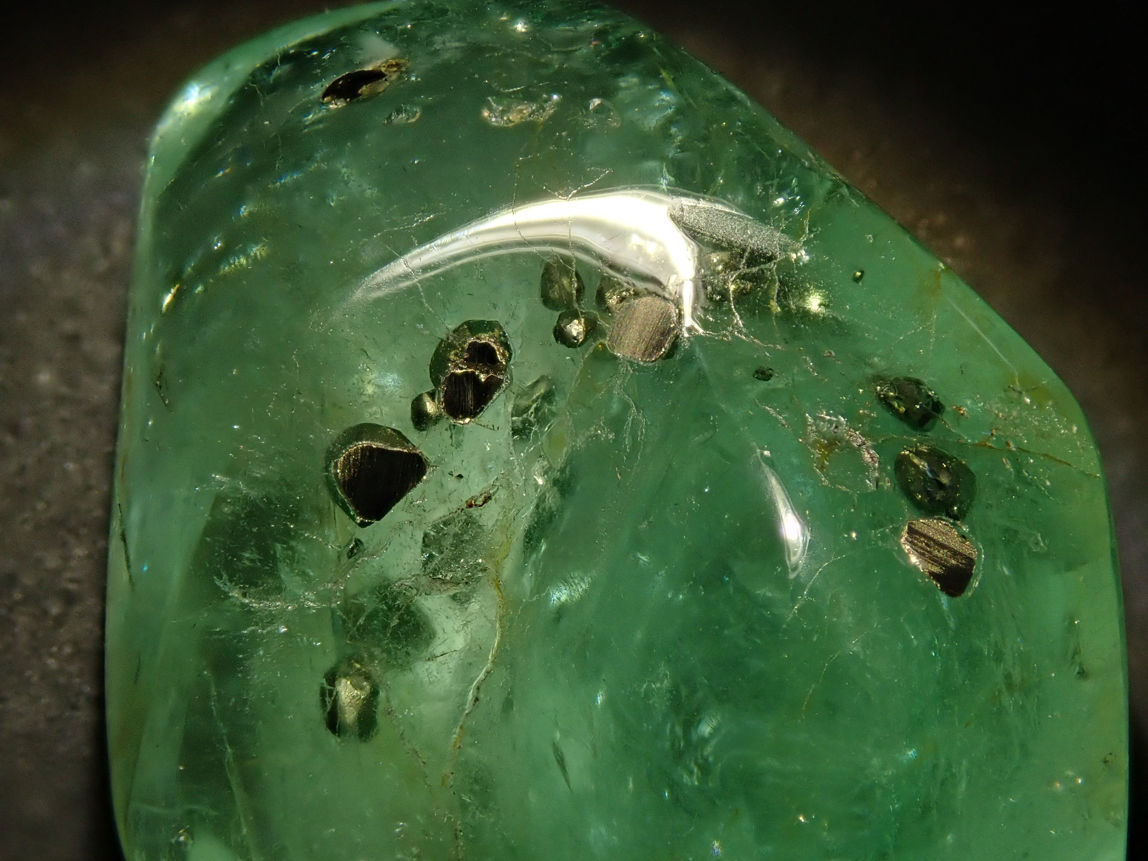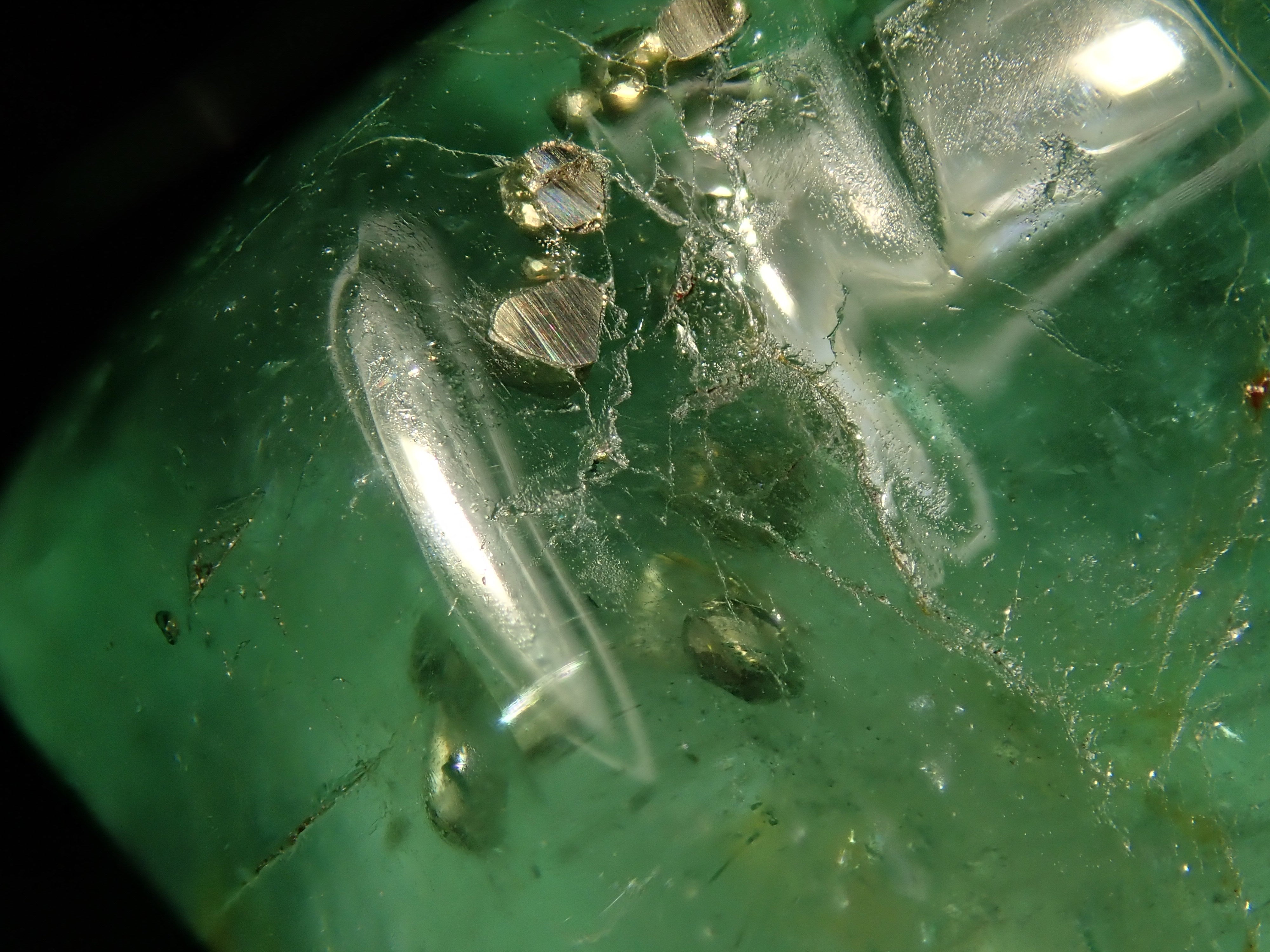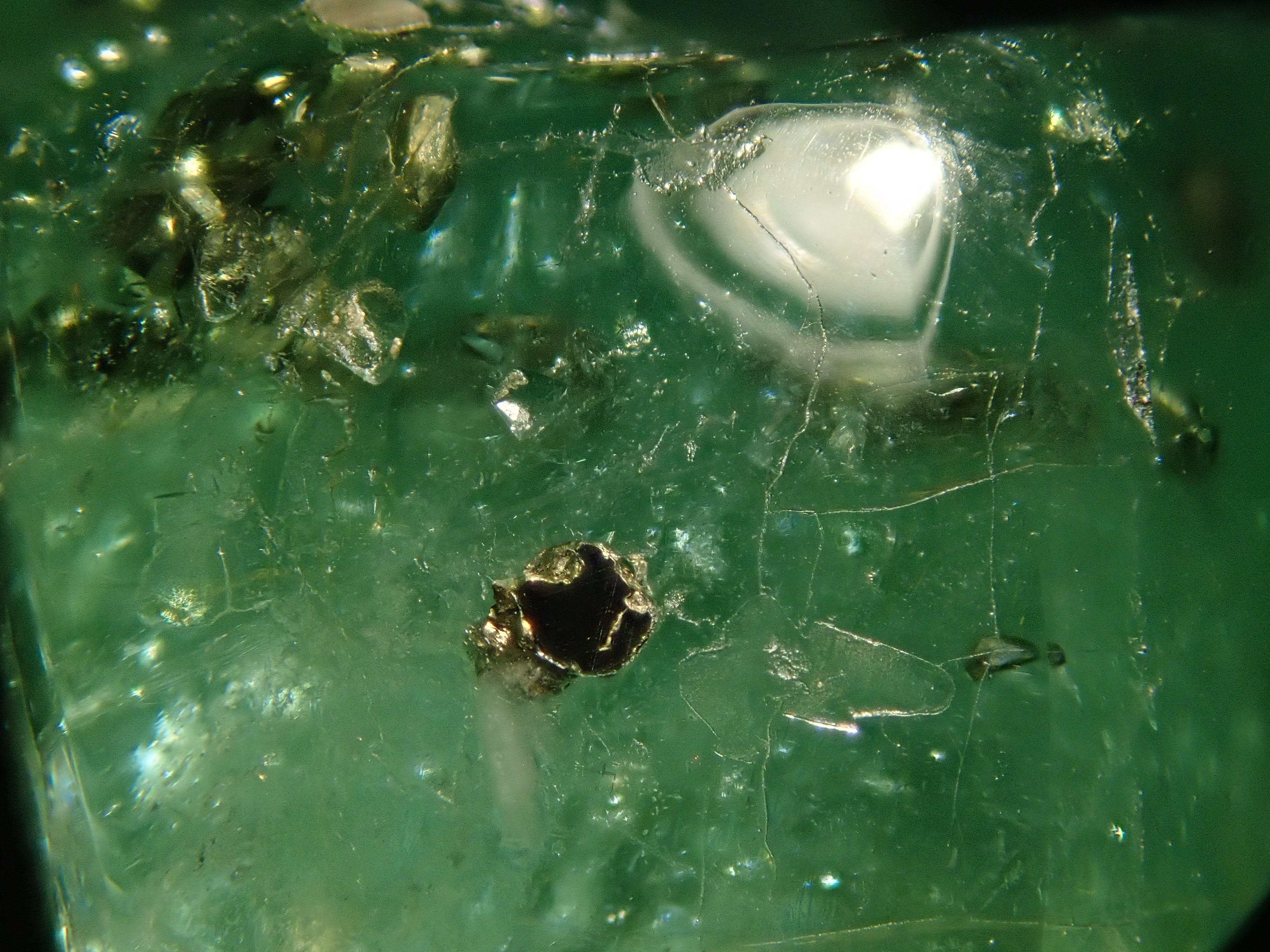據說祖母綠美麗的綠色會根據其生長地點的不同而改變。這是產自哥倫比亞的祖母綠,據說有特別深的綠色。祖母綠通常是一種有很多划痕的寶石,因此通常會用油對其進行處理,以使划痕不那麼明顯。享受優雅的綠色。這是祖母綠中的黃鐵礦。 這是來自哥倫比亞穆佐礦的祖母綠,透明度高,黃鐵礦美麗。