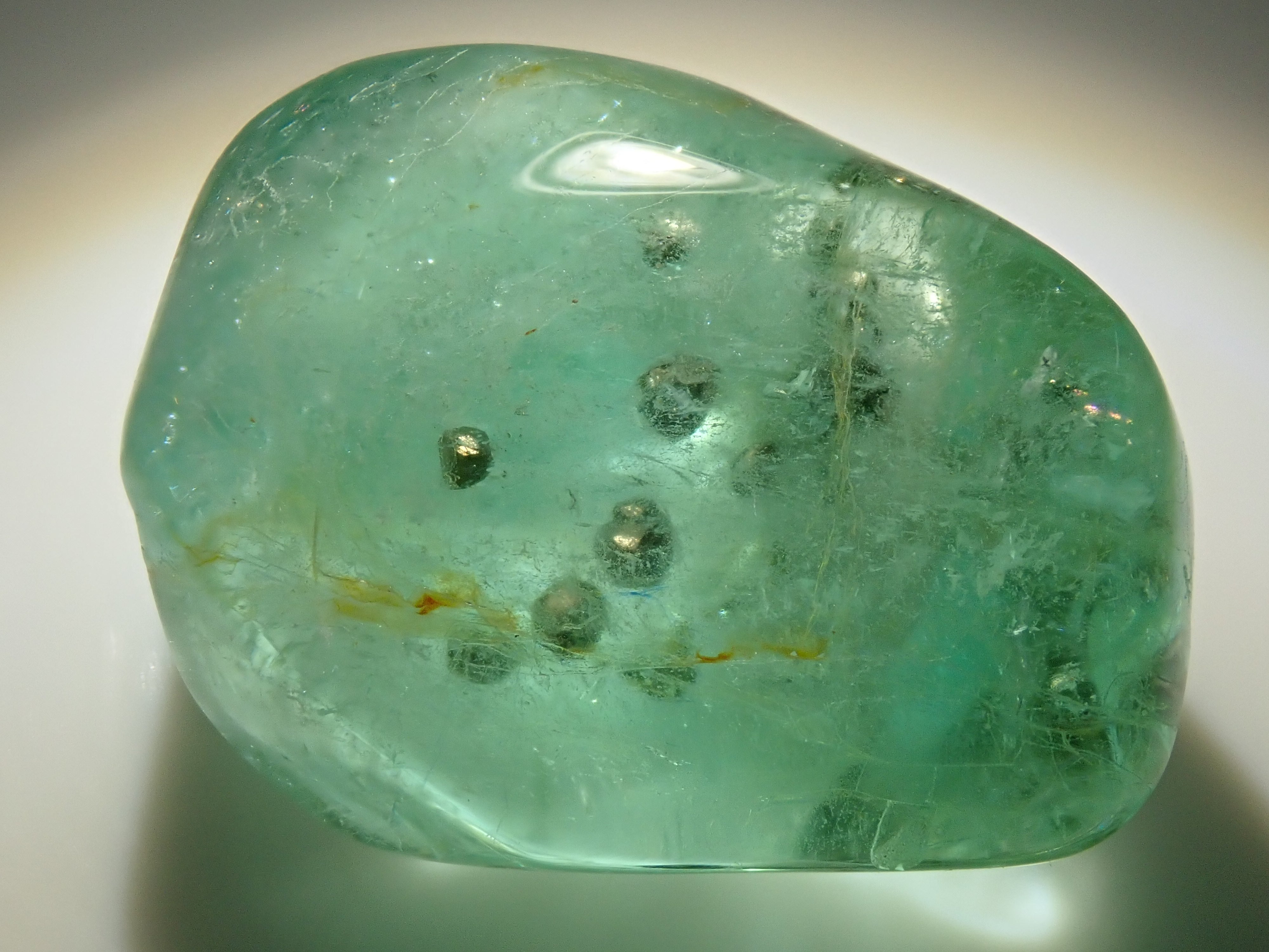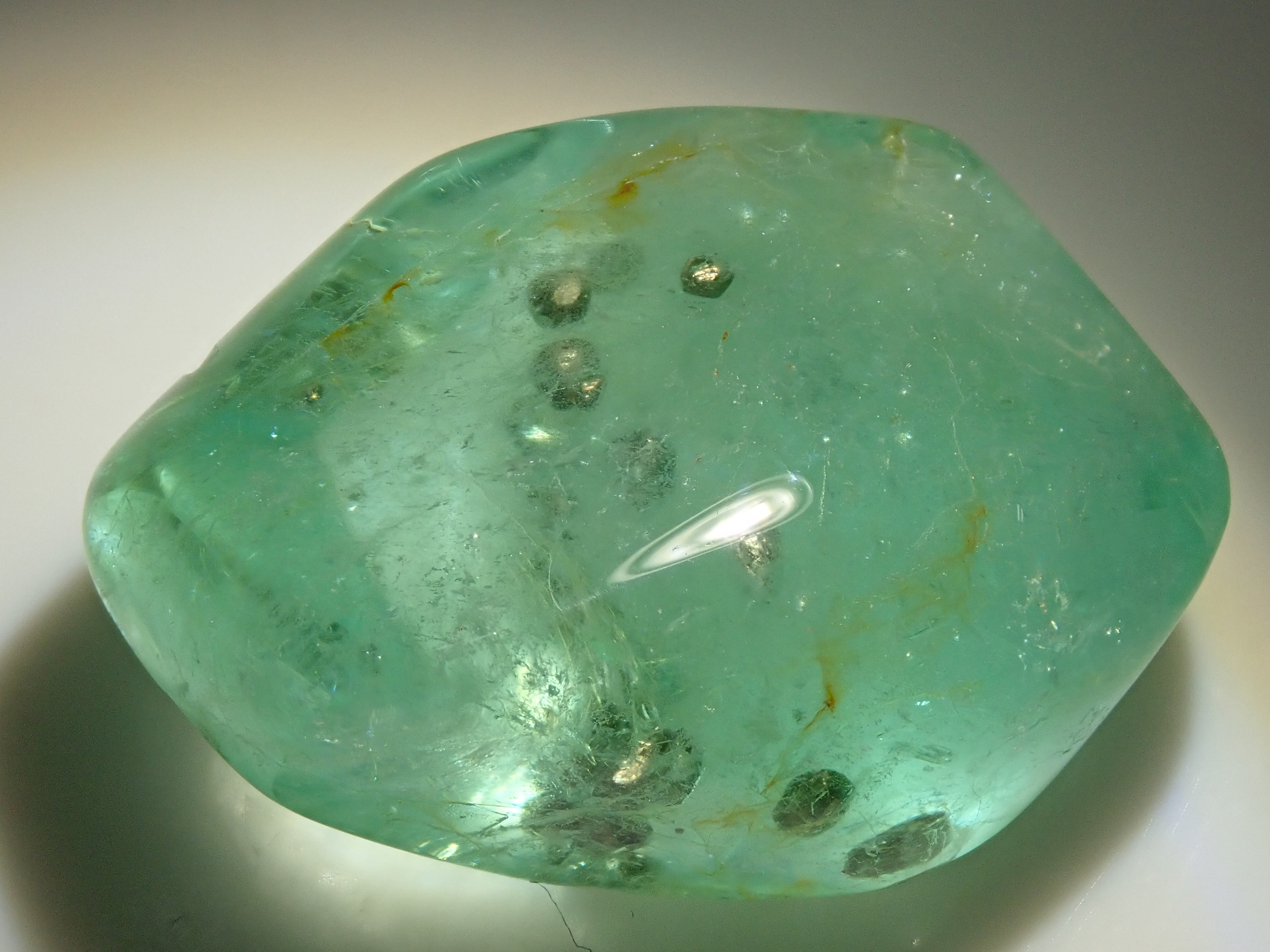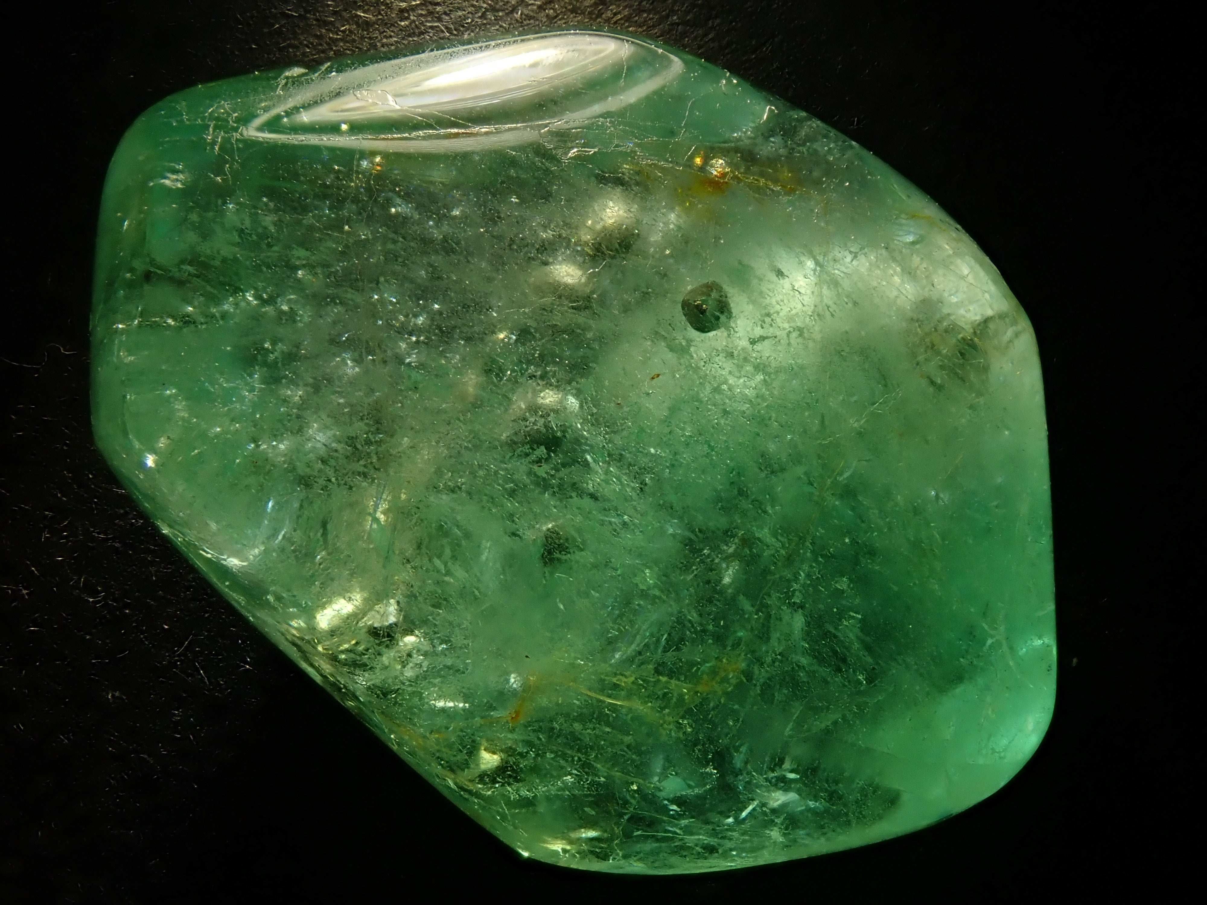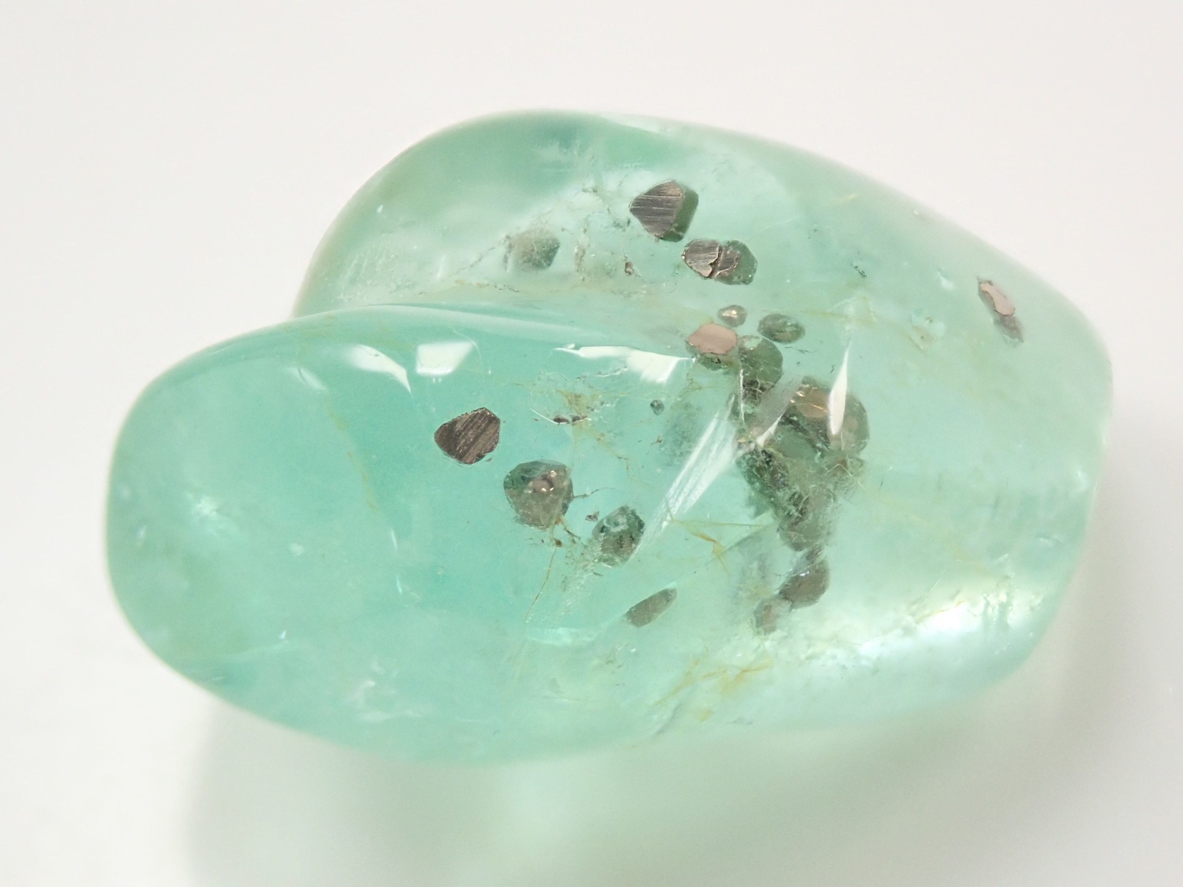 據說祖母綠美麗的綠色會根據其生長地點的不同而改變。這是產自哥倫比亞的祖母綠,據說有特別深的綠色。祖母綠通常是一種有很多划痕的寶石,因此通常會用油對其進行處理,以使划痕不那麼明顯。享受優雅的綠色。這是祖母綠中的黃鐵礦。 這是來自哥倫比亞穆佐礦的祖母綠,透明度高,黃鐵礦美麗。