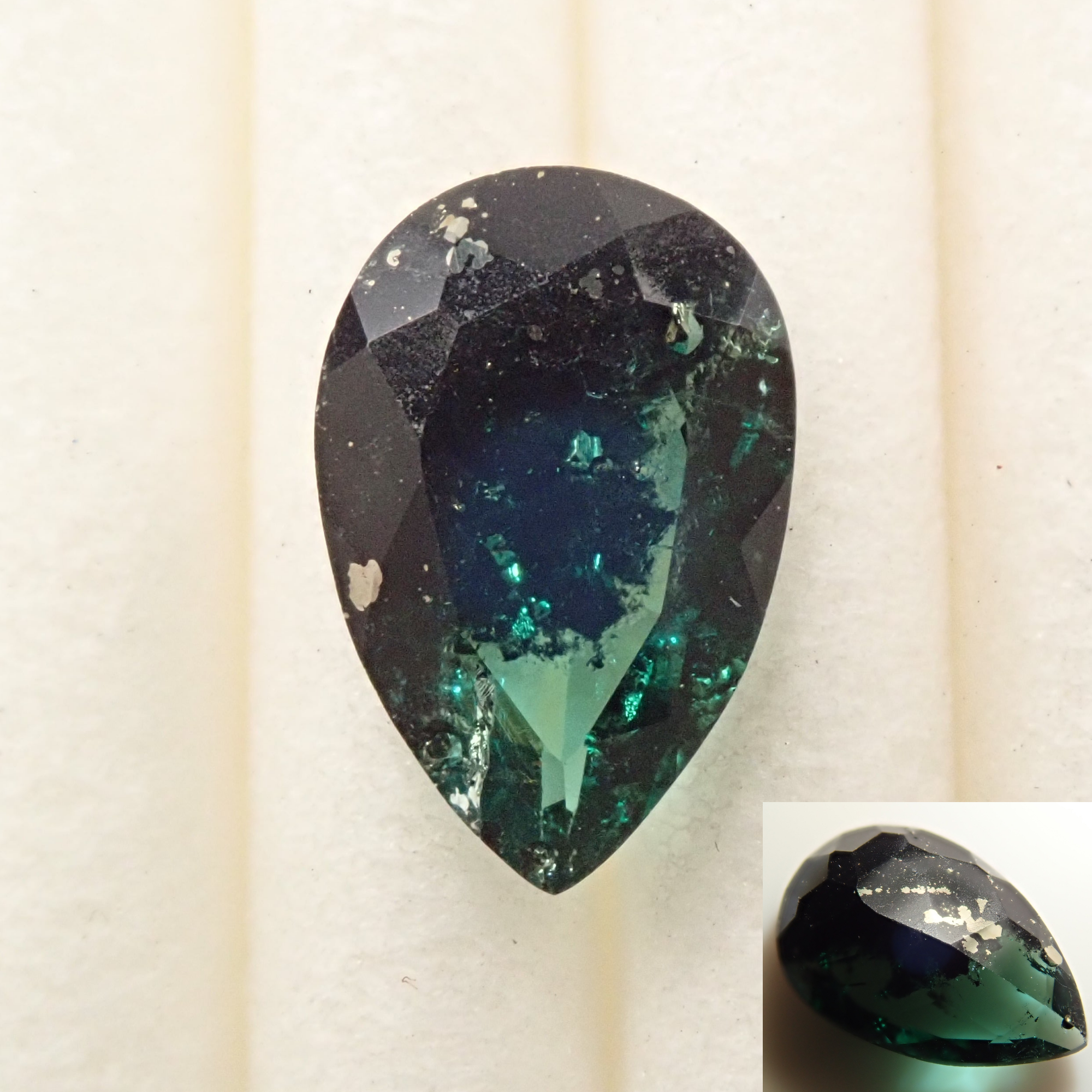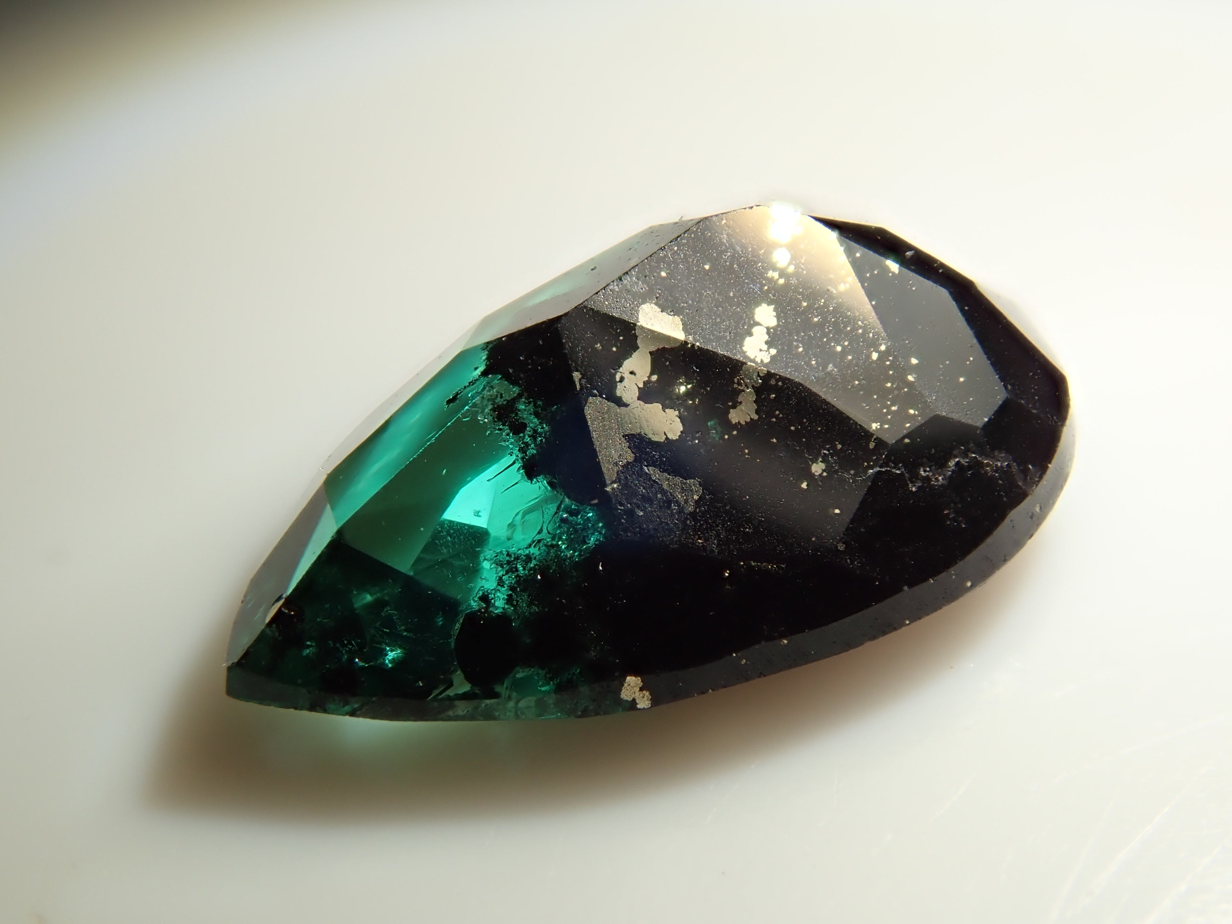 據說祖母綠美麗的綠色會根據其生長地點的不同而改變。這是產自哥倫比亞的祖母綠,據說有特別深的綠色。祖母綠通常是一種有很多划痕的寶石,因此通常會用油對其進行處理,以使划痕不那麼明顯。享受優雅的綠色。這是祖母綠中的黃鐵礦。