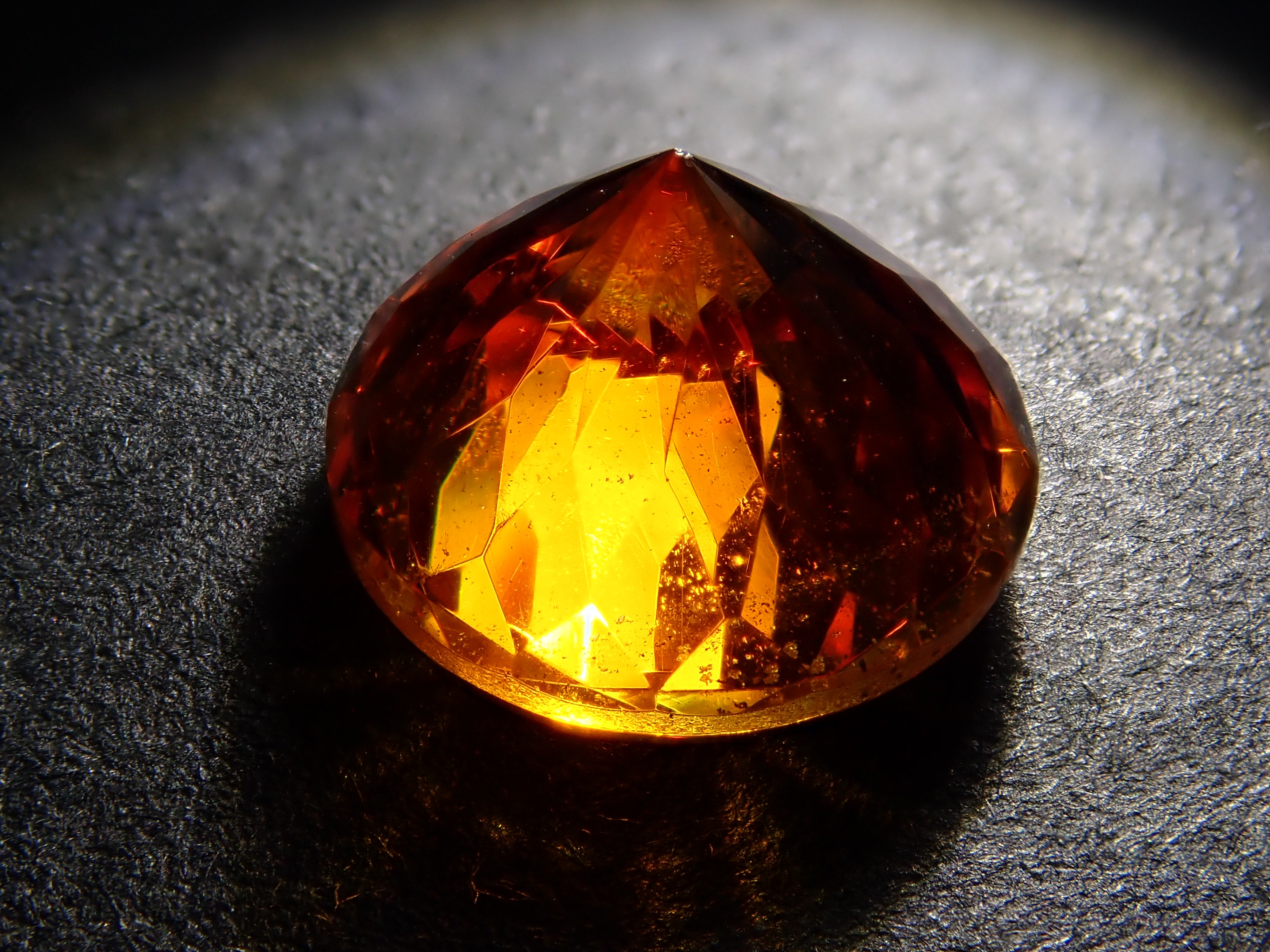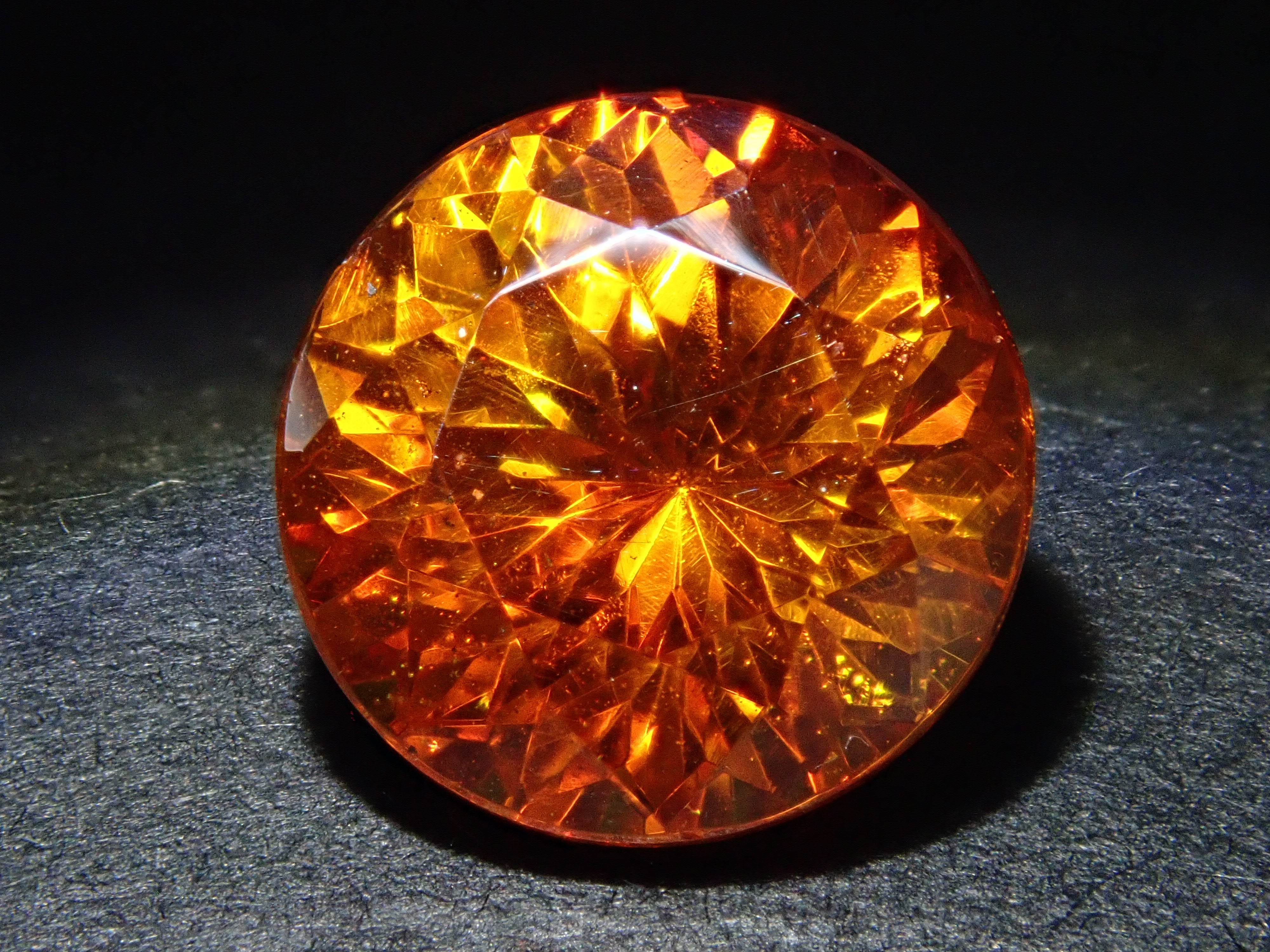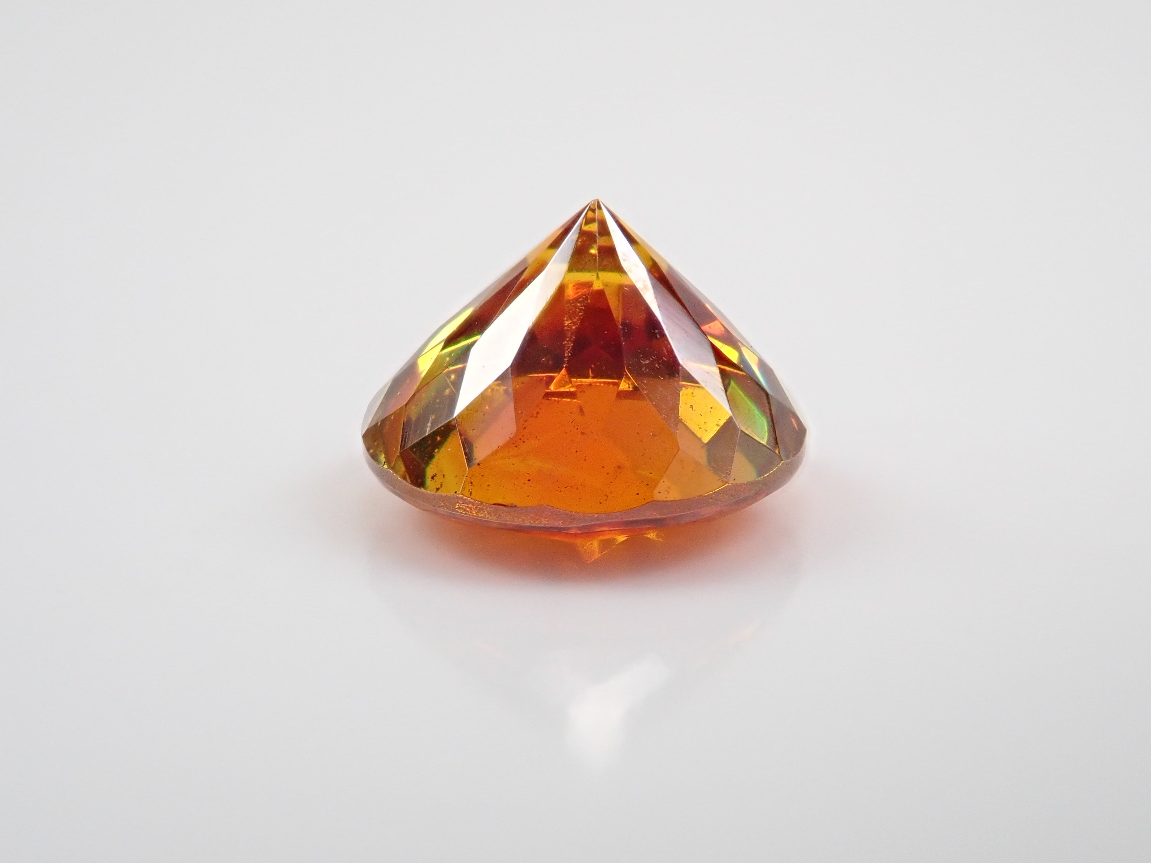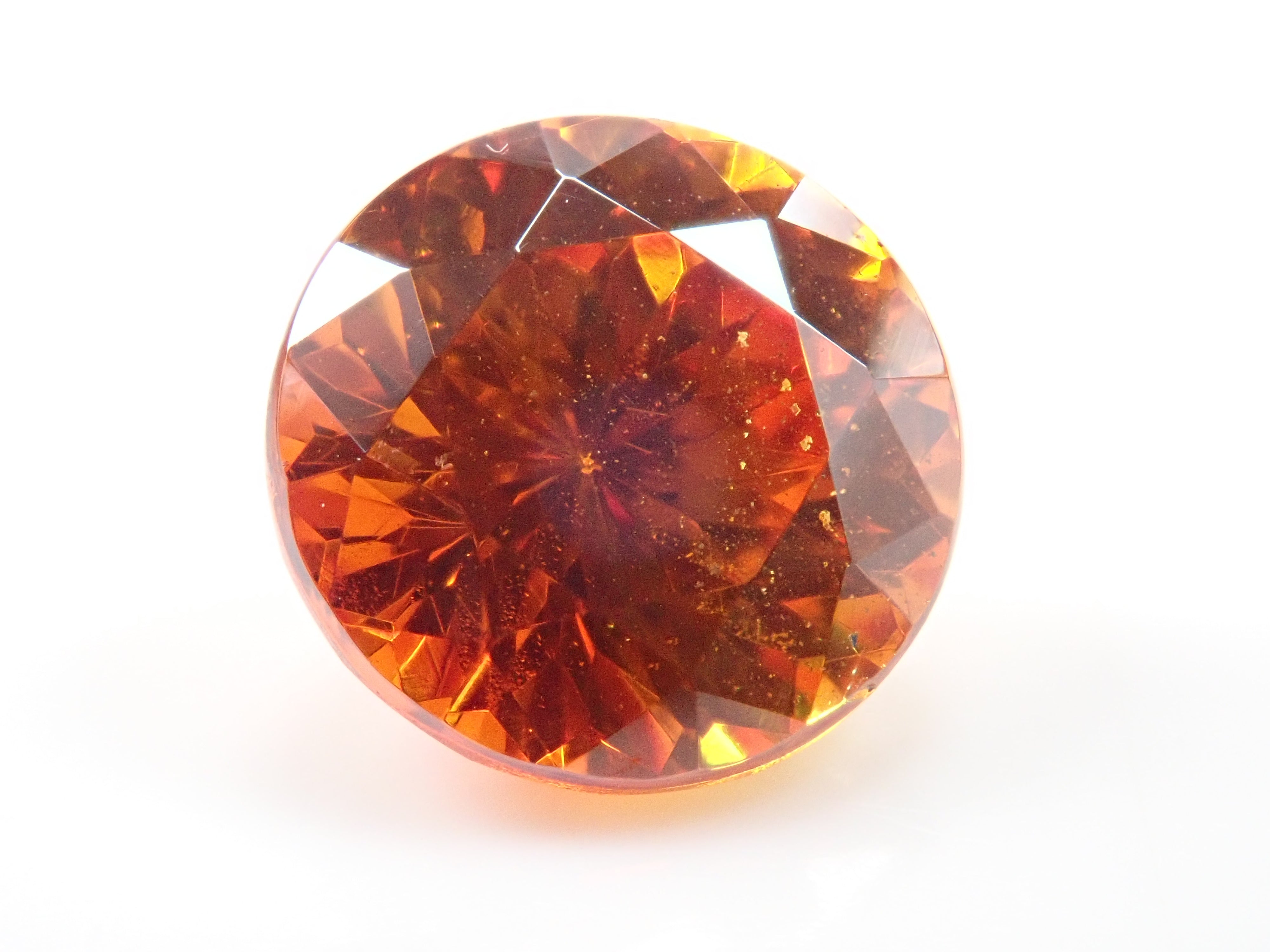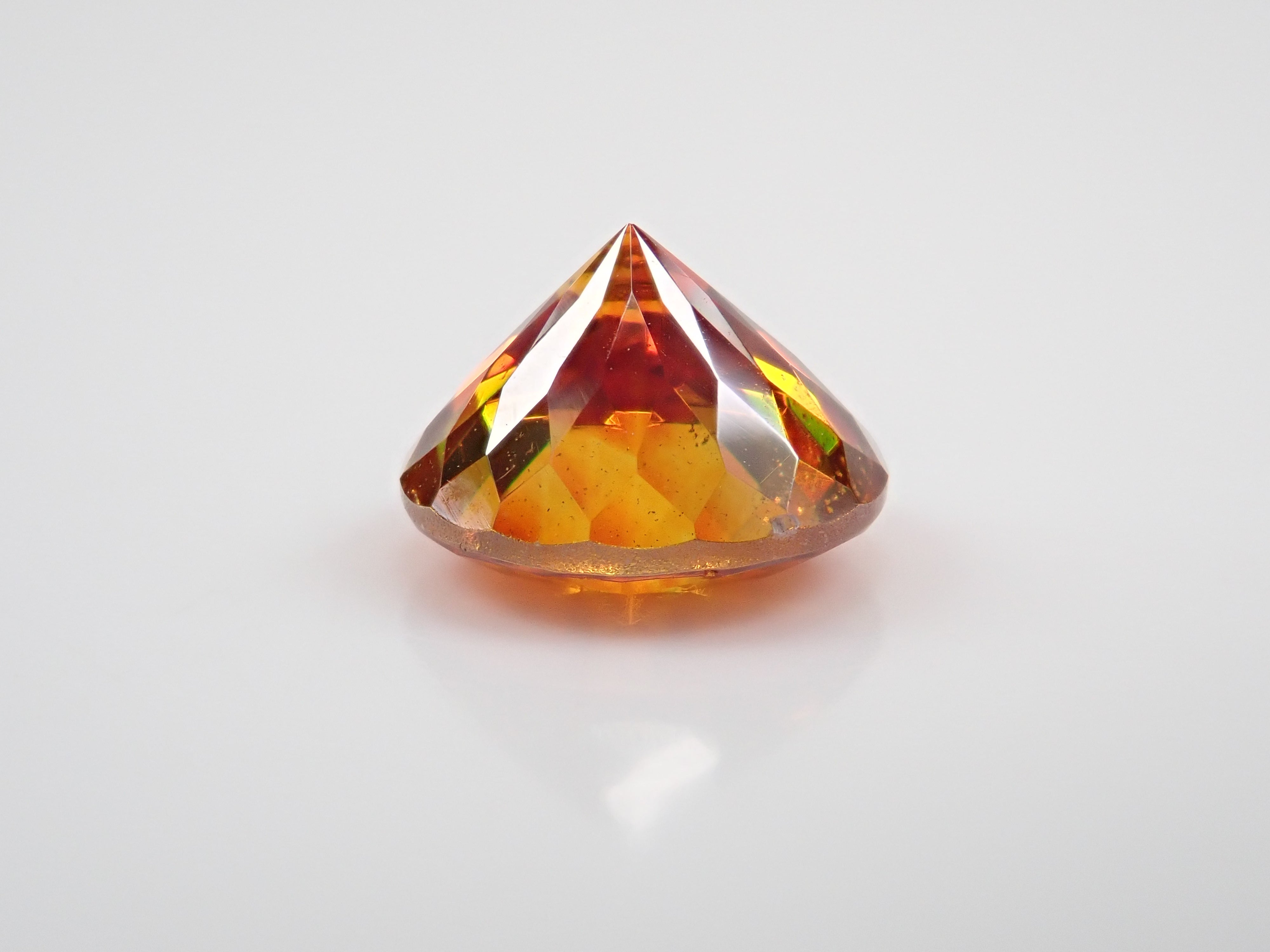 閃鋅礦的色散率接近鑽石的四倍,並呈現出絢麗的火彩。據說是流通量很小、市場上數量不多的稀有寶石之一。底色有黃、橙、綠等,在火中可以欣賞到黃、棕、橙、紅、綠等各種顏色。 產自西班牙的 8 毫米美麗閃亮橙色閃鋅礦。它是一種高品質的橙色閃鋅礦,透明度高。