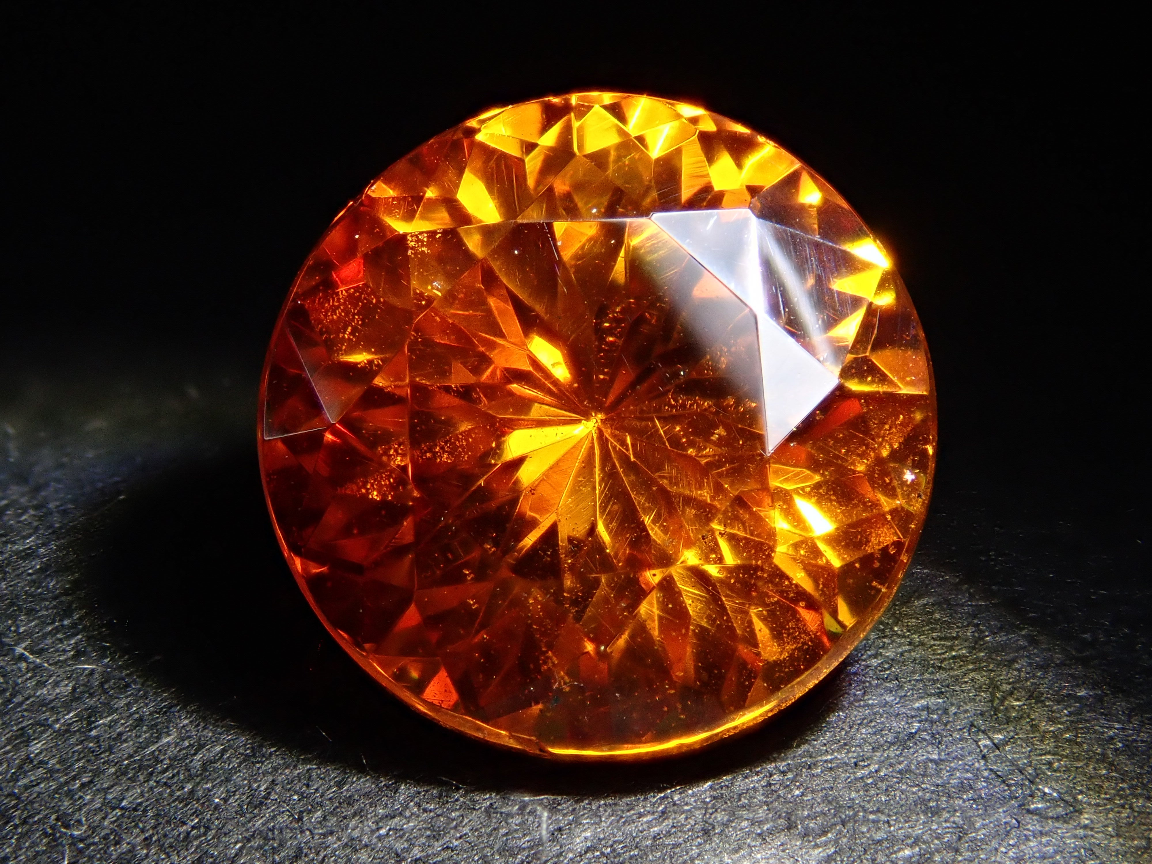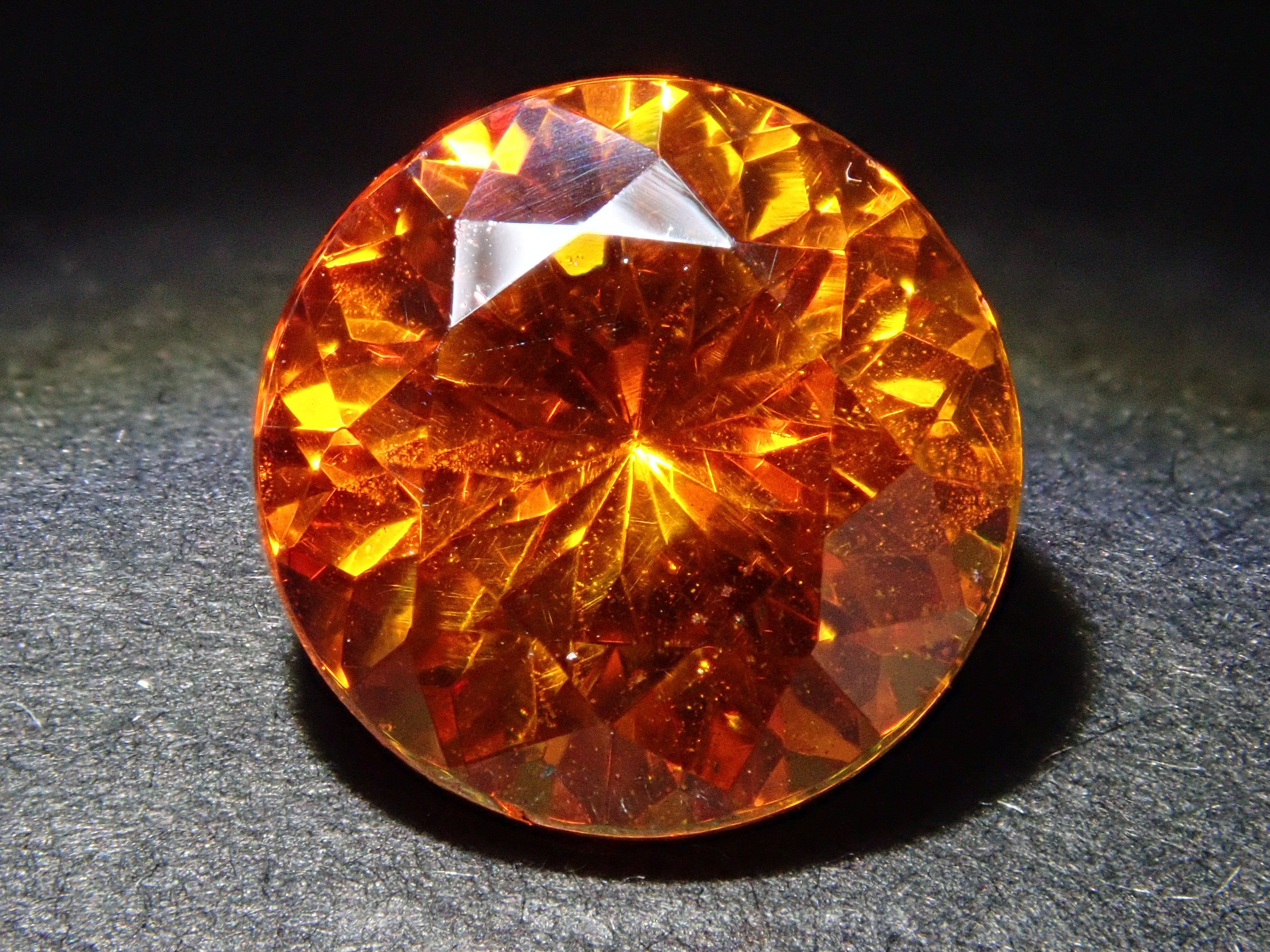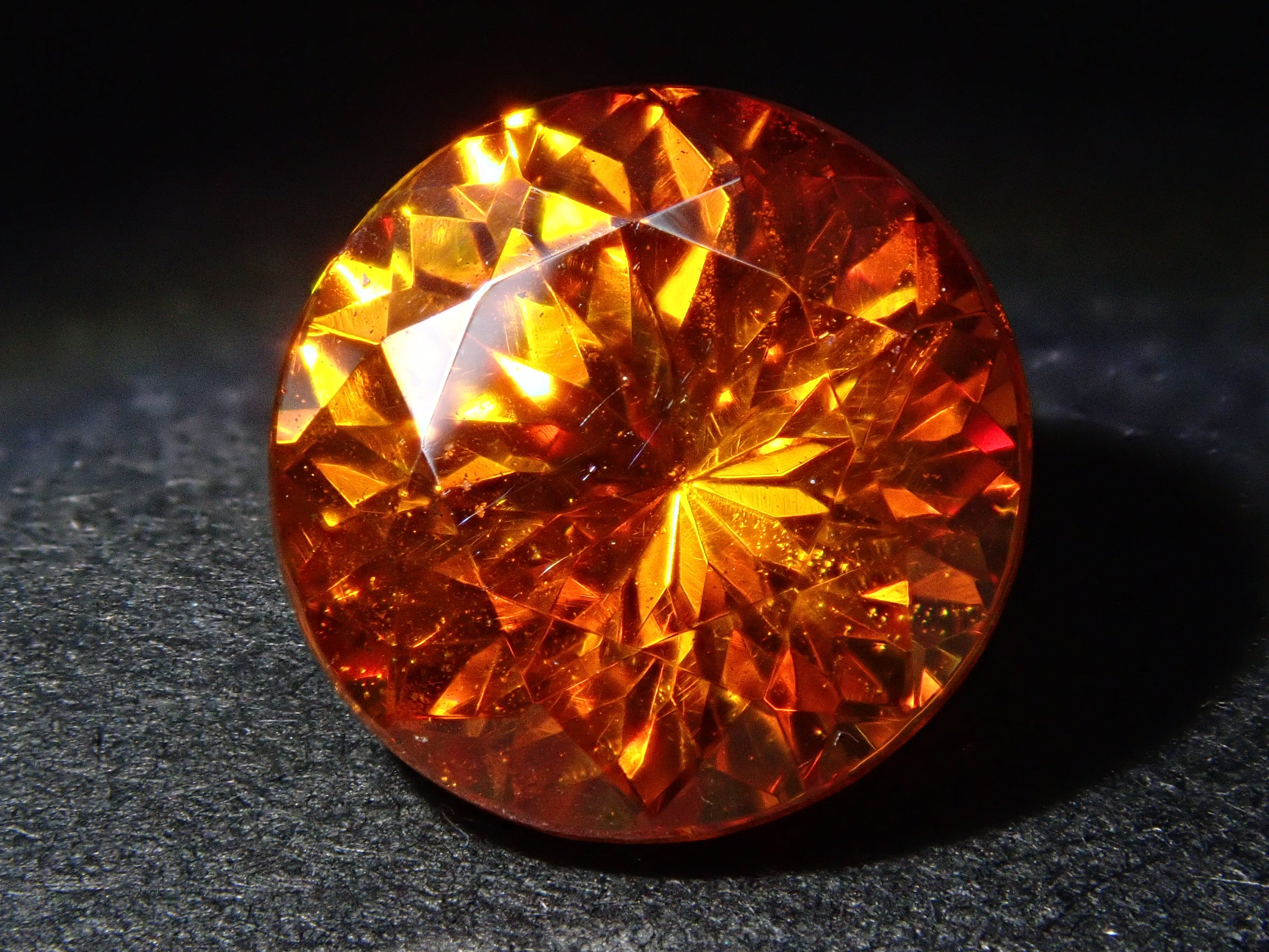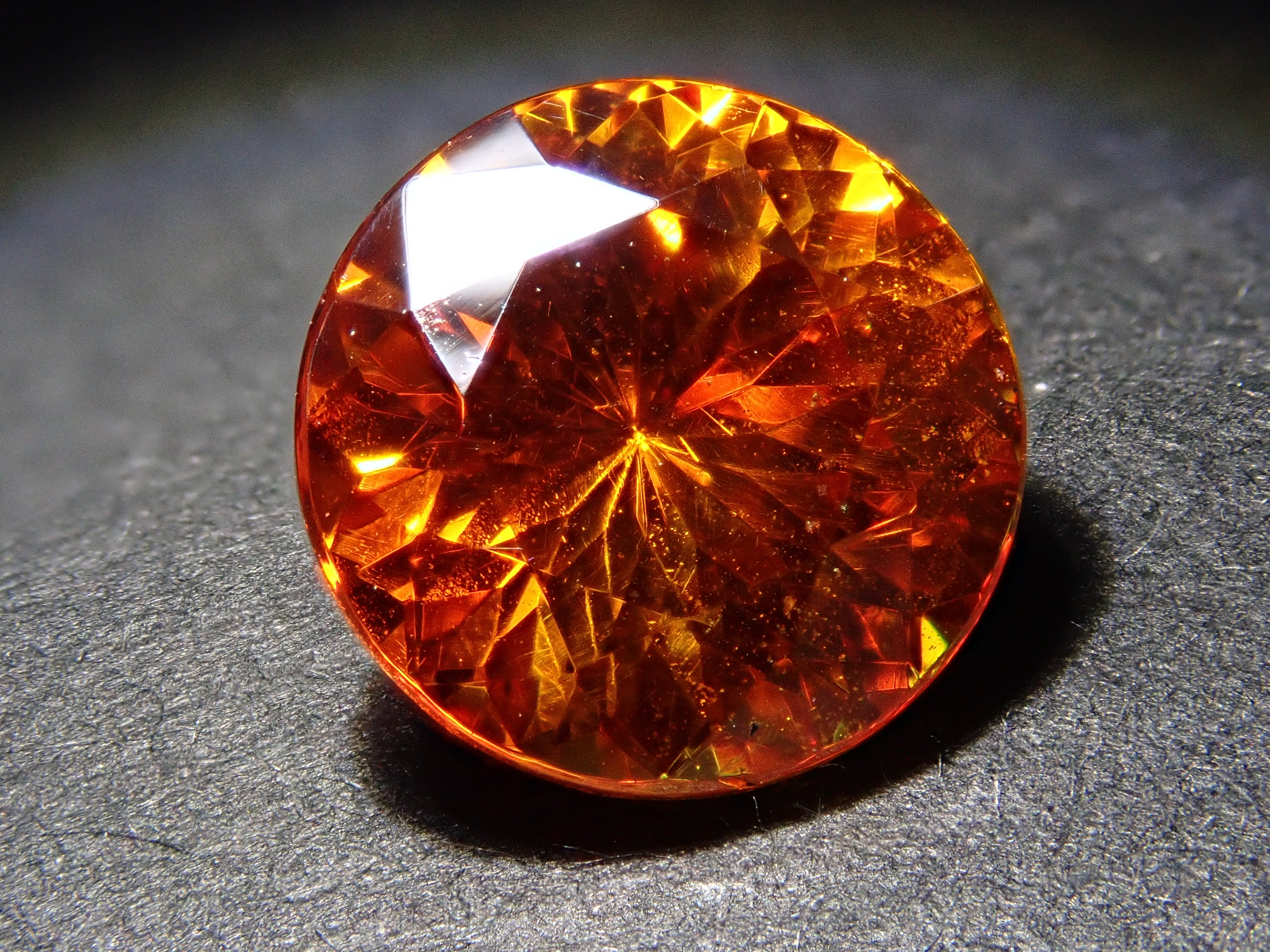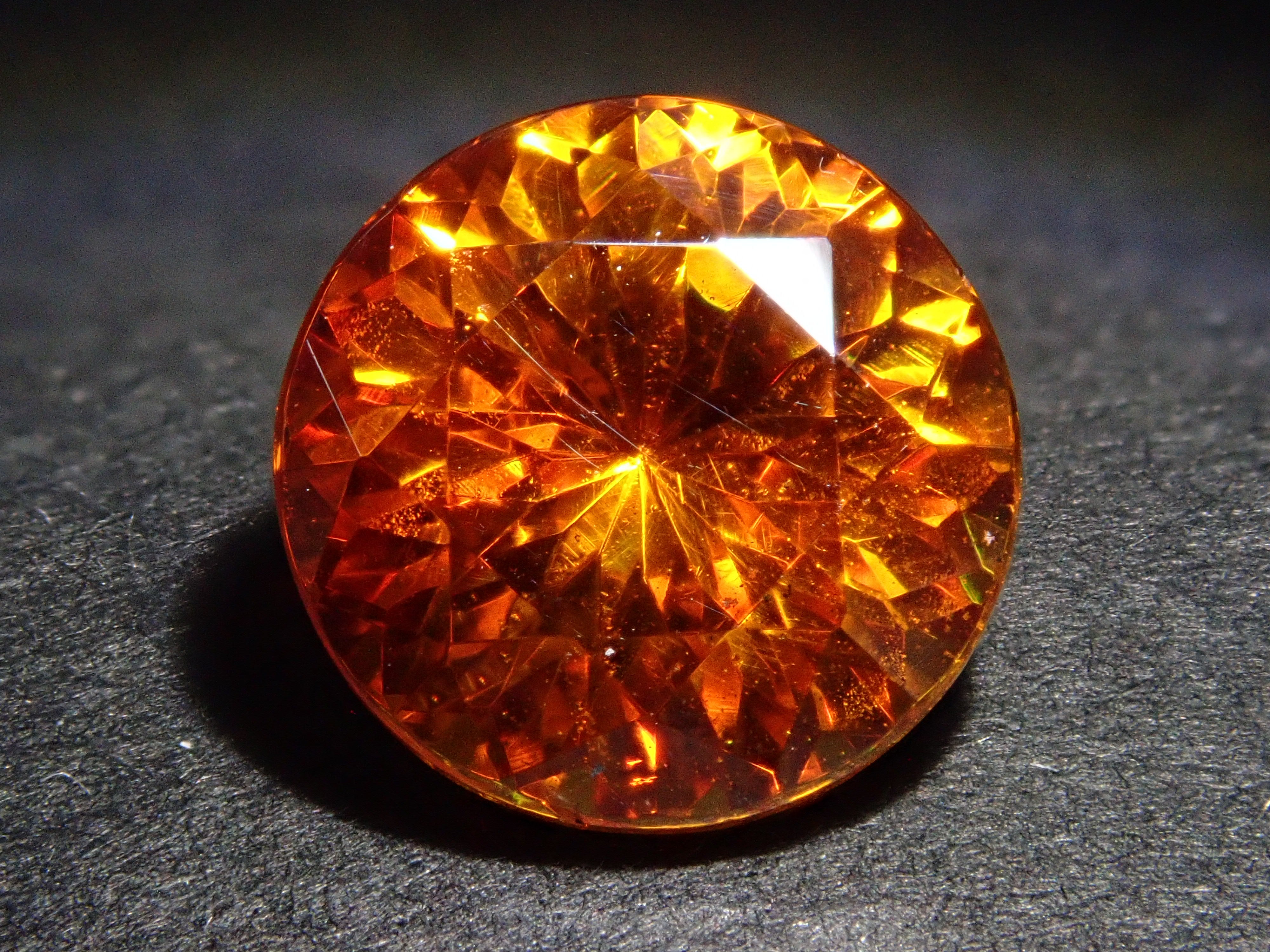 閃鋅礦的色散率接近鑽石的四倍,並呈現出絢麗的火彩。據說是流通量很小、市場上數量不多的稀有寶石之一。底色有黃、橙、綠等,在火中可以欣賞到黃、棕、橙、紅、綠等各種顏色。 產自西班牙的 8 毫米美麗閃亮橙色閃鋅礦。它是一種高品質的橙色閃鋅礦,透明度高。