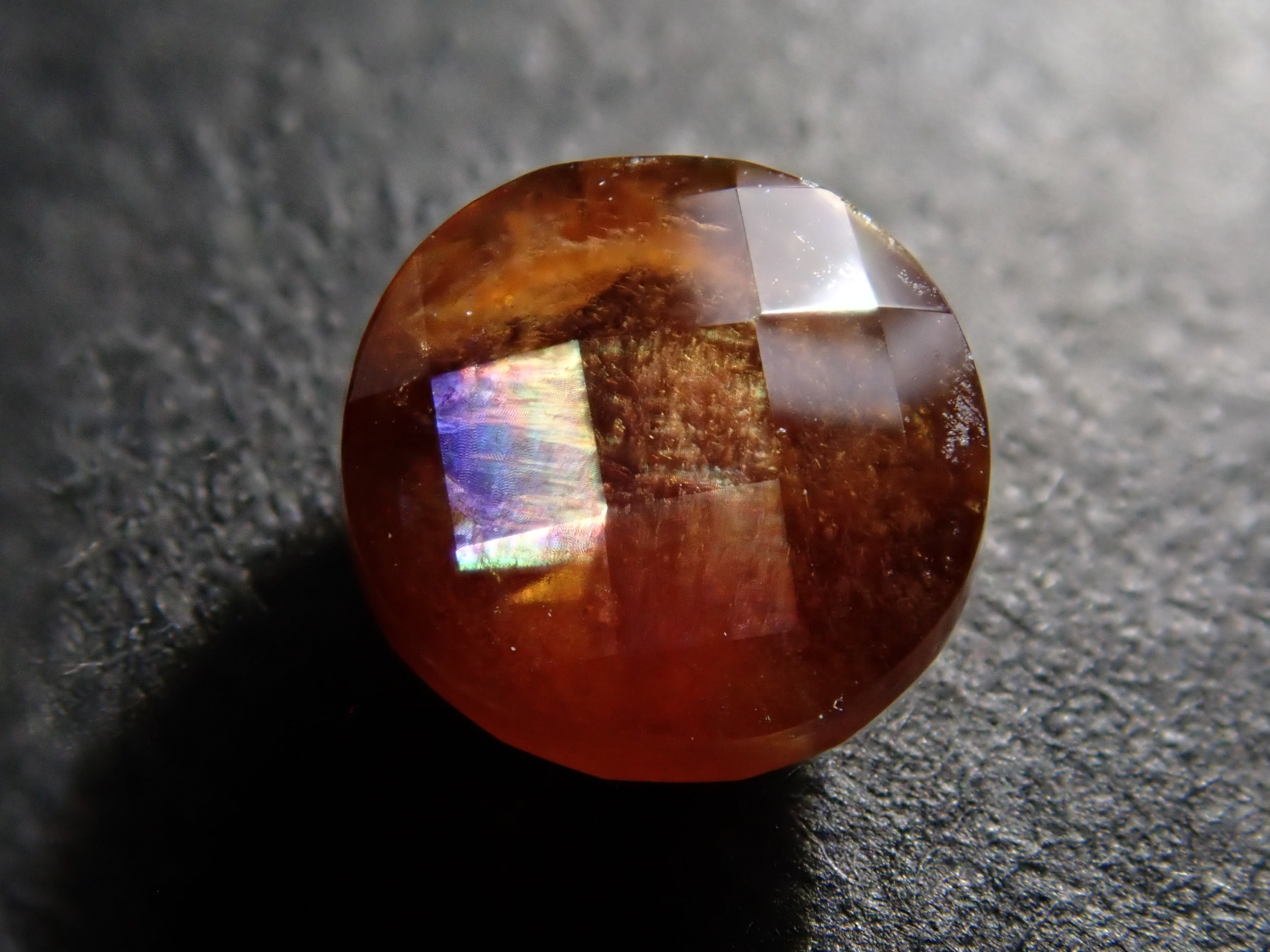 石榴石是一月的生日石。這是一種稍微不尋常的類型,您可以看到虹彩效果。由於其外觀,它被俗稱為“彩虹石榴石”和“虹彩鈣鐵榴石石榴石”。這是產自奈良縣天川村的彩虹石榴石(鈣鐵榴石石榴石),由斯里蘭卡拋光師 Sanjay 切割。