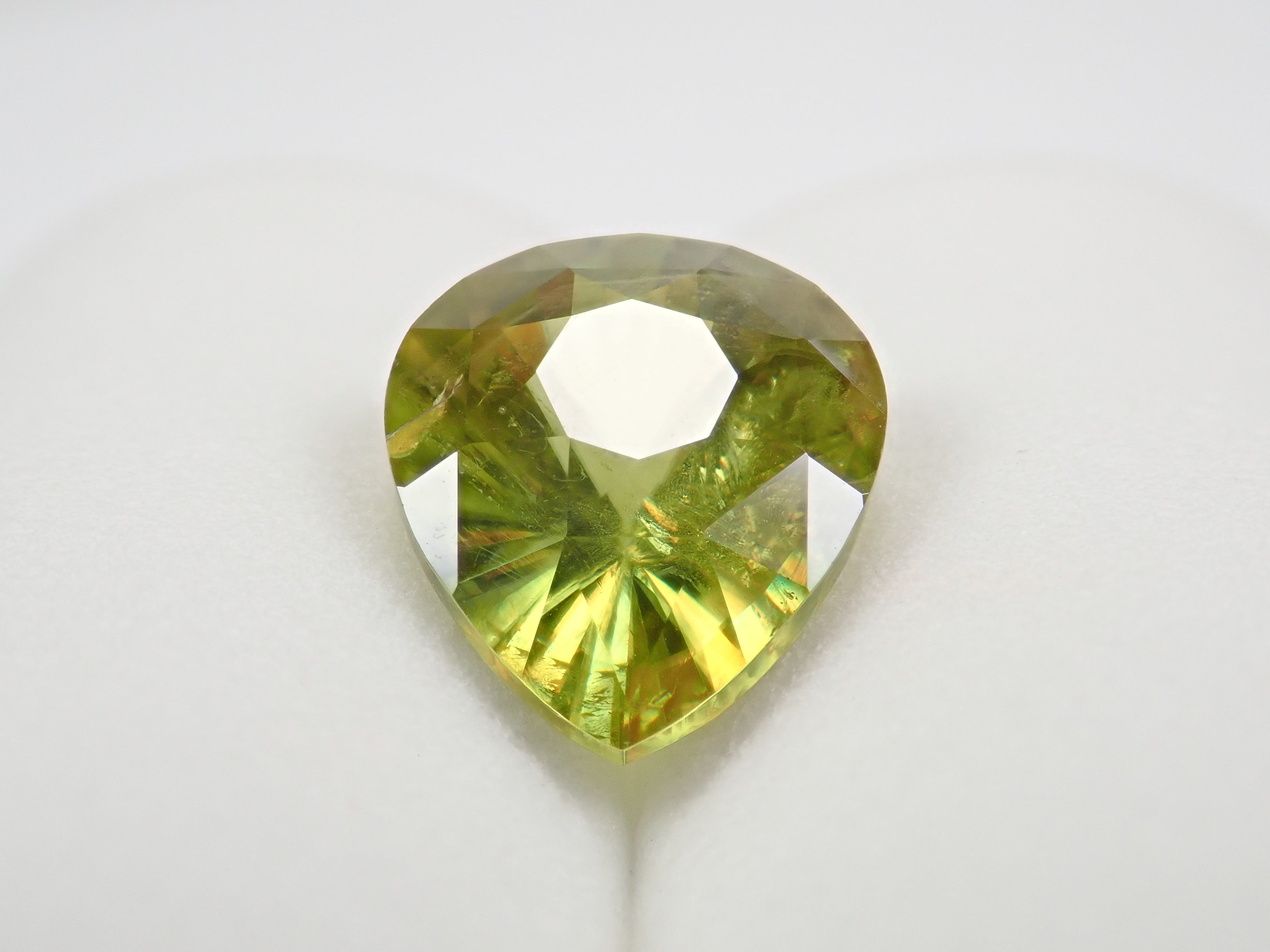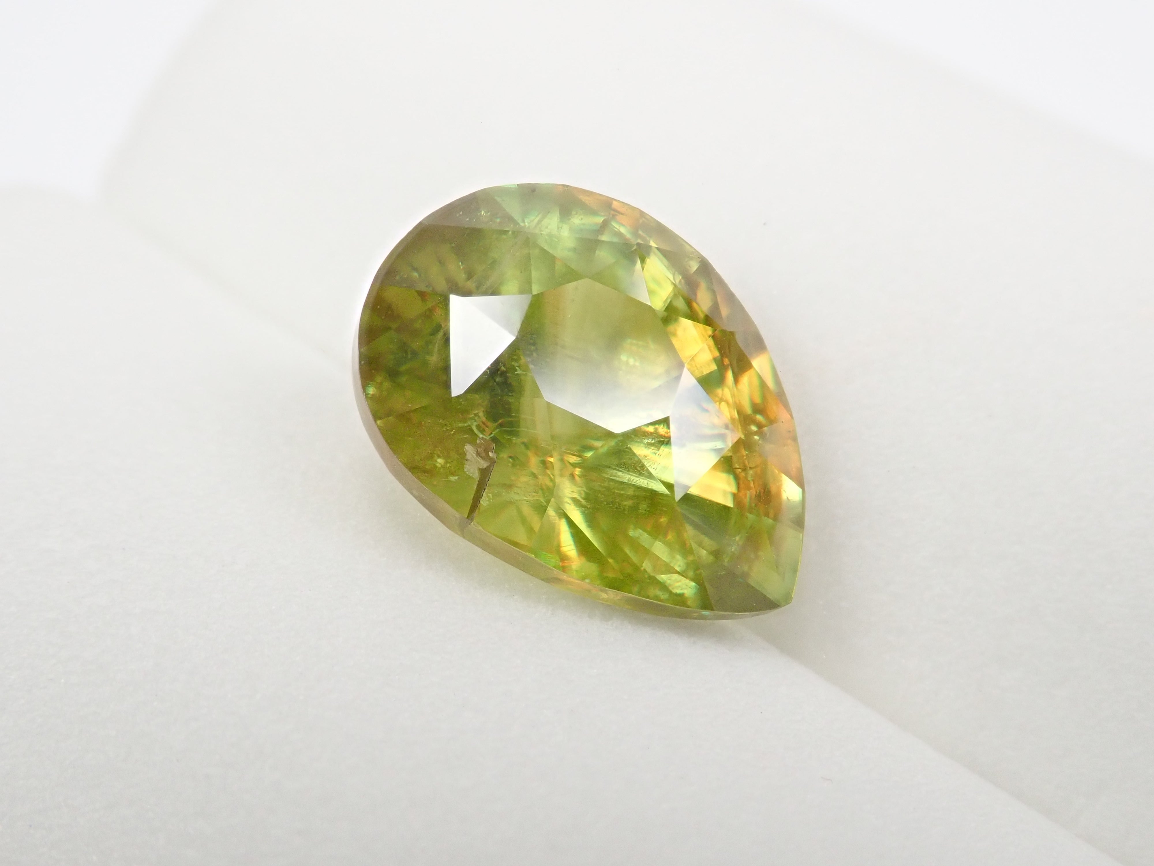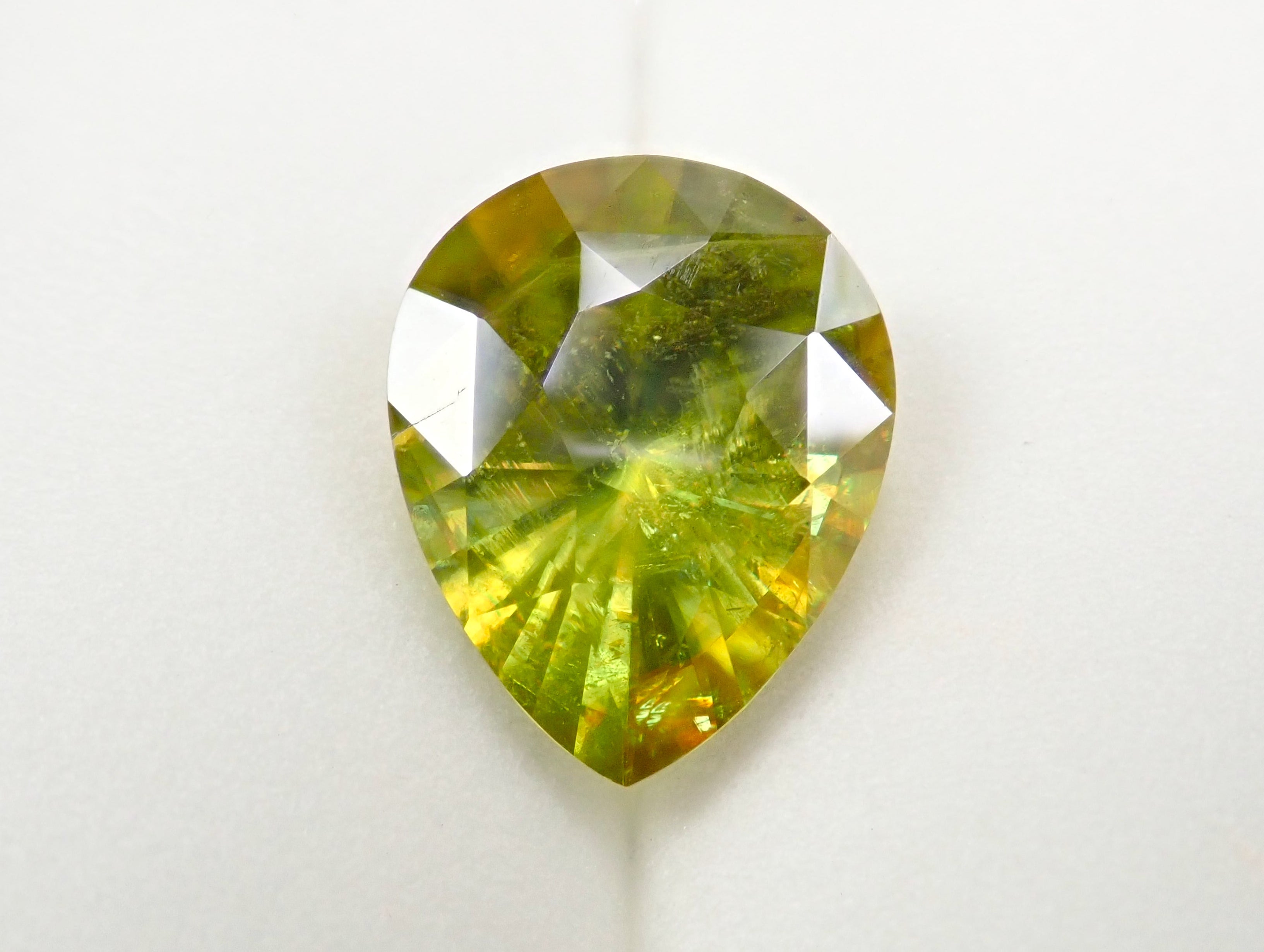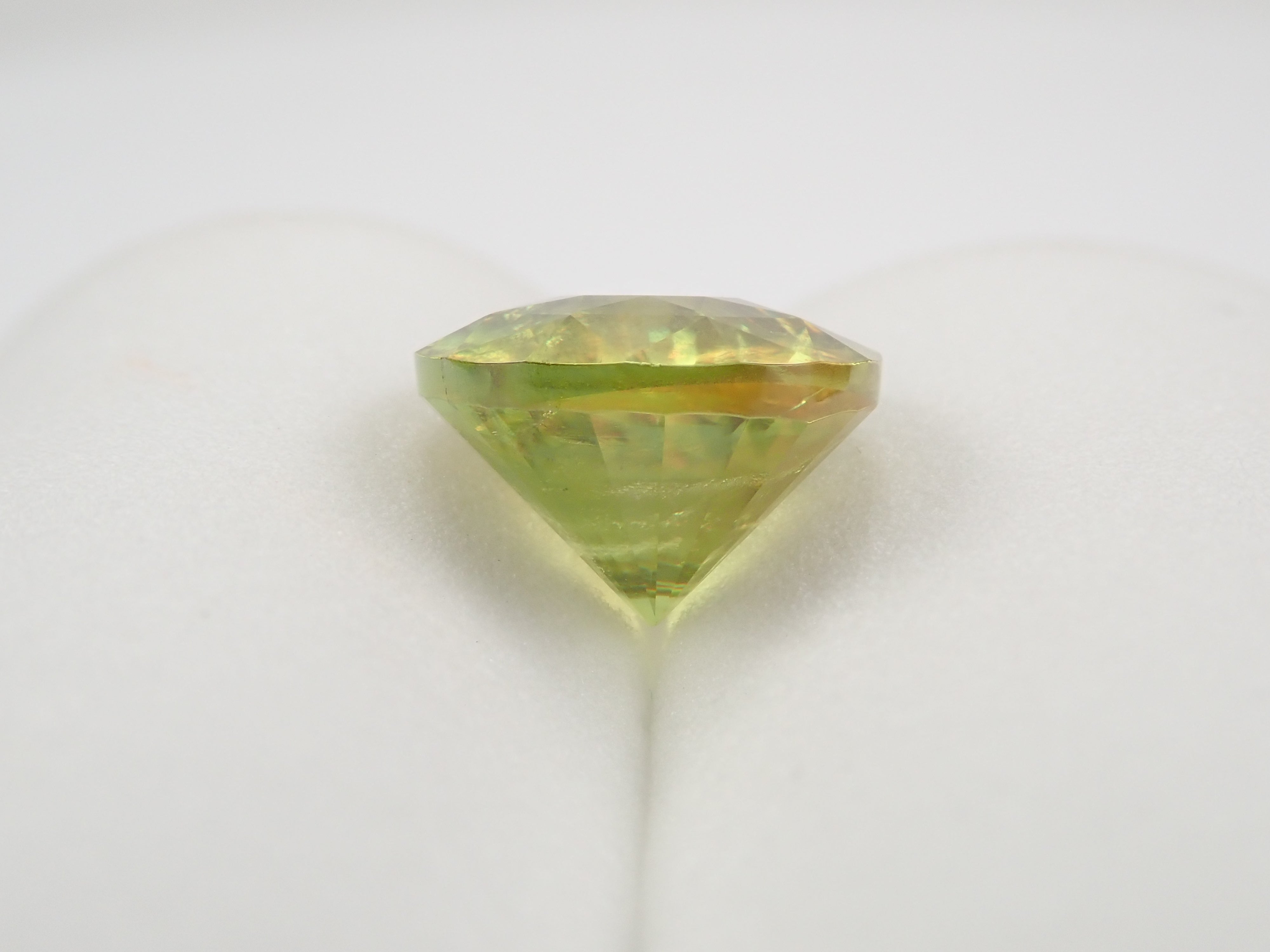 呈現出金色光芒和奢華火焰的榍石。它作為一種有吸引力的寶石而受到收藏家的歡迎,它散發出比鑽石更強大的火彩。輝度隨角度而快速變化的榍石。請在陽光下在手中滾動並觀察。請注意,有些照片是使用筆燈拍攝的。