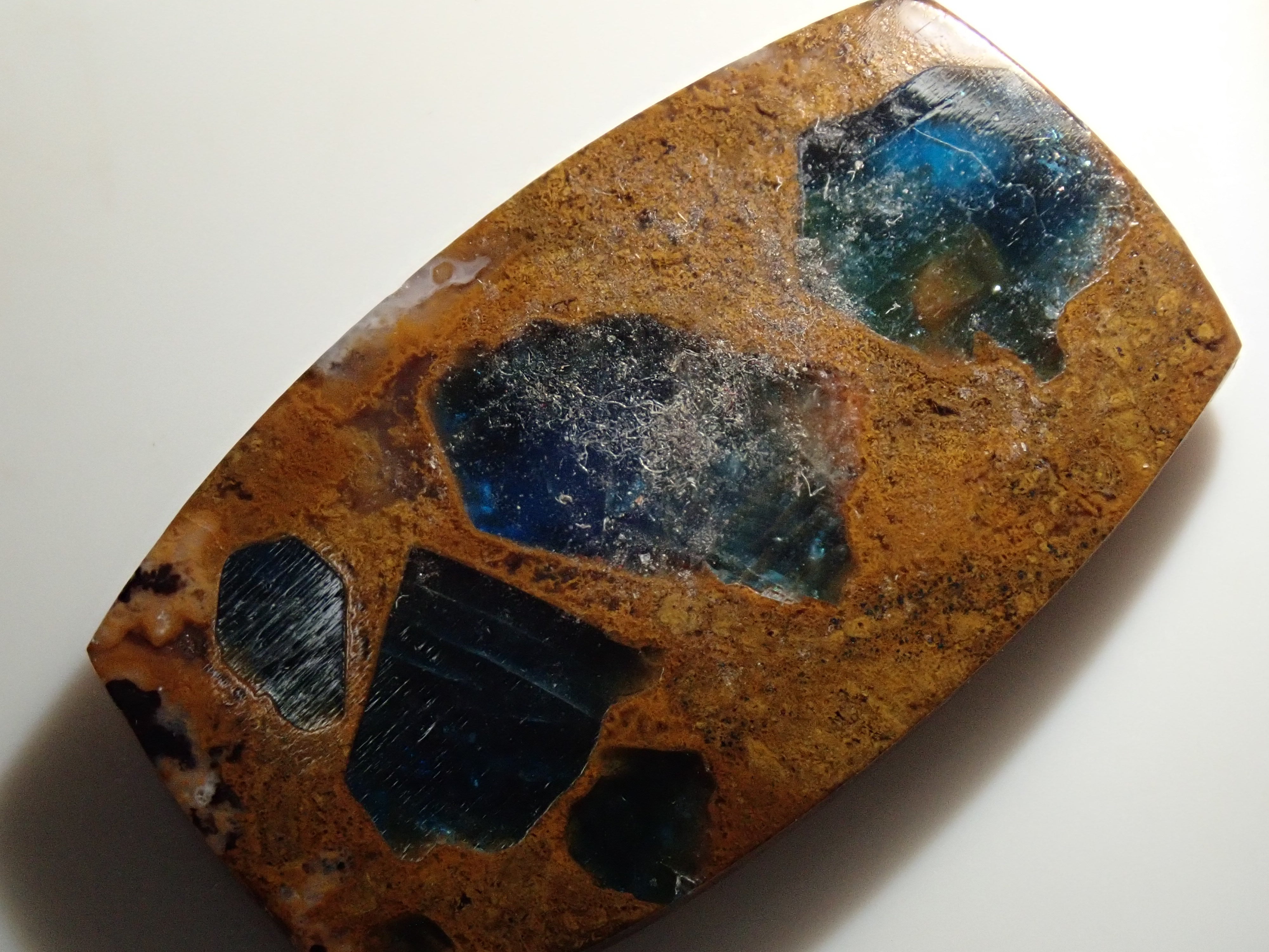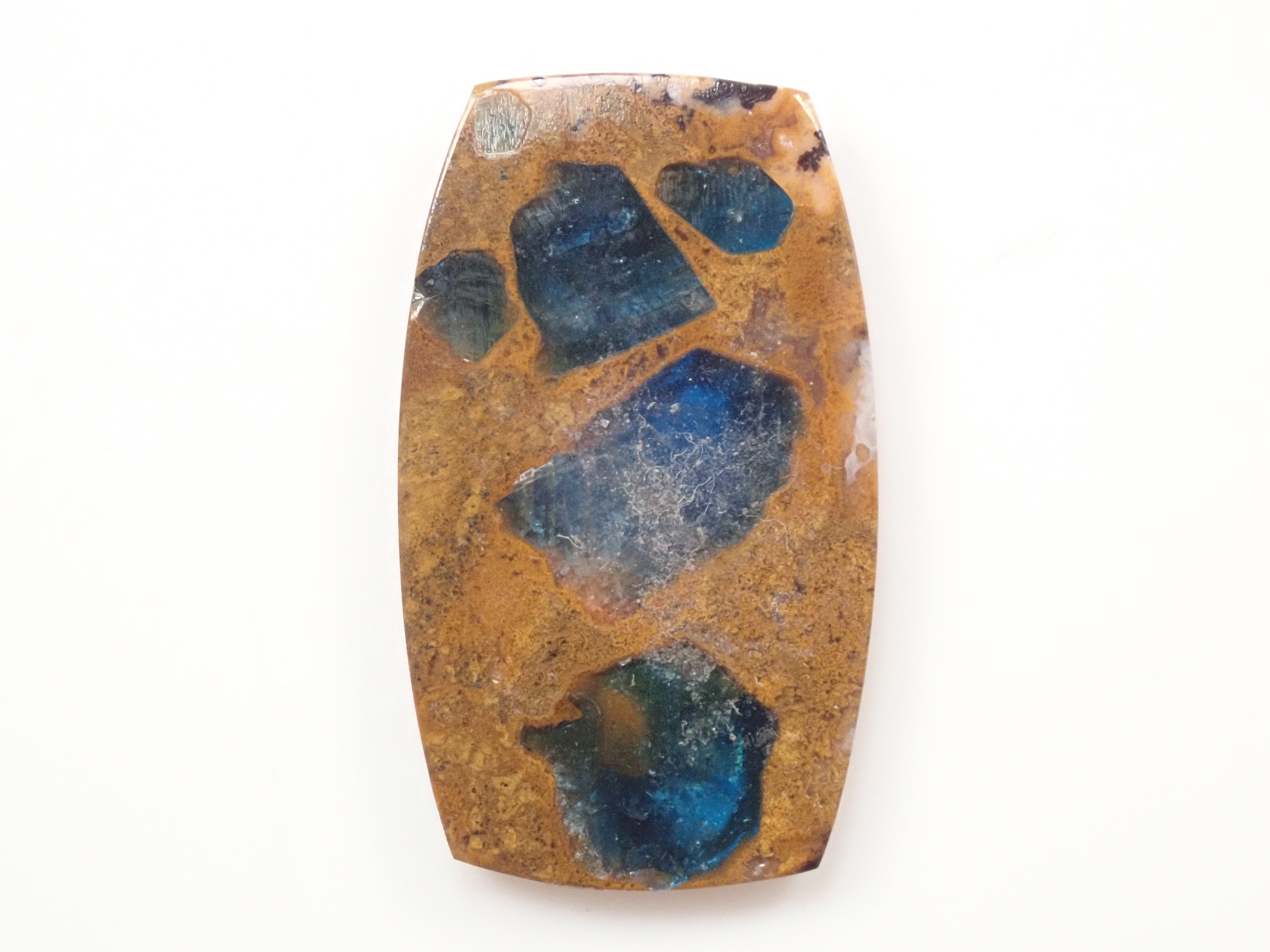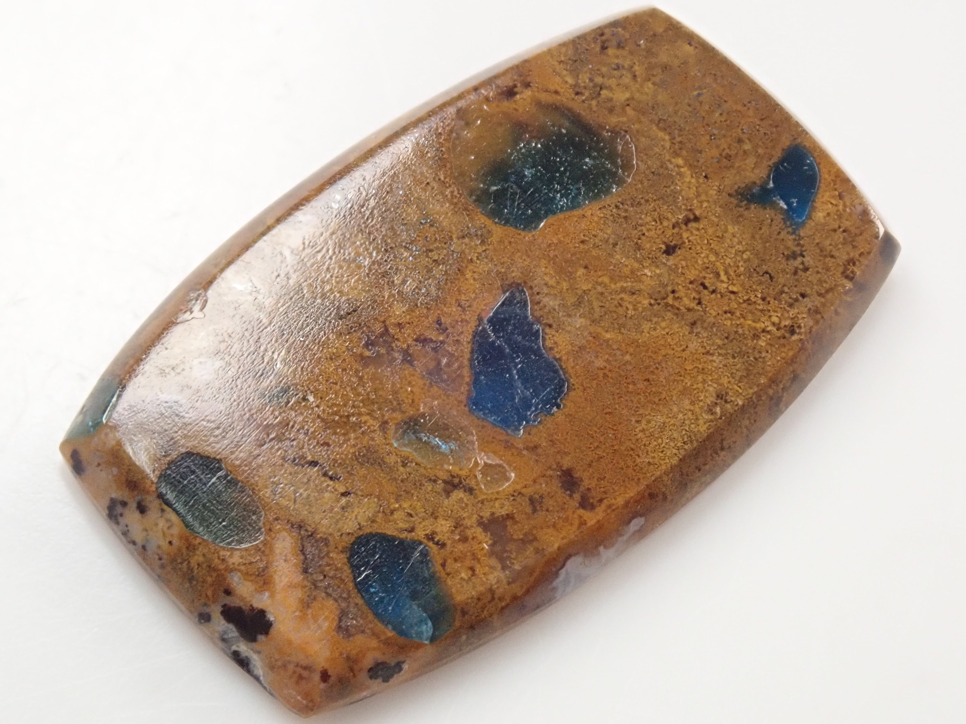 玉髓是石英的一種,但玉髓的種類很多。顏色和圖案也不同。這是一顆深奧的寶石。這是玉髓中的藍色磷灰石,玉髓內部含有磷灰石。碧玉中也稱為磷灰石。