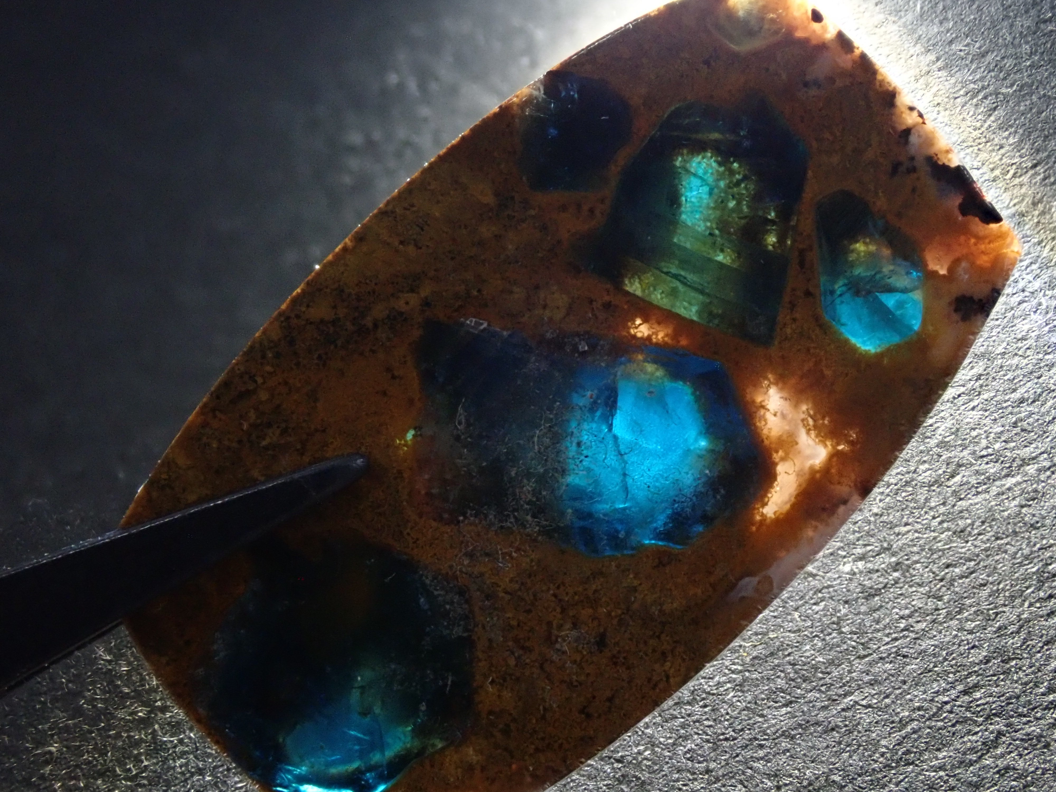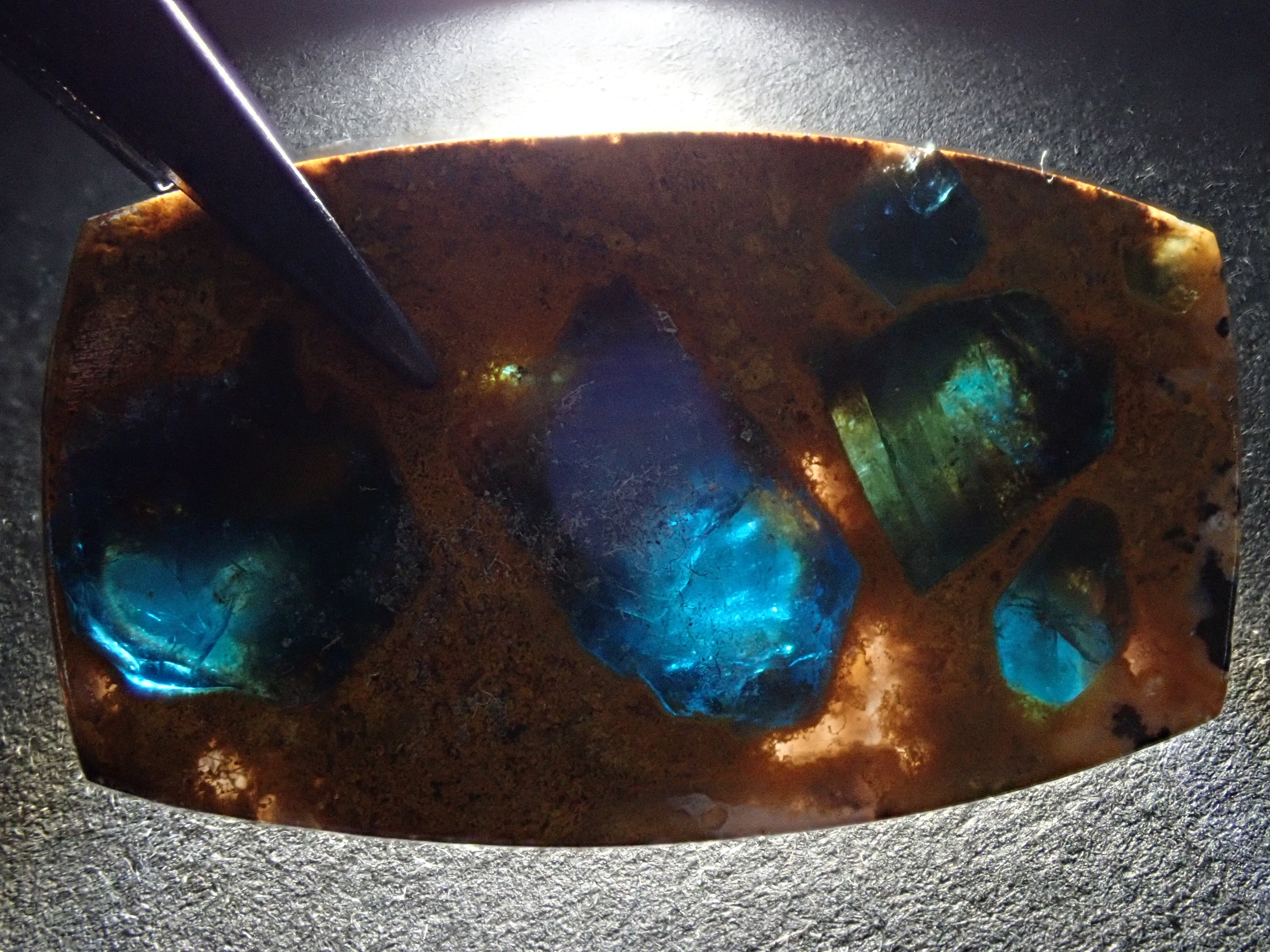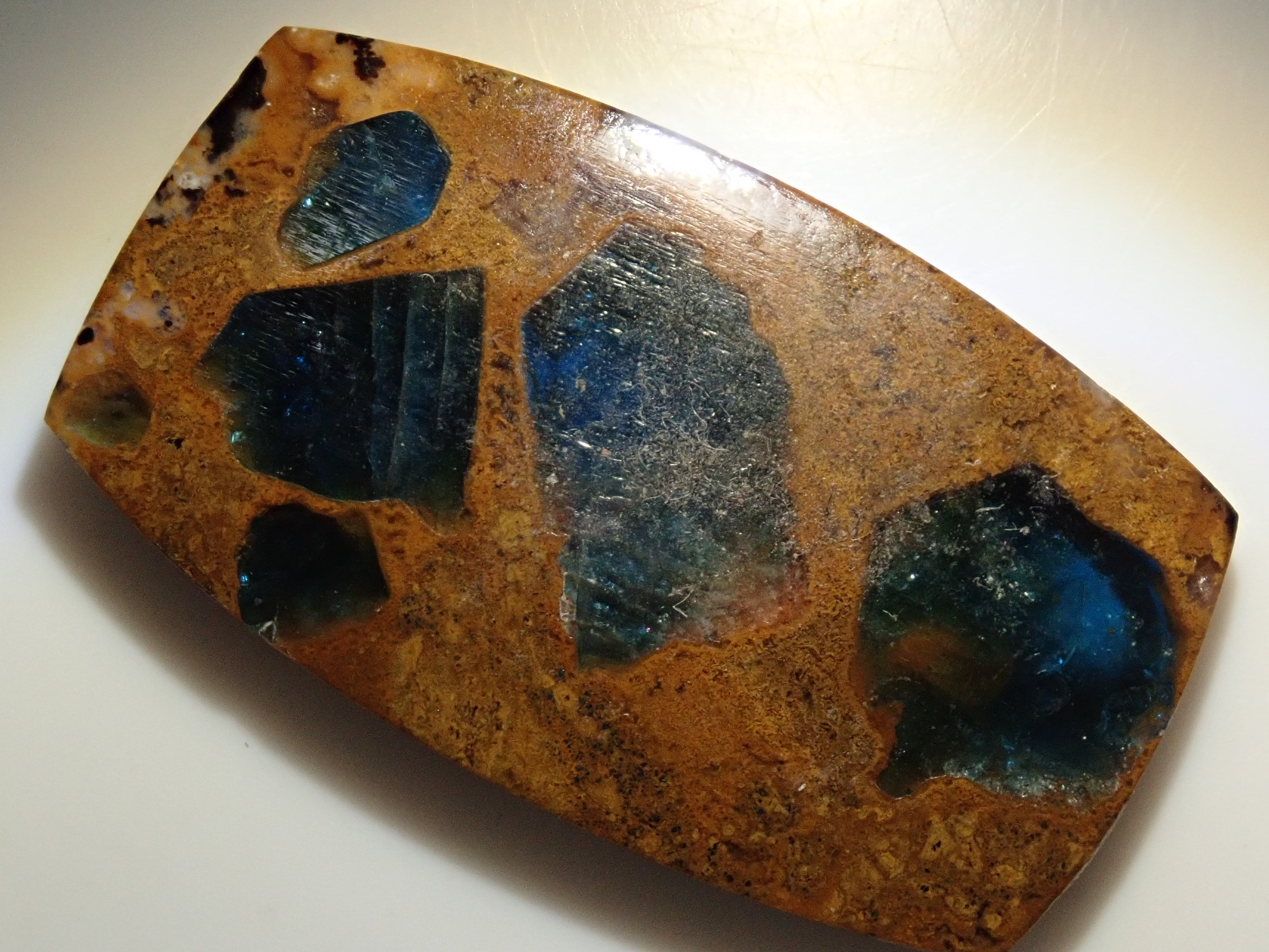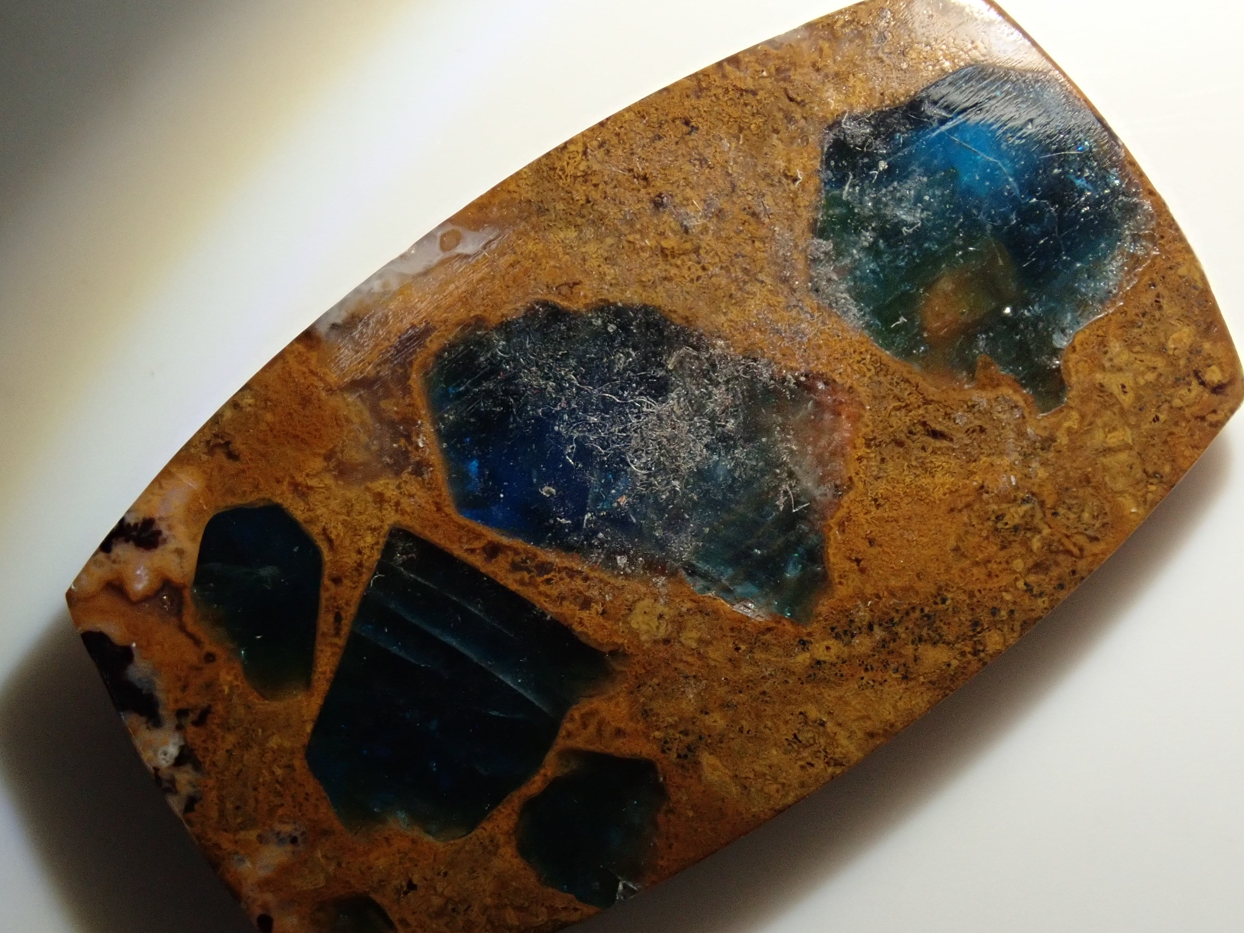 玉髓是石英的一種,但玉髓的種類很多。顏色和圖案也不同。這是一顆深奧的寶石。這是玉髓中的藍色磷灰石,玉髓內部含有磷灰石。碧玉中也稱為磷灰石。