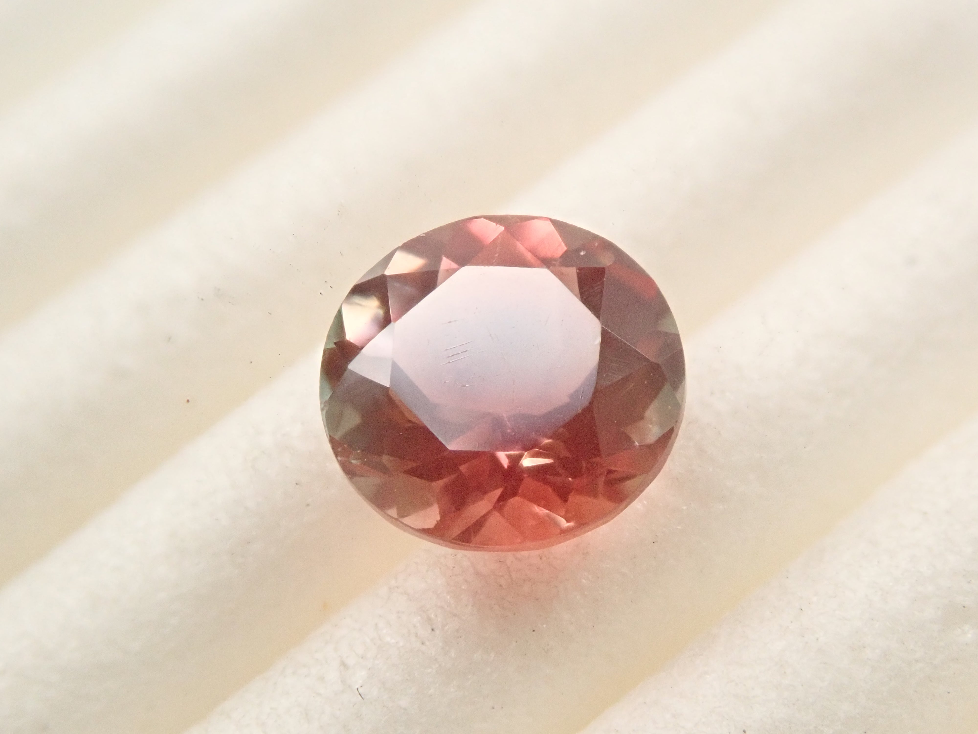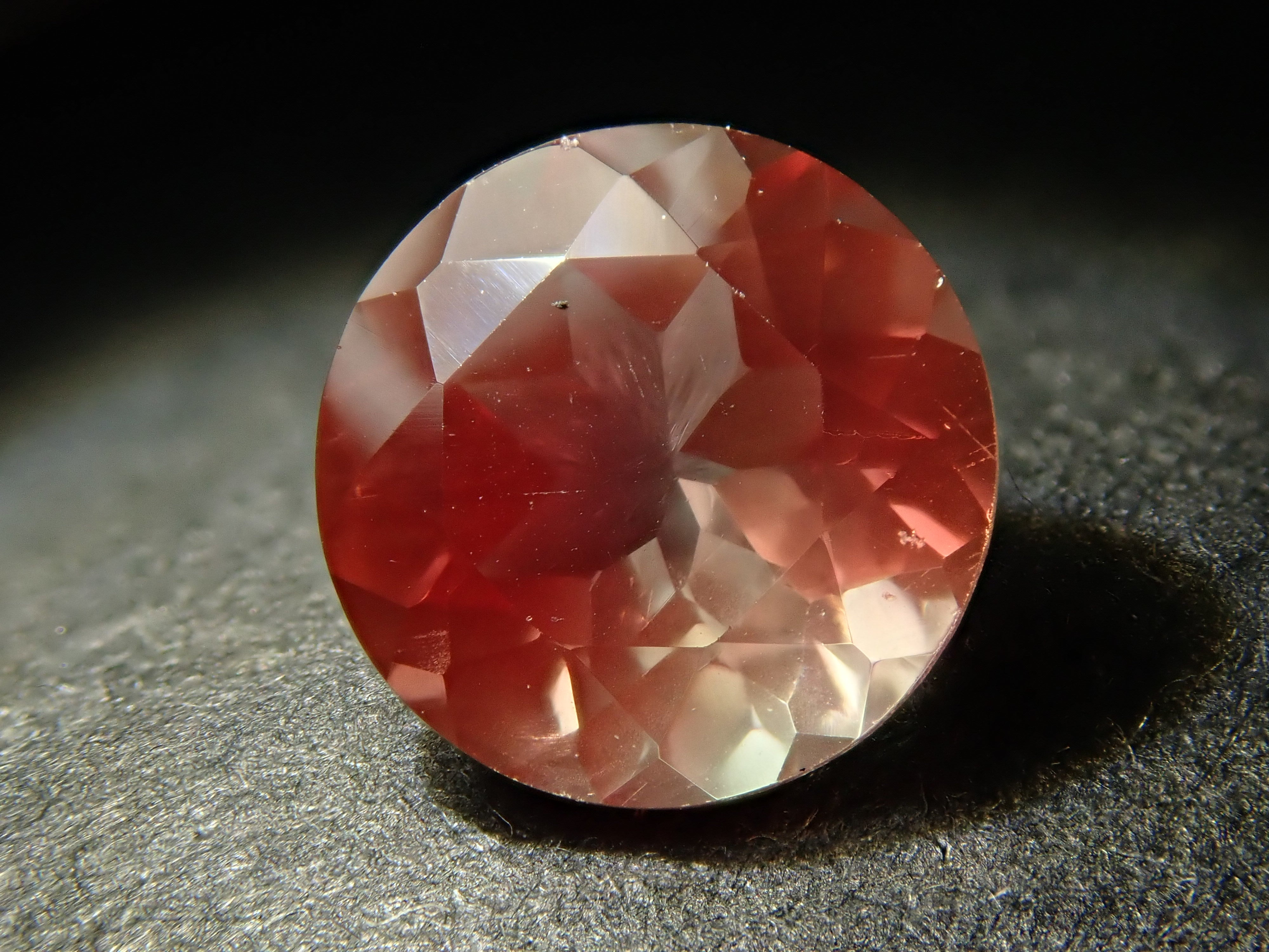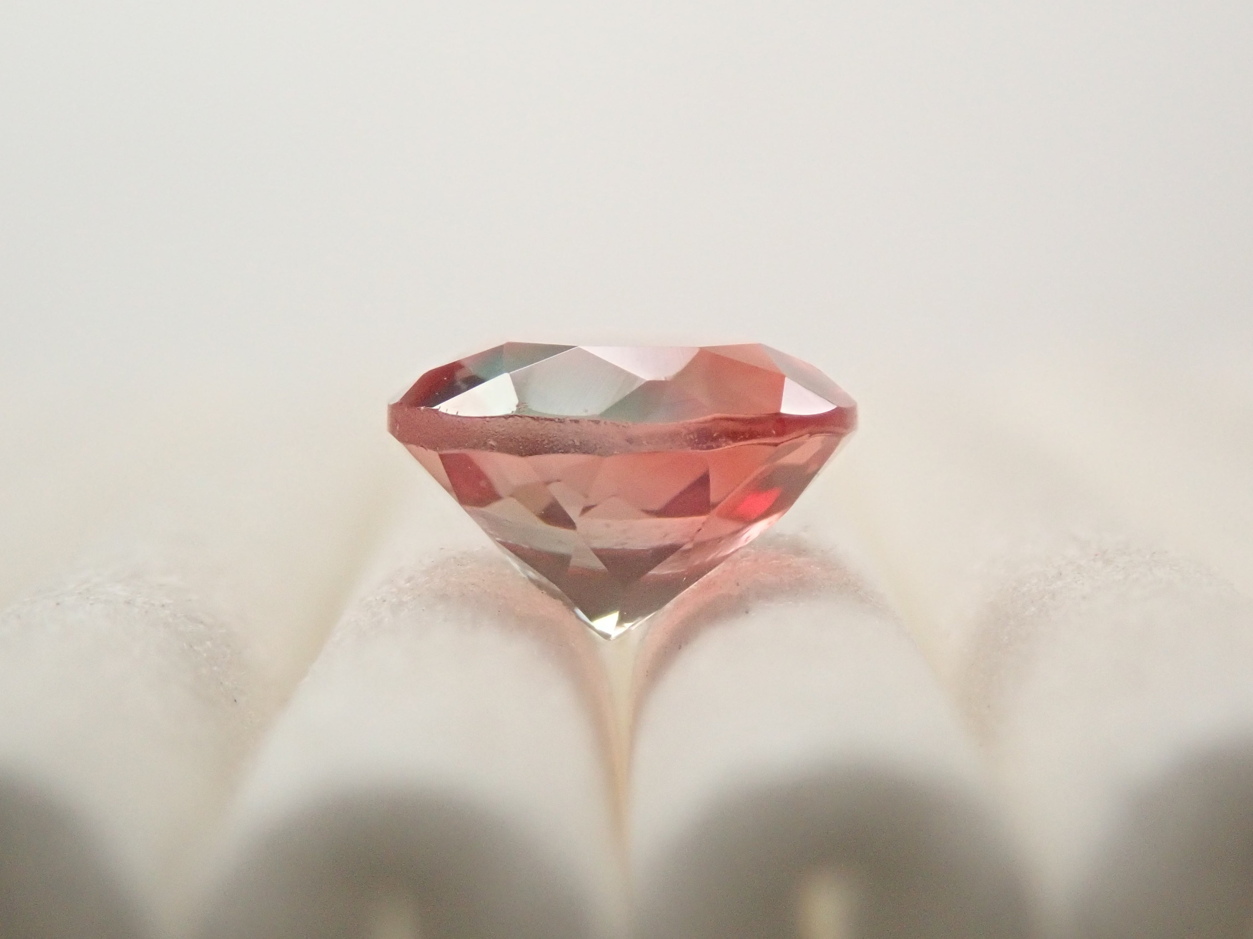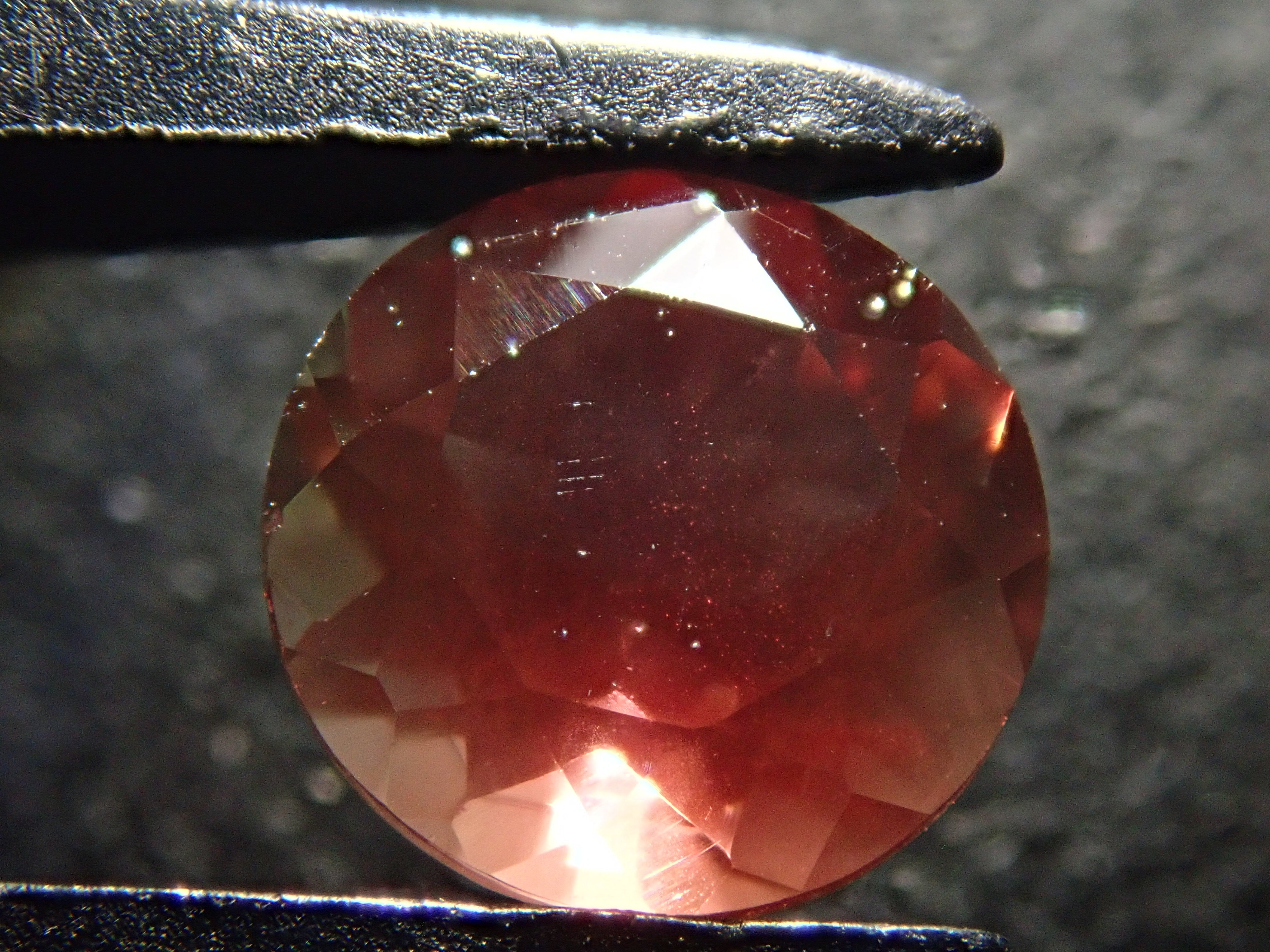 俄勒岡日光石據說是世界上最美麗的拉長石。近年來,這種石頭越來越受歡迎。還有一種石頭稱為散光(席勒效應),其中石頭內部的內含物會像閃光一樣反射。為了準確地傳達這些光學效果,攝影時使用筆燈。 這是圓形切割 6 毫米俄勒岡日光石。