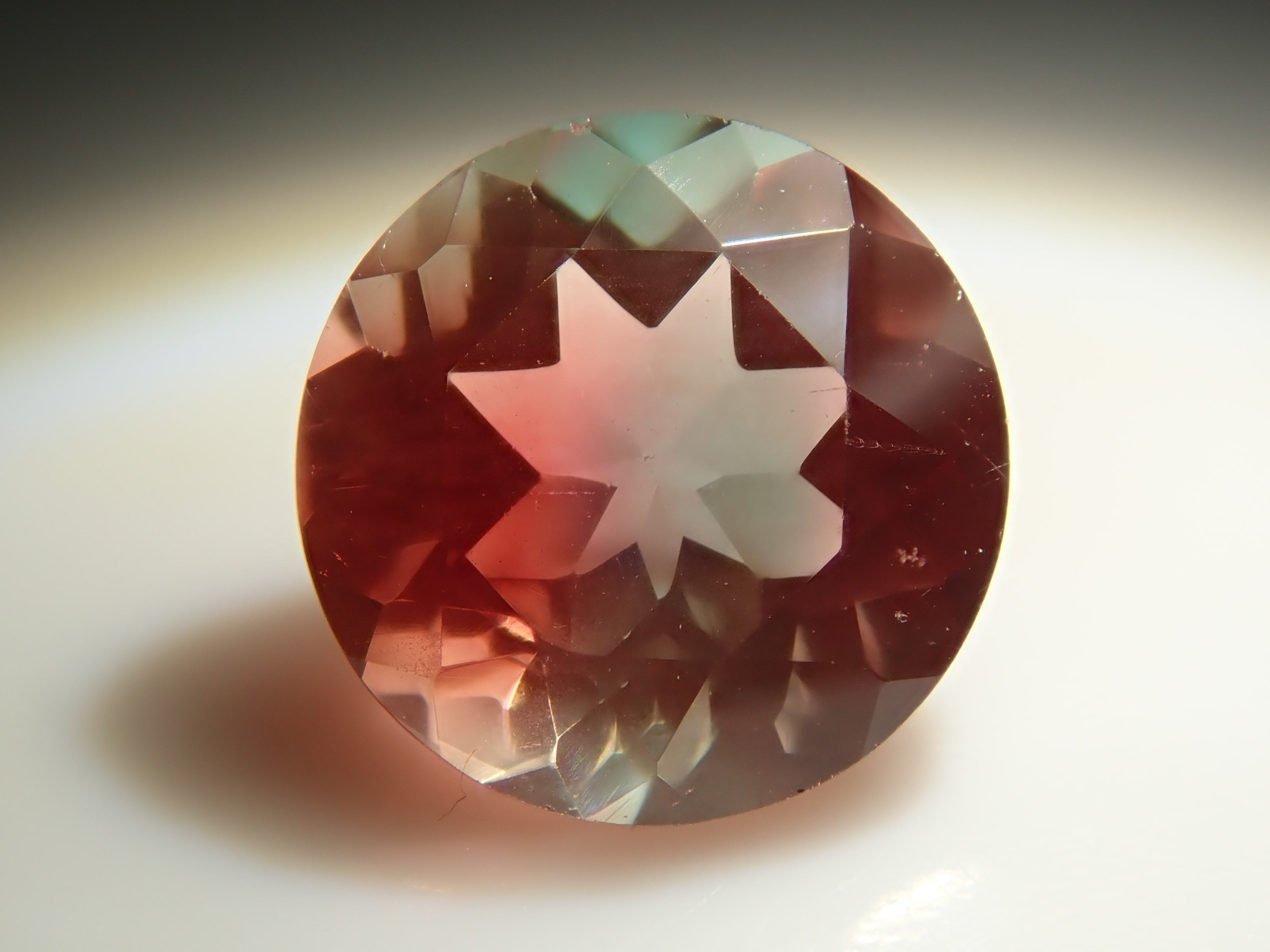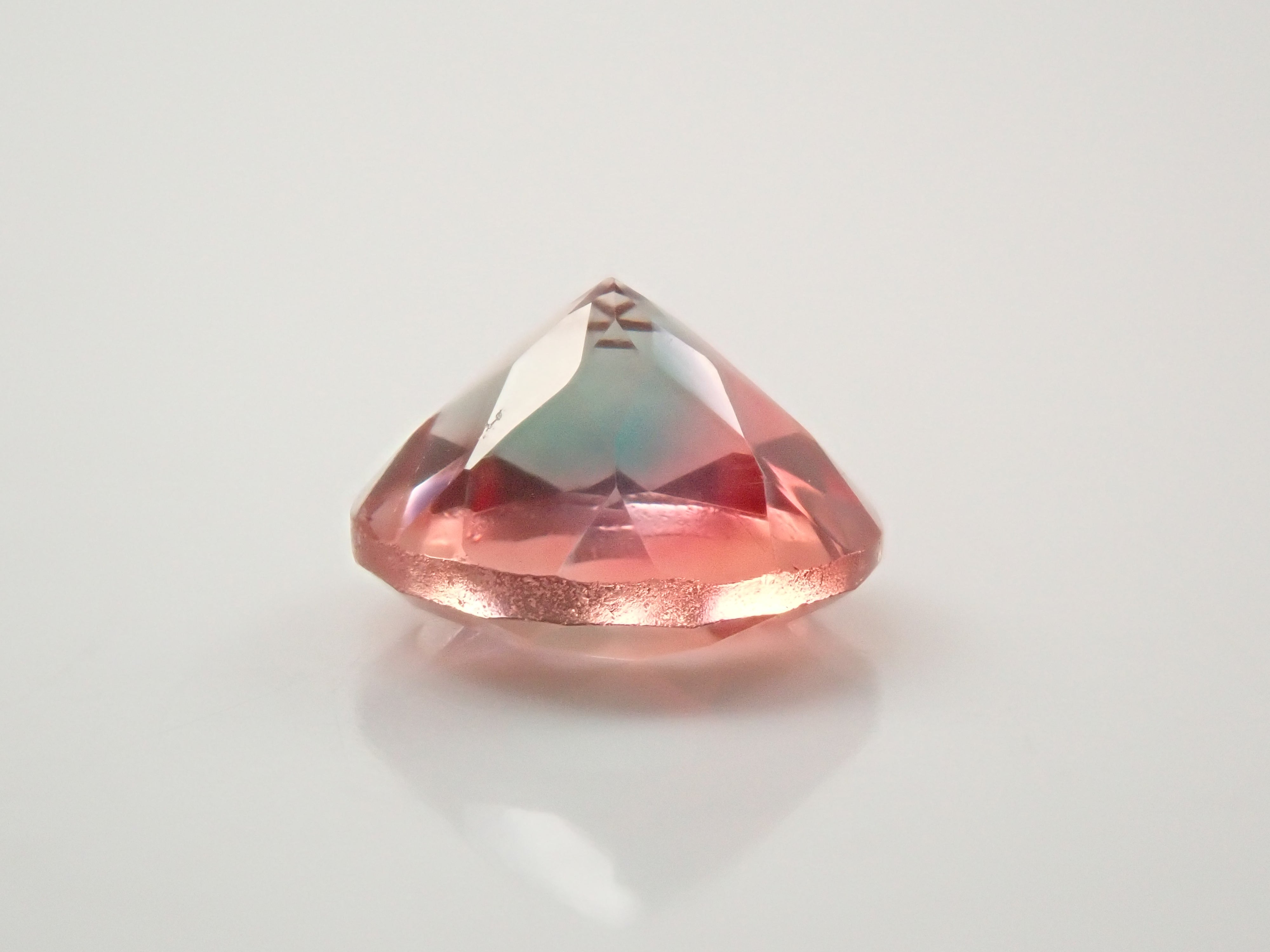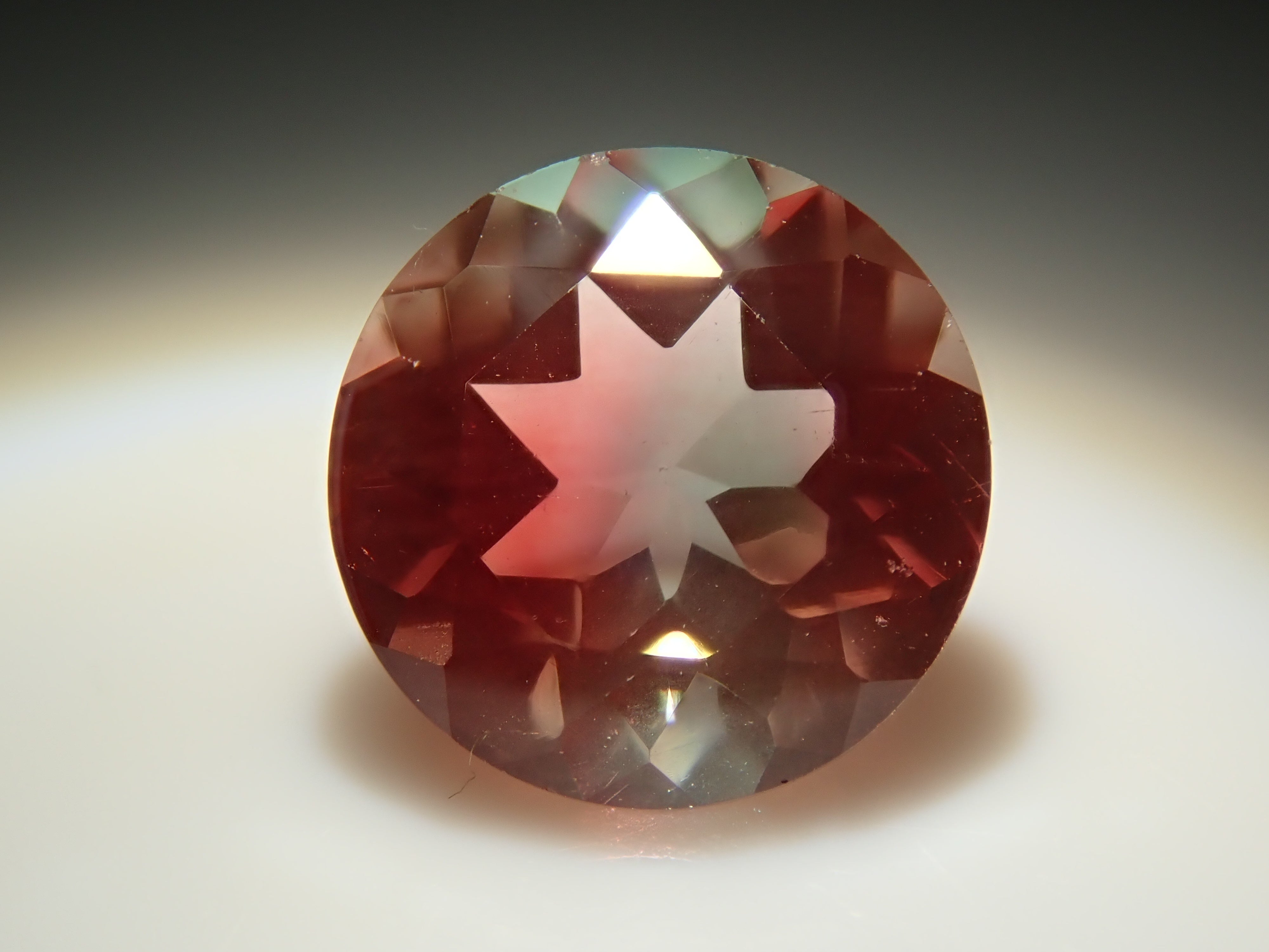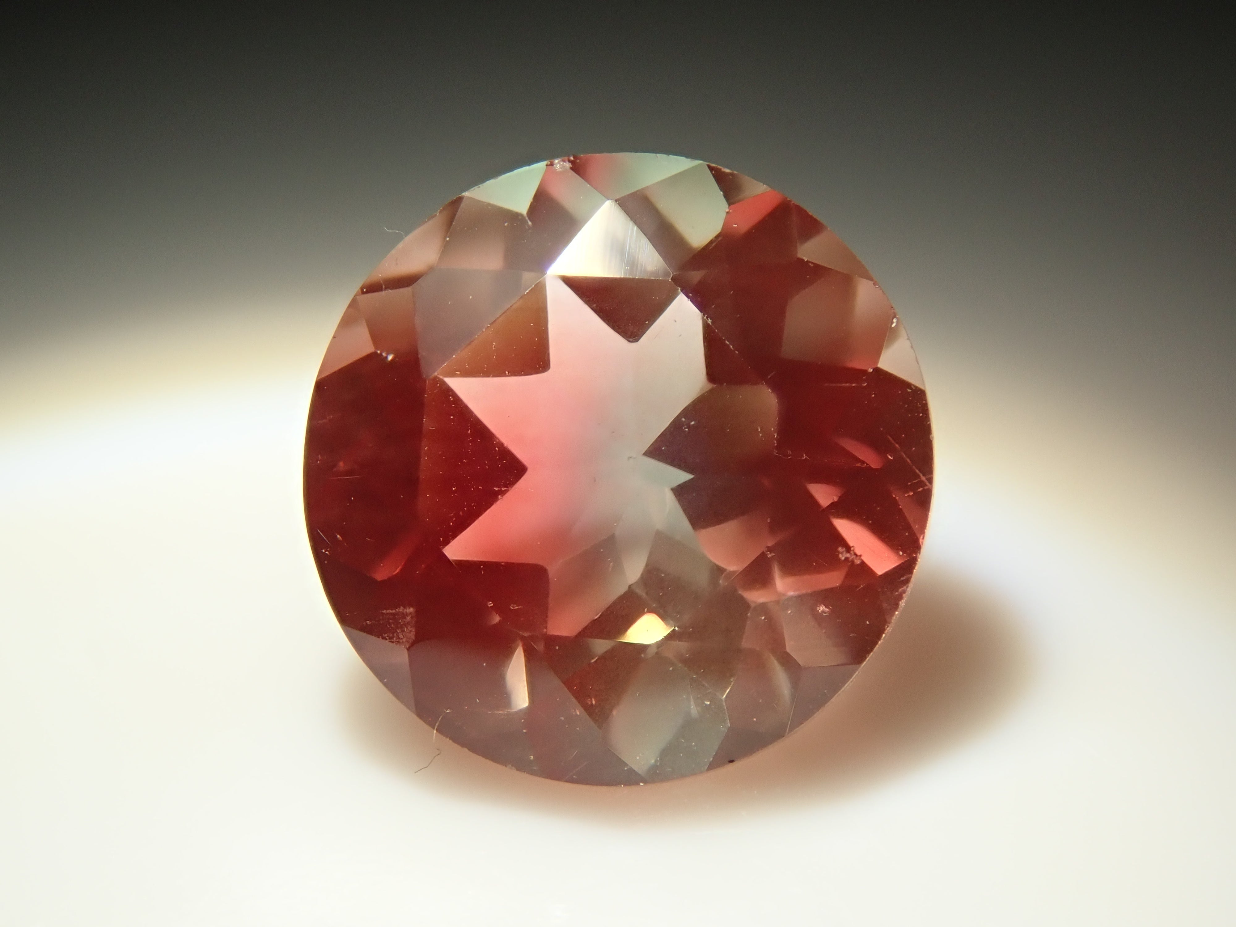 俄勒岡日光石據說是世界上最美麗的拉長石。近年來,這種石頭越來越受歡迎。還有一種石頭稱為散光(席勒效應),其中石頭內部的內含物會像閃光一樣反射。為了準確地傳達這些光學效果,攝影時使用筆燈。 這是圓形切割 6 毫米俄勒岡日光石。