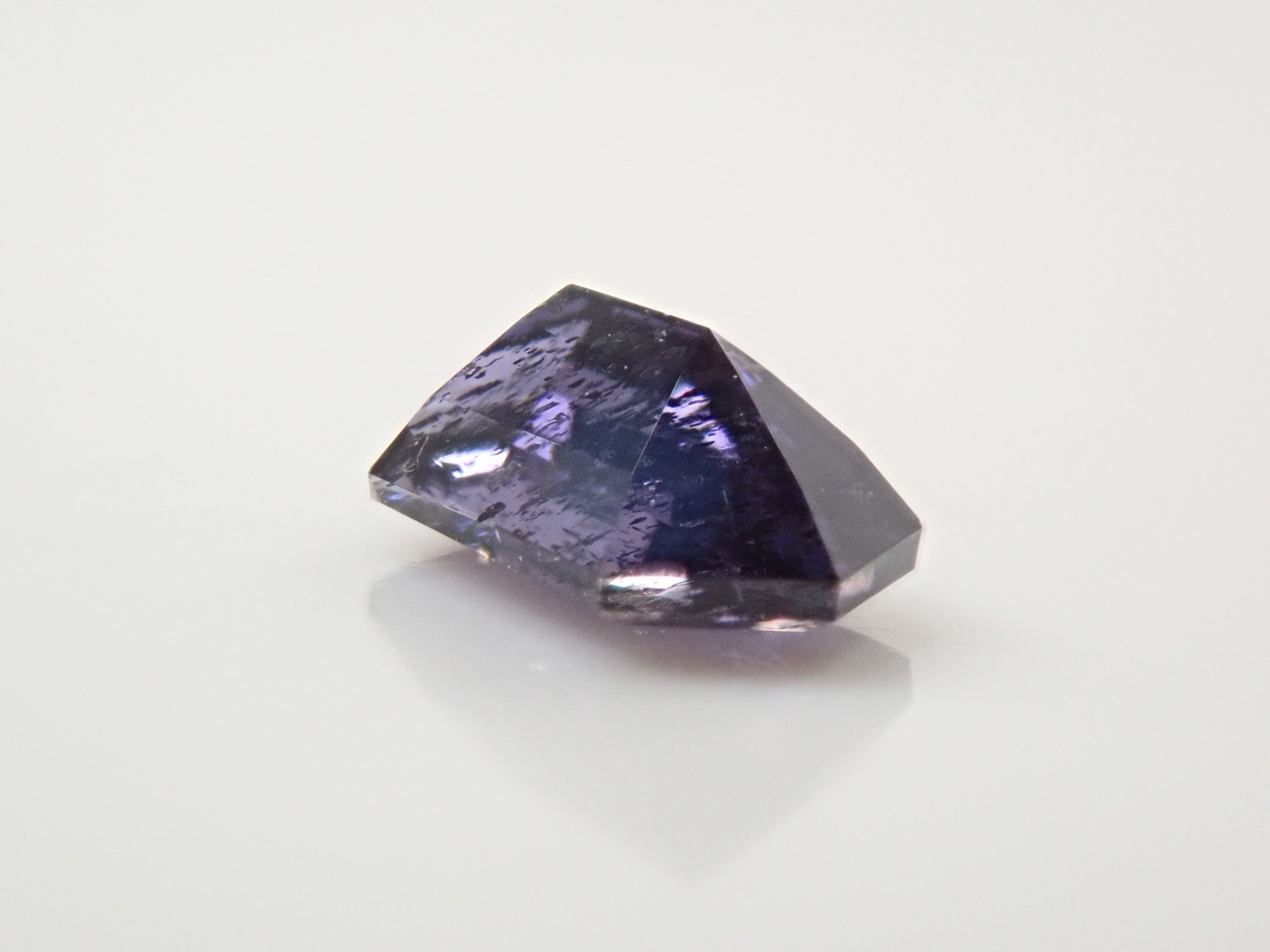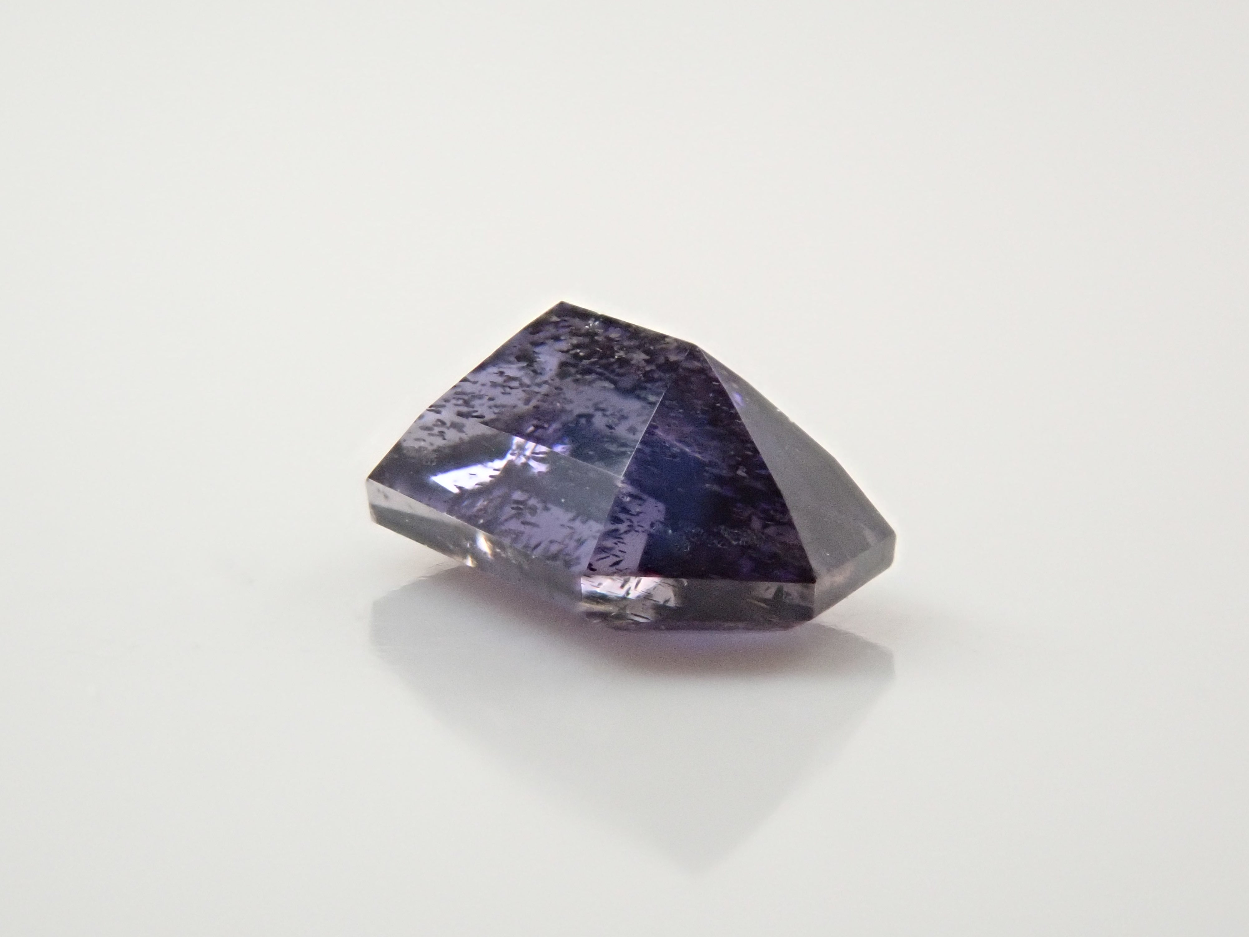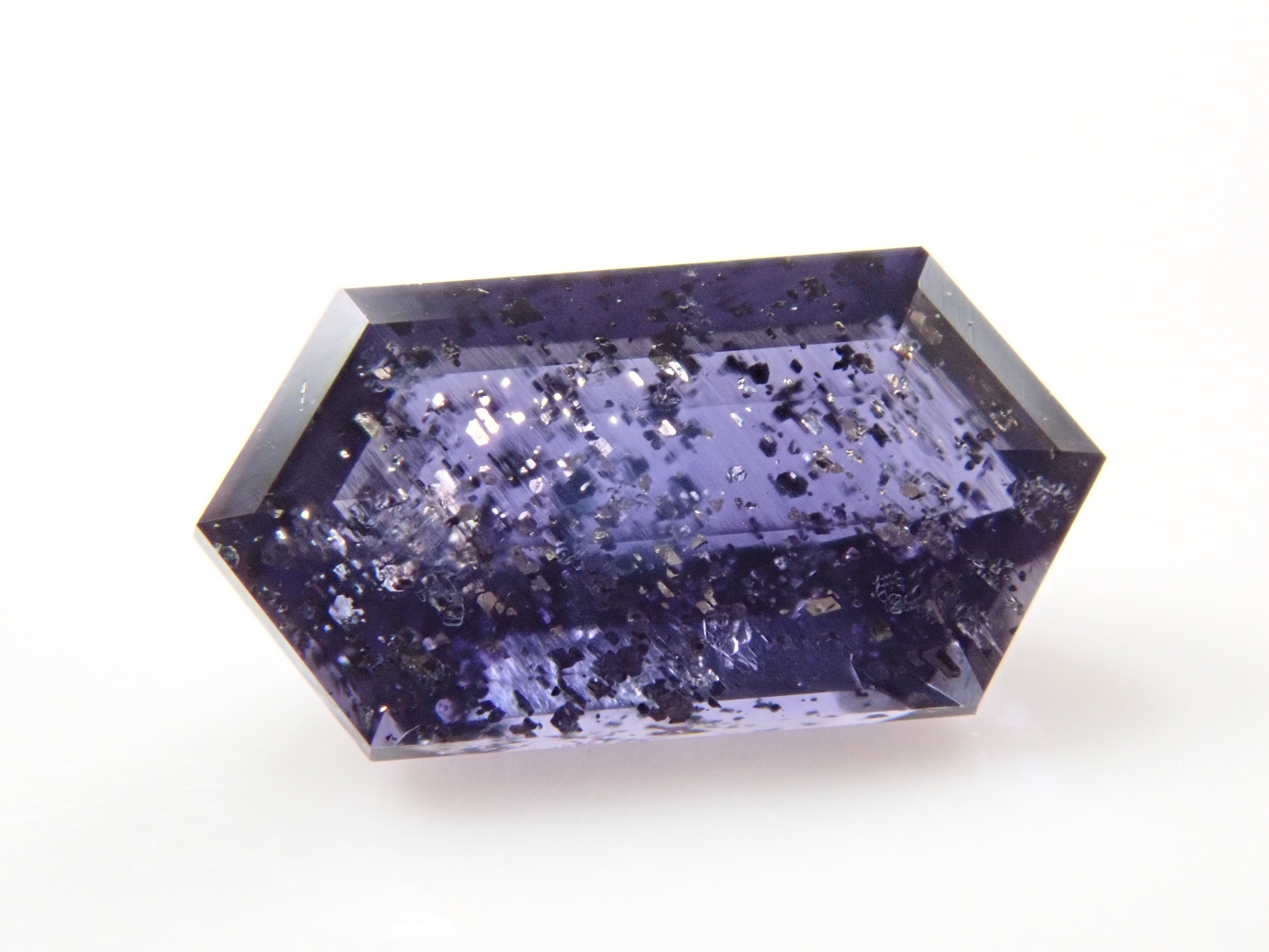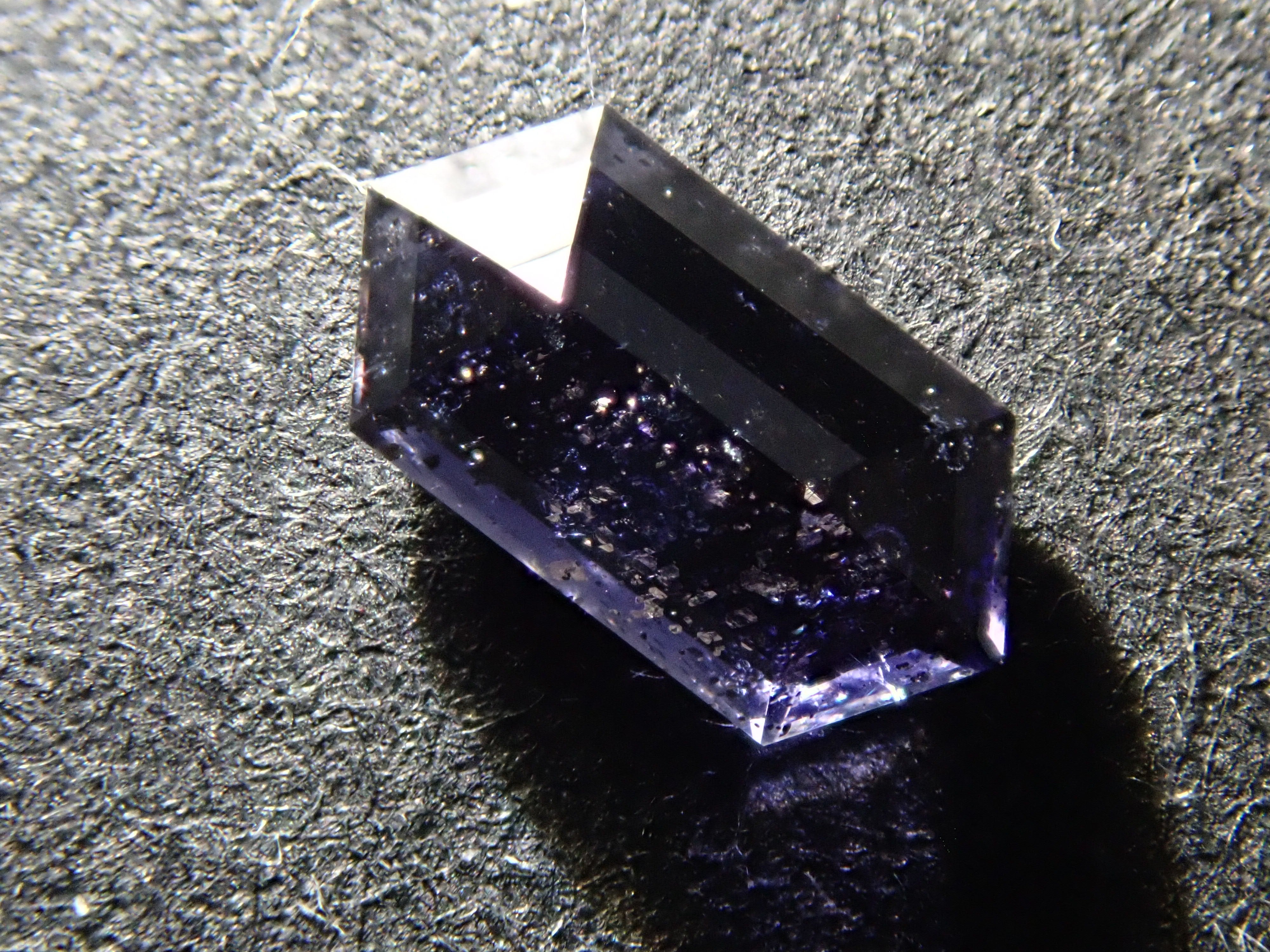 堇青石是一種美麗的深藍紫色,類似紫羅蘭花。它是一種多向色性寶石,從不同角度觀察時會呈現不同的顏色。這是一種堇青石,具有類似閃光的光學效應,稱為散光現象。它通常被稱為“堇青石日光石”或“漫金堇青石”。