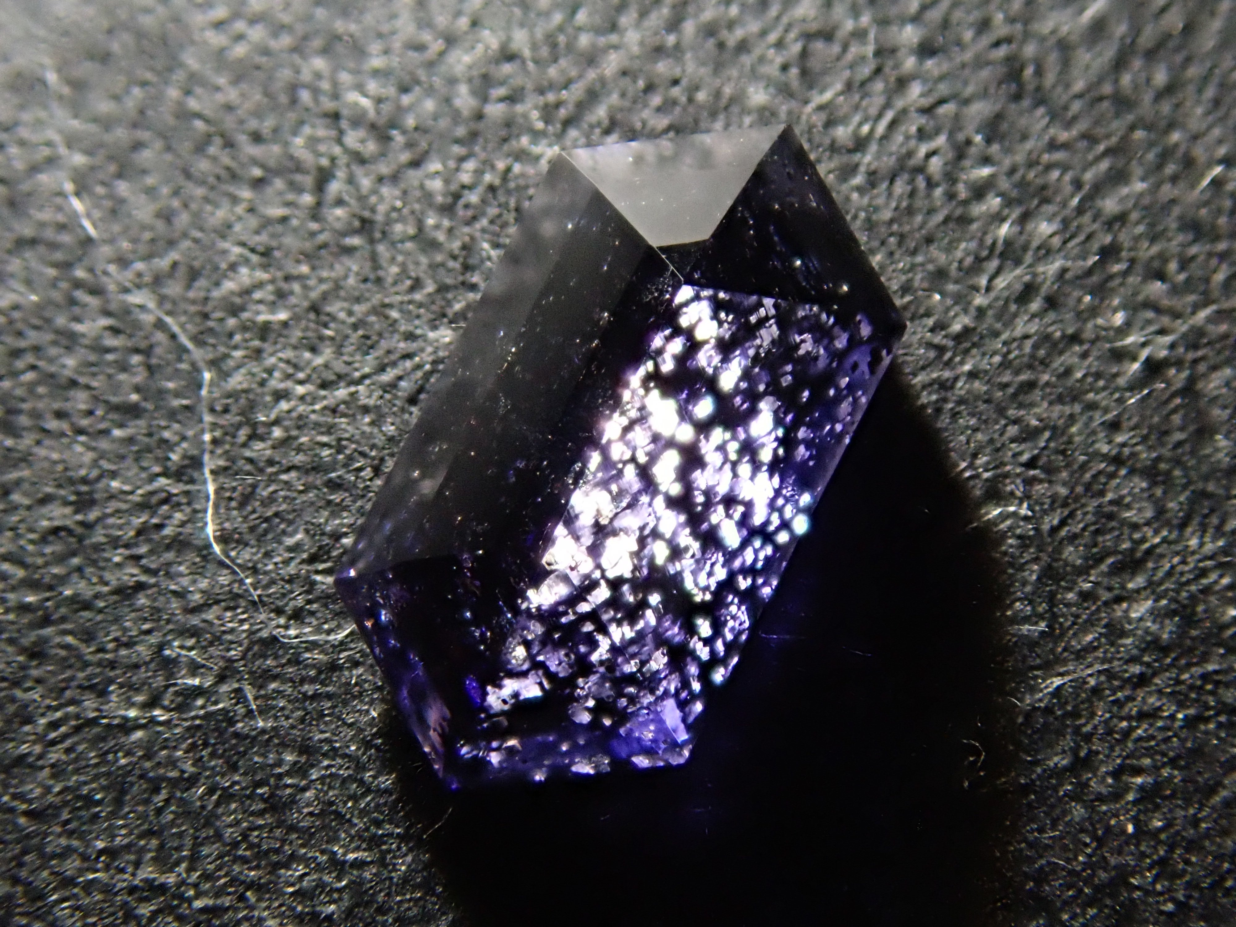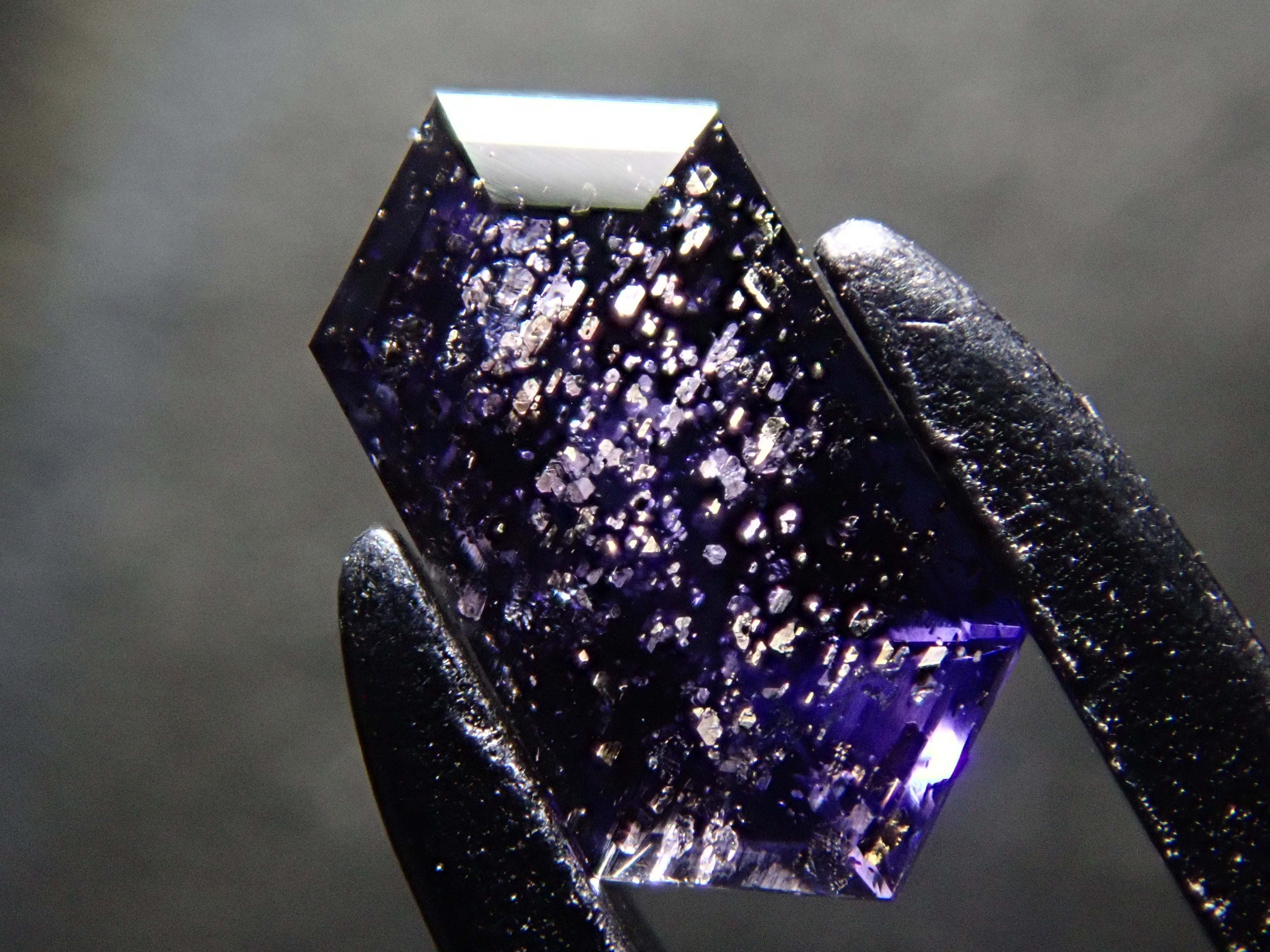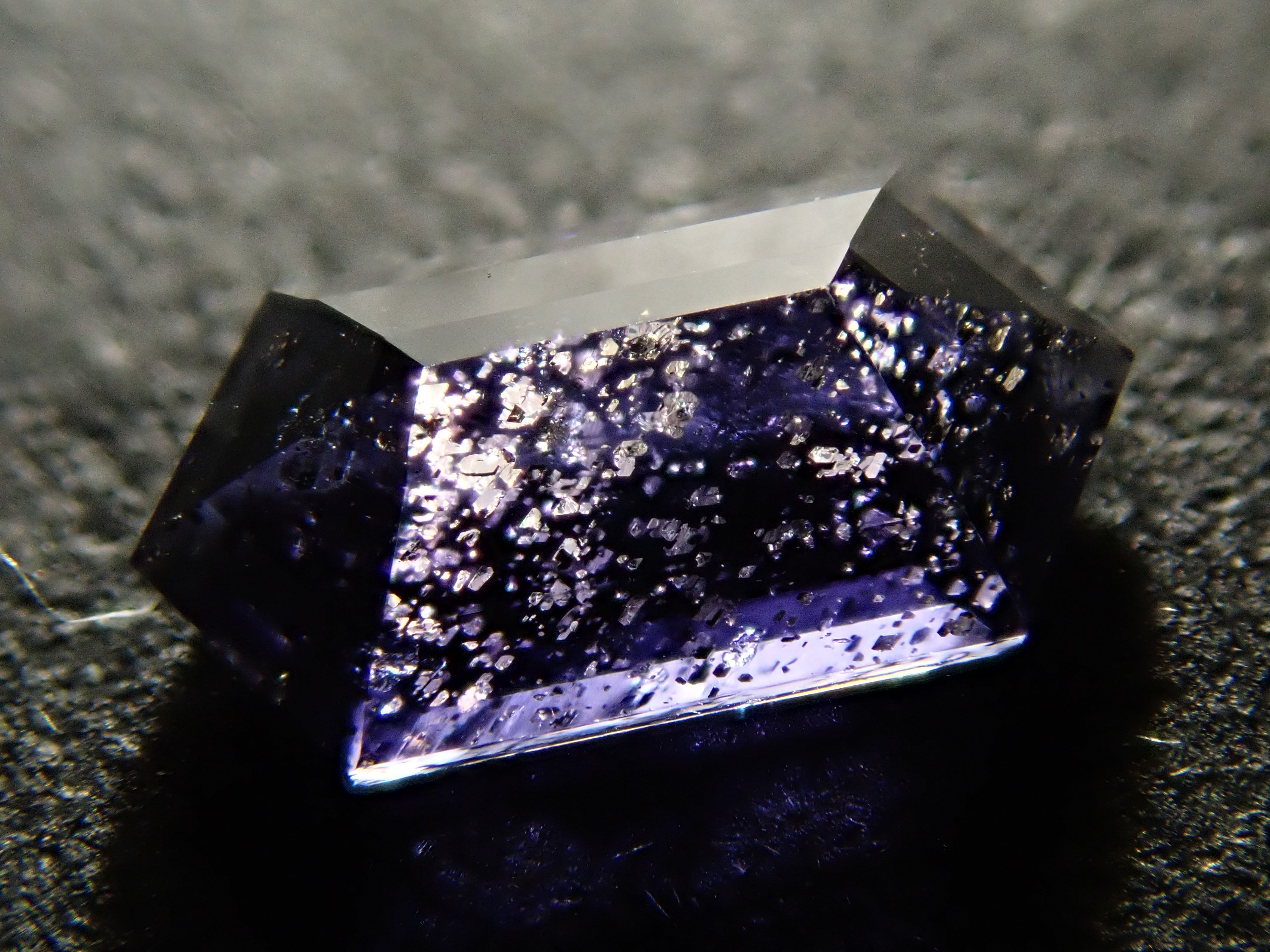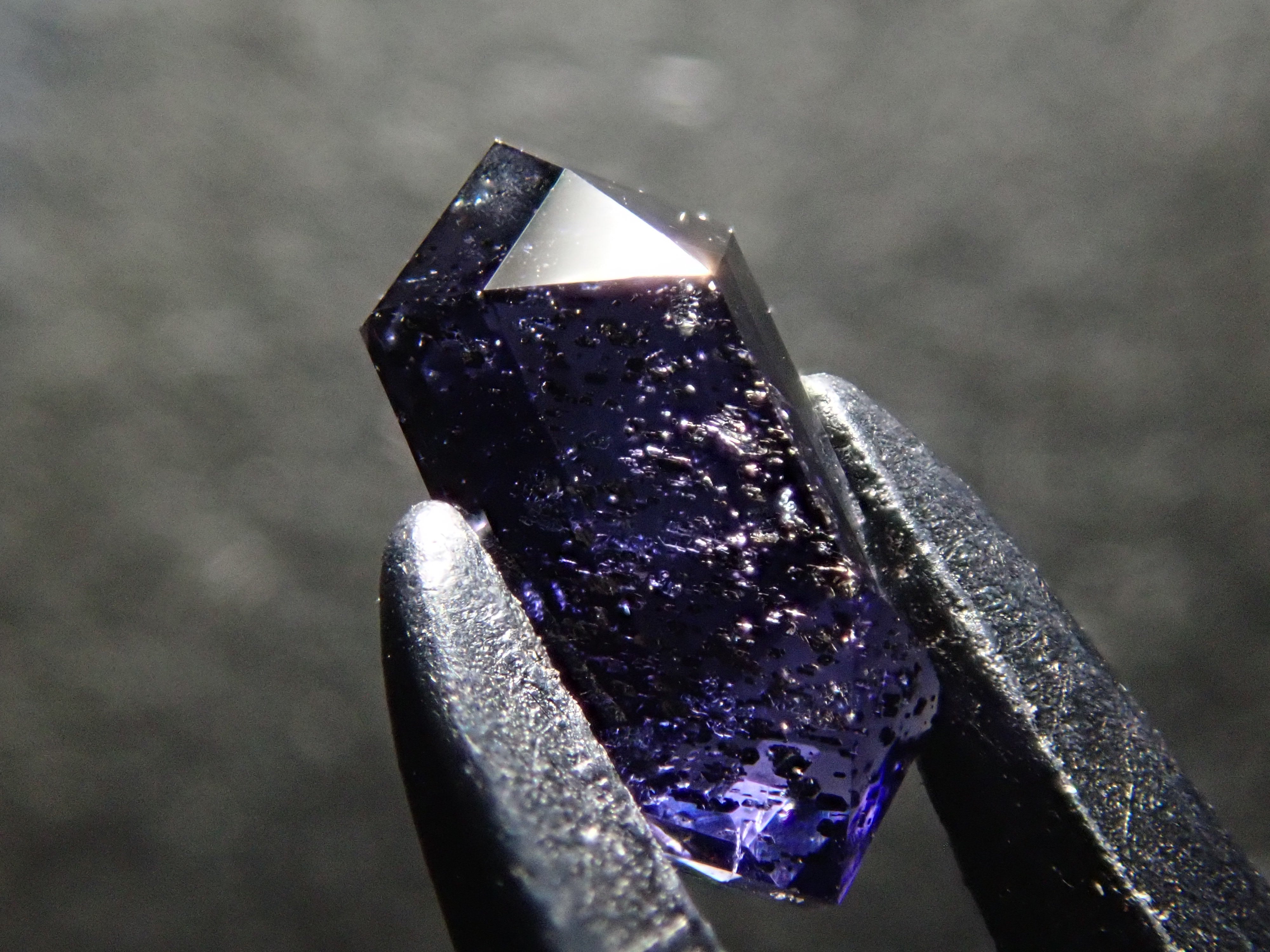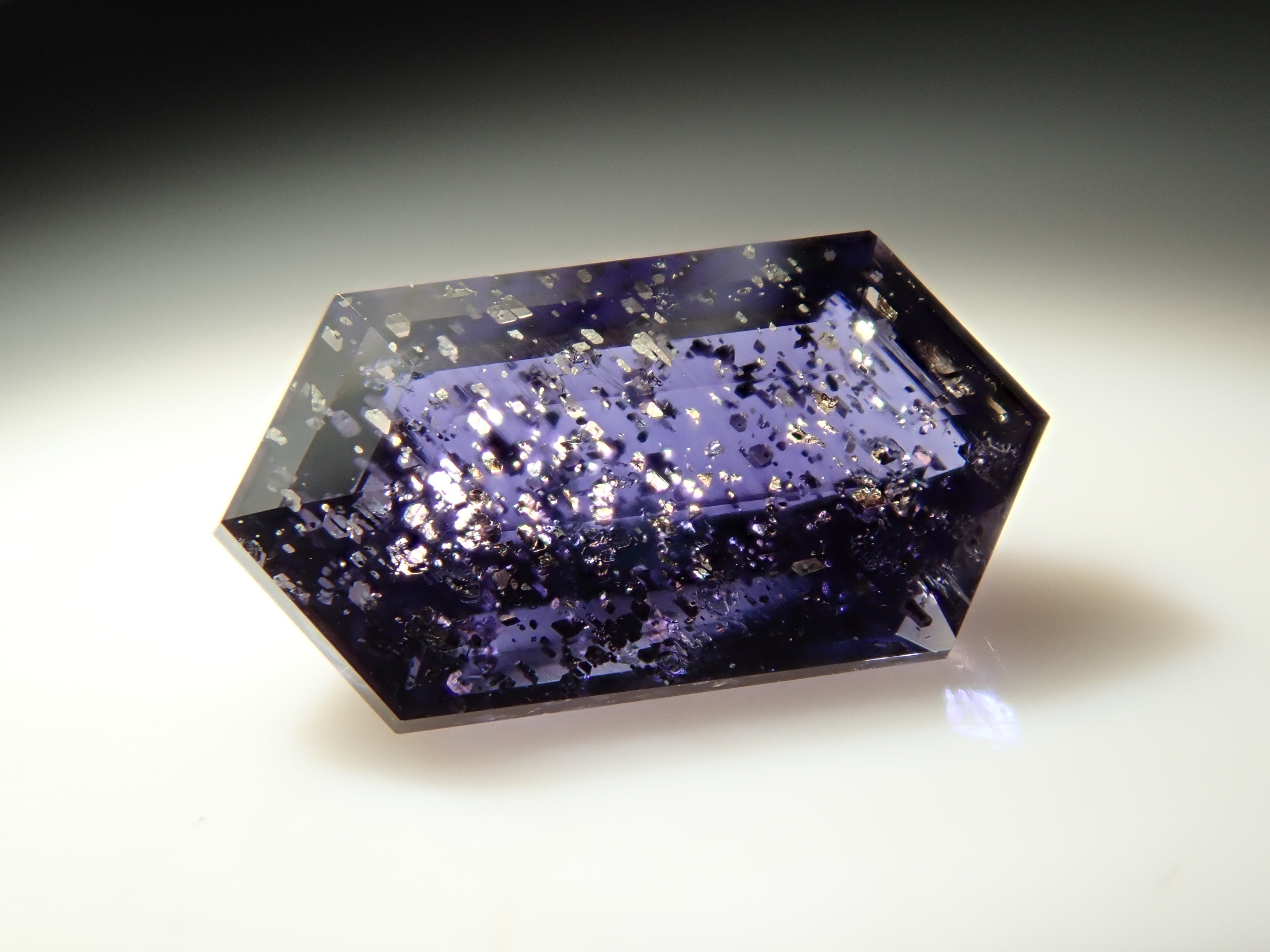 堇青石是一種美麗的深藍紫色,類似紫羅蘭花。它是一種多向色性寶石,從不同角度觀察時會呈現不同的顏色。這是一種堇青石,具有類似閃光的光學效應,稱為散光現象。它通常被稱為“堇青石日光石”或“漫金堇青石”。