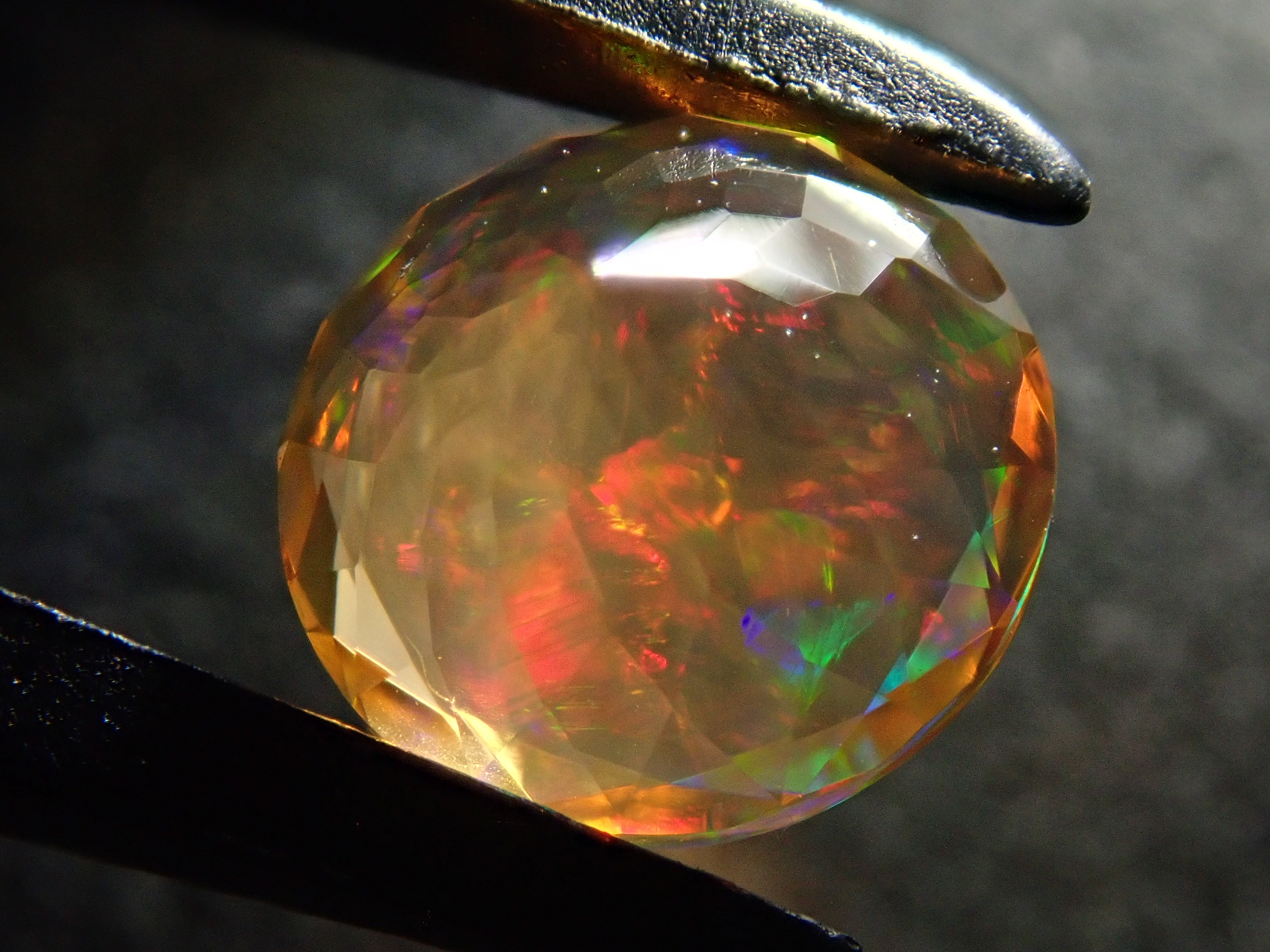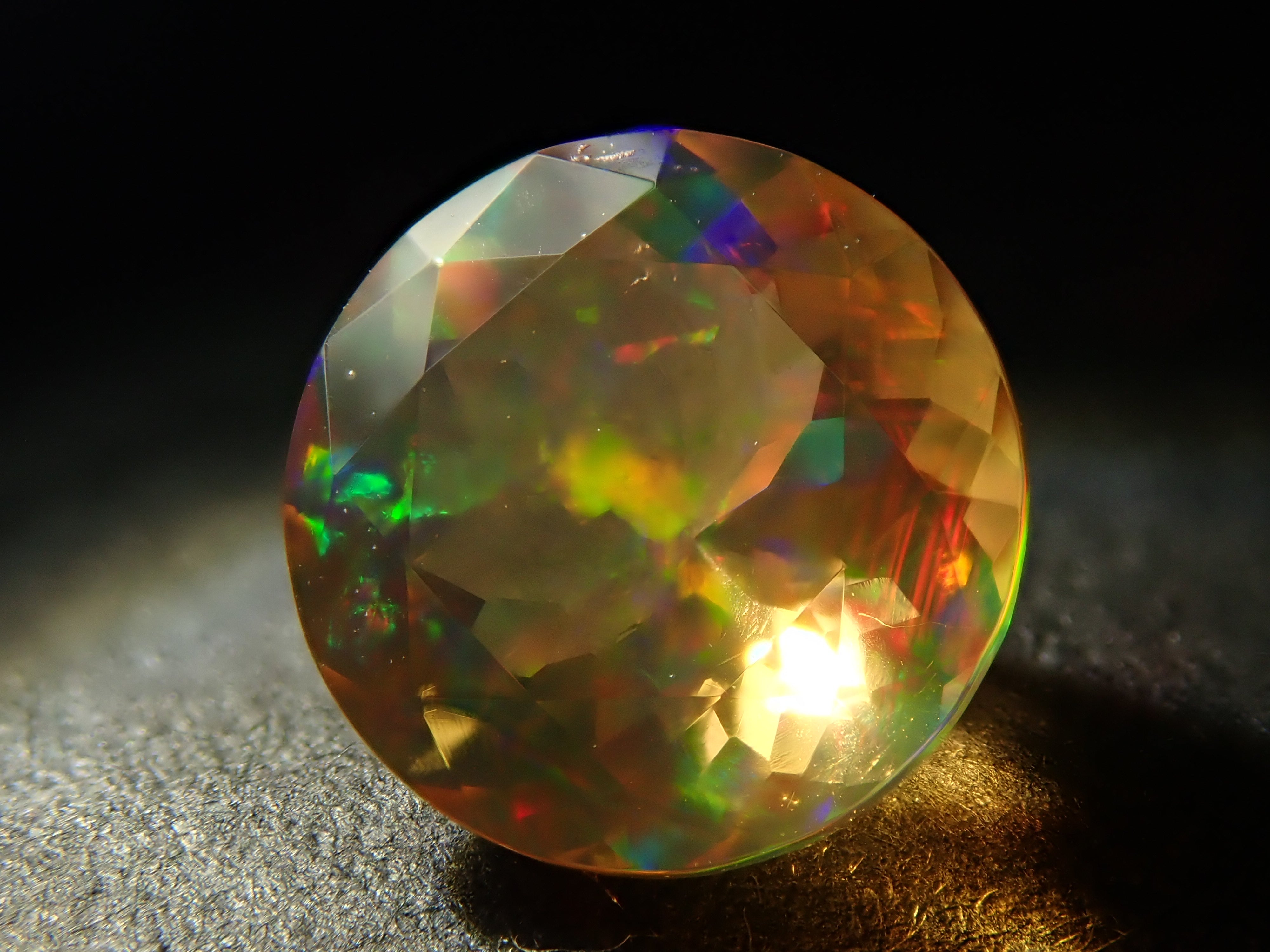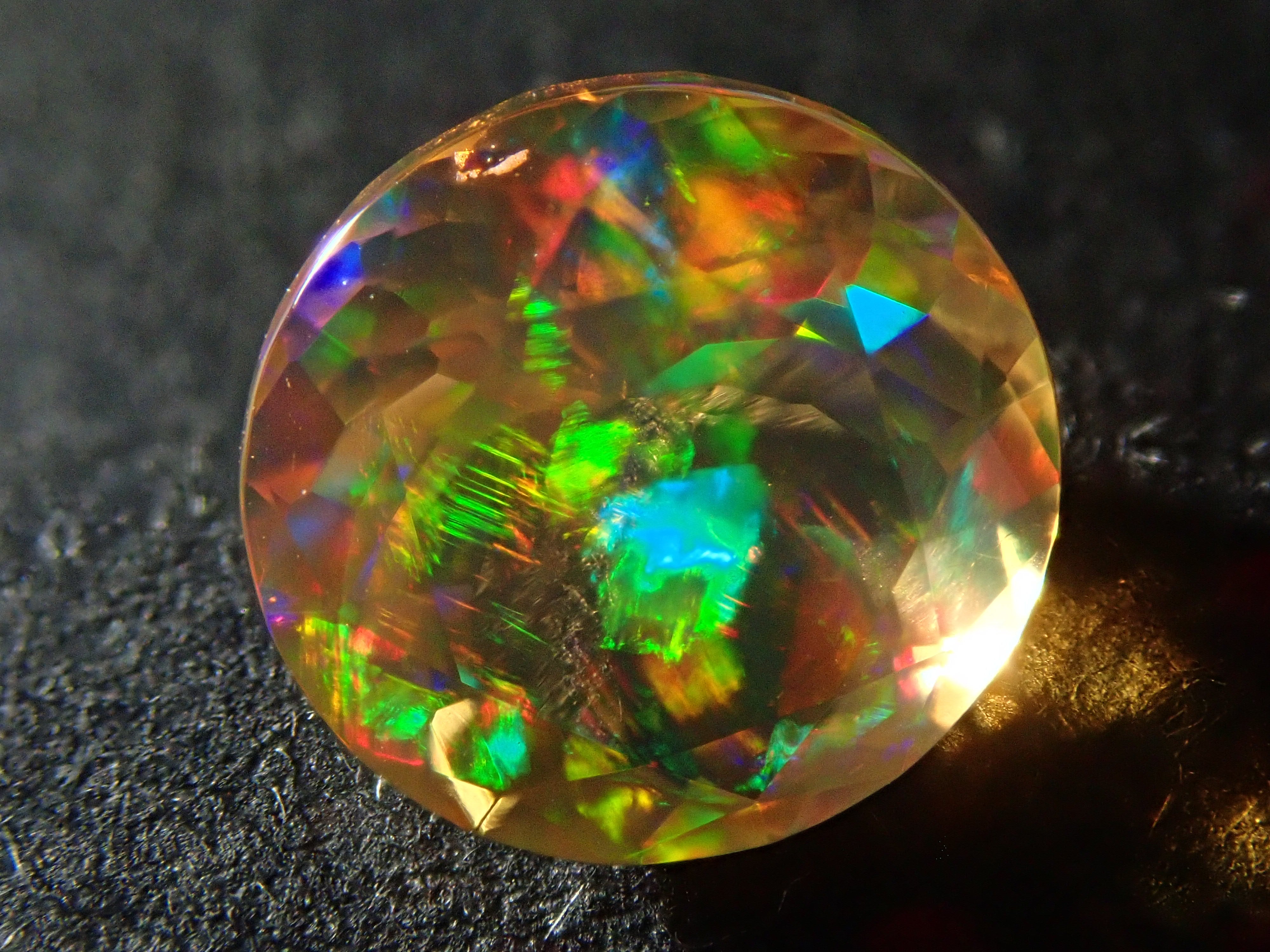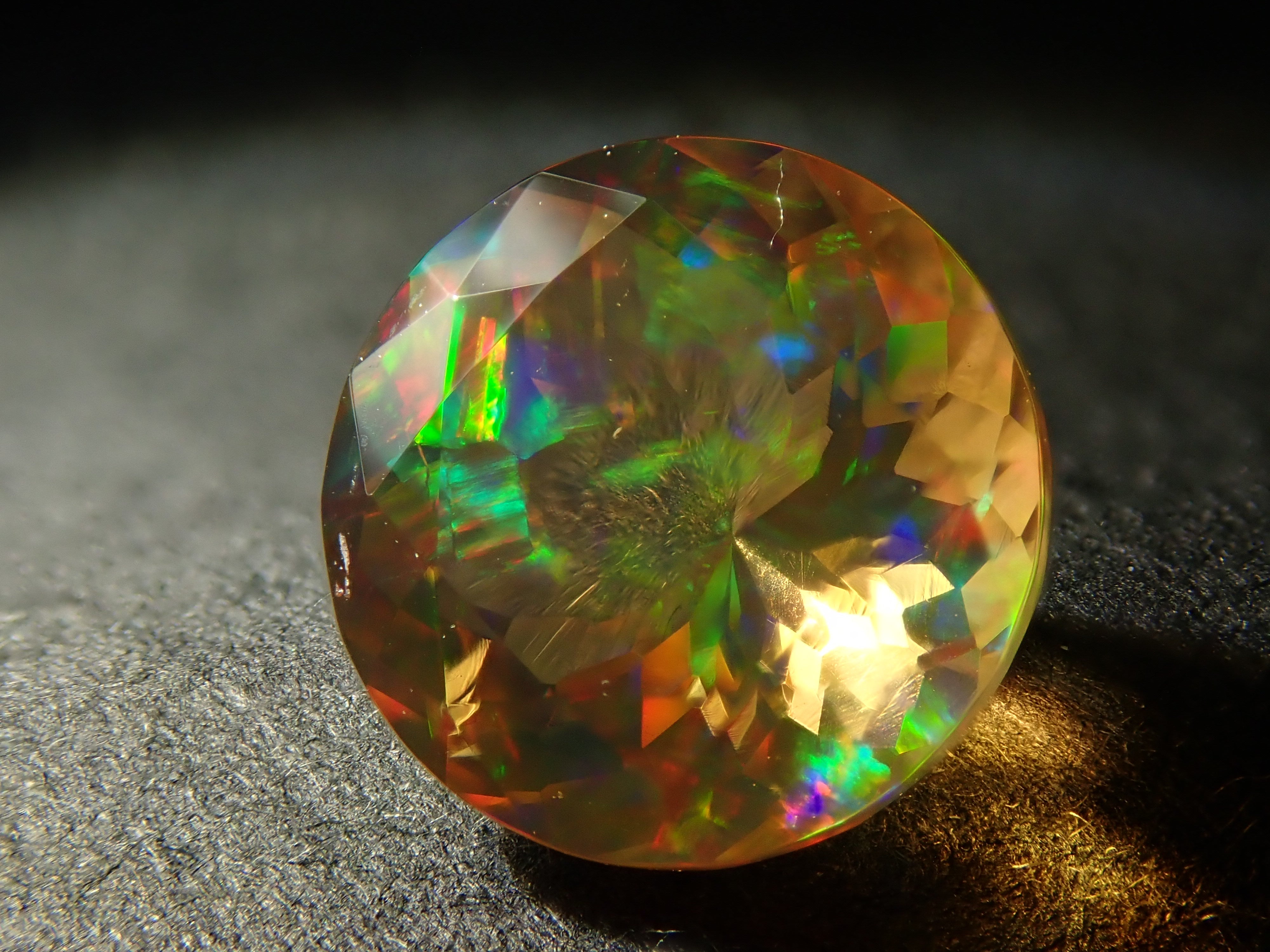 蛋白石自古羅馬時代以來就很受歡迎。火蛋白石是指底色從紅色到橘色的蛋白石,給人火的形象。照片是使用筆燈拍攝的。
