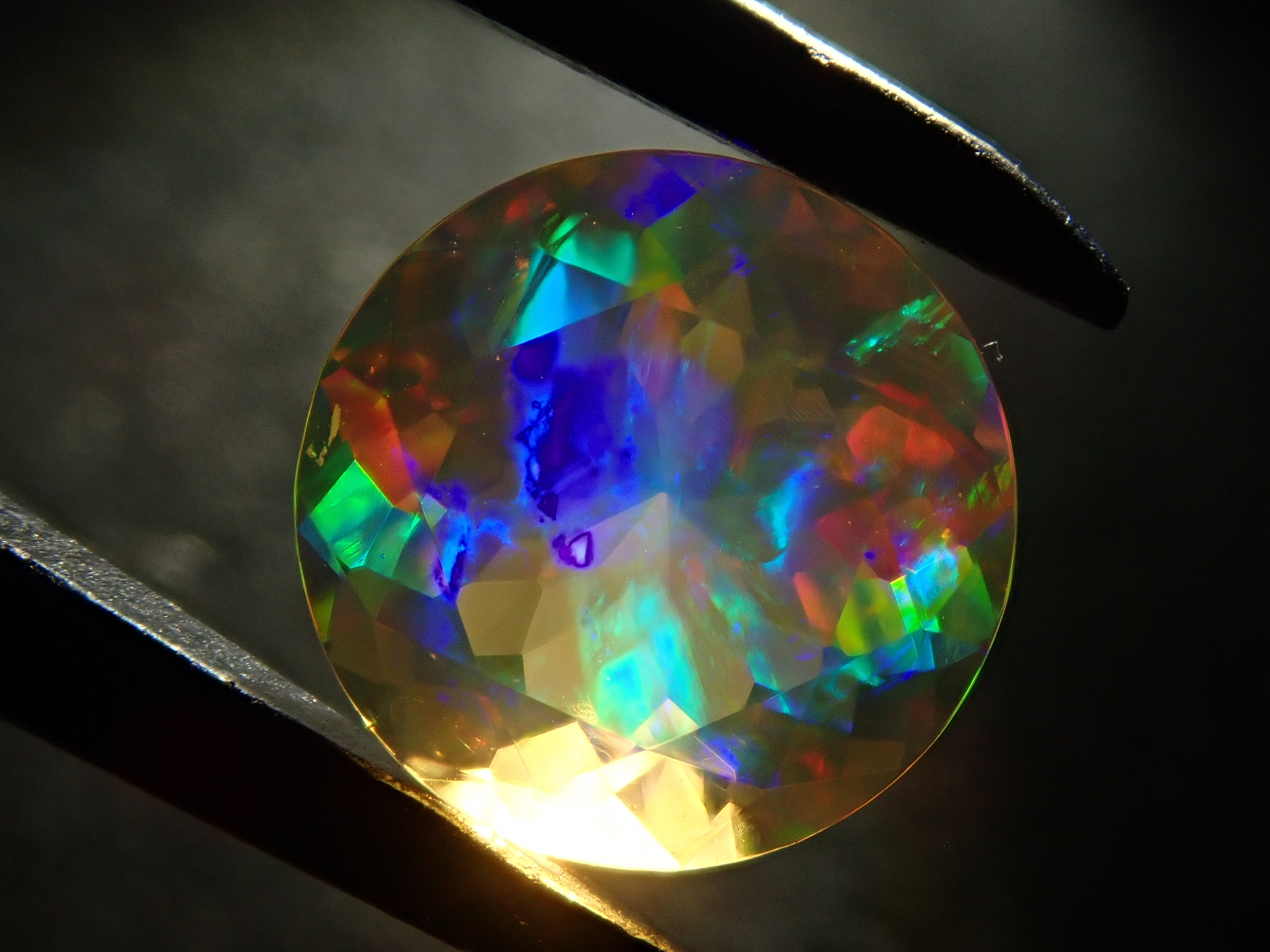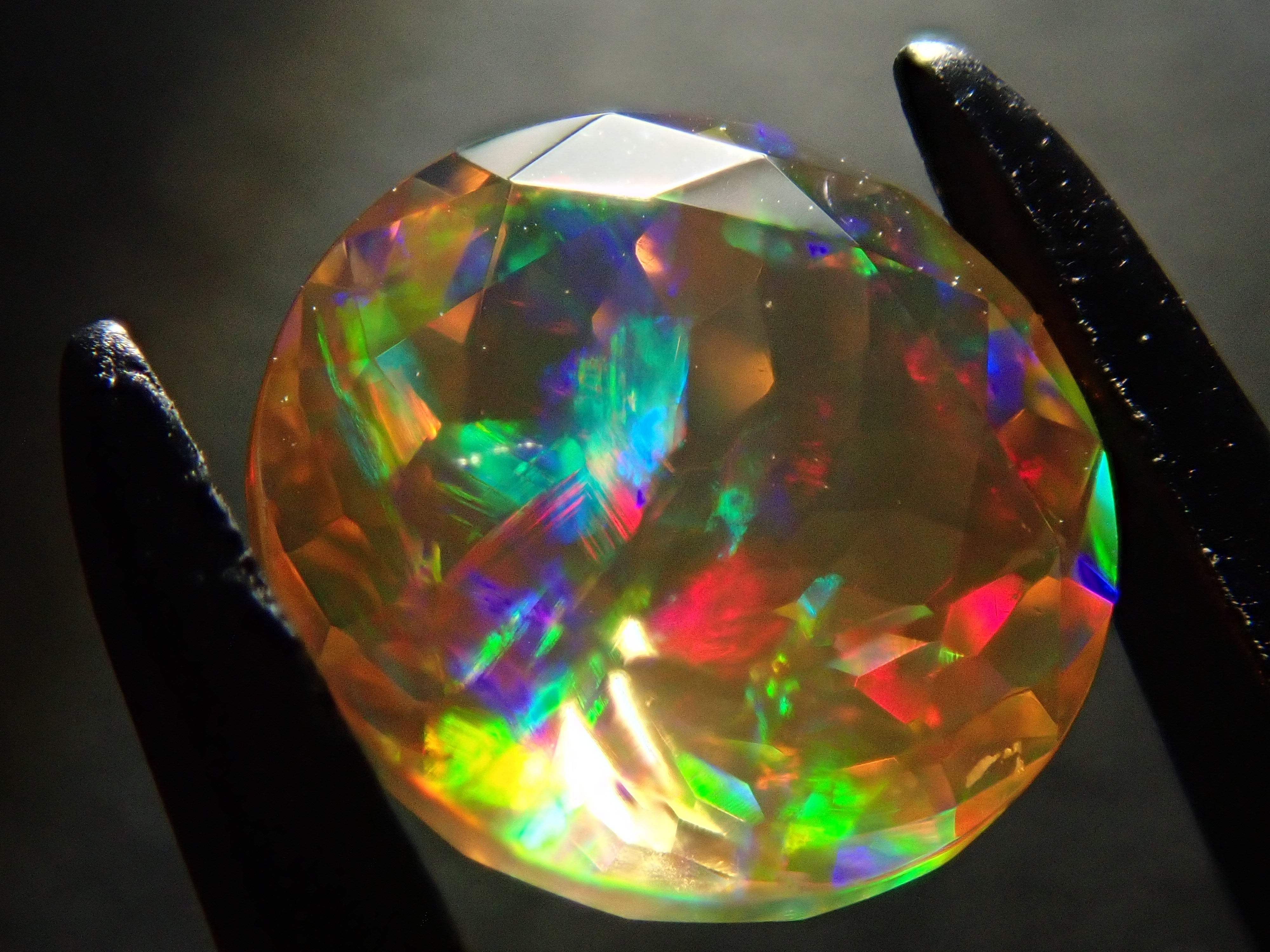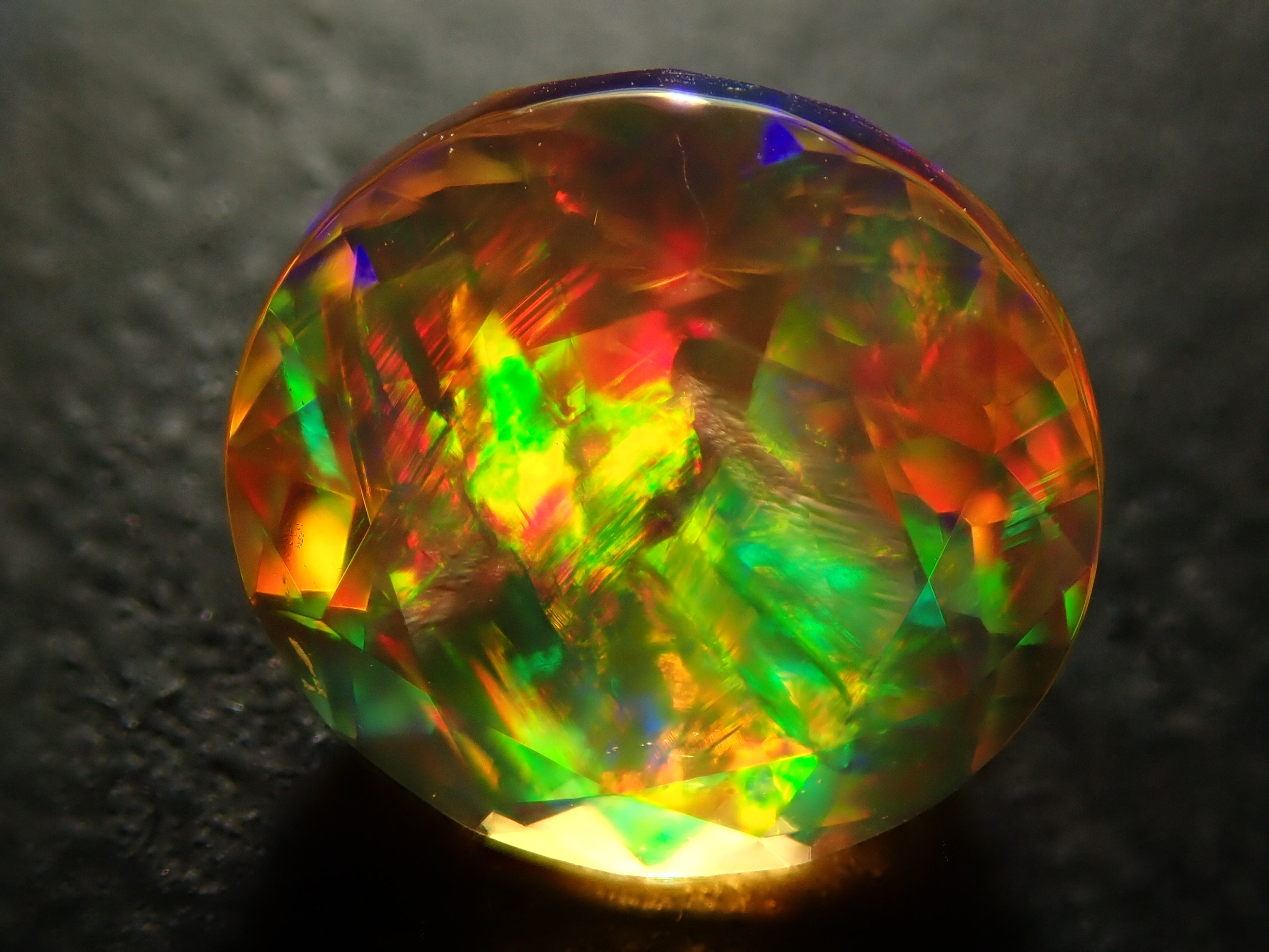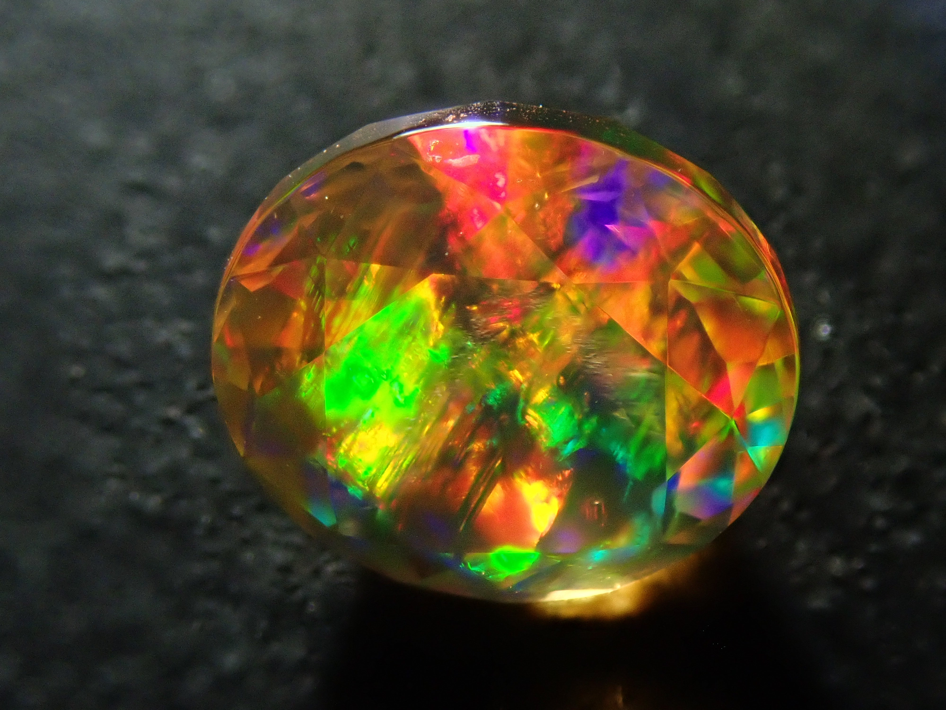 蛋白石自古羅馬時代以來就很受歡迎。火蛋白石是指底色從紅色到橘色的蛋白石,給人火的形象。照片是使用筆燈拍攝的。