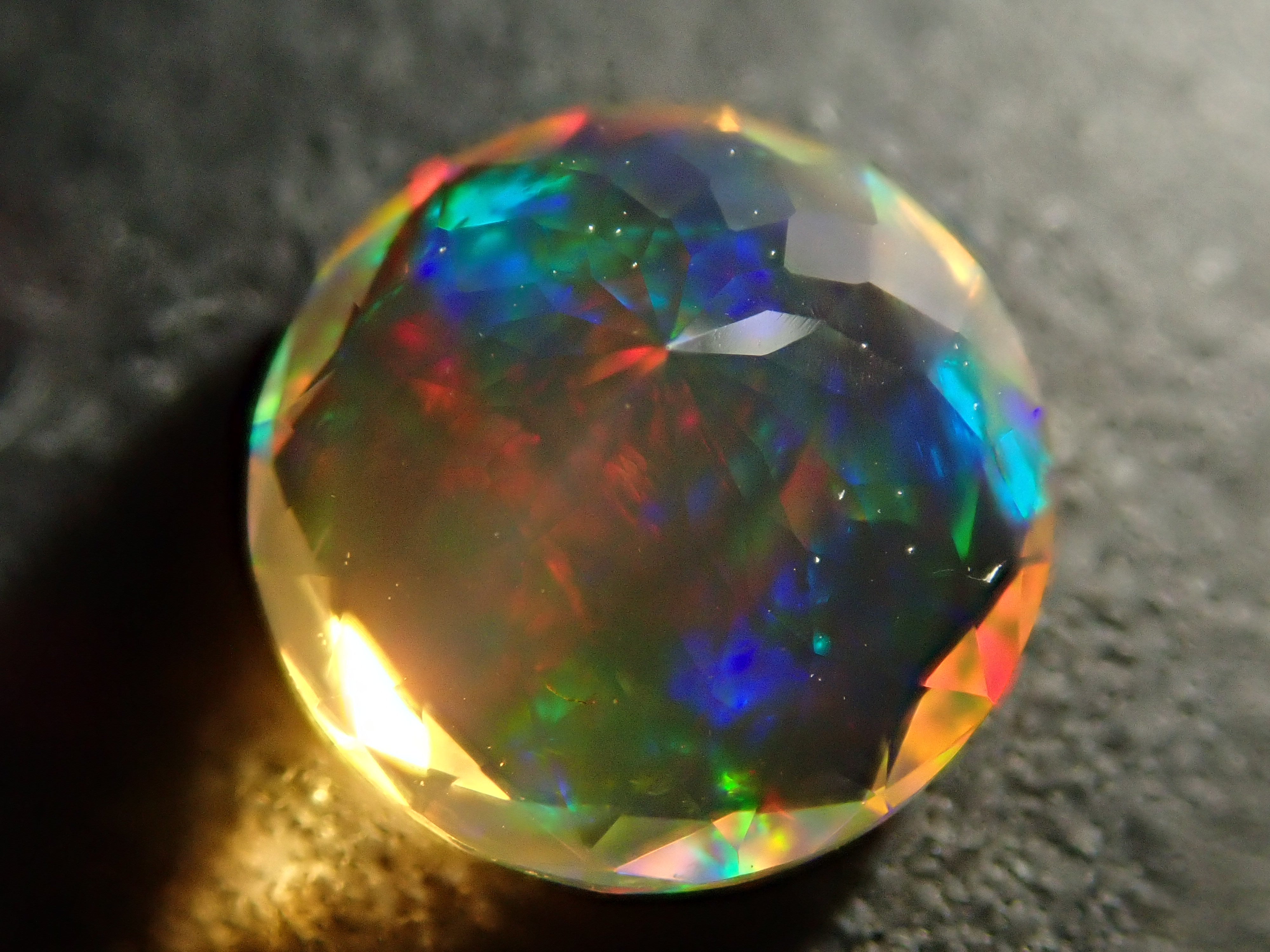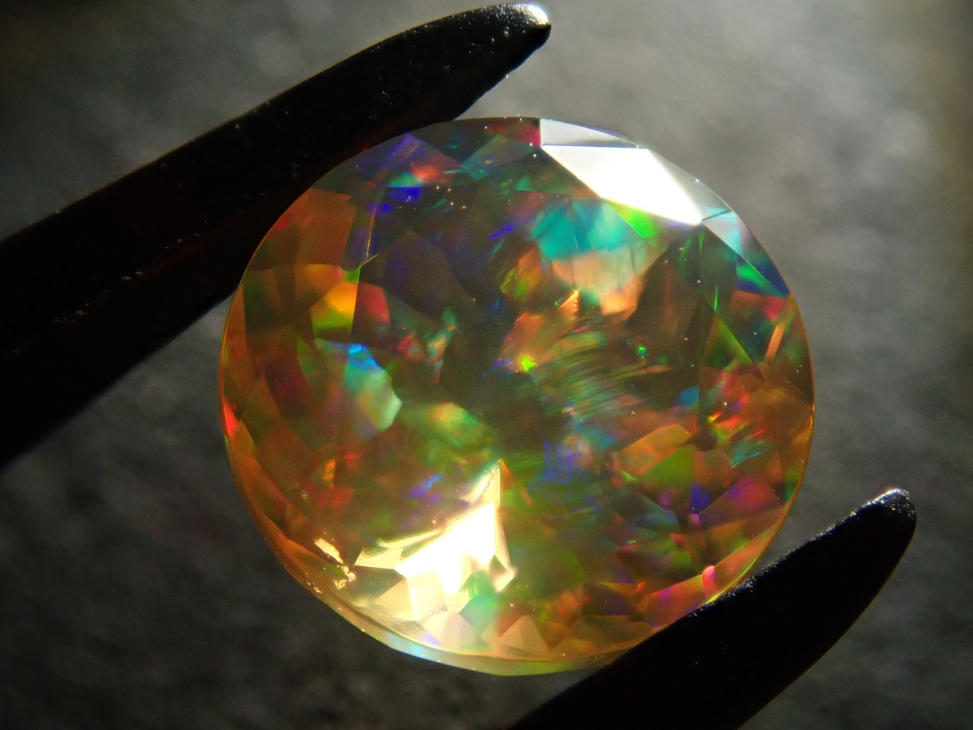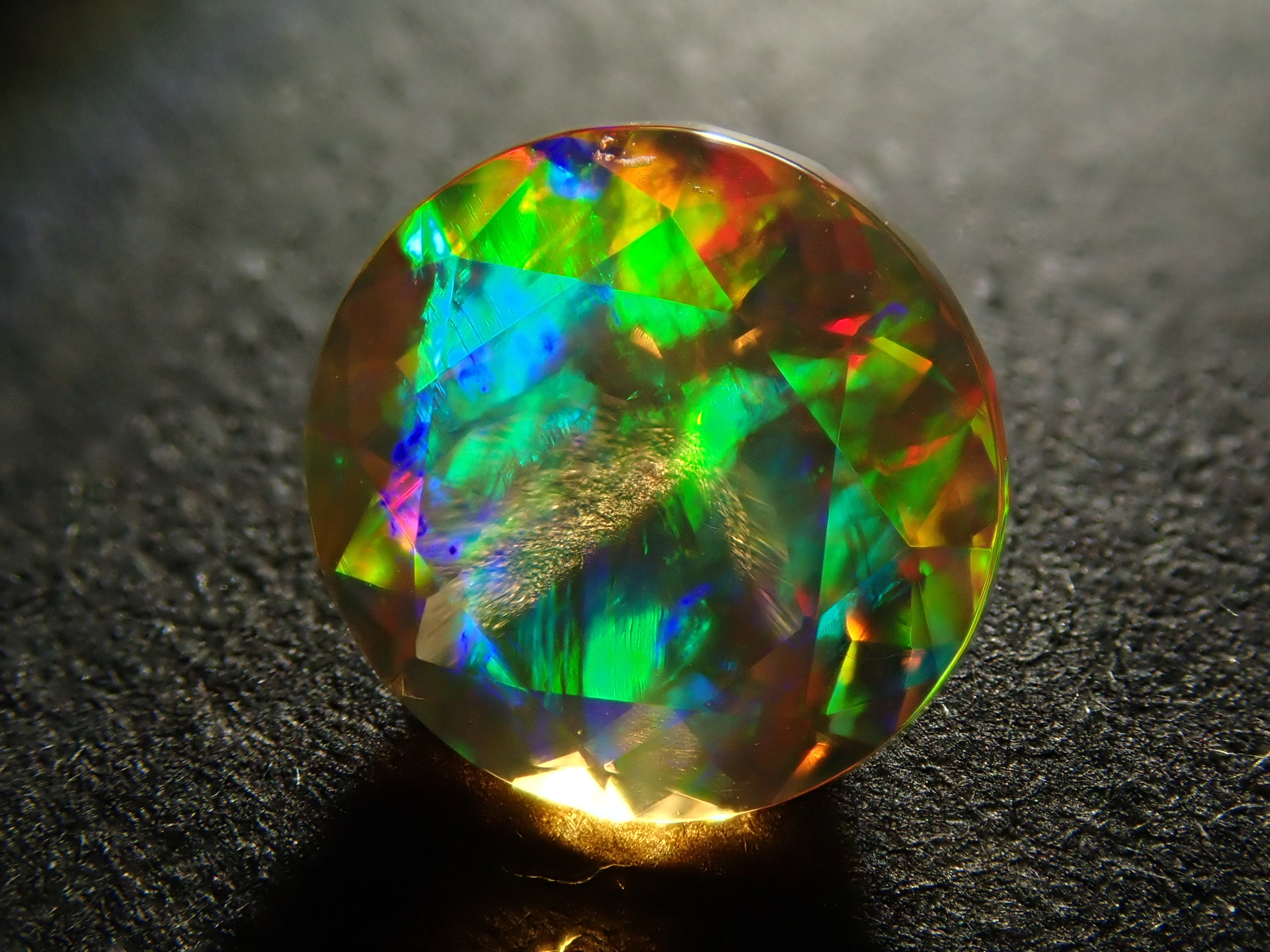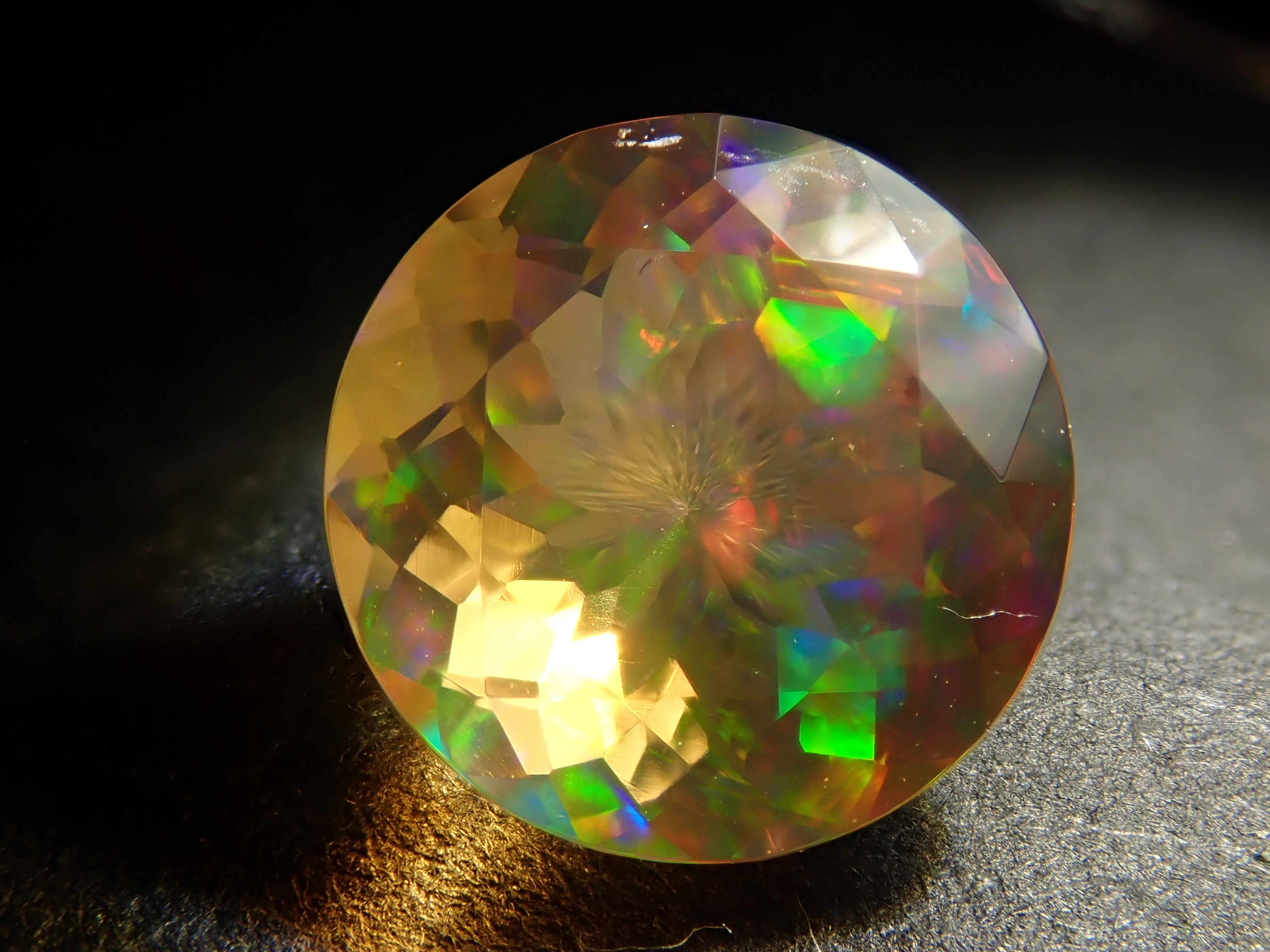 蛋白石自古羅馬時代以來就很受歡迎。火蛋白石是指底色從紅色到橘色的蛋白石,給人火的形象。照片是使用筆燈拍攝的。