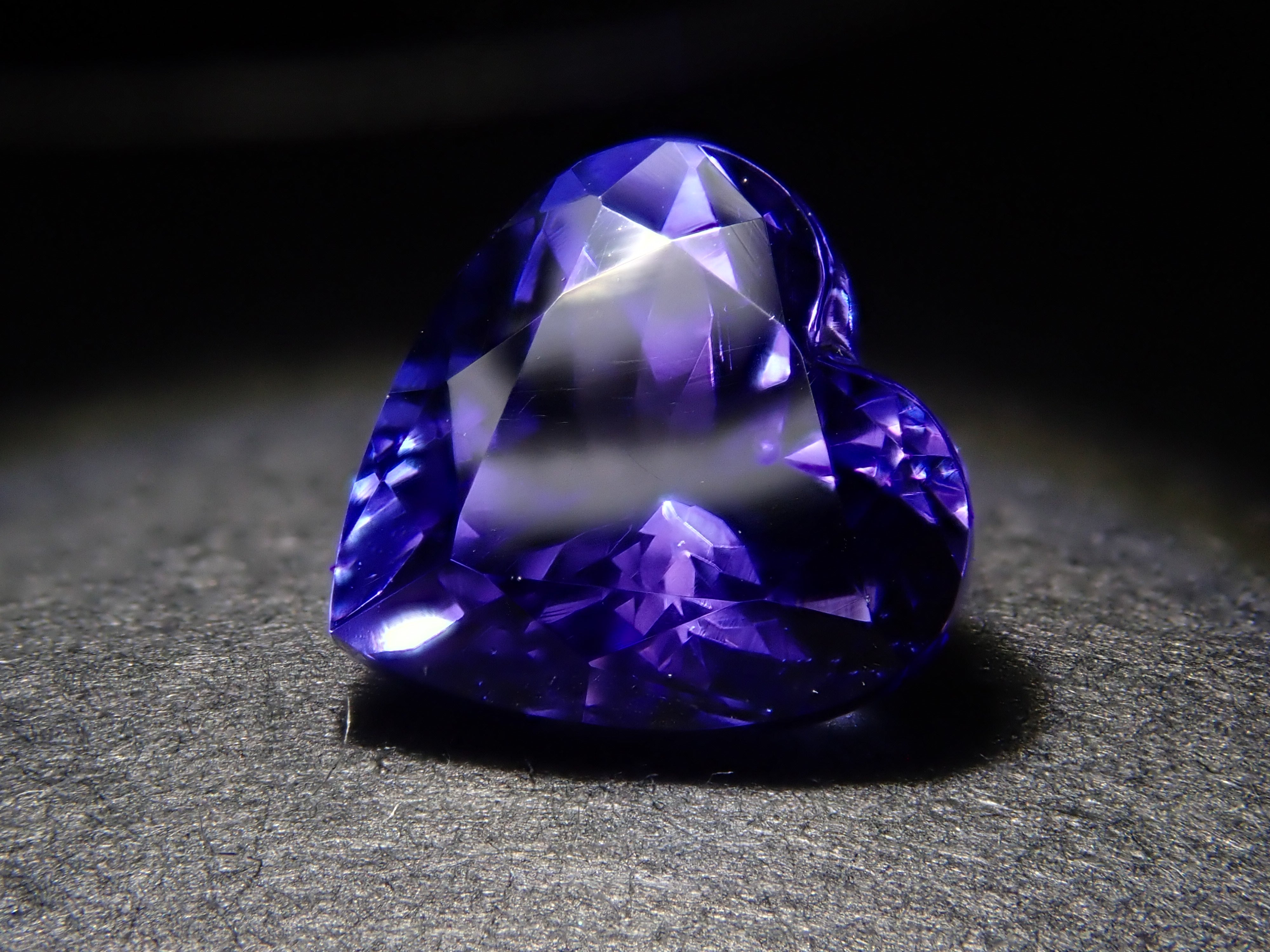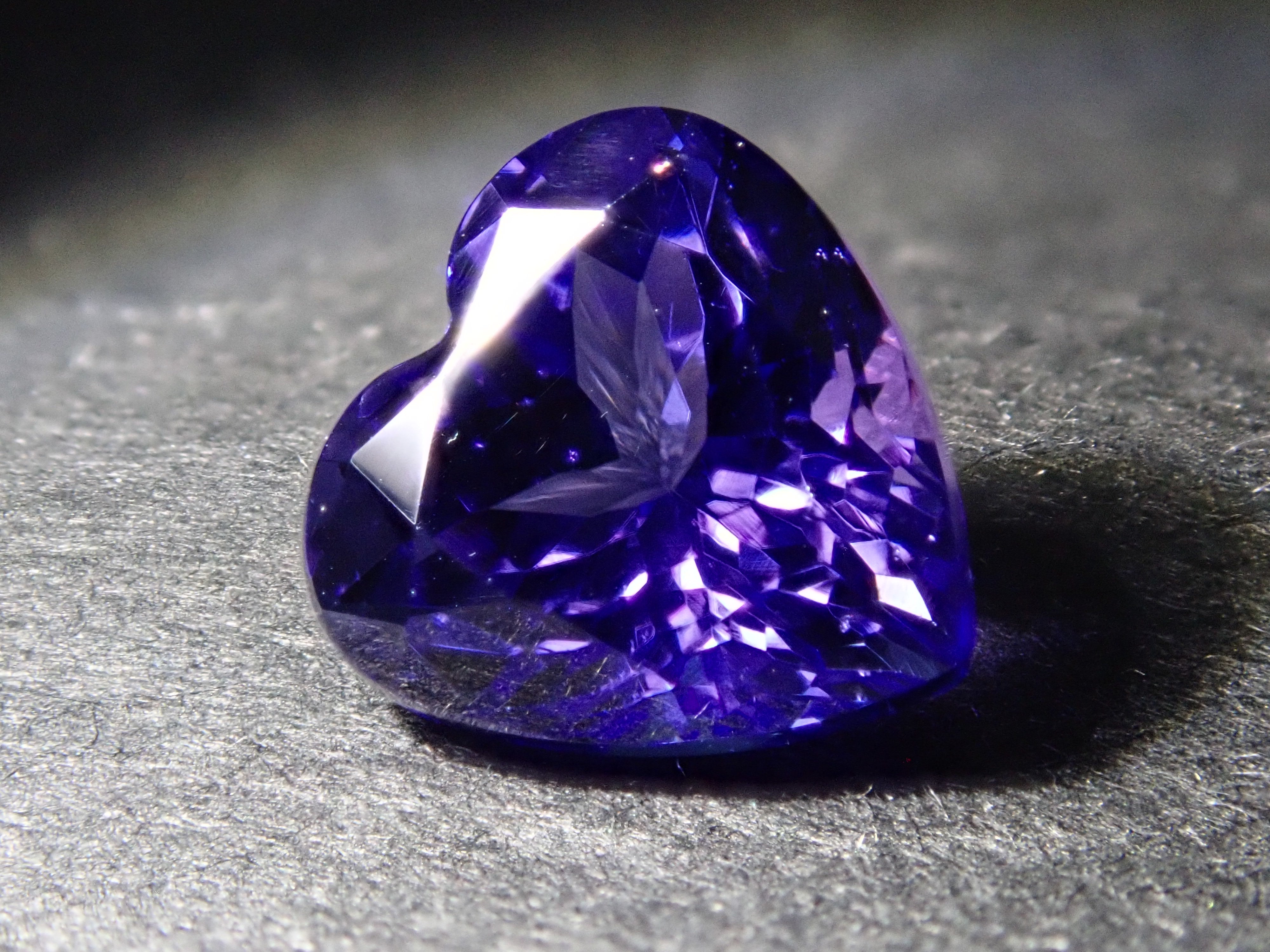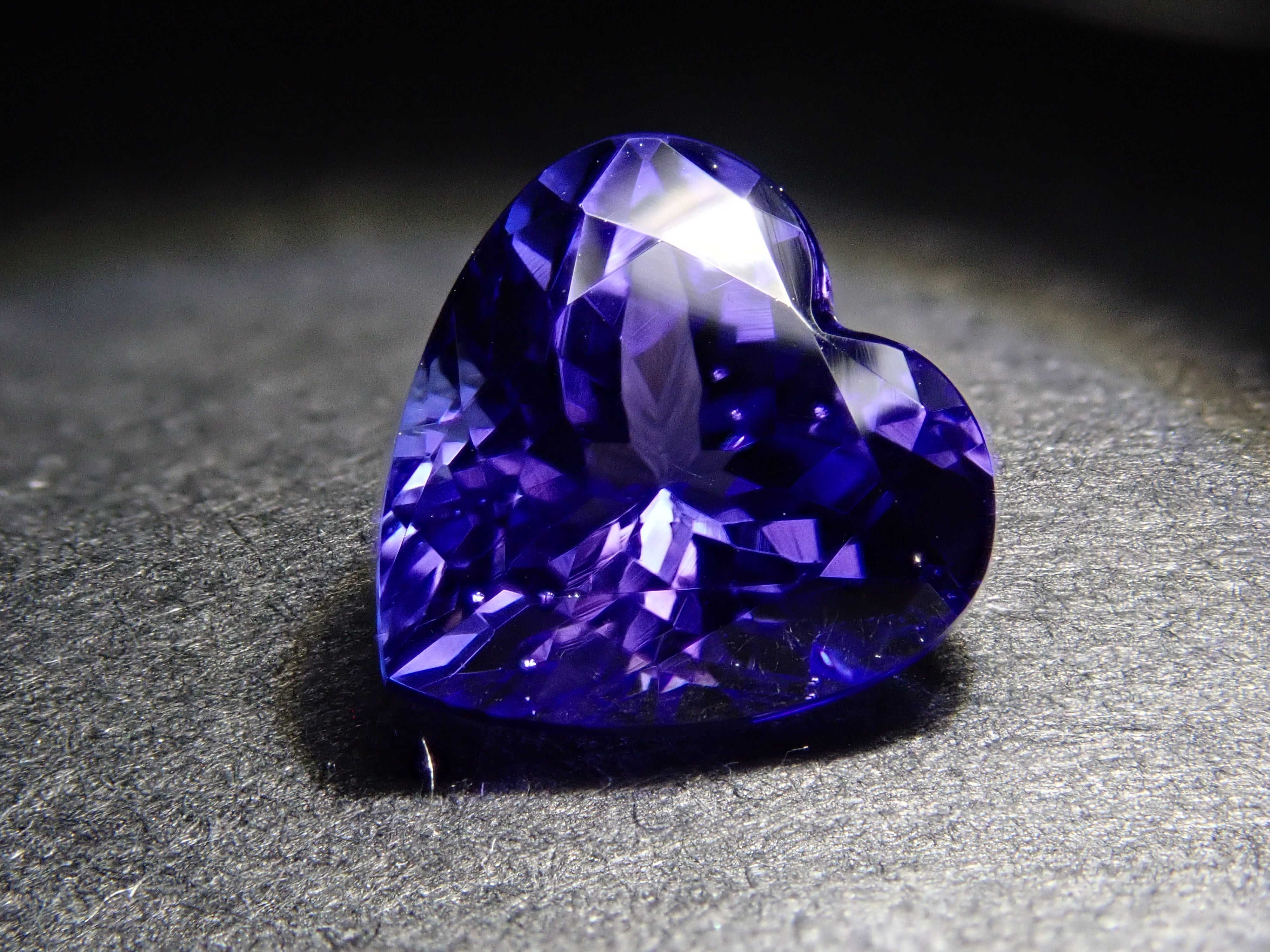 坦桑石因其「多色性」而魅力非凡,這意味著從不同角度觀看,坦桑石會呈現出不同的顏色。藍色、藍紫色和群青等各種藍色在坦桑石中翩翩起舞,令人賞心悅目。 「坦桑石」這個名稱由蒂芬妮公司命名。這顆高品質的心型坦桑石色澤深邃。
