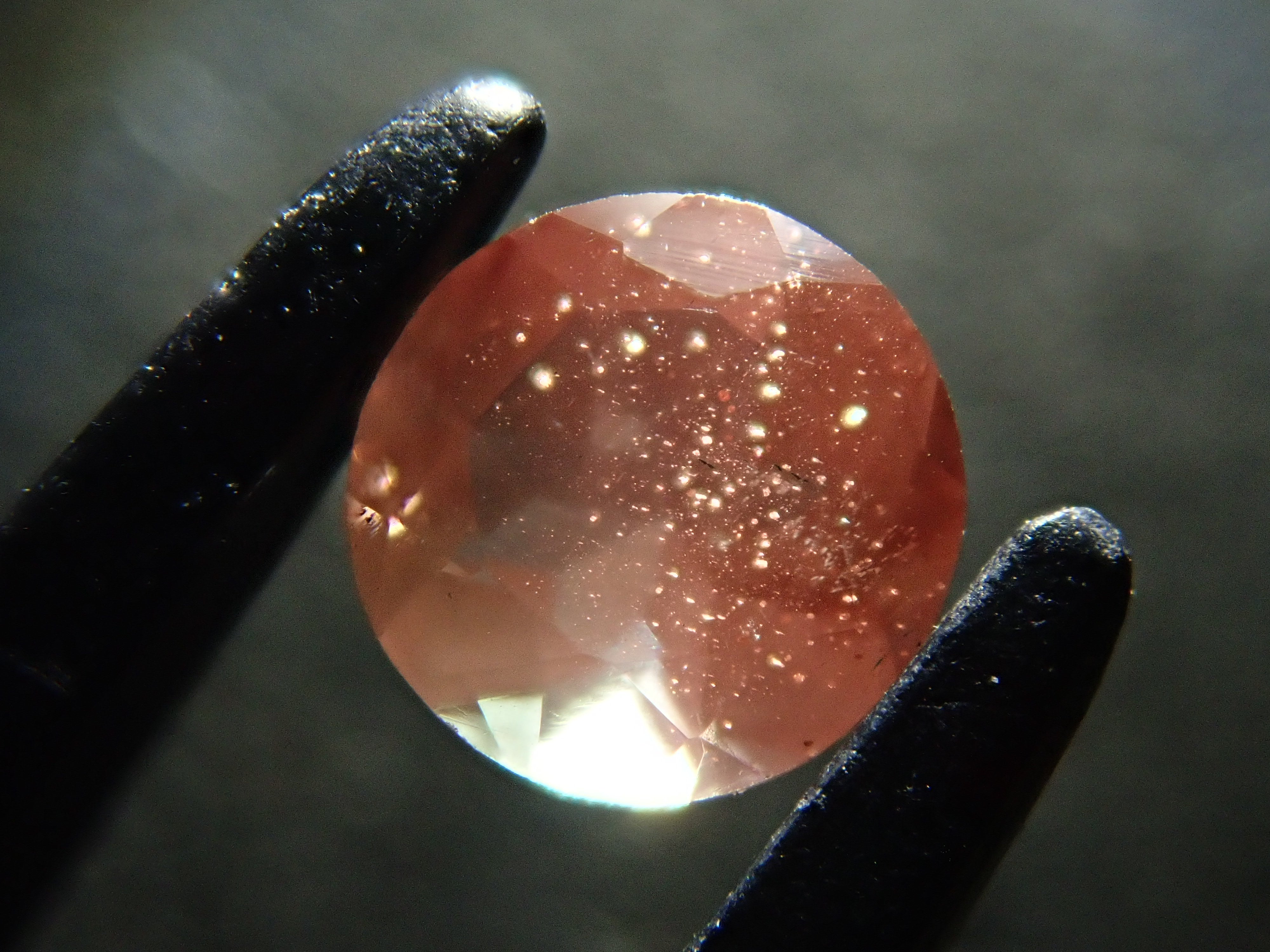 俄勒岡日光石據說是世界上最美麗的拉長石。近年來,這種石頭越來越受歡迎。還有一種稱為散光(席勒效應)的寶石,其中寶石內部的內含物會像閃光一樣反射。為了準確地傳達這些光學效果,攝影時使用筆燈。