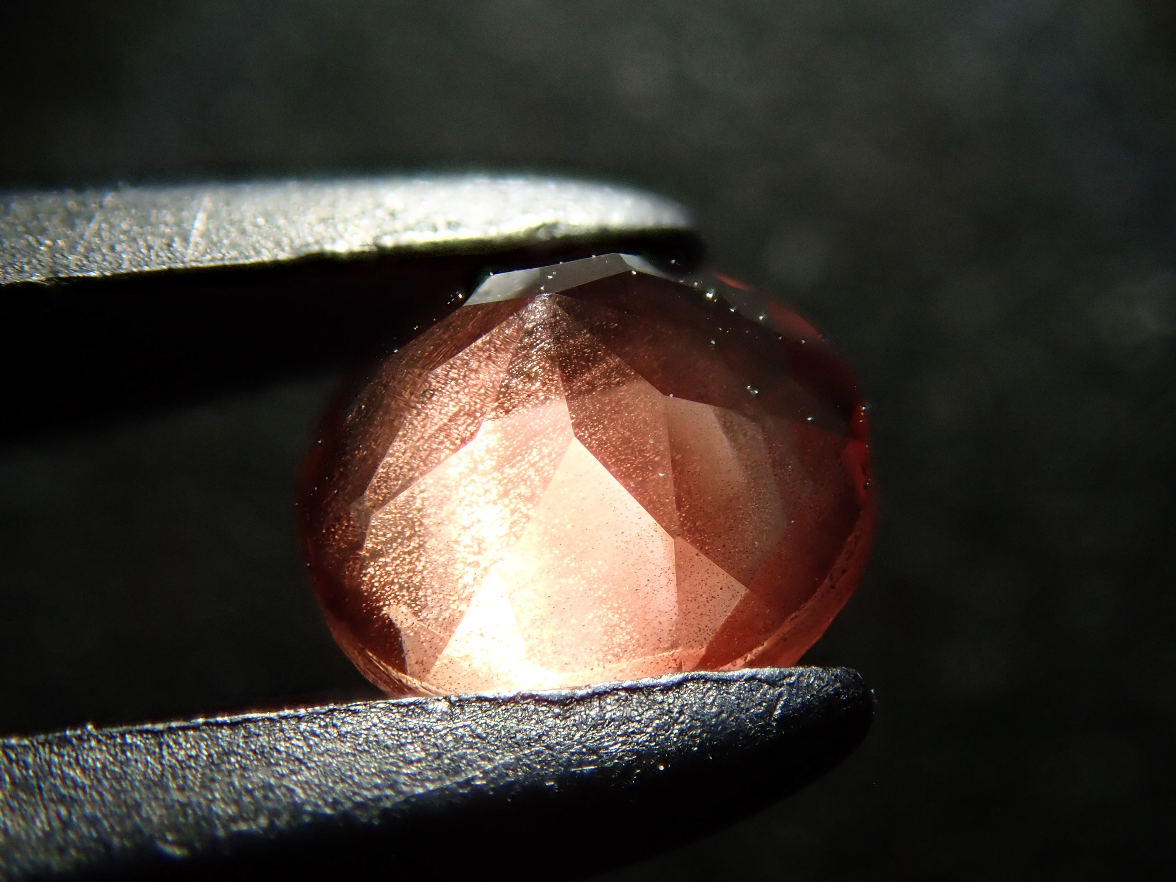 俄勒岡日光石據說是世界上最美麗的拉長石。近年來,這種石頭越來越受歡迎。還有一種稱為散光(席勒效應)的寶石,其中寶石內部的內含物會像閃光一樣反射。為了準確地傳達這些光學效果,攝影時使用筆燈。