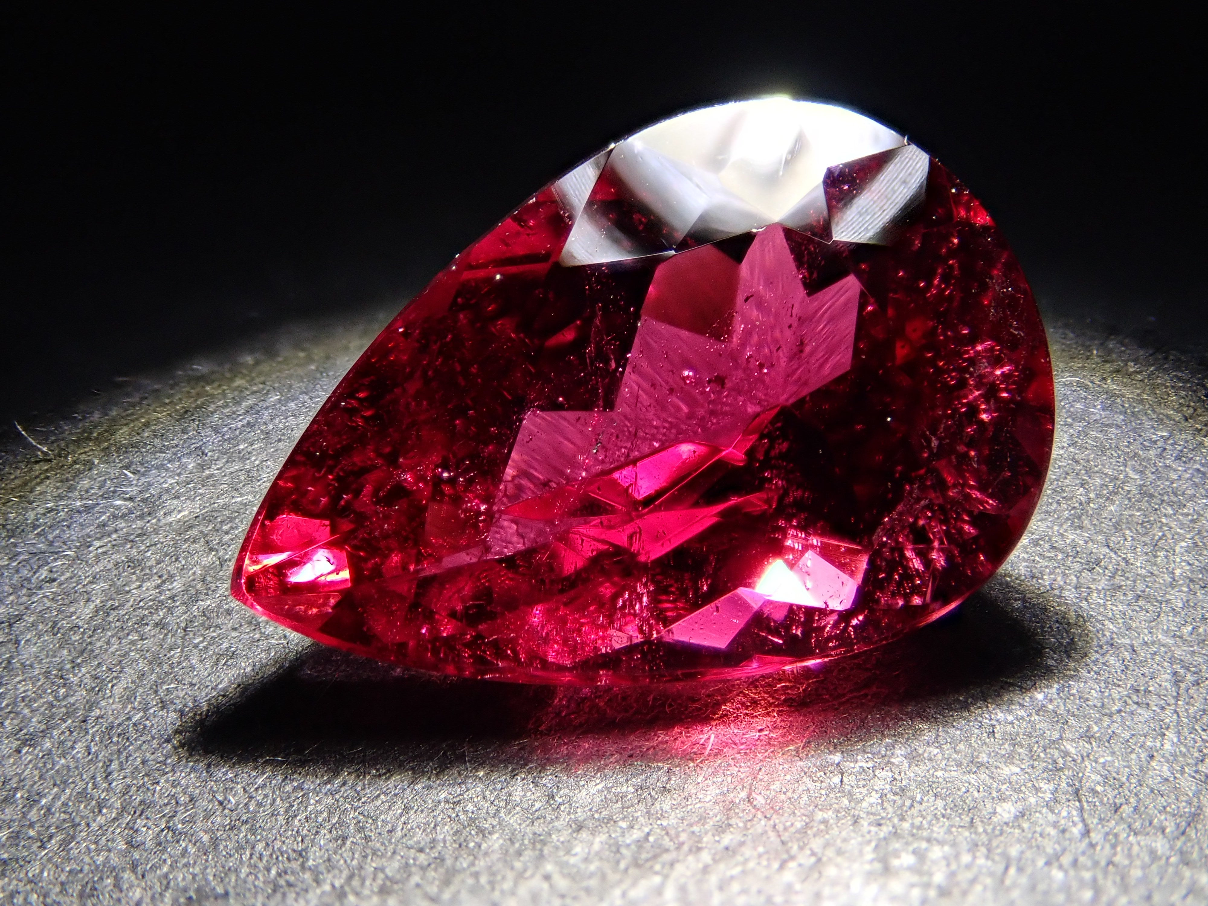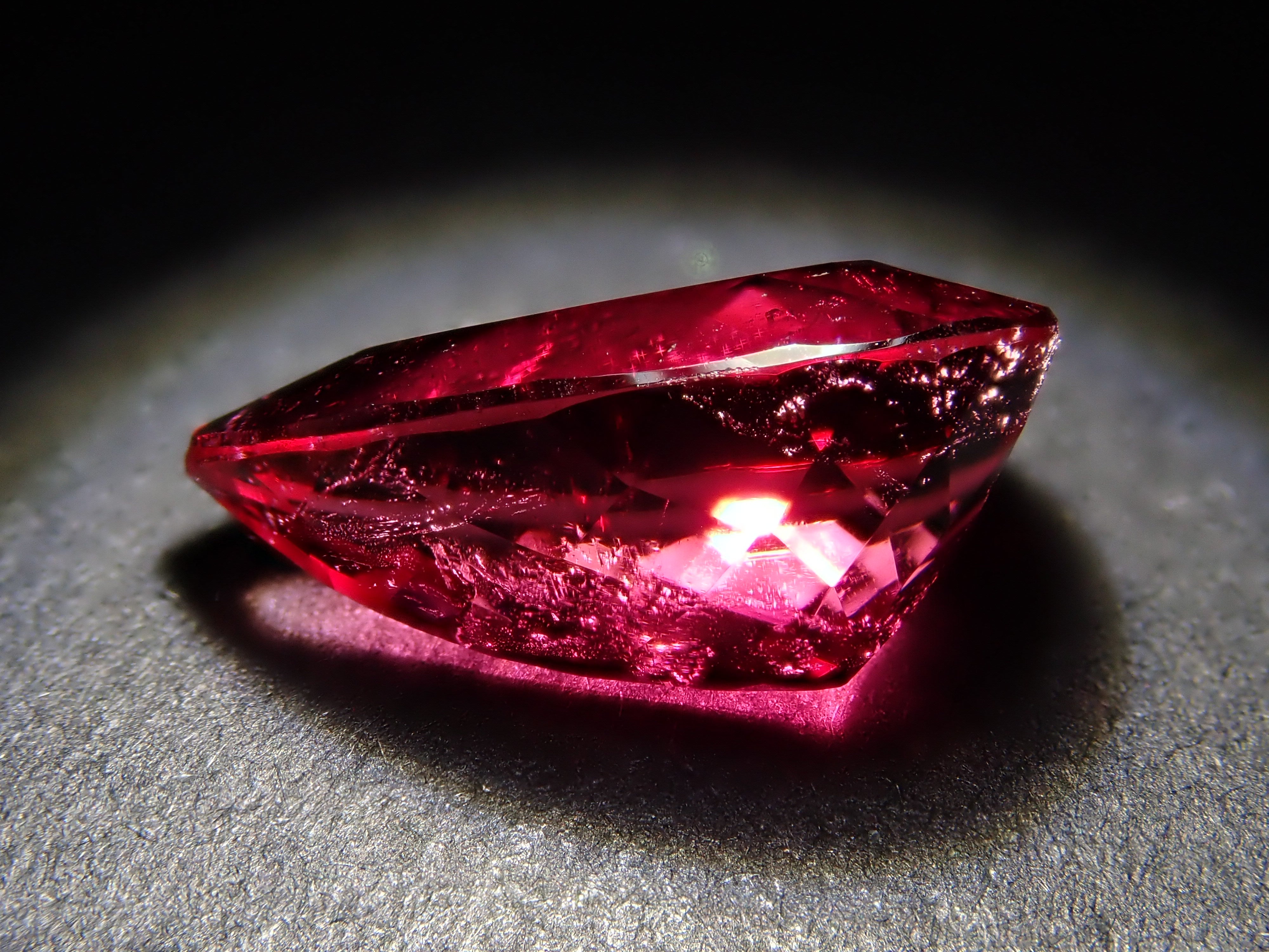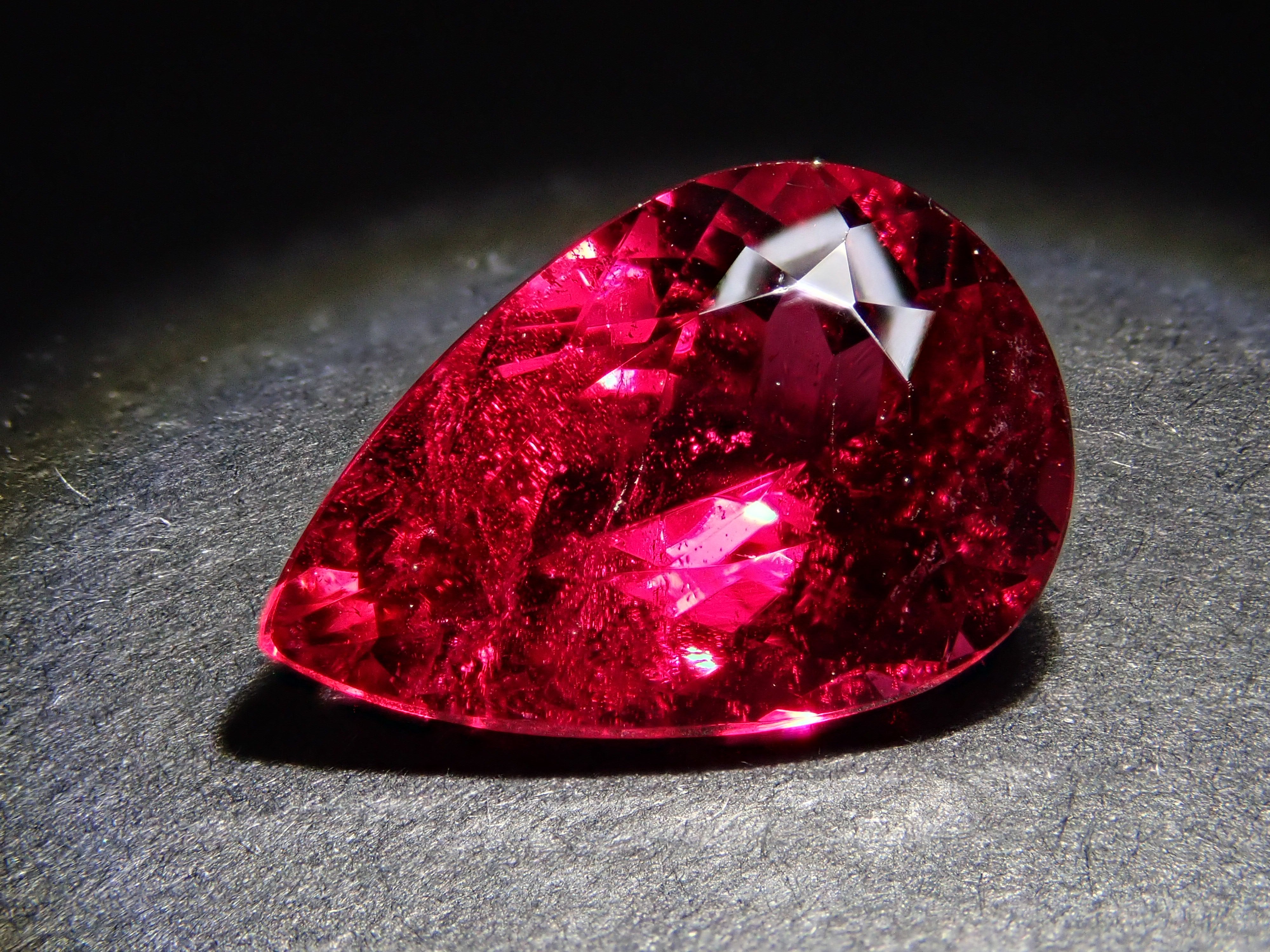 迷人的蔓越莓色,紅碧璽。它是一種碧璽,指的是紅色碧璽。在紅色碧璽中,那些處於特定顏色範圍內的碧璽被稱為紅碧璽。欣賞它從紅色到紫紅色的清新光澤。這顆高品質的紅碧璽裸石,顏色格外深。它重達3克拉,令人嘆為觀止。