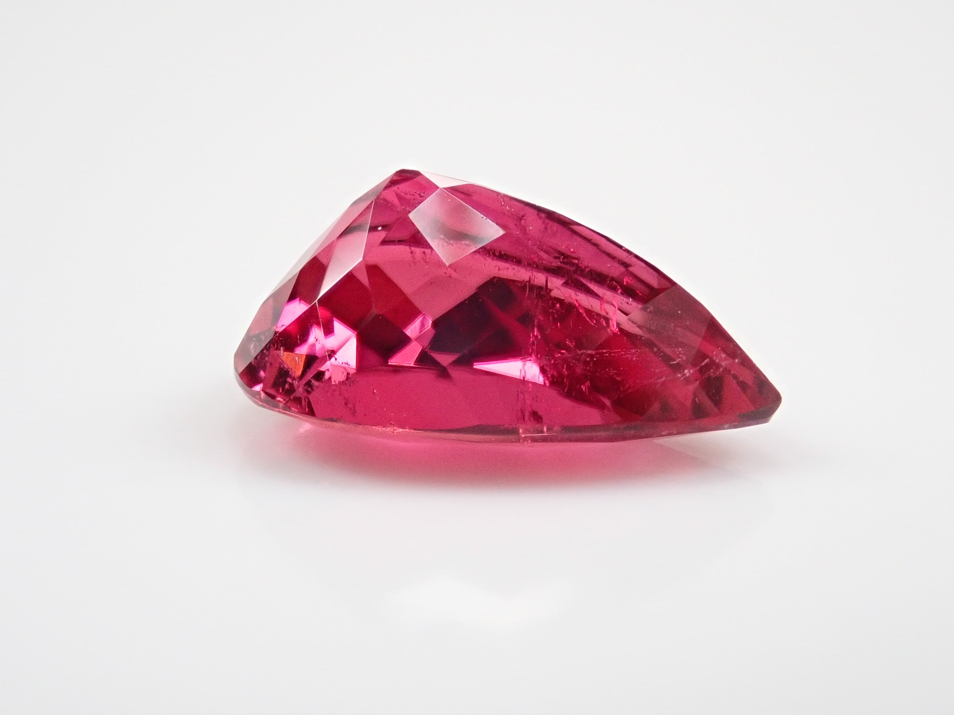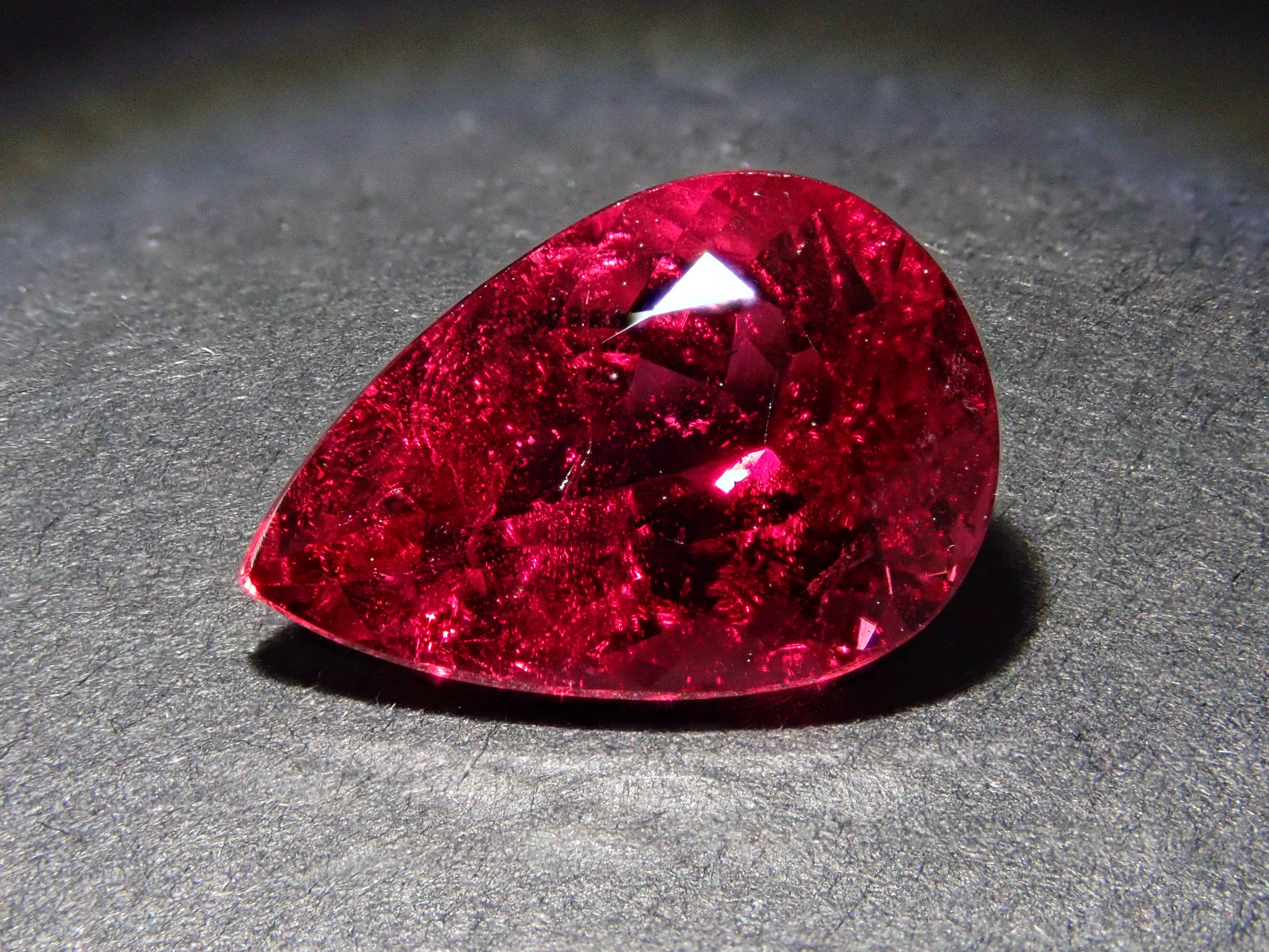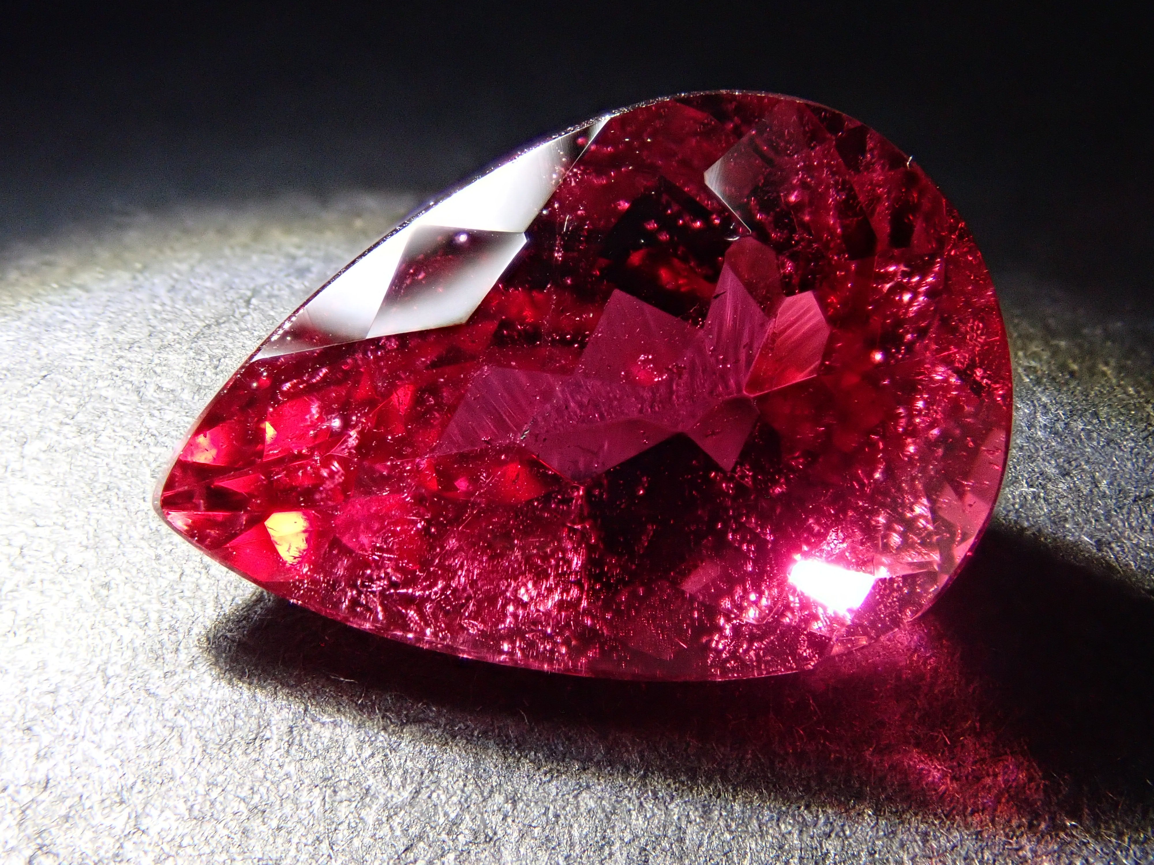 迷人的蔓越莓色,紅碧璽。它是一種碧璽,指的是紅色碧璽。在紅色碧璽中,那些處於特定顏色範圍內的碧璽被稱為紅碧璽。欣賞它從紅色到紫紅色的清新光澤。這顆高品質的紅碧璽裸石,顏色格外深。它重達3克拉,令人嘆為觀止。