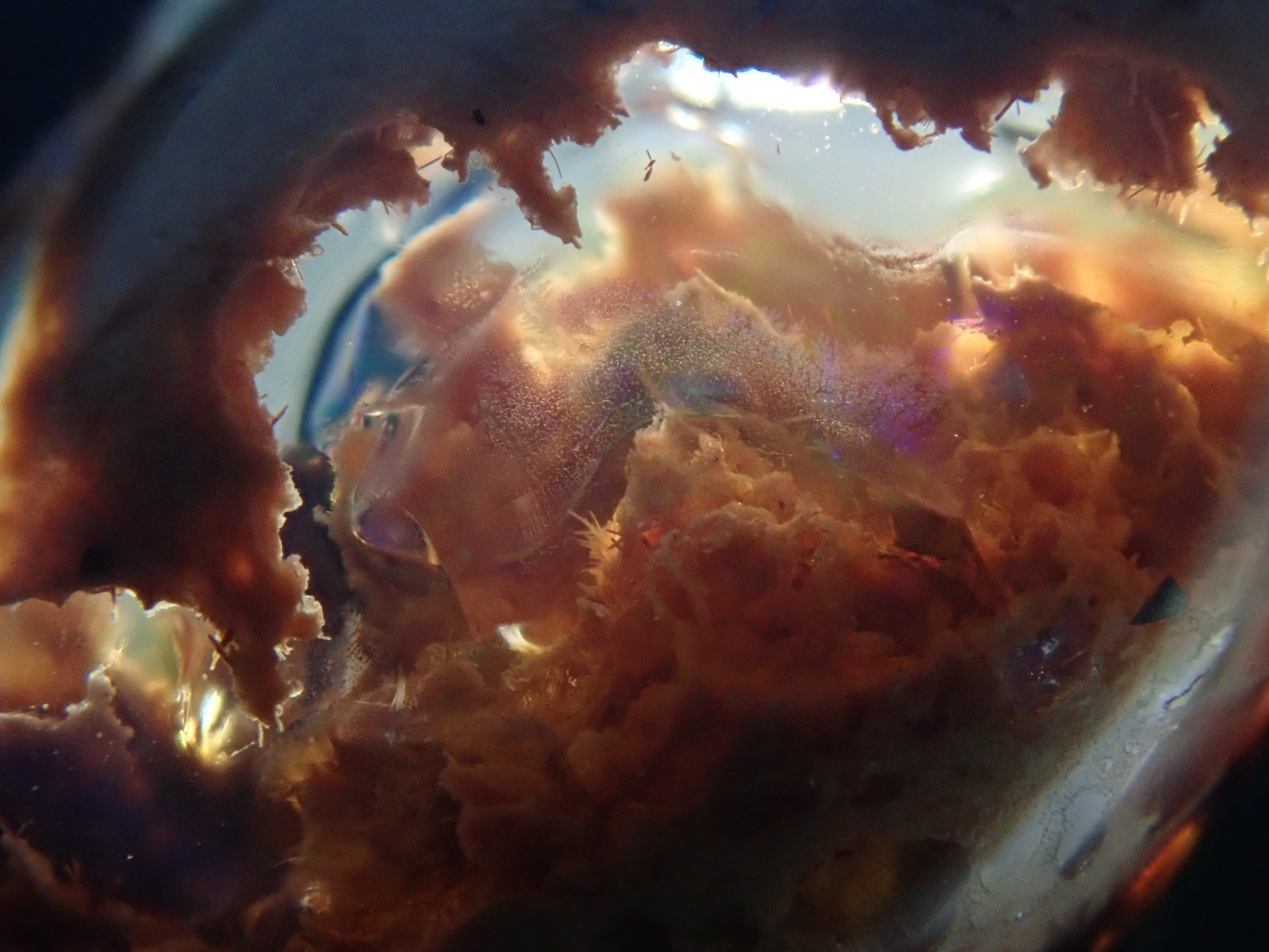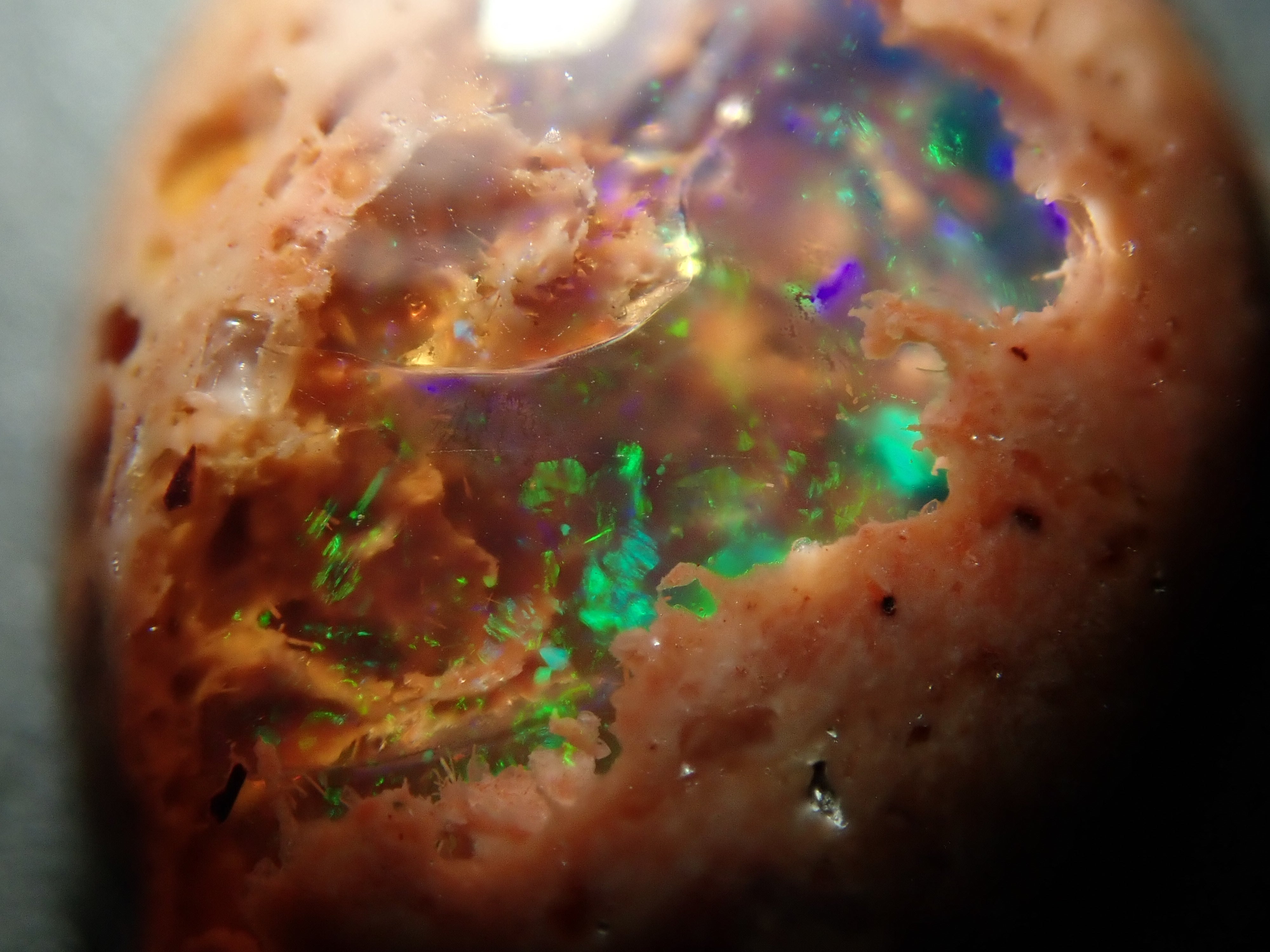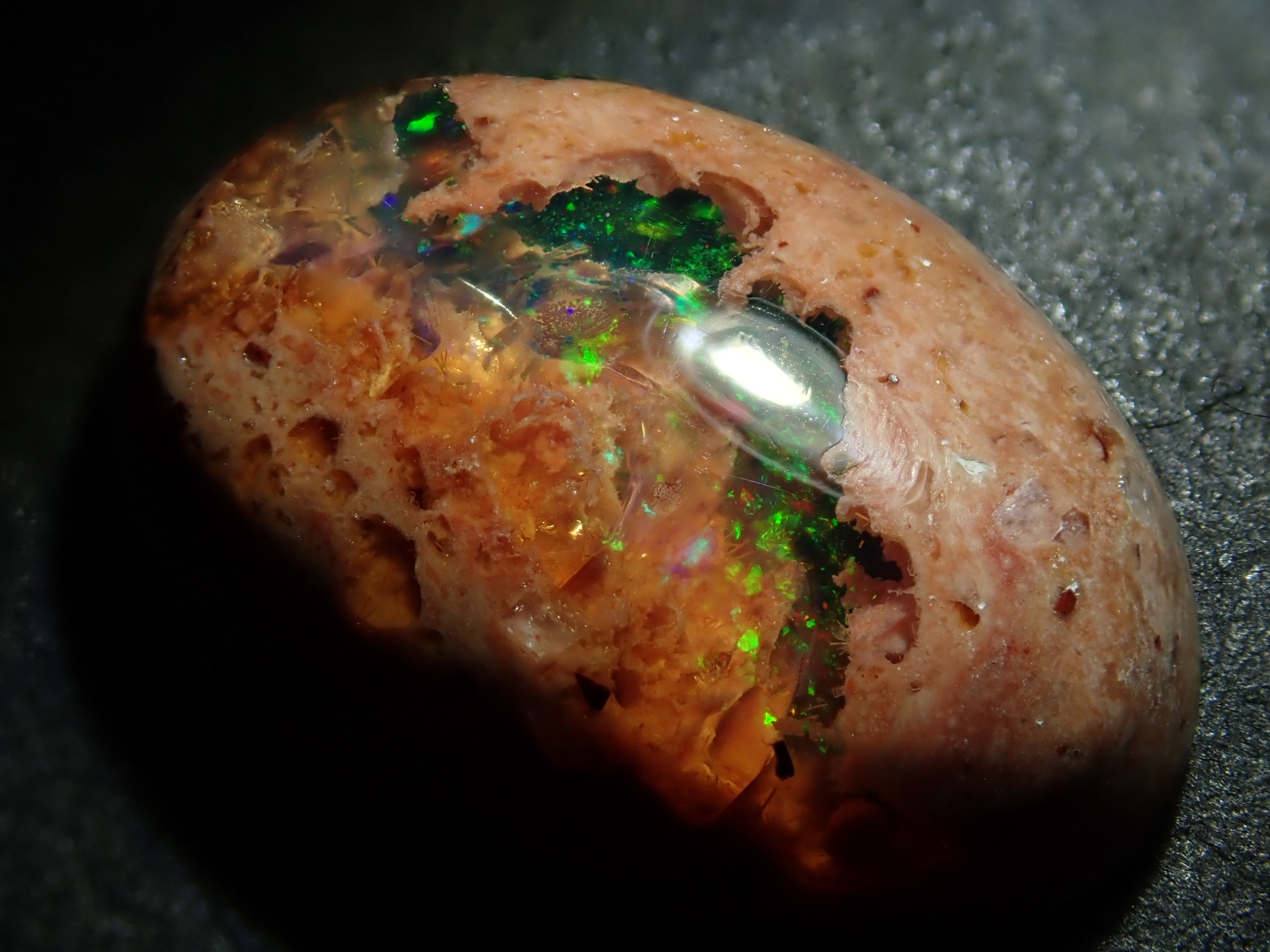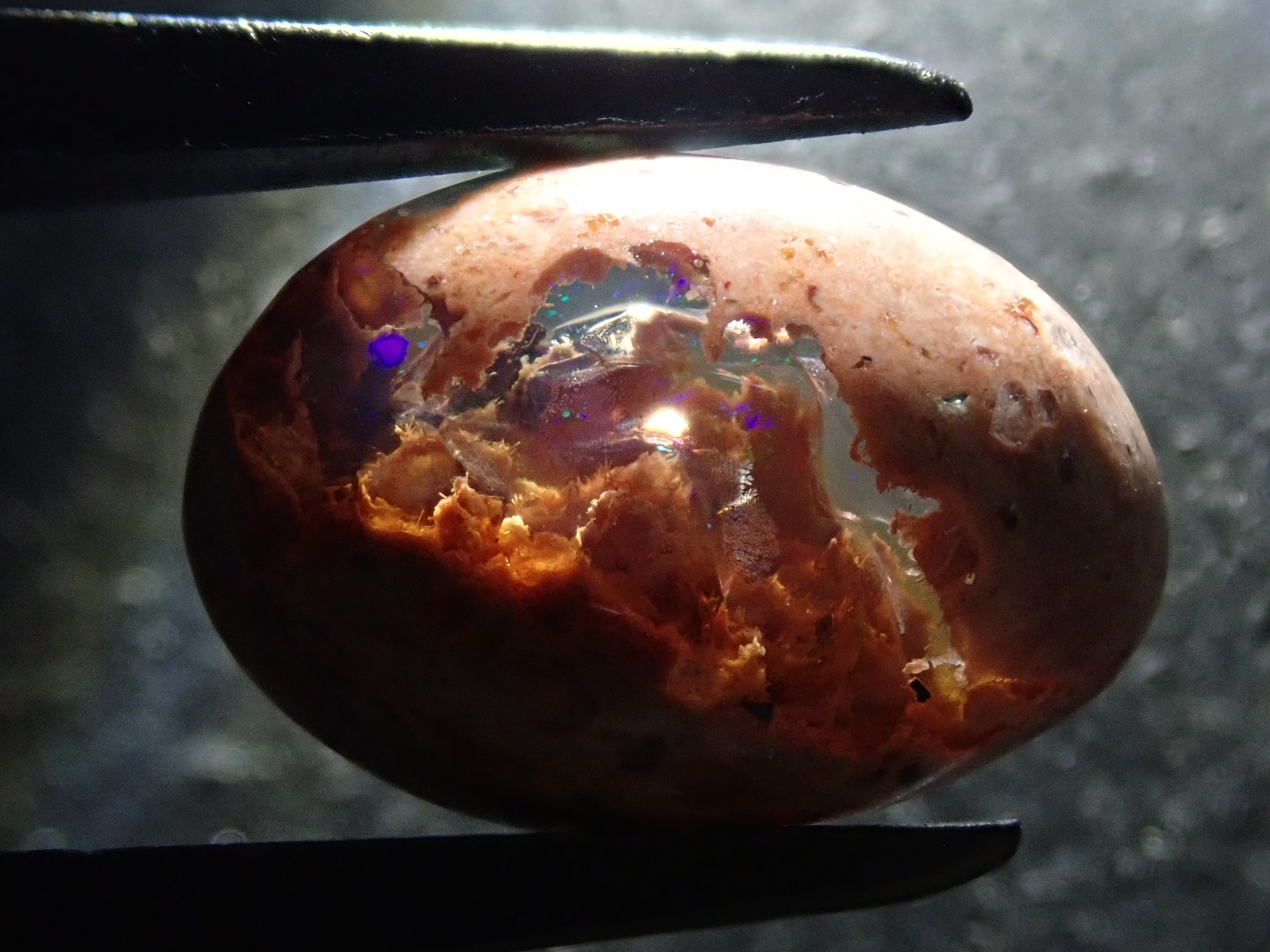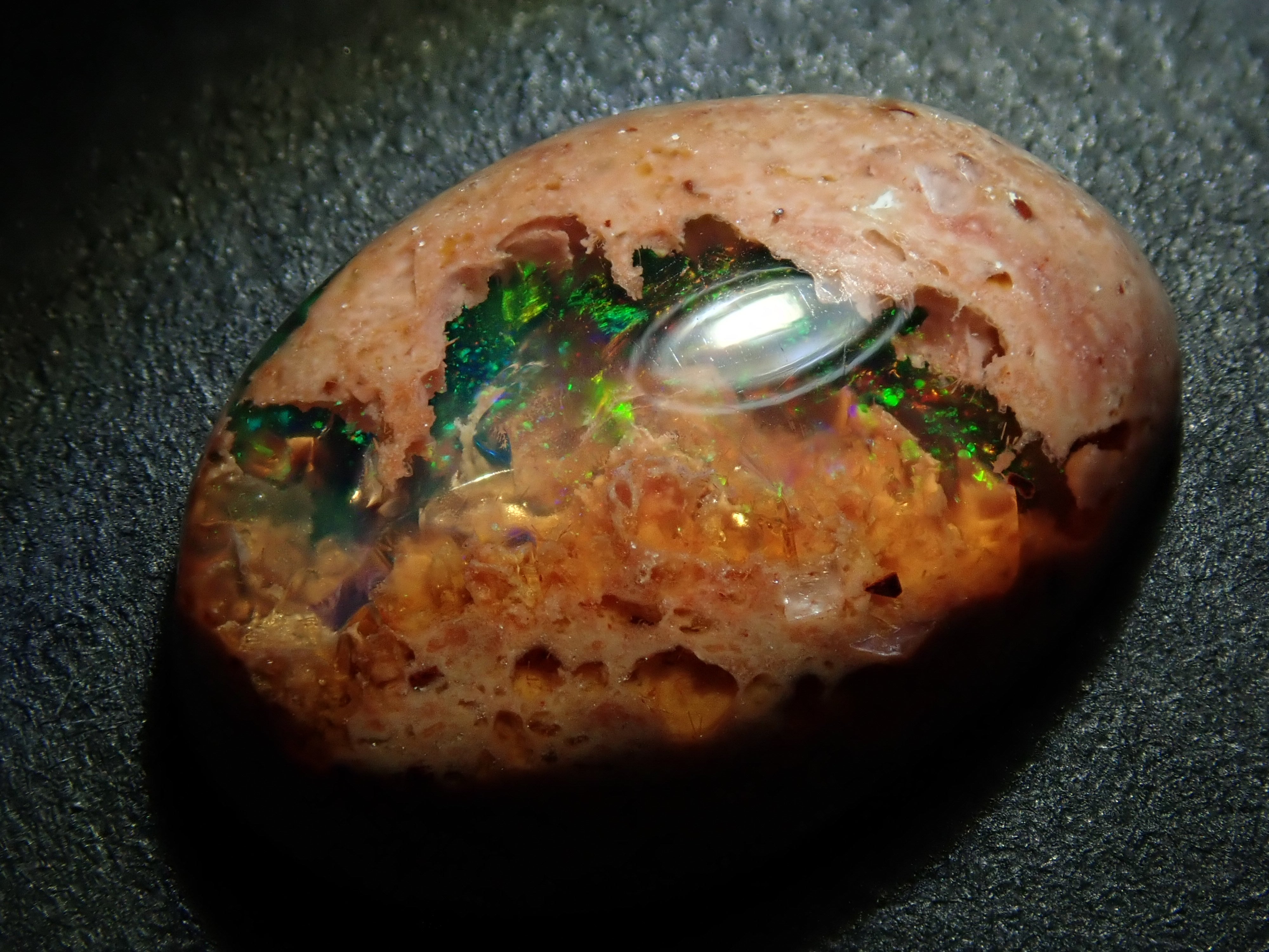 蛋白石是一種以彩虹般閃耀的色彩為特徵的寶石。蛋白石種類繁多,但最受收藏家青睞的是坎特拉蛋白石。它散發著大地的活力,擁有眾多愛好者,即使是裸石也可以欣賞。坎特拉蛋白石本身就是一種帶有許多「罐子」的寶石。照片是用筆形電筒拍攝的。這顆蛋白石也帶有“罐子”,但它透明度極高,用放大鏡觀察時,可以感受到洞穴般的質感。這是一顆產自墨西哥的3.280克拉坎特拉蛋白石裸石。
